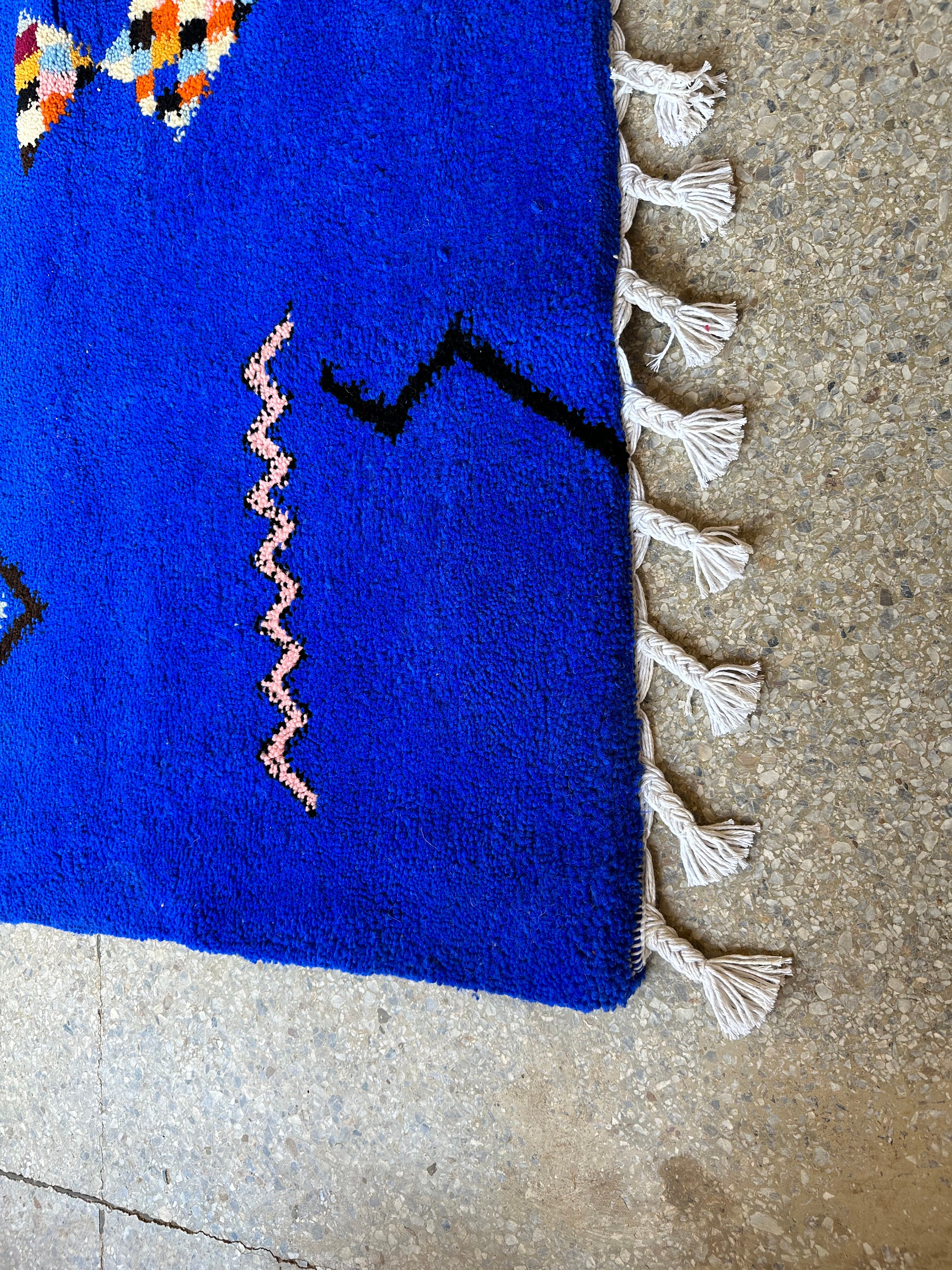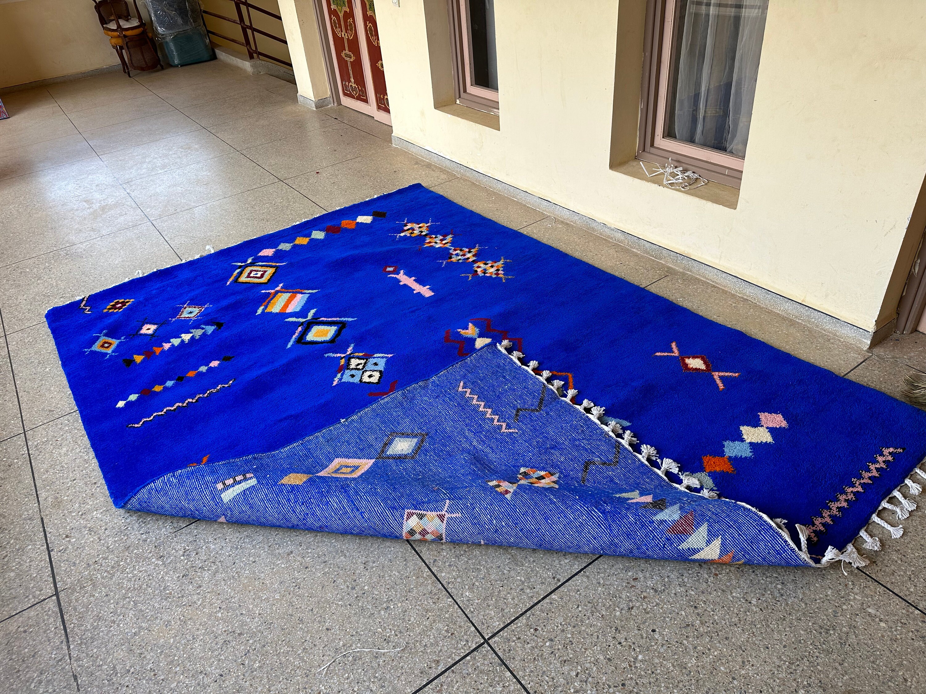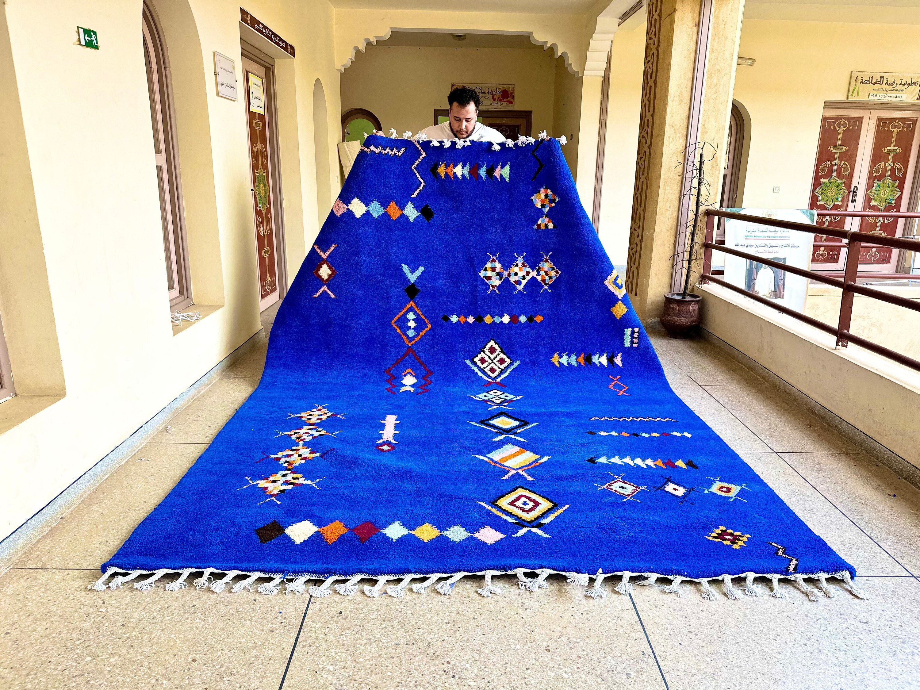 Enhance your living room with this custom Beni ourain Blue rug, handcrafted with soft wool in a beautiful Moroccan design. This Berber Bohemian rug adds a touch of elegance and warmth to any space. Perfect for creating a cozy atmosphere in your home. A must-have area rug for your living room.