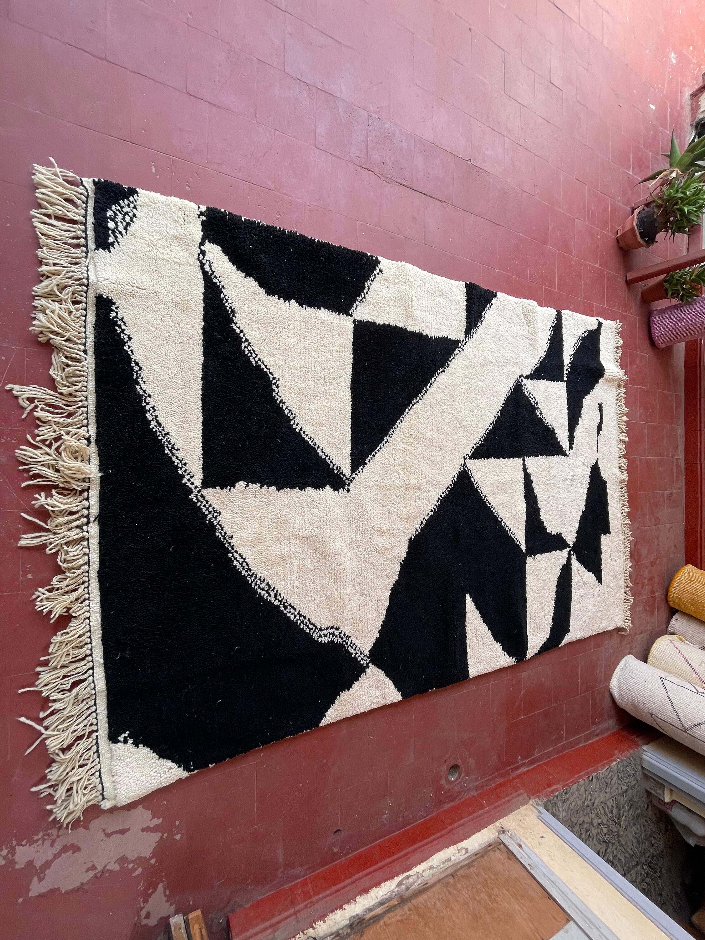 "Transform your home with a piece of Moroccan heritage that exudes both elegance and warmth 🌟. Whether placed under your sofa 🛋️, in your bedroom 🛏️, or even as a wall hanging 🖼️, these rugs invite a sense of history, style, and comfort 🧶✨. Explore our full collection of Beni Ourain, Azilal, and Boucherouite rugs for unique pieces that tell a story 📚💫."