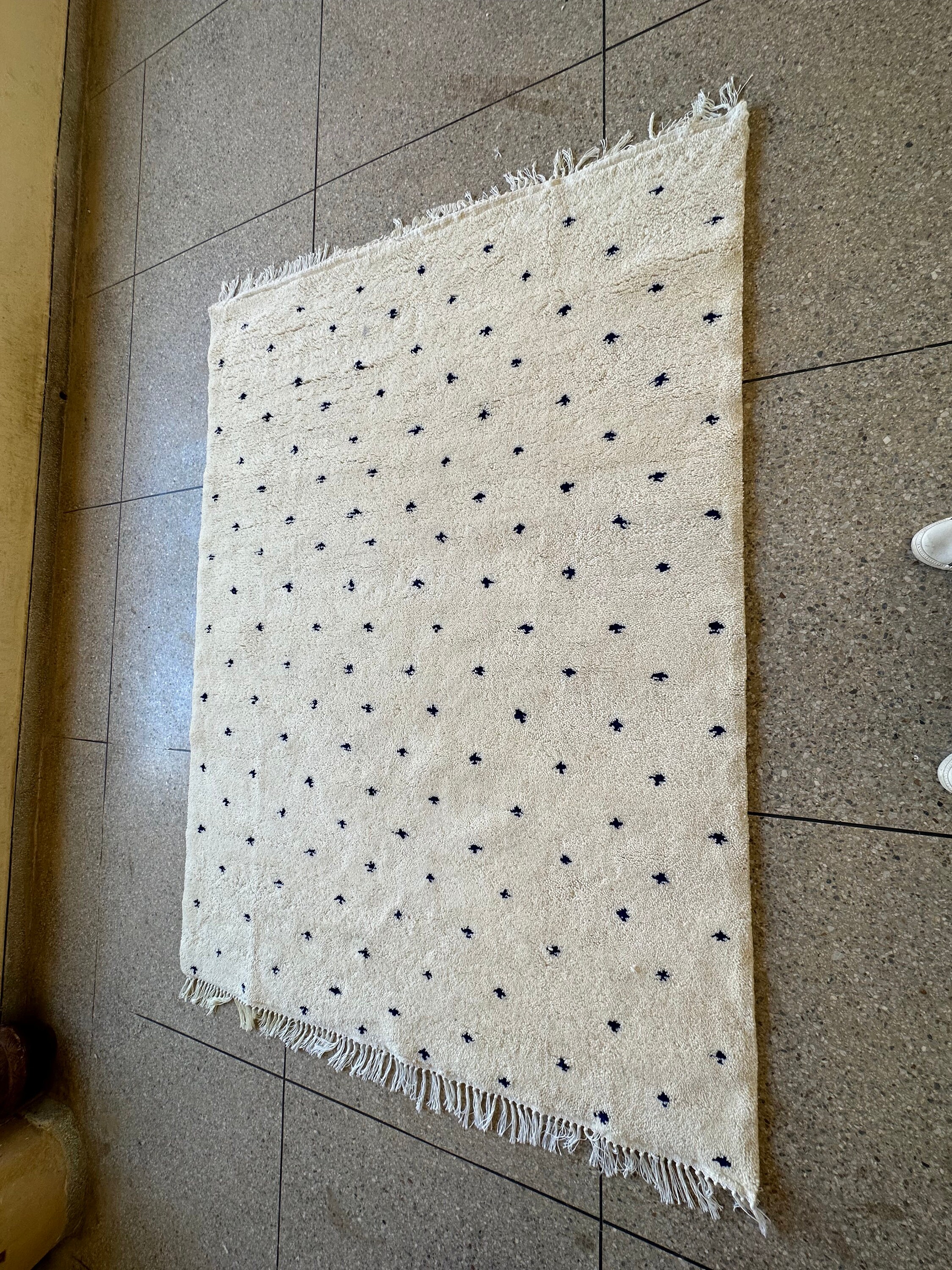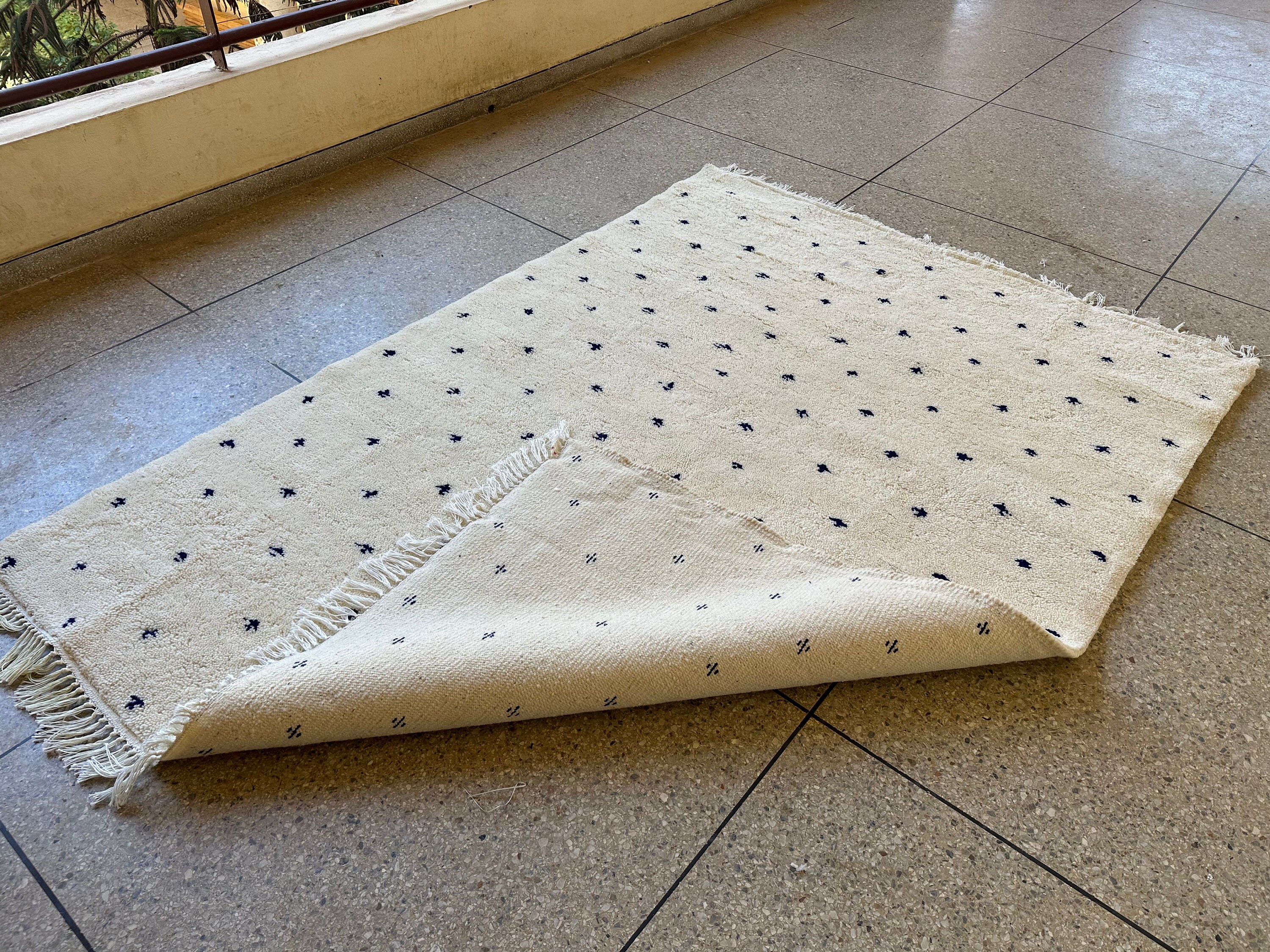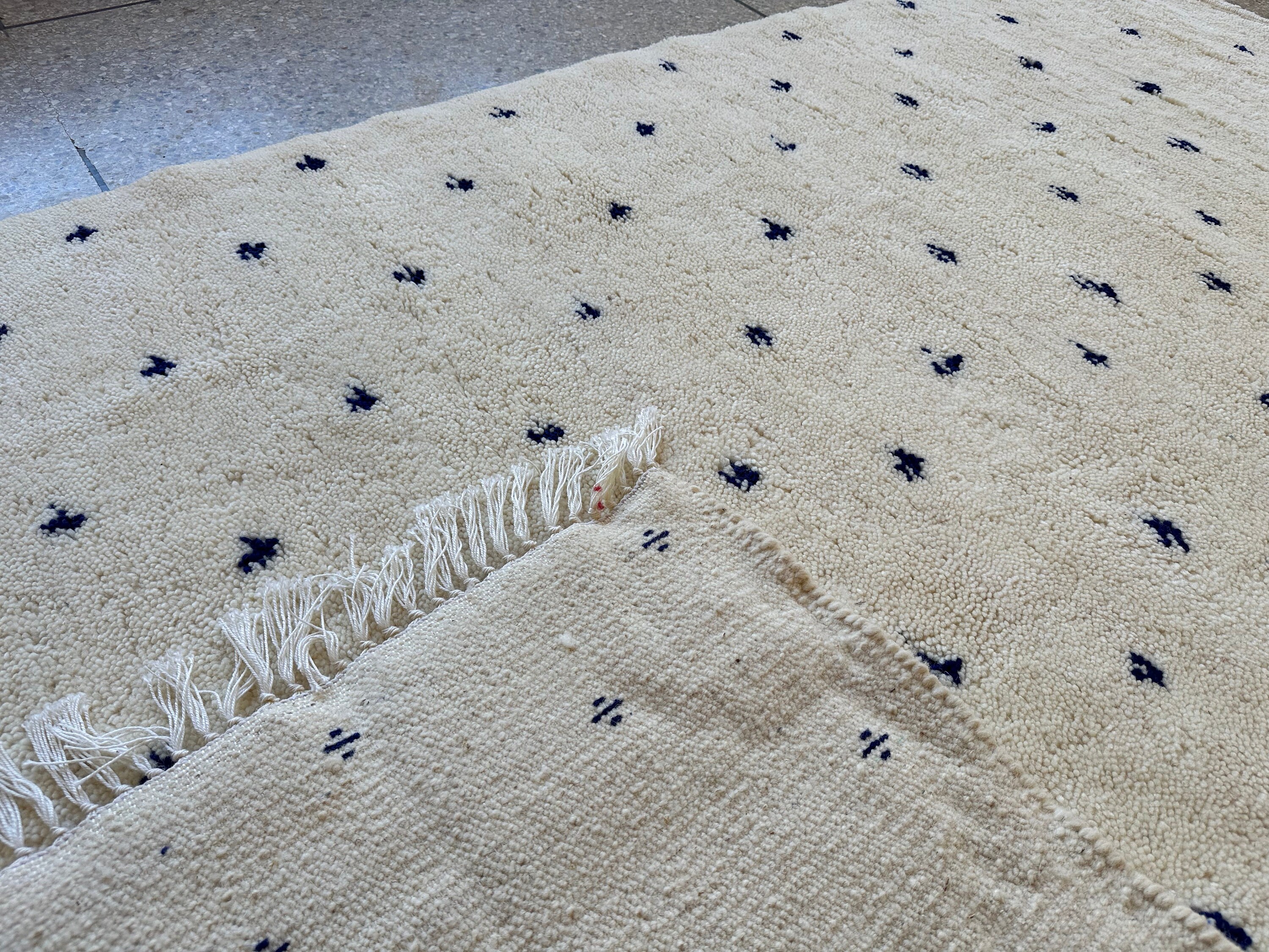 OUTSTANDING DOTTED RUG, 8x6FT Area Rug, White and Blue Moroccan Rug, Handmade Dotted Wool Carpet, Handwoven Beni Ourain Rug.