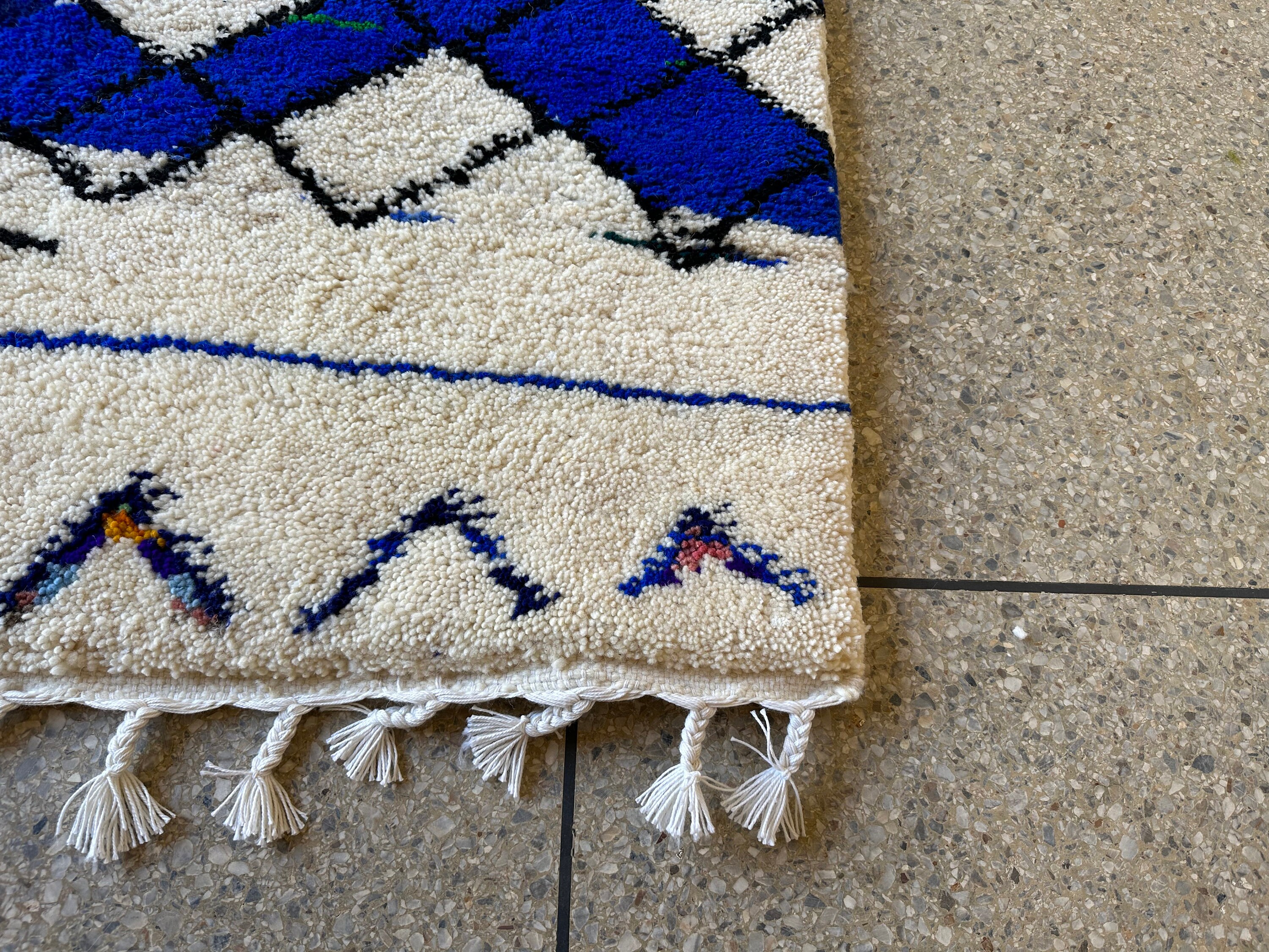 This fabulous Moroccan Rug that will give your room both a cozy feeling and stylish is made from 100% Natural sheep wool, It's Very plush and comfy to walk on, actually It's Heaven for your feet.