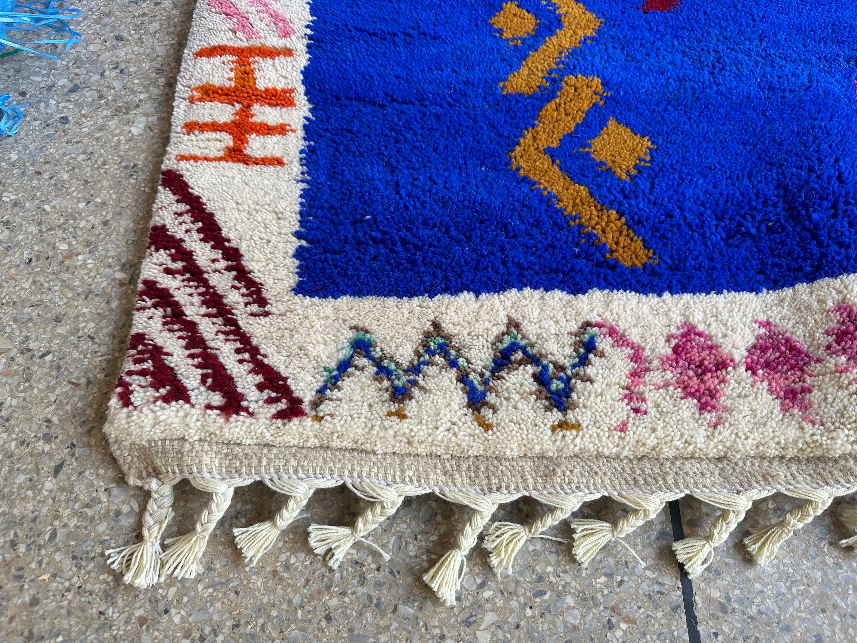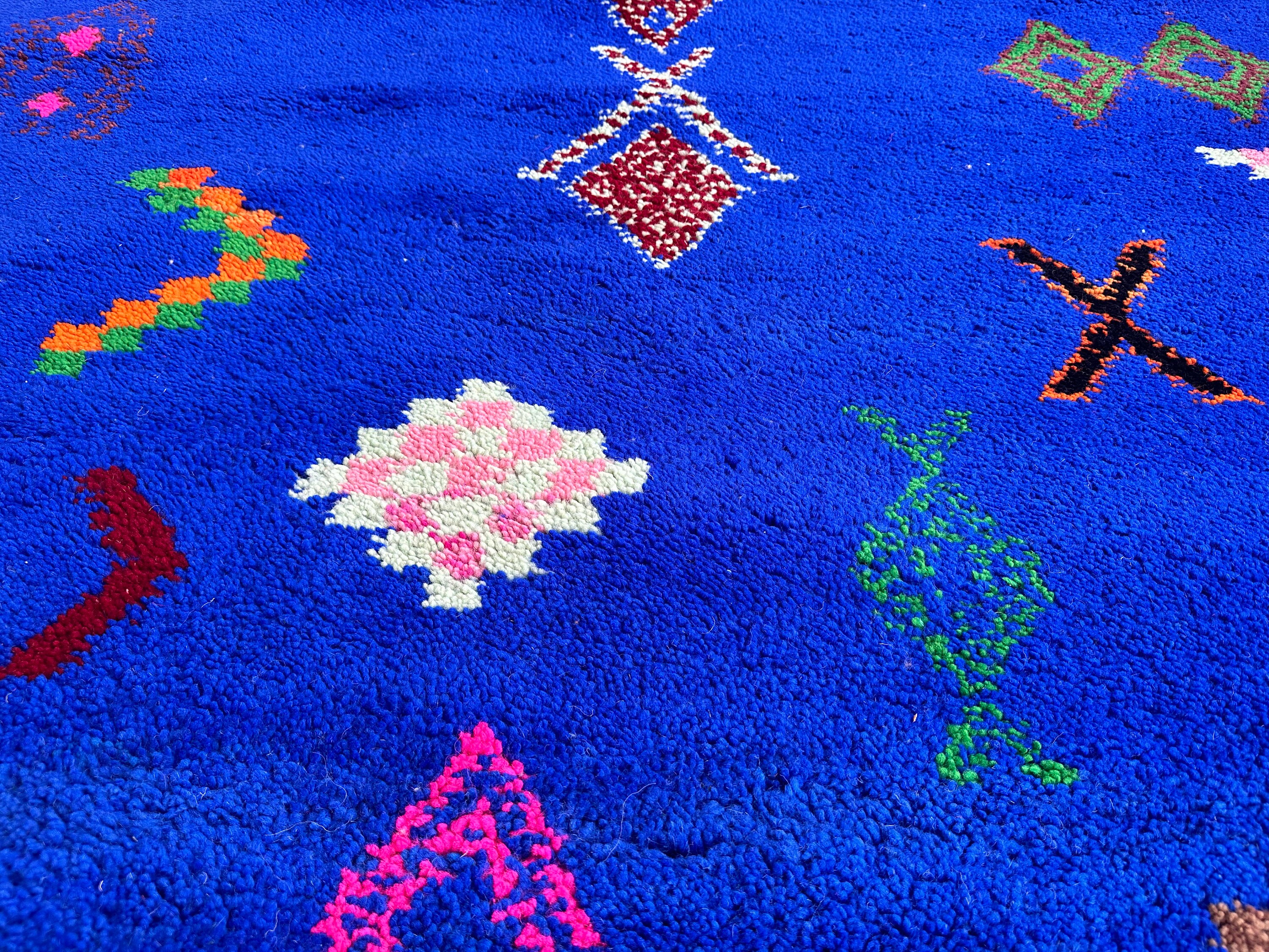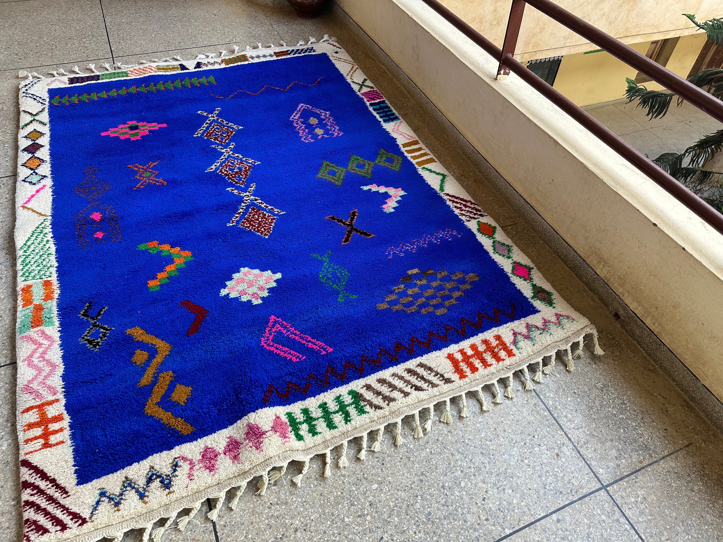 Elevate your space with this stunning Royal Blue Rug, featuring a Custom Moroccan Design that adds a touch of elegance. Crafted as an Abstract Beni Ourain Rug, this artisan-made wool piece showcases the beauty of Berber Floor Art. Perfect for any boho-chic decor, it provides timeless comfort to your home. Each rug is unique, ensuring your decor stands out. Transform your space with this exquisite blend of tradition and modern style. Perfect for living rooms, bedrooms, or cozy nooks!