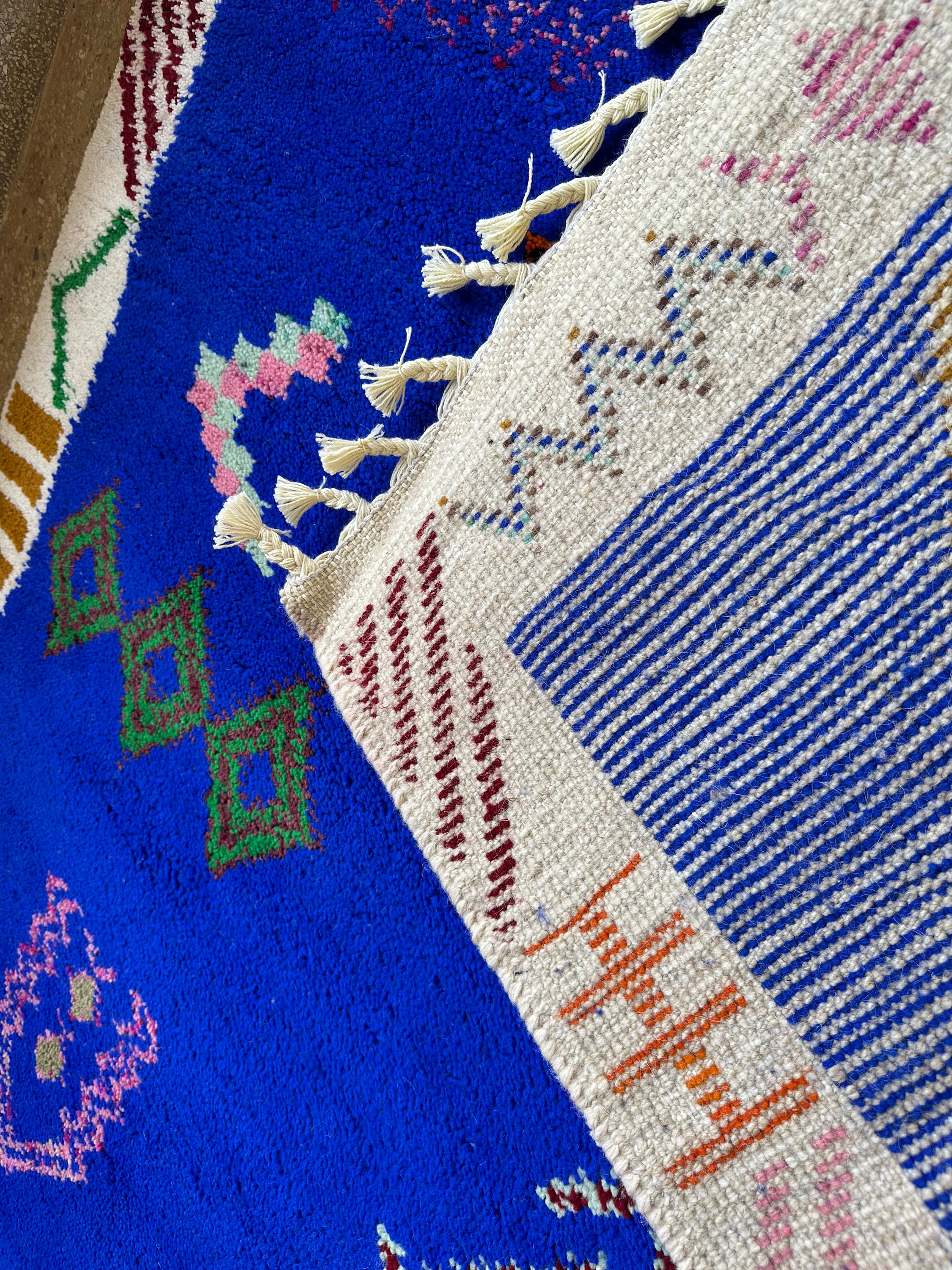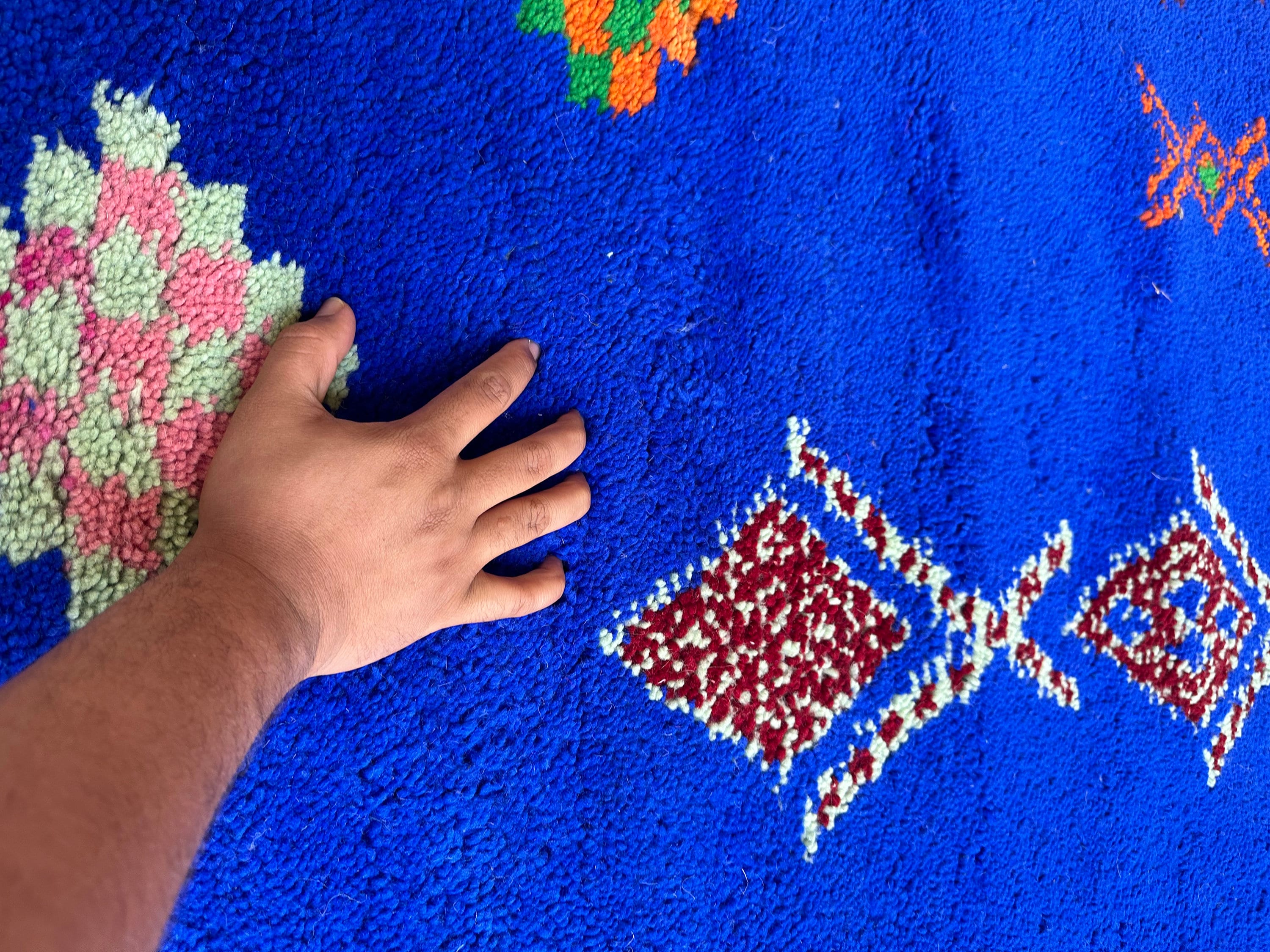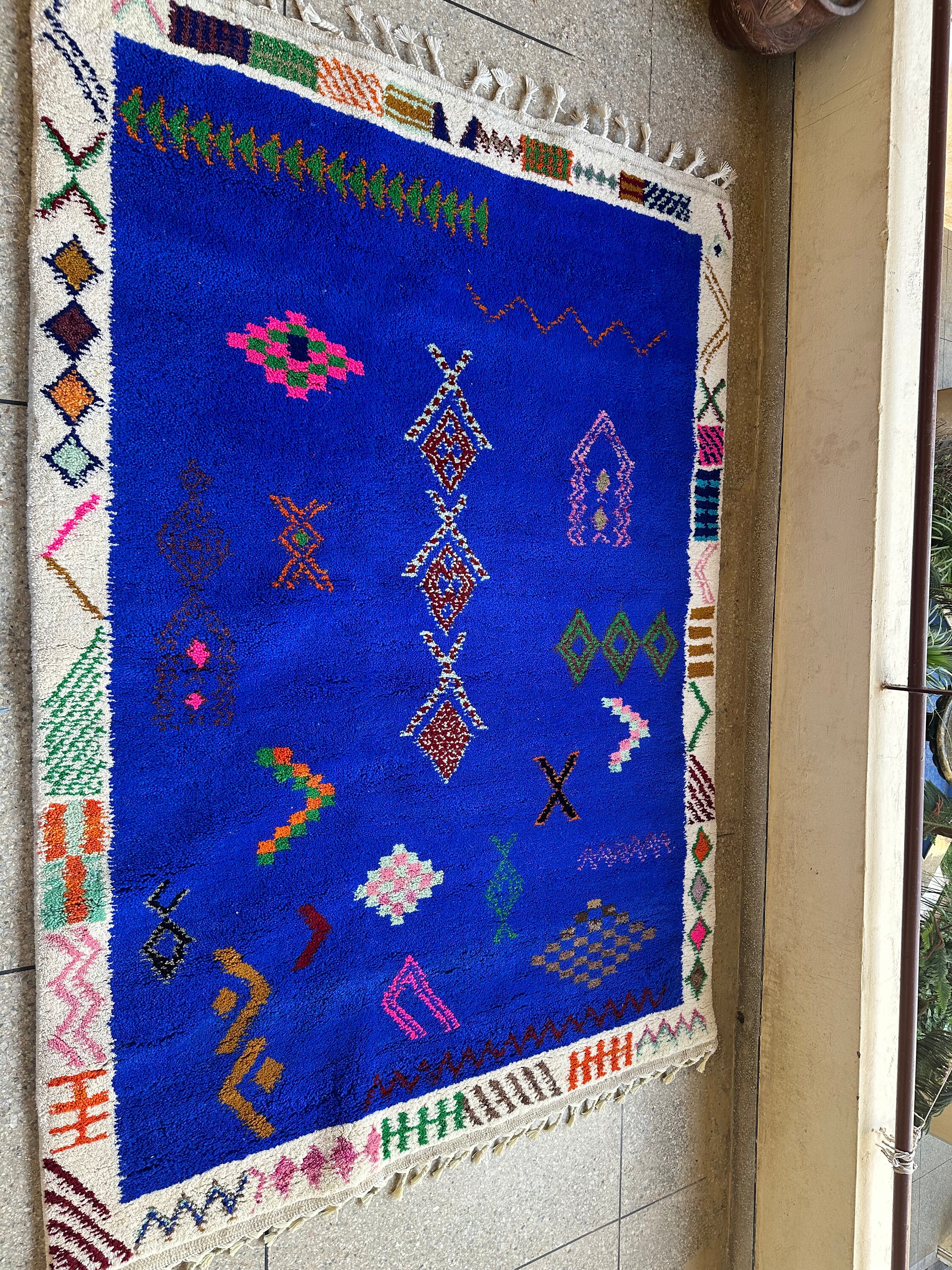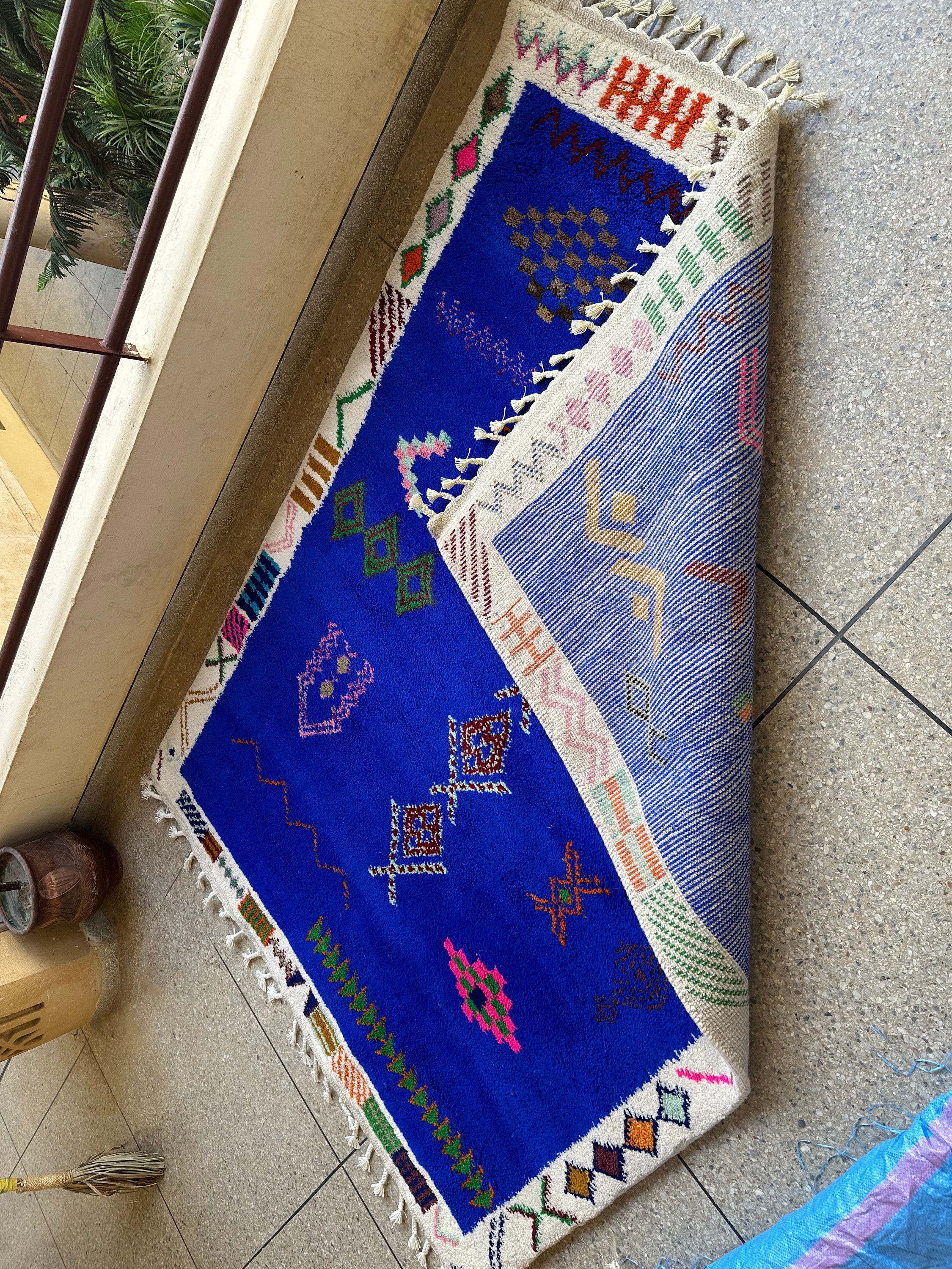 Elevate your space with this stunning Royal Blue Rug, featuring a Custom Moroccan Design that adds a touch of elegance. Crafted as an Abstract Beni Ourain Rug, this artisan-made wool piece showcases the beauty of Berber Floor Art. Perfect for any boho-chic decor, it provides timeless comfort to your home. Each rug is unique, ensuring your decor stands out. Transform your space with this exquisite blend of tradition and modern style. Perfect for living rooms, bedrooms, or cozy nooks!