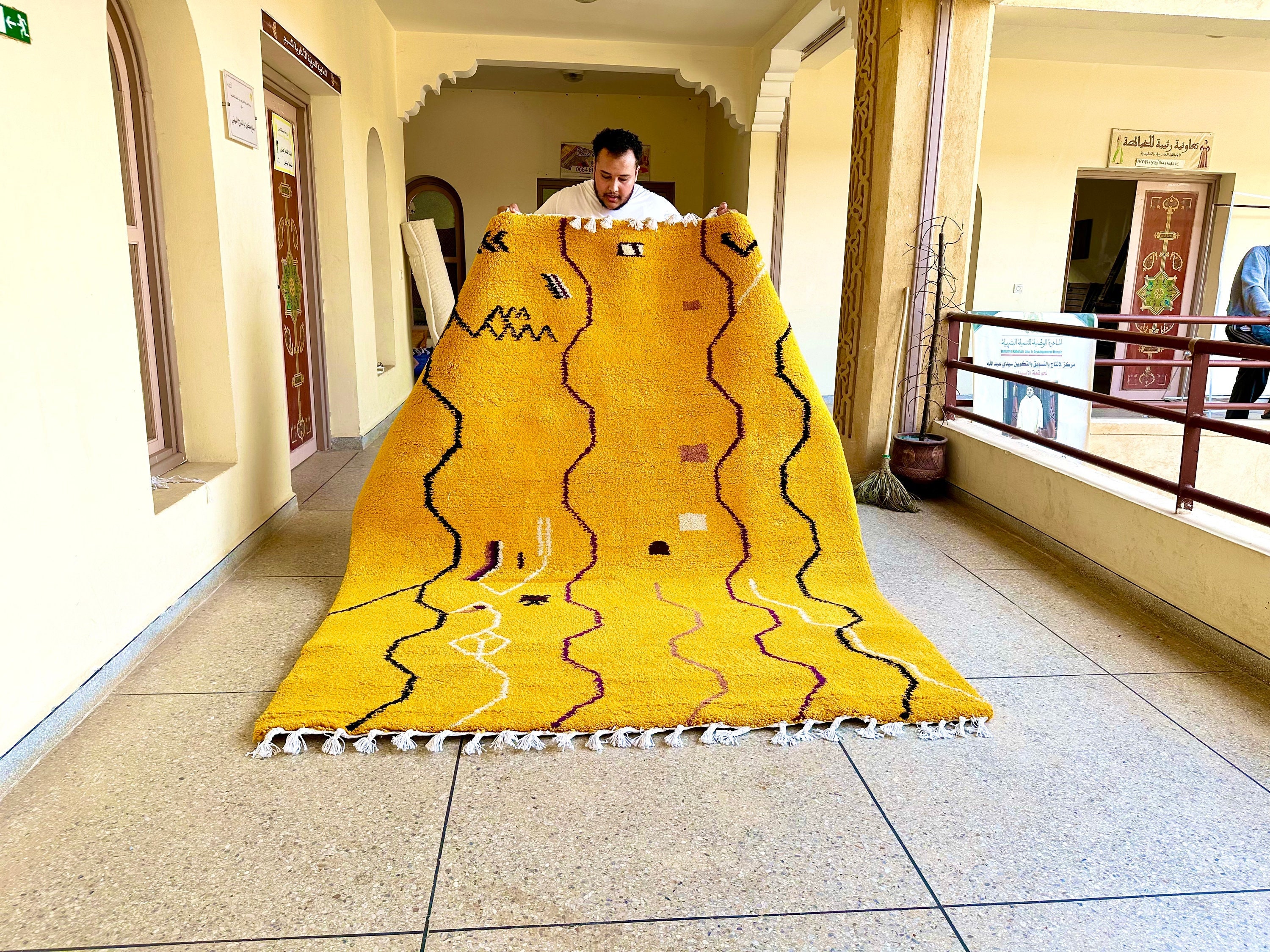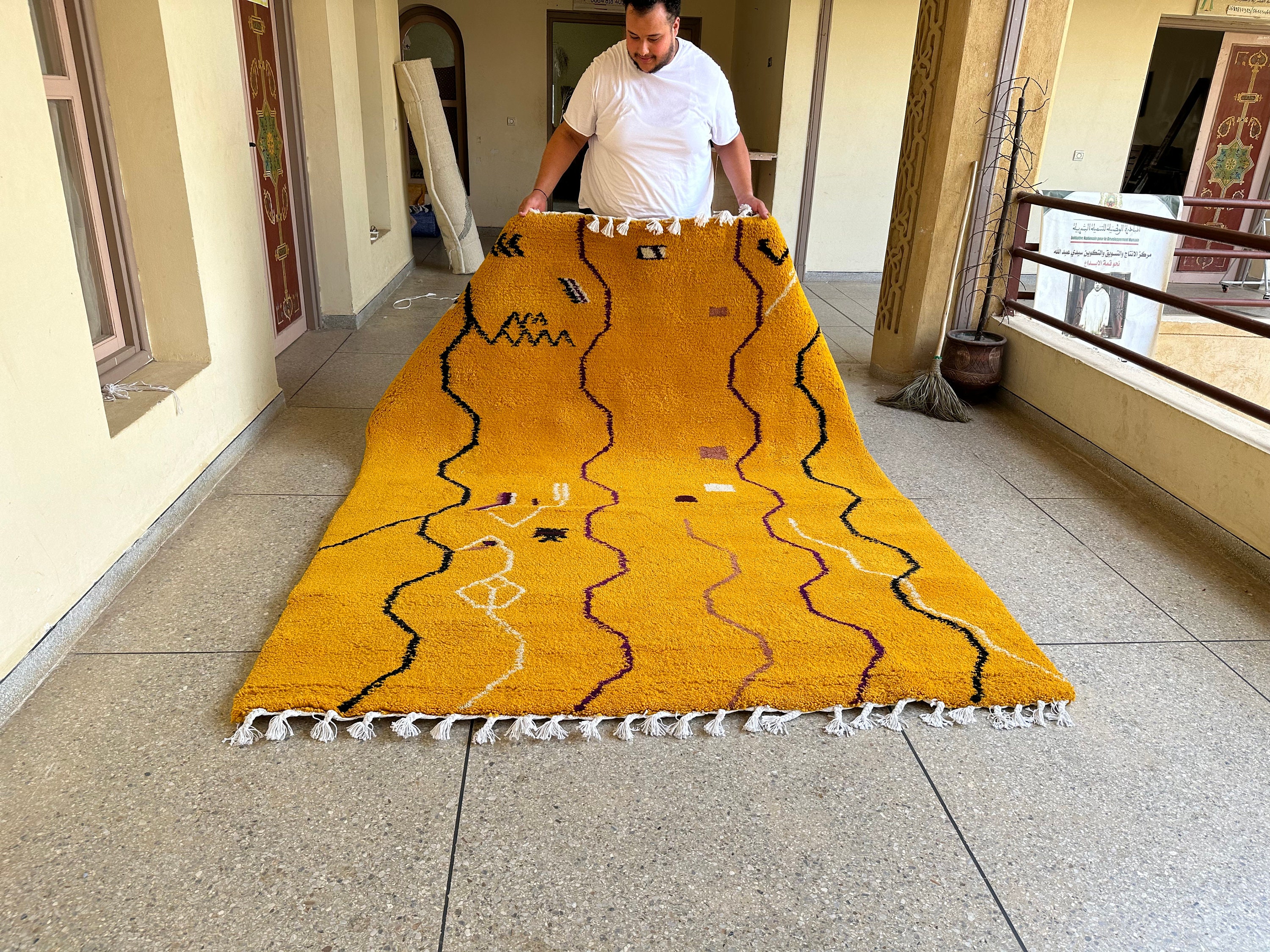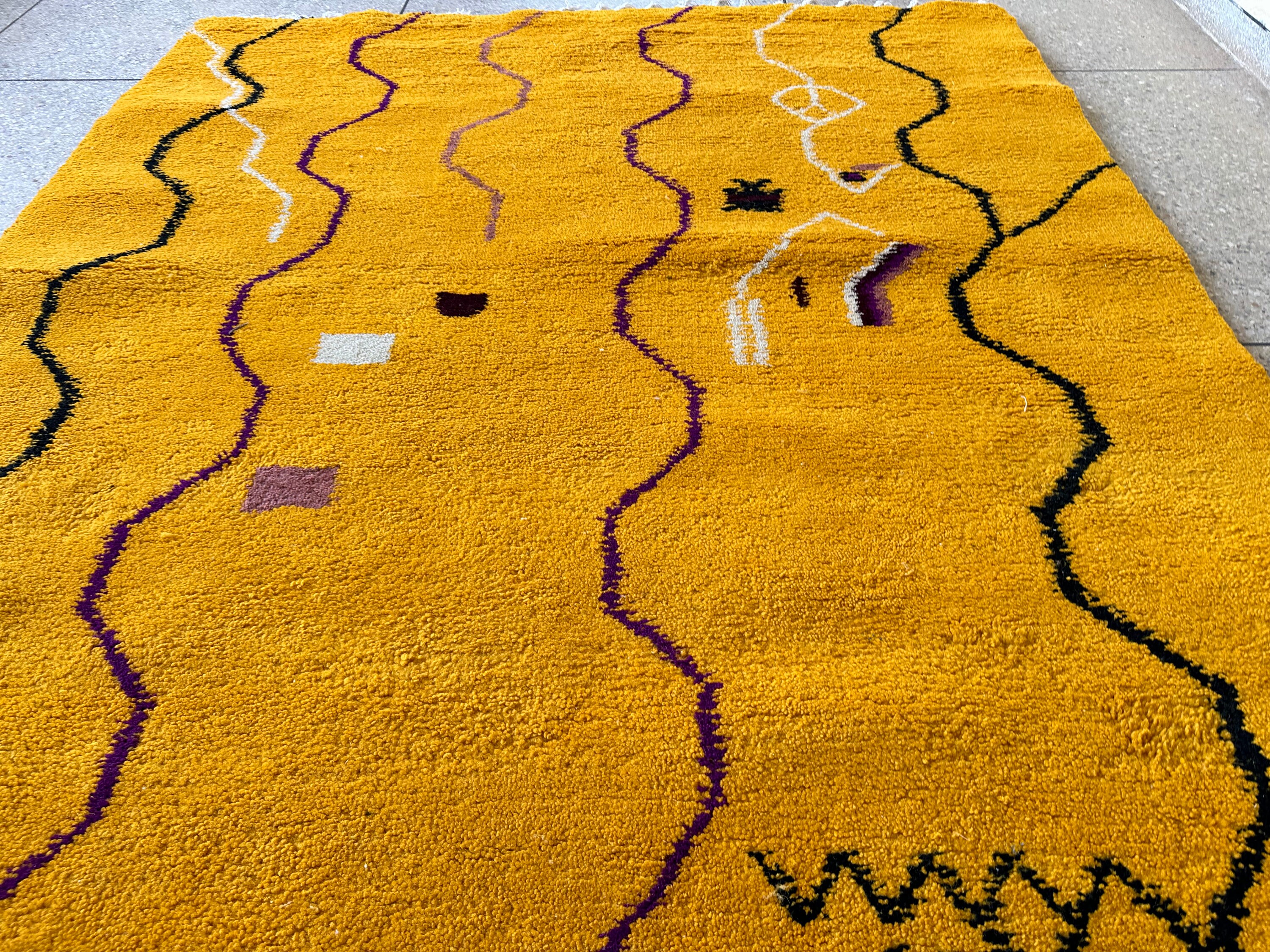 Lux Mustard Area Rug, Moroccan Abstract Wool Carpet, Custom Handmade Berber Yellow Beni Ourain Rug, High-Quality Shag Area Rug