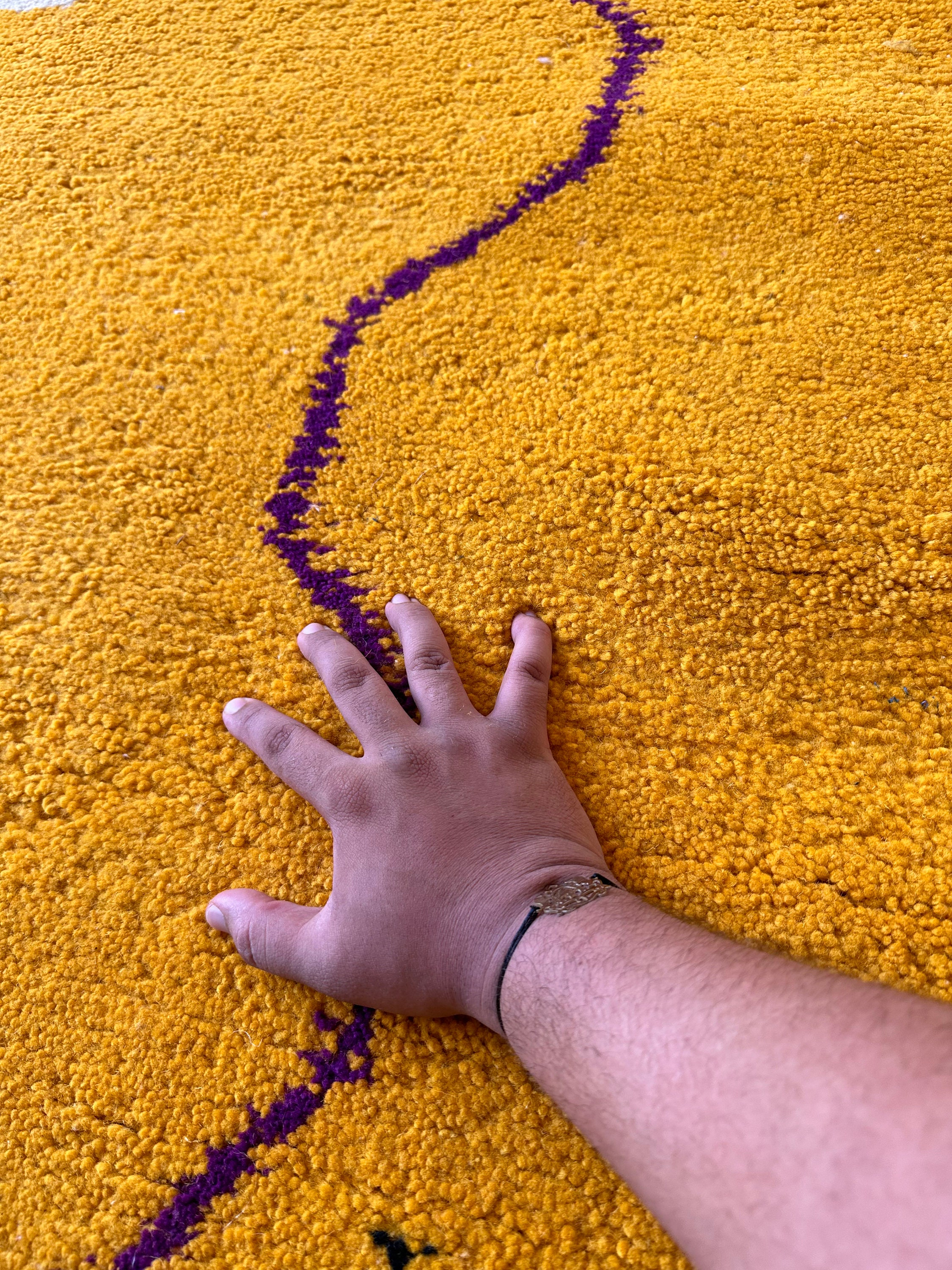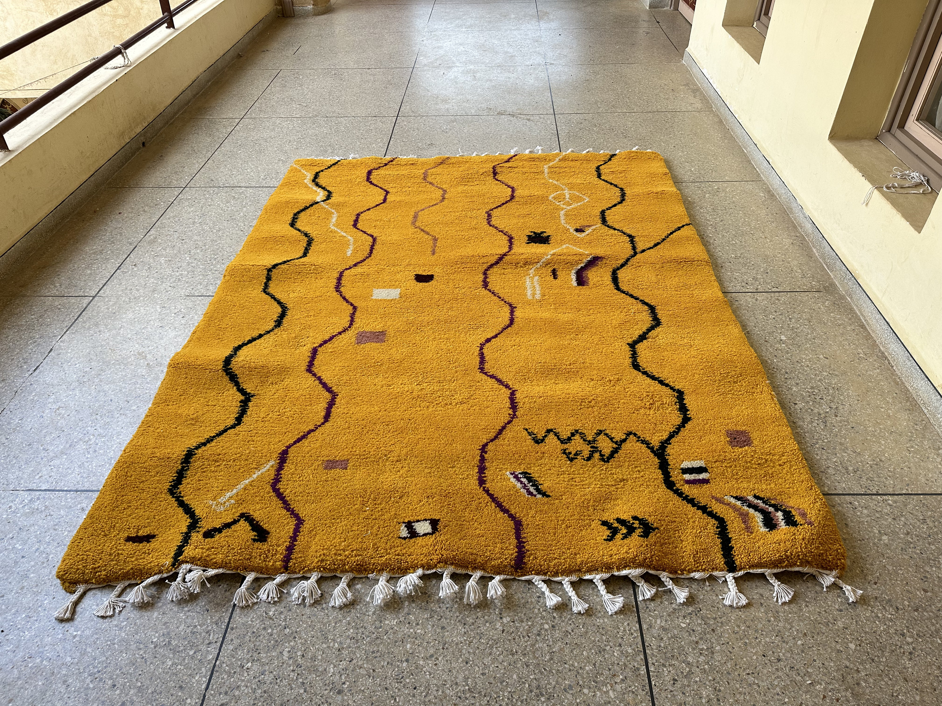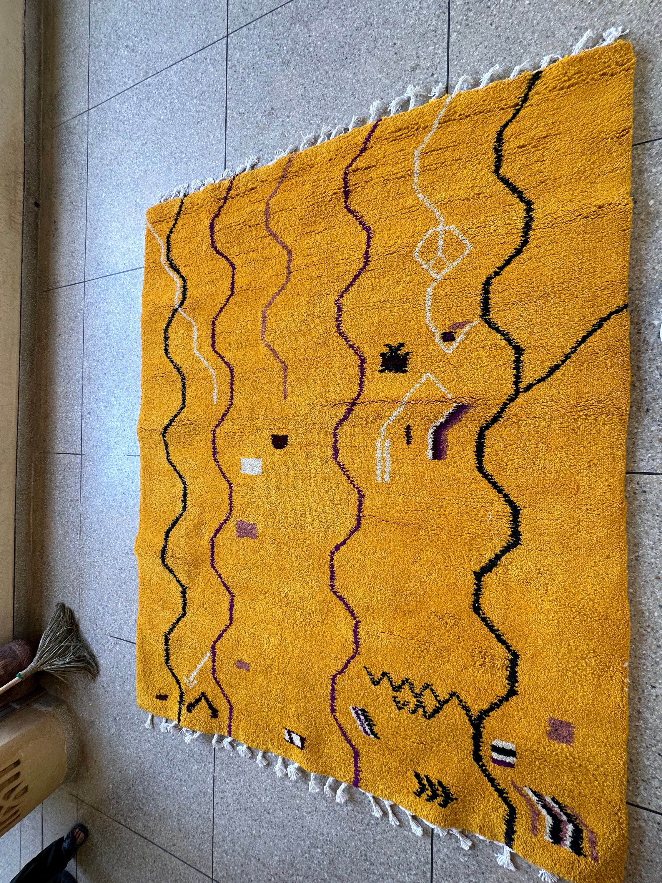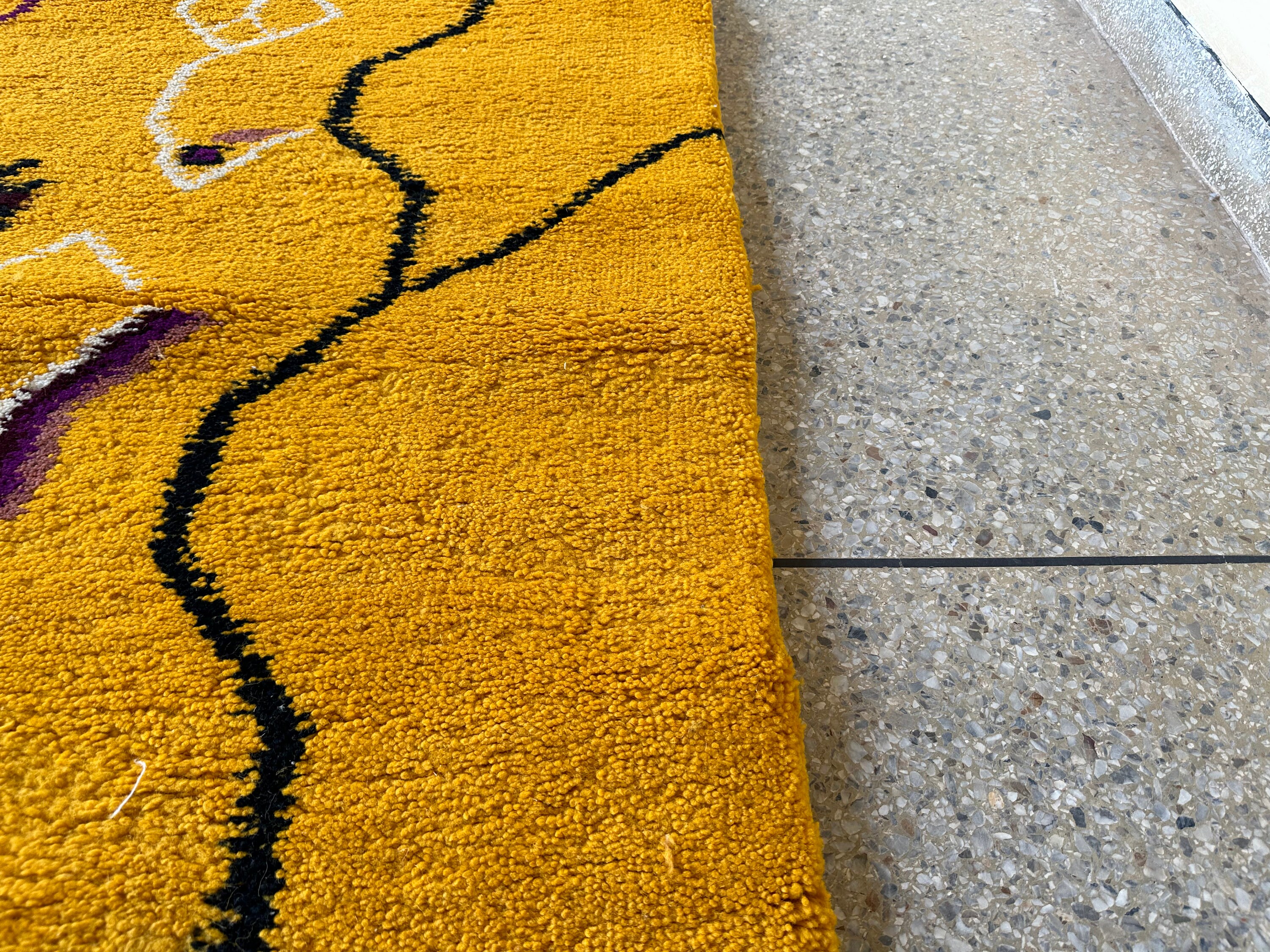 Lux Mustard Area Rug, Moroccan Abstract Wool Carpet, Custom Handmade Berber Yellow Beni Ourain Rug, High-Quality Shag Area Rug