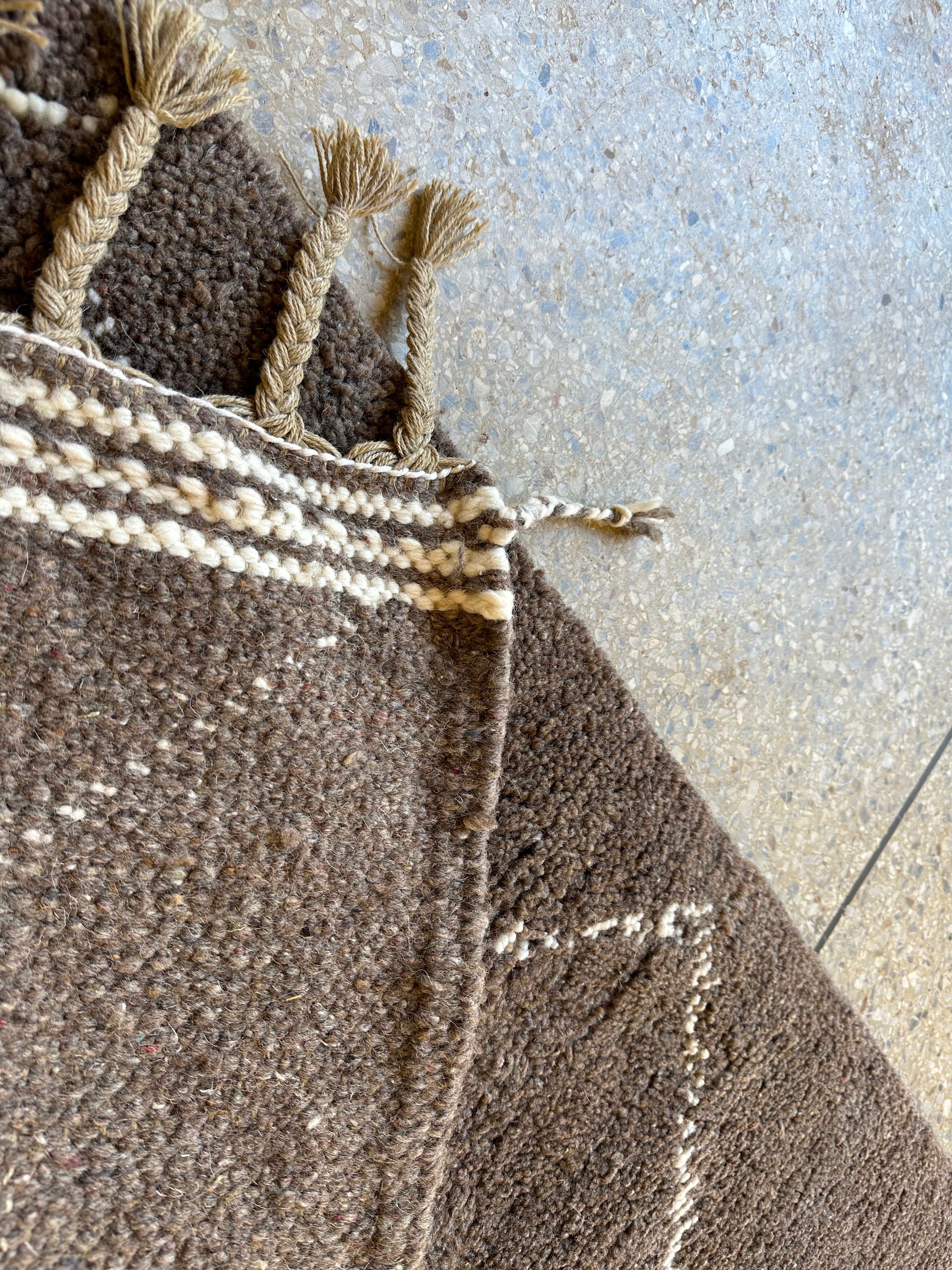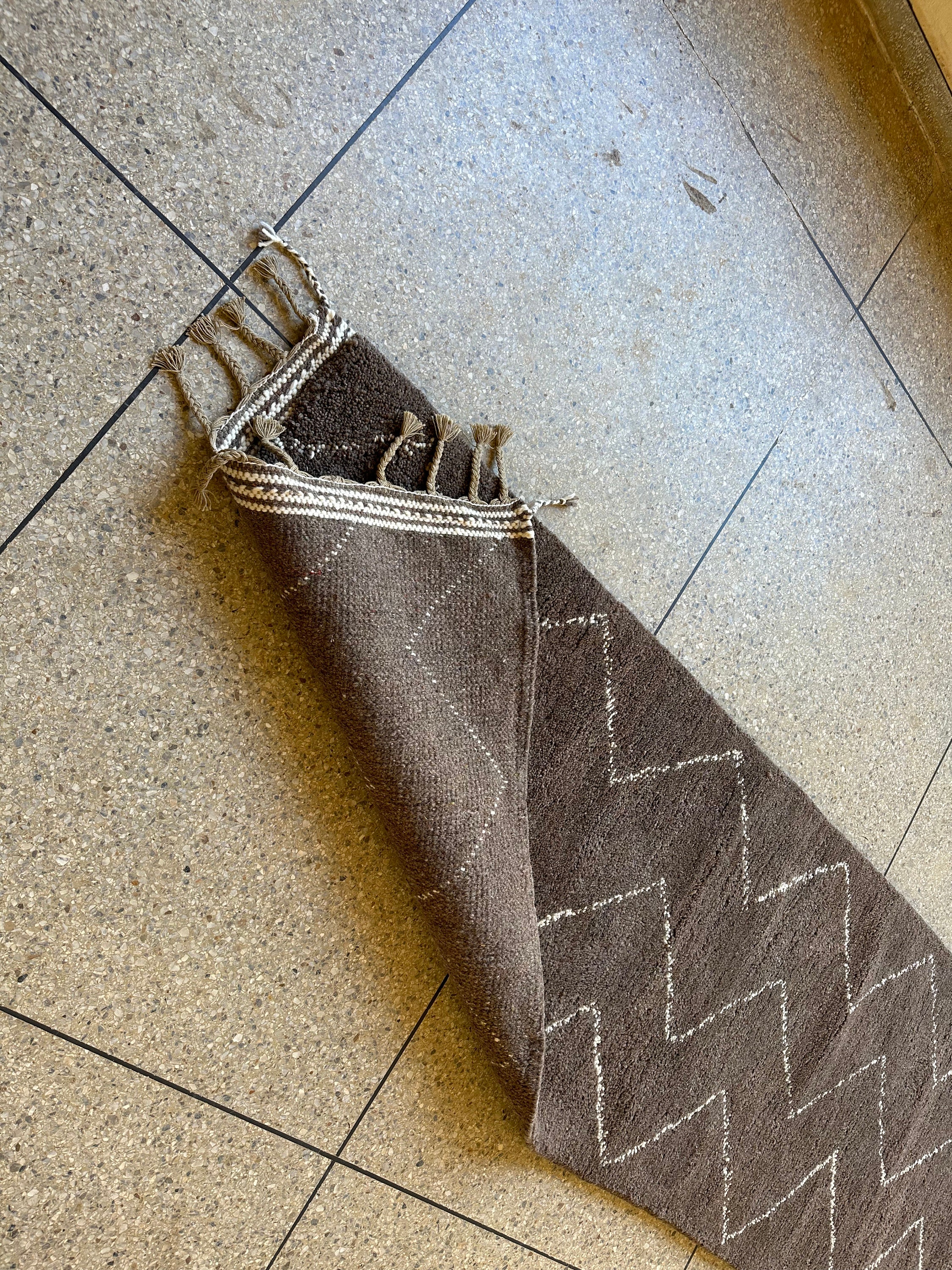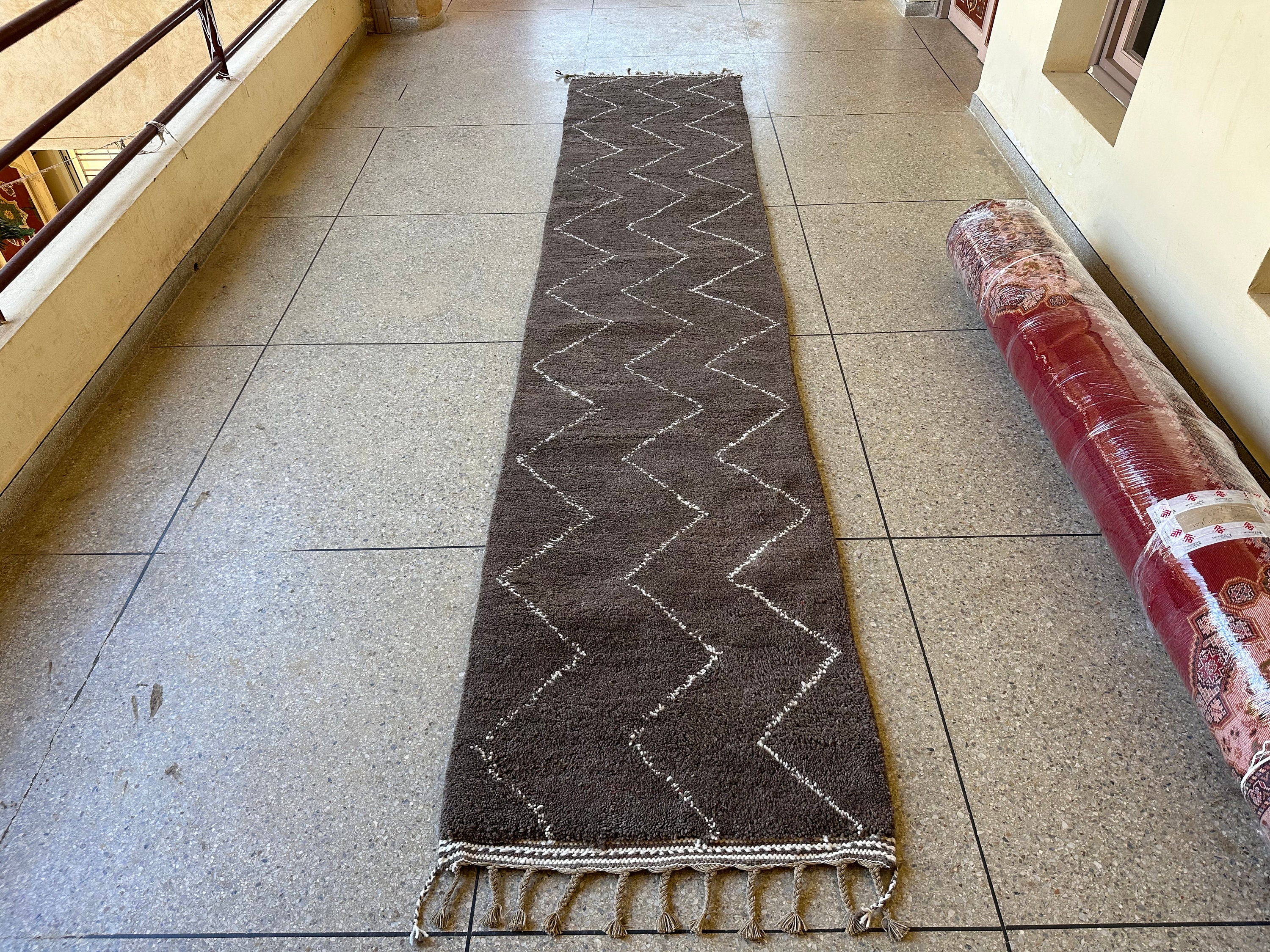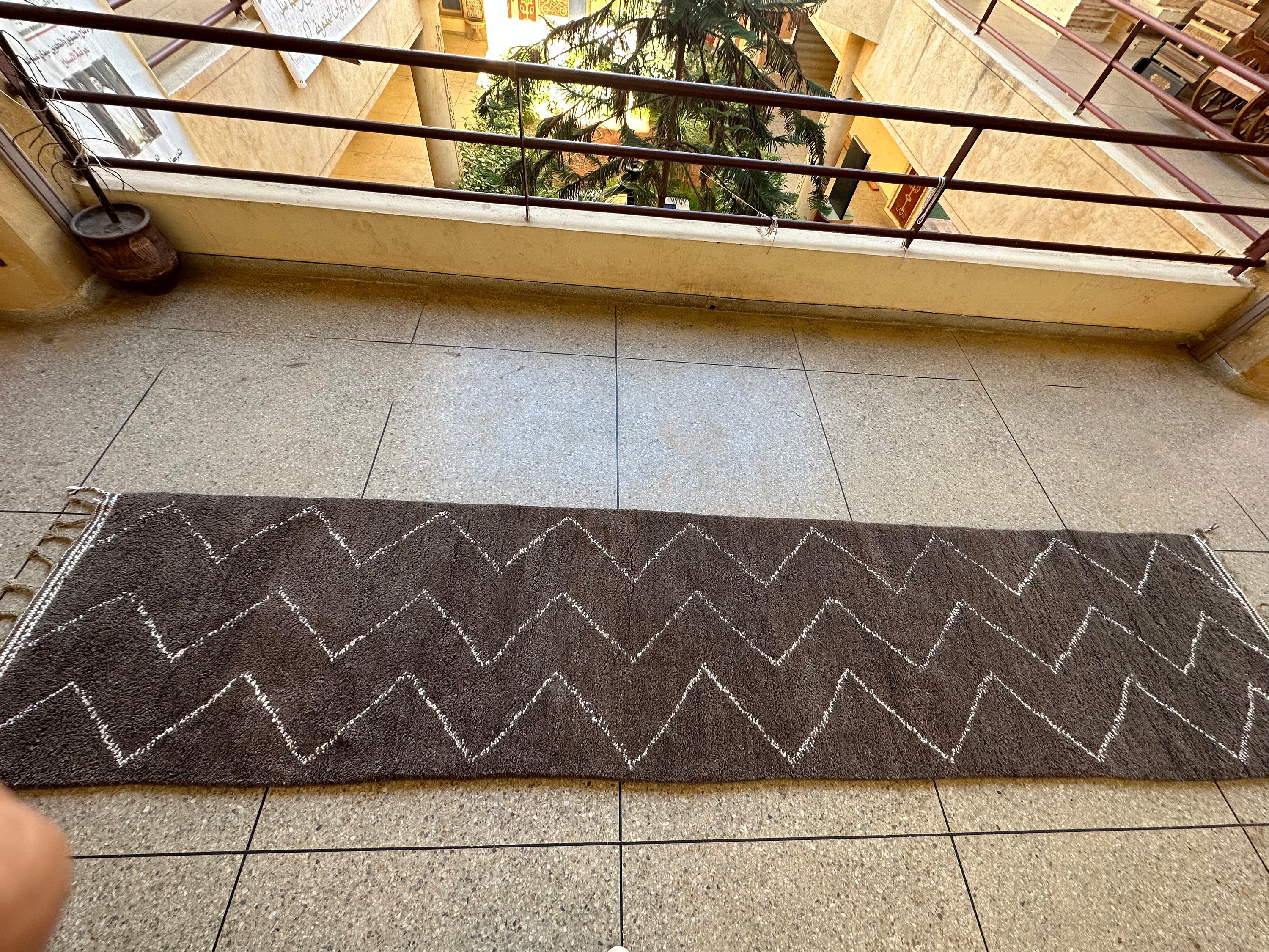 Transform your space with our stunning BENI OURAIN RUNNER, a soft chic Moroccan rug that brings warmth and style to any room. Handwoven by skilled artisans, this Berber runner rug features a long white and brown design—perfect for hallways or living areas. The abstract pattern highlights the natural beauty of wool, both offering comfort and elegance. Elevate your decor with this unique piece that effortlessly blends tradition with modern aesthetics. Experience luxury underfoot with this beautiful addition to your home!
