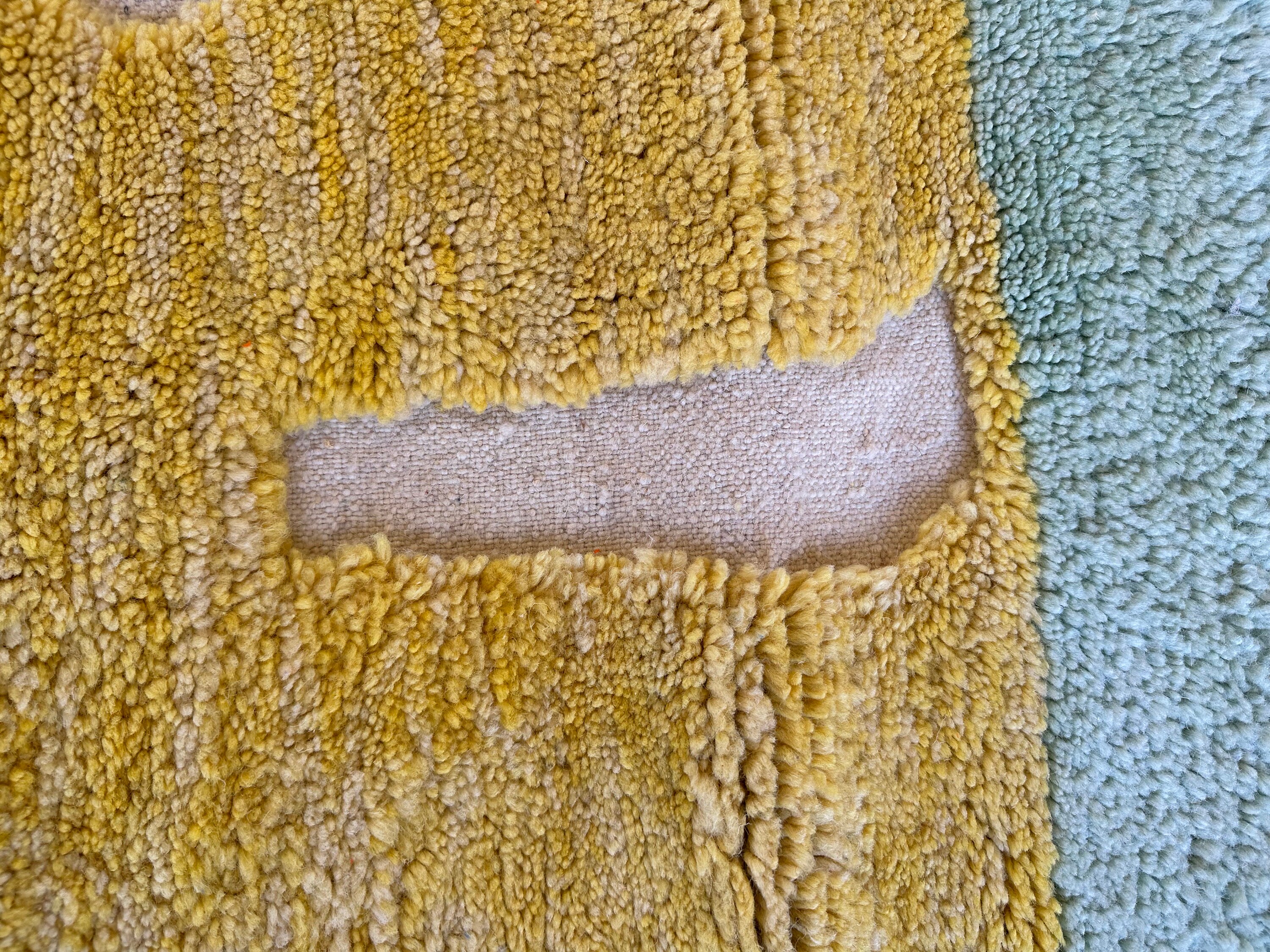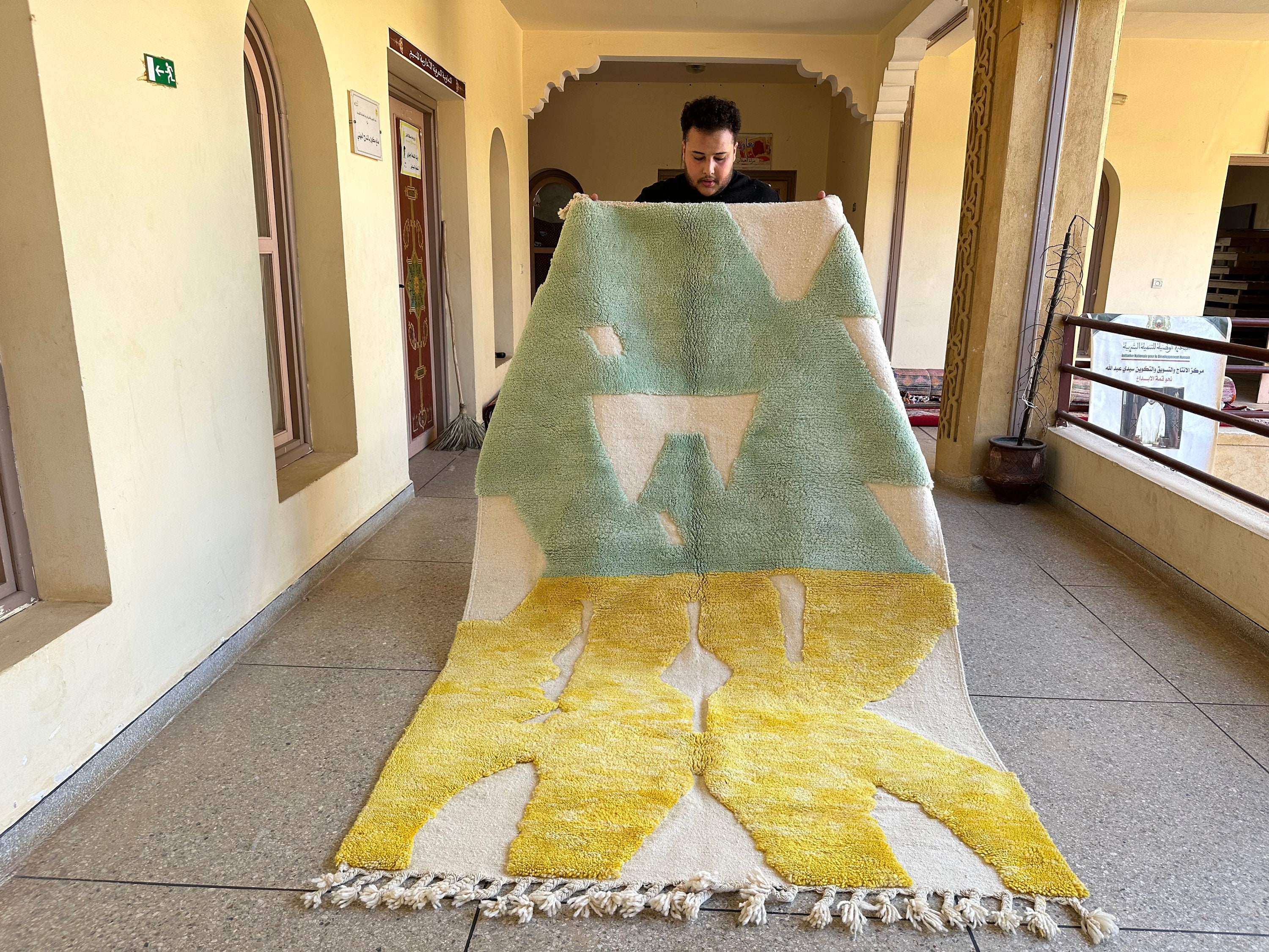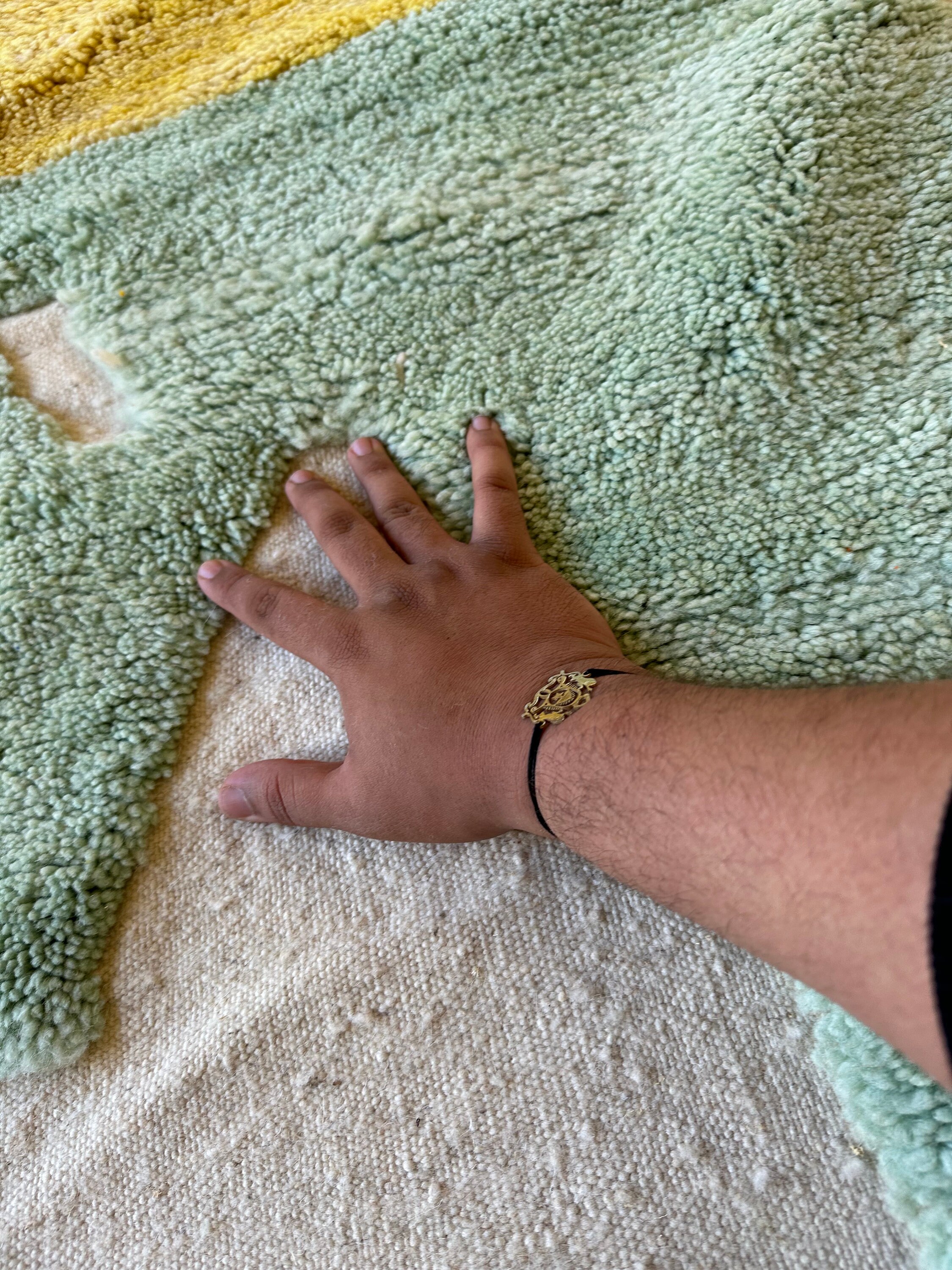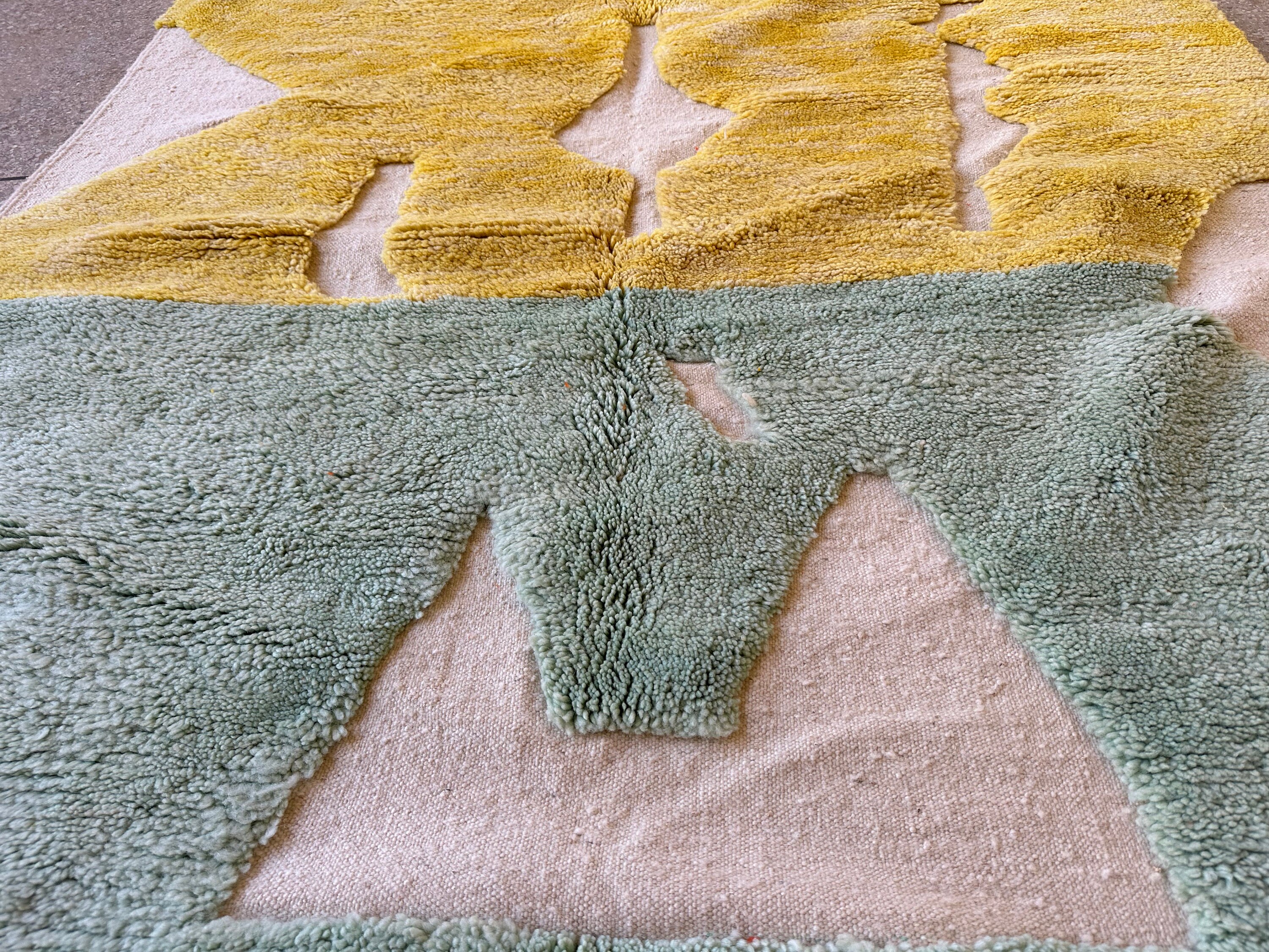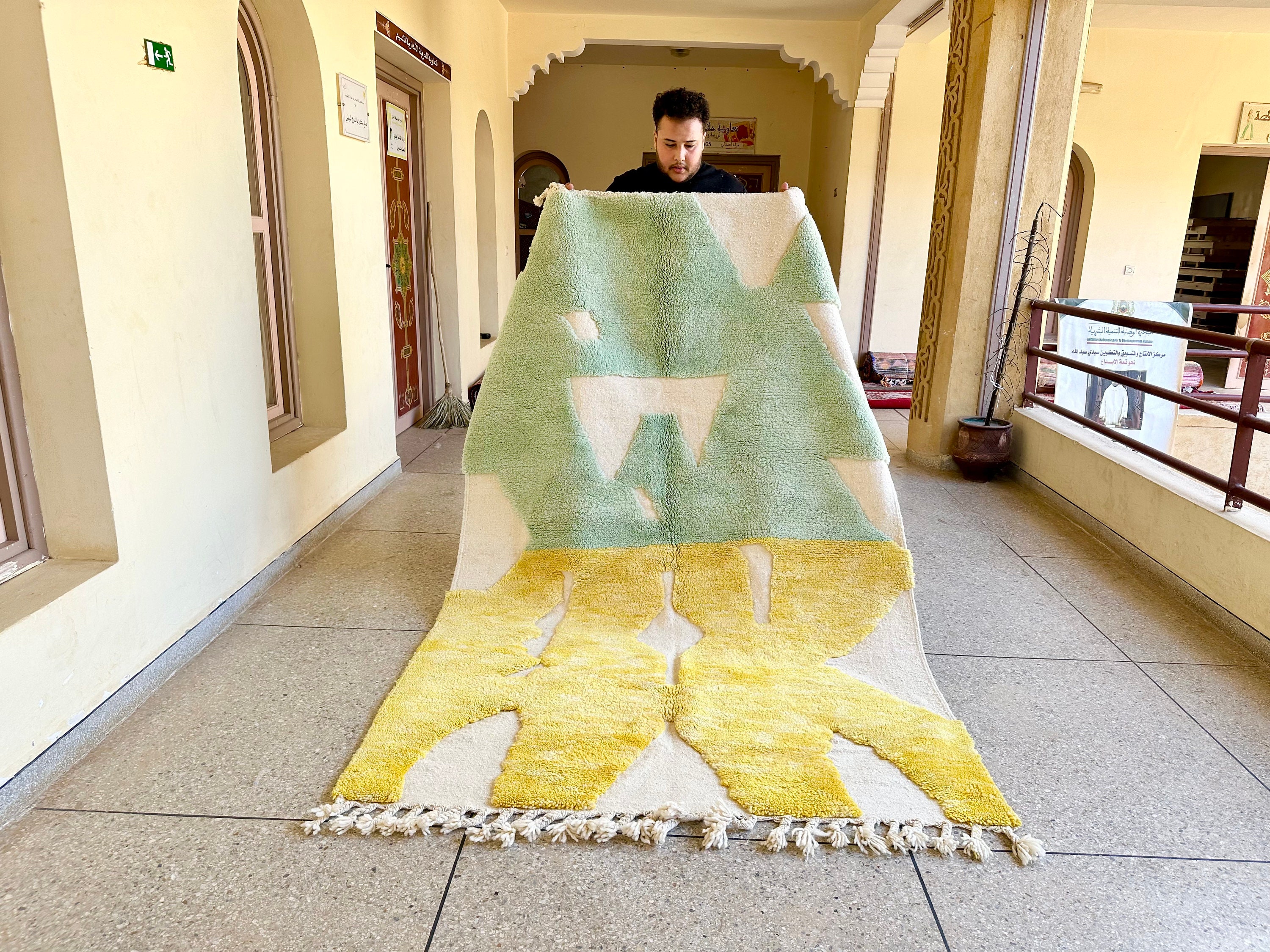 Elevate your space with our stunning Beni Ourain Carpet, a testament to artisan craftsmanship. This Custom Moroccan Rug is hand-tufted for a plush feel and features a unique blend of green and yellow wool, perfect for adding a modern bohemian touch to any room. Each Handmade Berber Carpet is a one-of-a-kind piece, ensuring your decor is both stylish and distinctive. Transform your home with this exquisite area rug that combines comfort and contemporary design seamlessly!