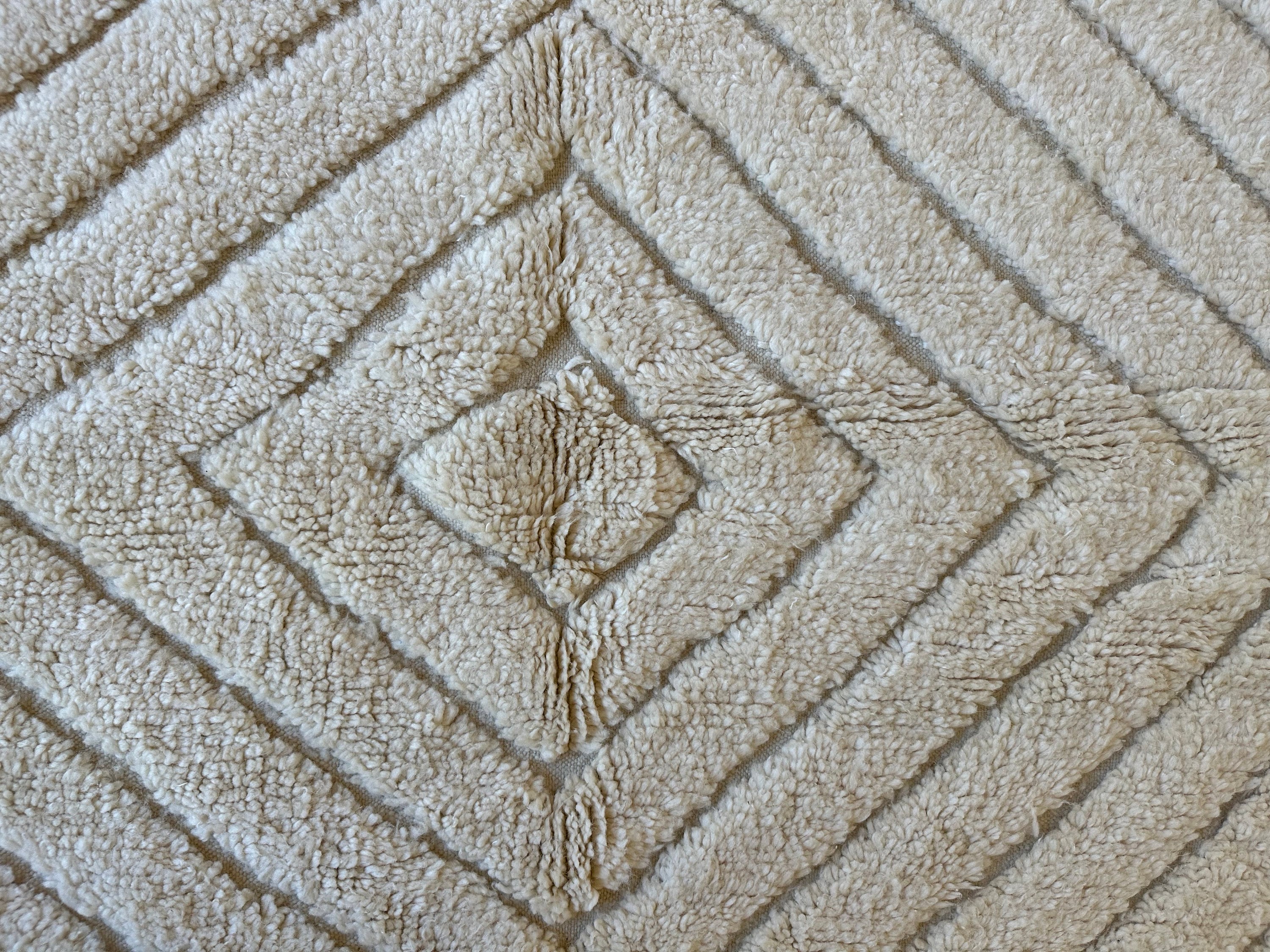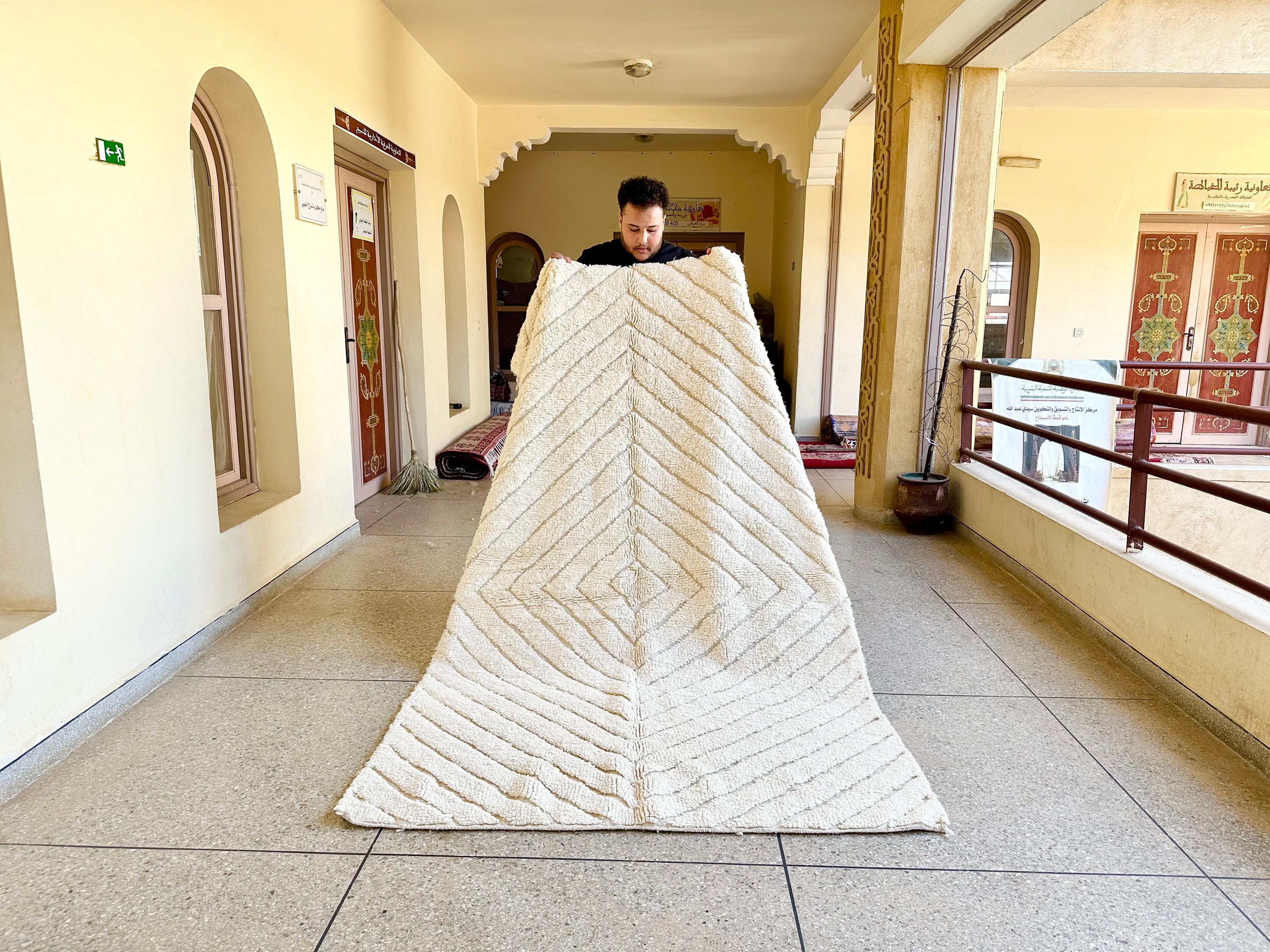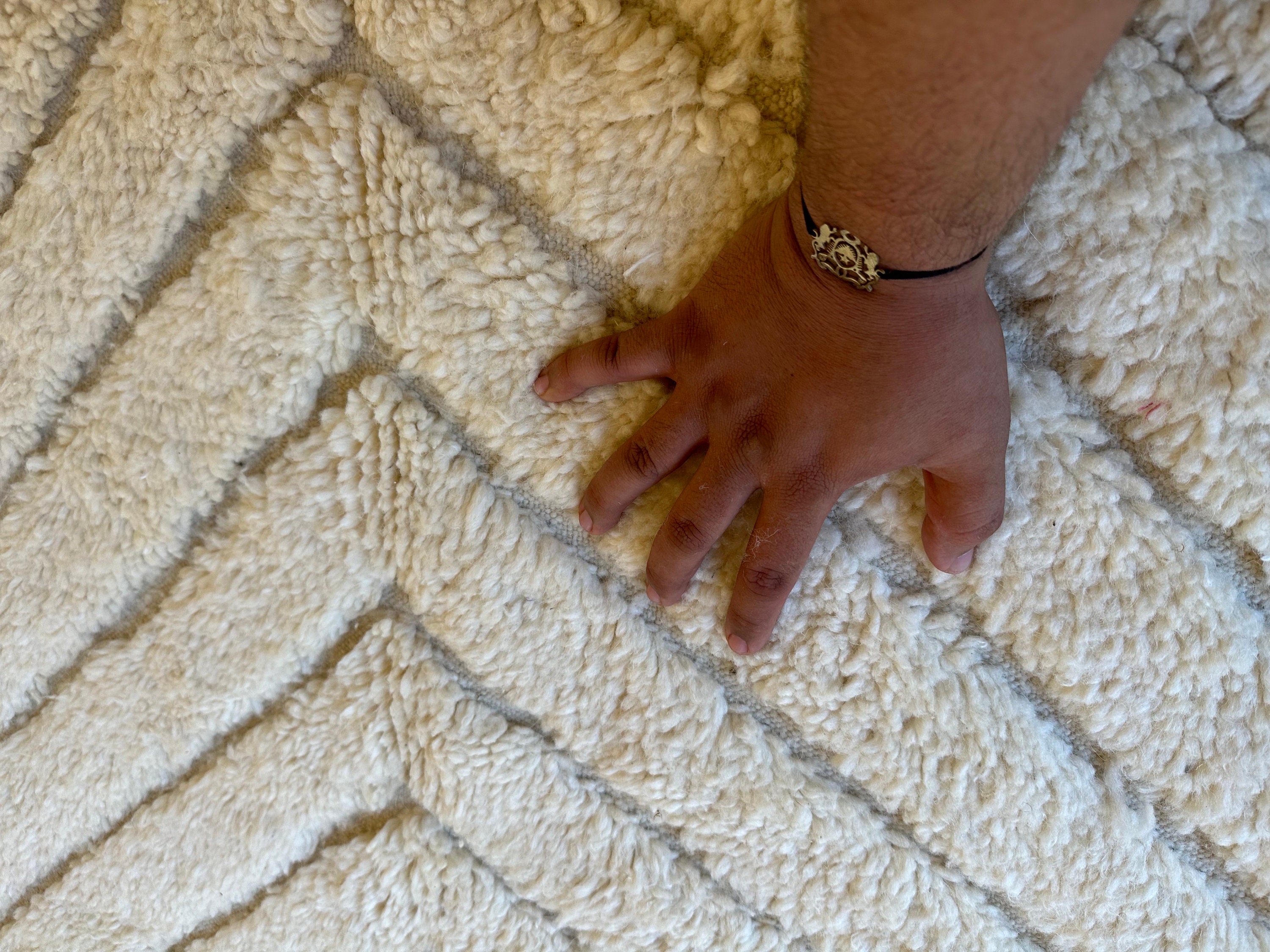 Experience the essence of Moroccan heritage with our 100% authentic Beni Ourain rugs, meticulously handcrafted by Berber artisans from the Atlas Mountains. Made from locally sourced, natural sheep wool, these rugs are both luxurious and eco-friendly, embodying a blend of comfort, elegance, and cultural richness. Their timeless designs and soft, plush texture make them an ideal choice for any home.