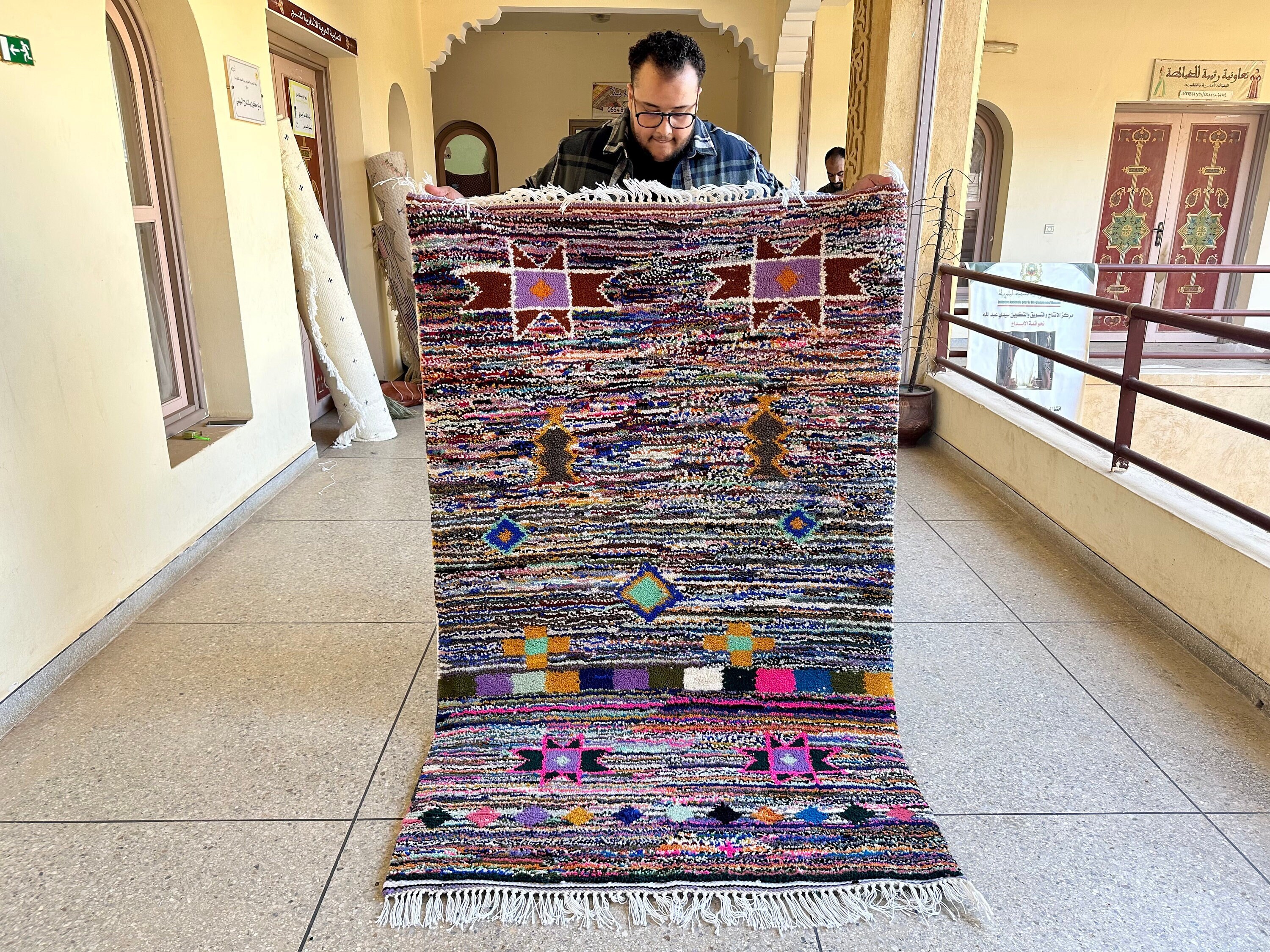 .MOROCCAN HANDMADE CARPET, Handmade Boujaad Rug, Azilal rug, 6x4Tribal Abstract Rug, Handmade Wool Rug, Moroccan Berber Carpet, Colorful Rug.