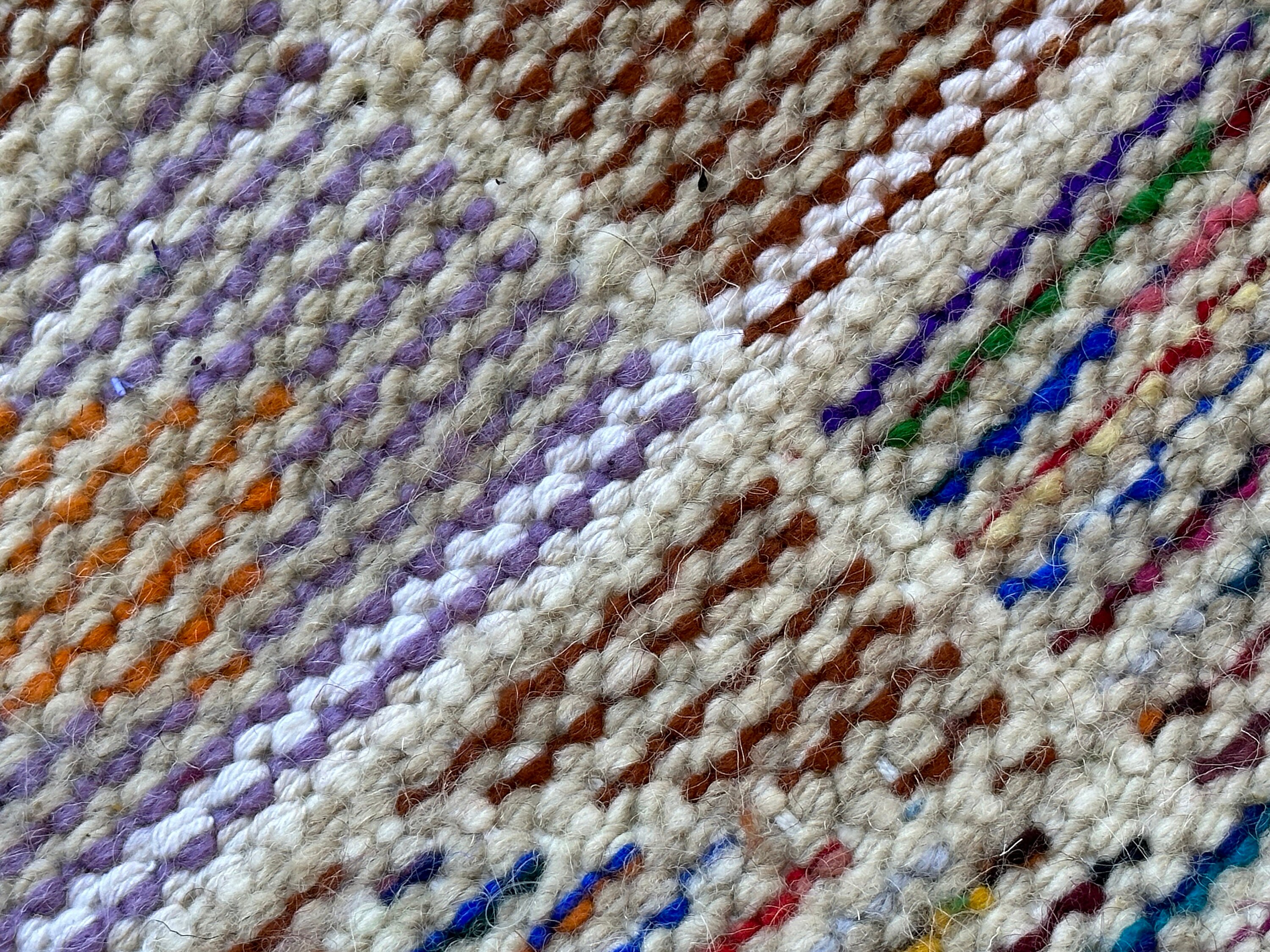 This fabulous Moroccan Rug that will give your room both a cozy feeling and stylish is made from 100% Natural sheep wool, It's Very plush and comfy to walk on, actually It's Heaven for your feet.