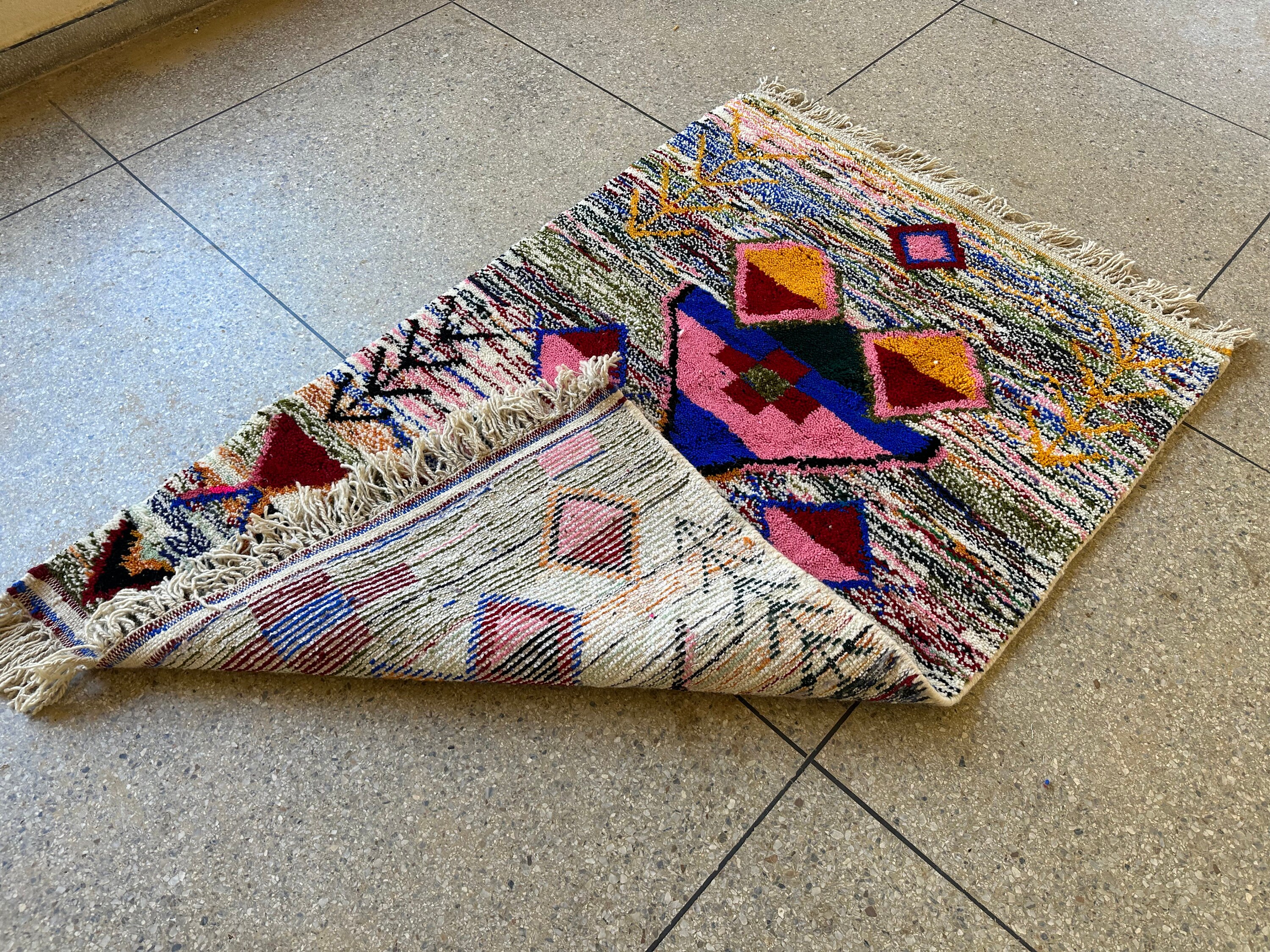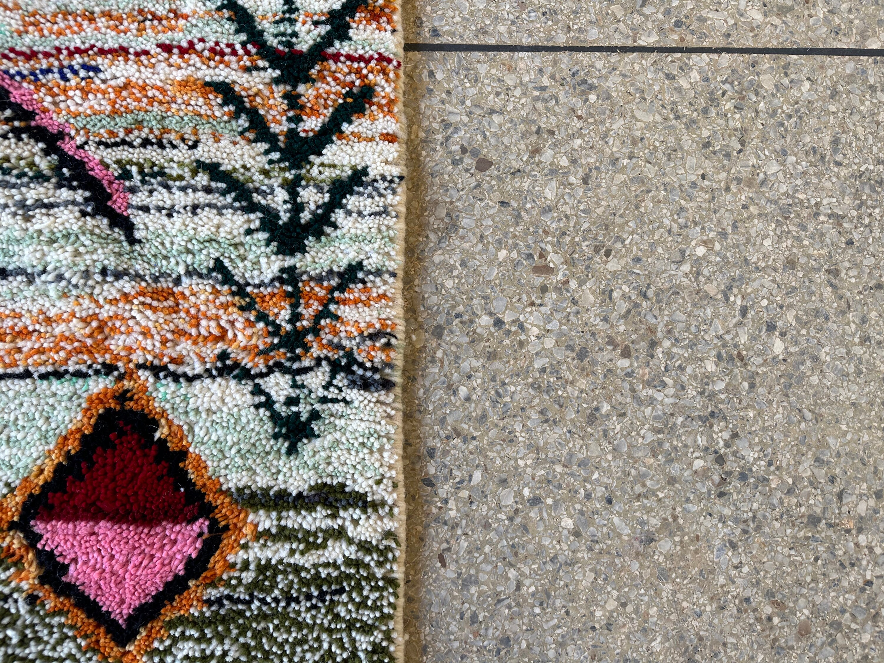 This fabulous Moroccan Rug that will give your room both a cozy feeling and stylish is made from 100% Natural sheep wool, It's Very plush and comfy to walk on, actually It's Heaven for your feet.