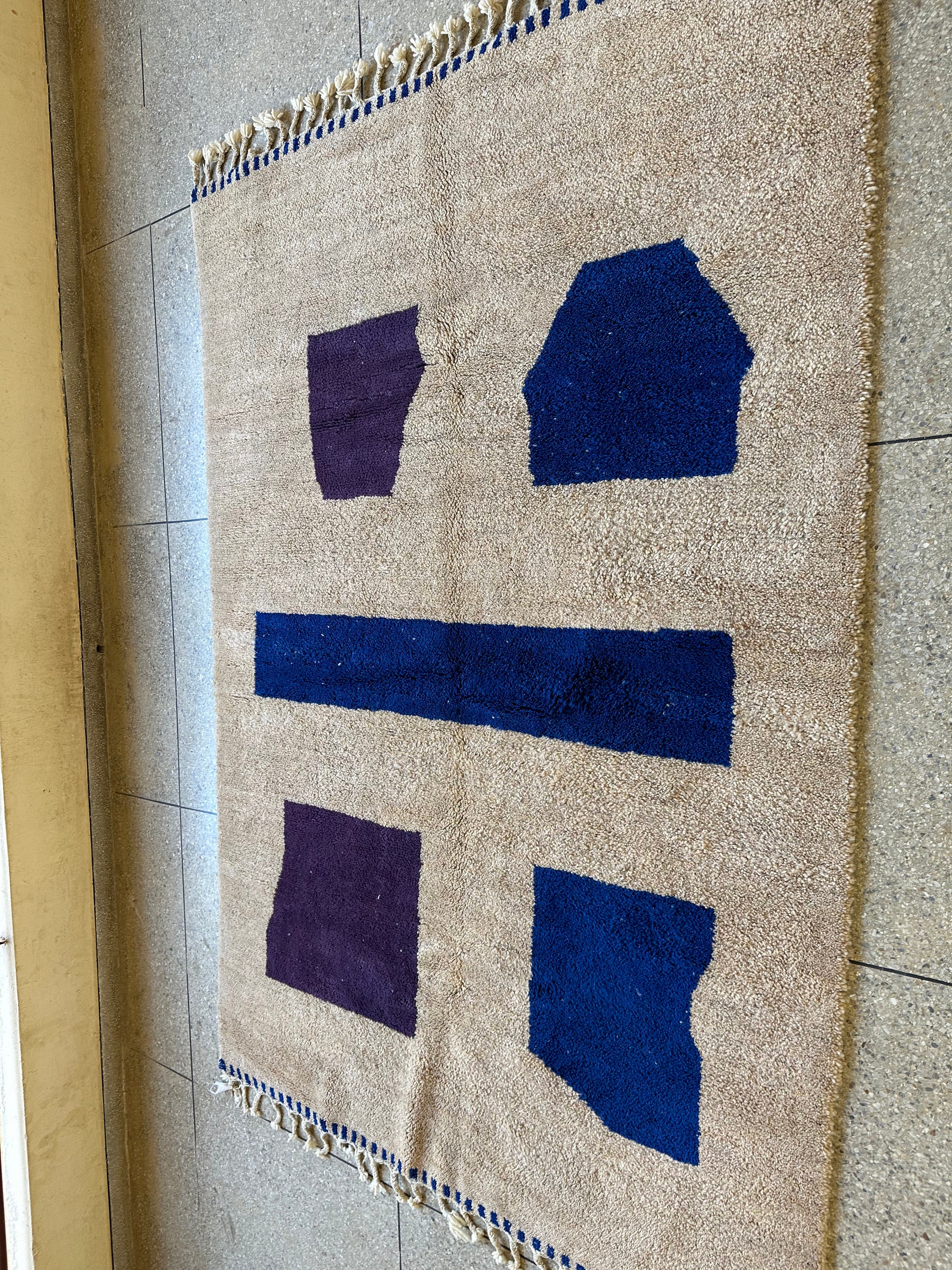 Add warmth and charm to your home with this brown and blue abstract Beni Ourain rug. Handmade from soft sheep wool, this cozy area rug is perfect for bedrooms, living rooms, kids’ rooms, or nurseries. Its timeless design and eco-friendly materials make it a stylish and sustainable choice for boho-chic decor. Elevate your space with this luxurious, artisan-crafted Moroccan rug today!