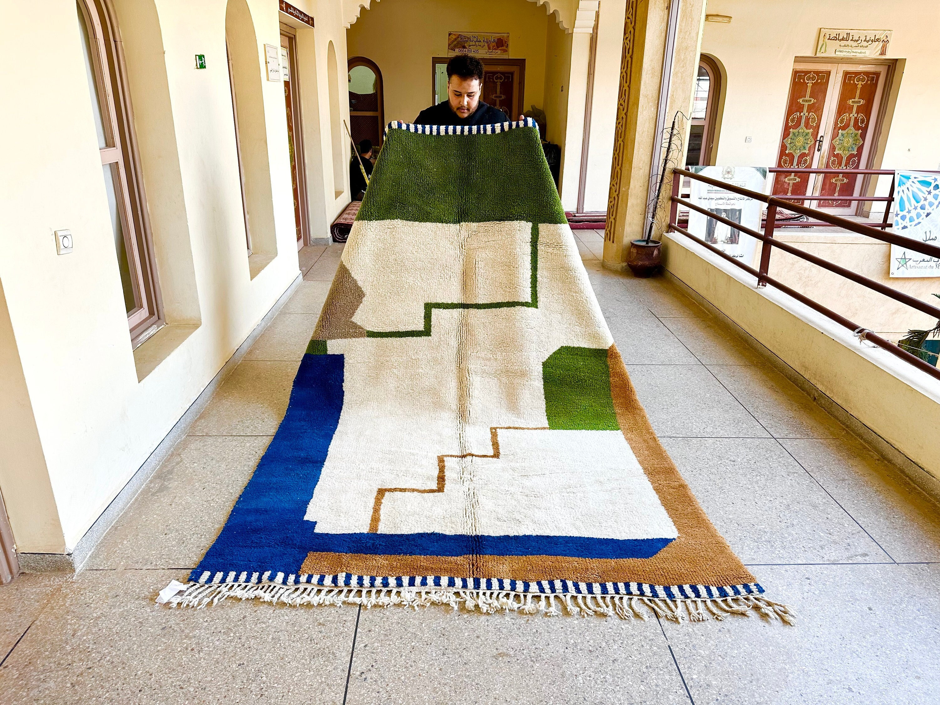 Elevate your space with this PRETTY MOROCCAN RUG! Handmade with care, this Beni Ourain Rug features a Boho White & Green design that brings a touch of elegance to any room. Custom Abstract patterns add unique charm to this Berber Handwoven Wool Rug, creating a Cozy Chic vibe in your home. Brighten up your space with this stylish Area Rug today!