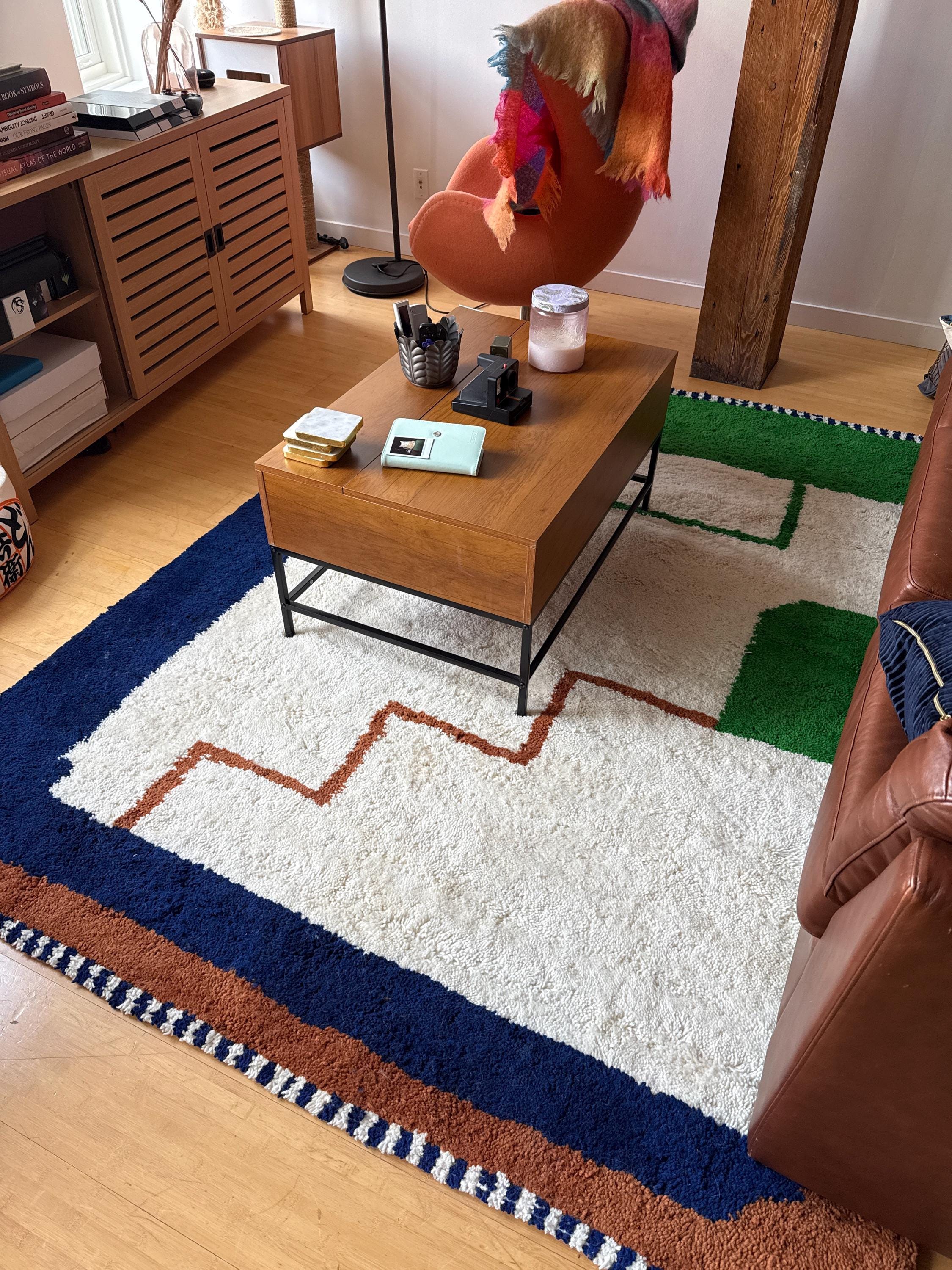 "Transform your home with a piece of Moroccan heritage that exudes both elegance and warmth 🌟. Whether placed under your sofa 🛋️, in your bedroom 🛏️, or even as a wall hanging 🖼️, these rugs invite a sense of history, style, and comfort 🧶✨ Explore our full collection of Beni Ourain, Azilal, and Boucherouite rugs for unique pieces that tell a story 📚💫.”