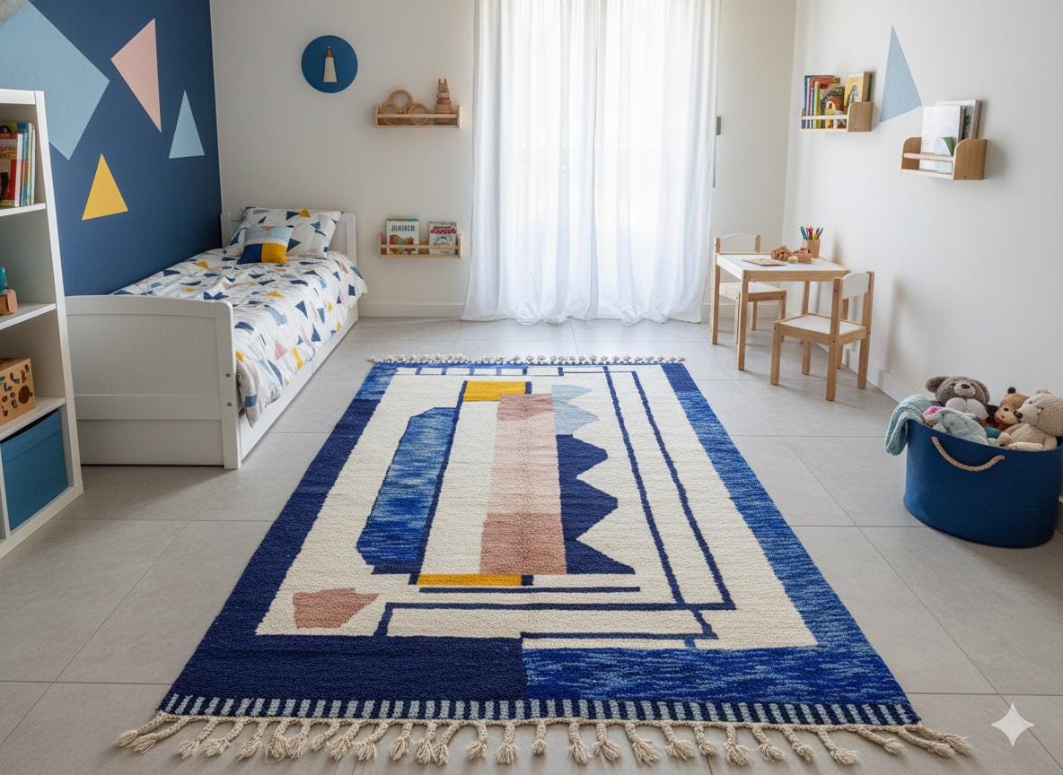 "Transform your home with a piece of Moroccan heritage that exudes both elegance and warmth 🌟. Whether placed under your sofa 🛋️, in your bedroom 🛏️, or even as a wall hanging 🖼️, these rugs invite a sense of history, style, and comfort 🧶✨. Explore our full collection of Beni Ourain, Azilal, and Boucherouite rugs for unique pieces that tell a story 📚💫."