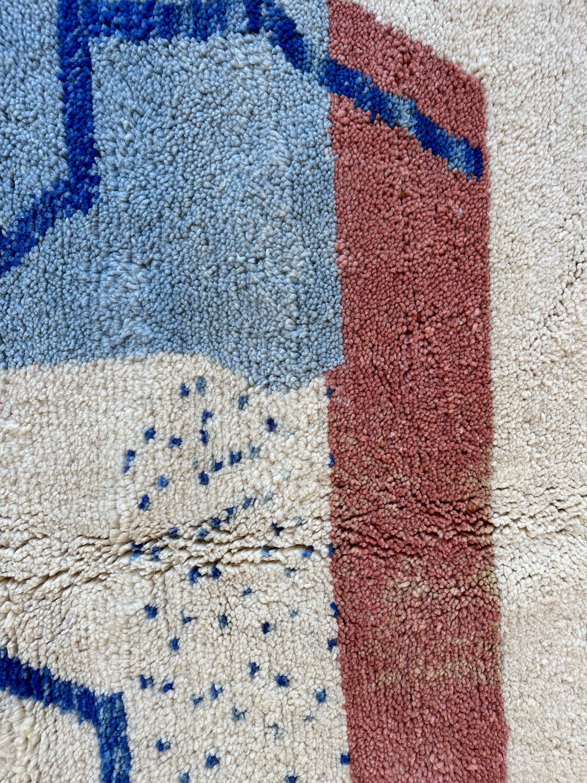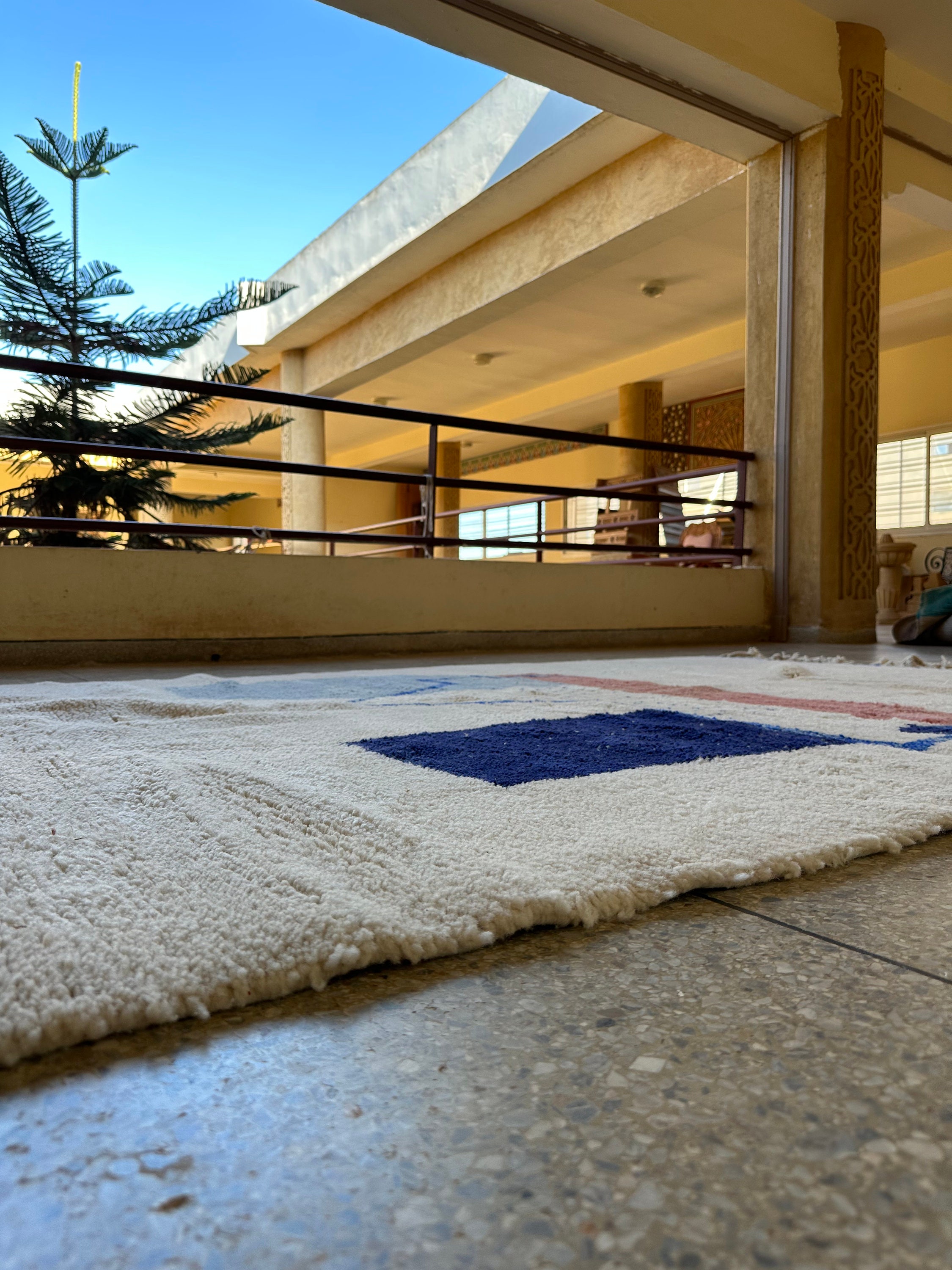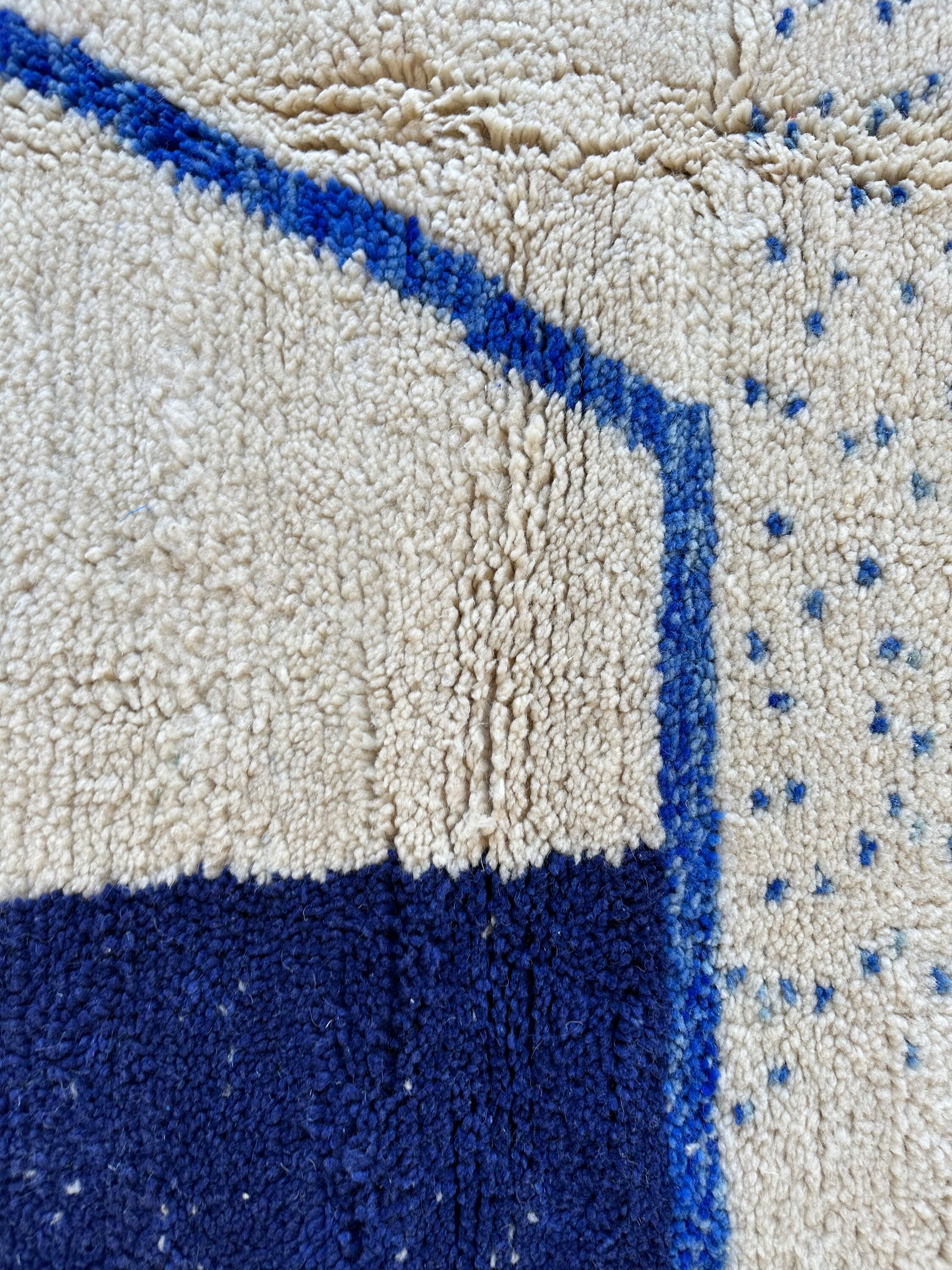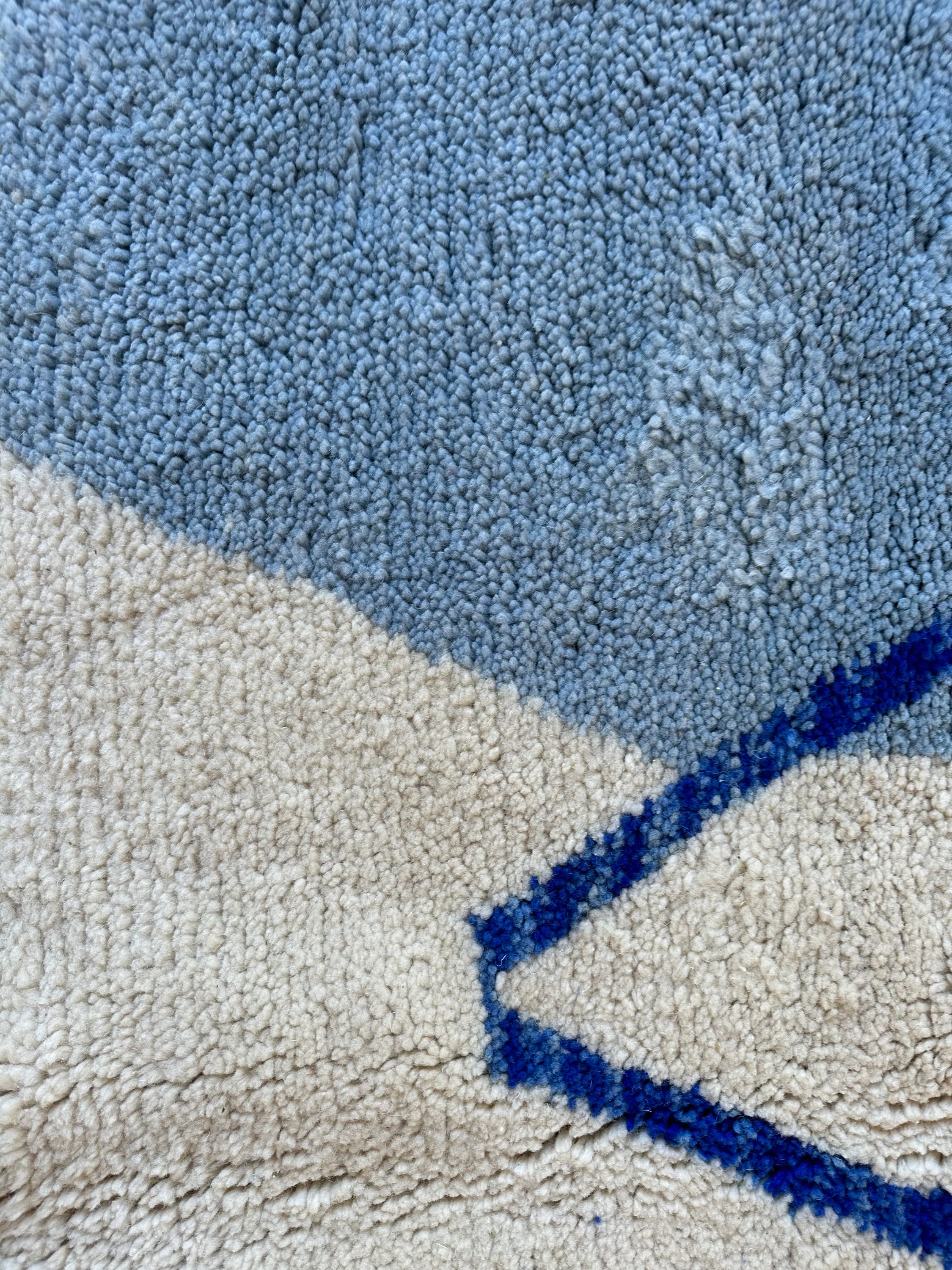 Bring timeless elegance to your space with this stunning blue and white abstract Moroccan rug! Handwoven from the finest sheep wool, this Beni Ourain rug blends bohemian charm with Scandinavian minimalism, making it the perfect statement piece for any modern home. Soft, luxurious, and completely unique, it adds warmth and character to your living room, bedroom, or office. Elevate your decor with a touch of authentic Moroccan craftsmanship—order your custom rug today!