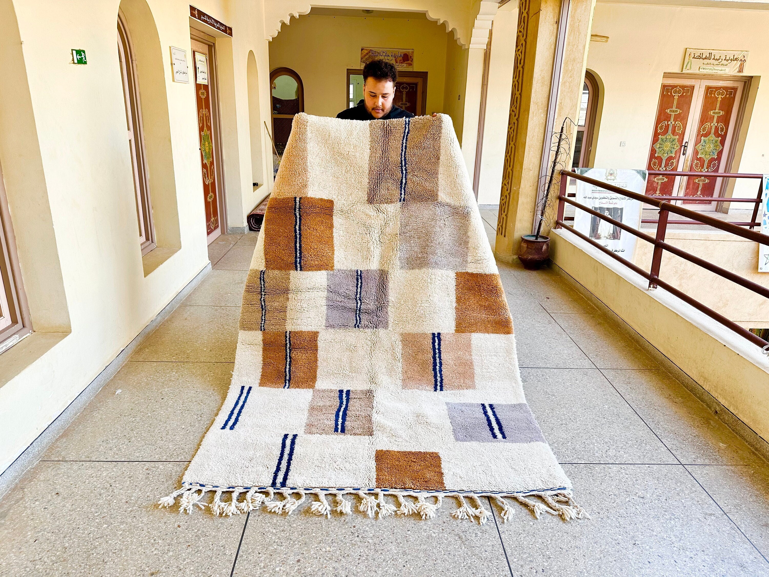 Experience the essence of Moroccan heritage with our 100% authentic Beni Ourain rugs, meticulously handcrafted by Berber artisans from the Atlas Mountains. Made from locally sourced, natural sheep wool, these rugs are both luxurious and eco-friendly, embodying a blend of comfort, elegance, and cultural richness. Their timeless designs and soft, plush texture make them an ideal choice for any home.
