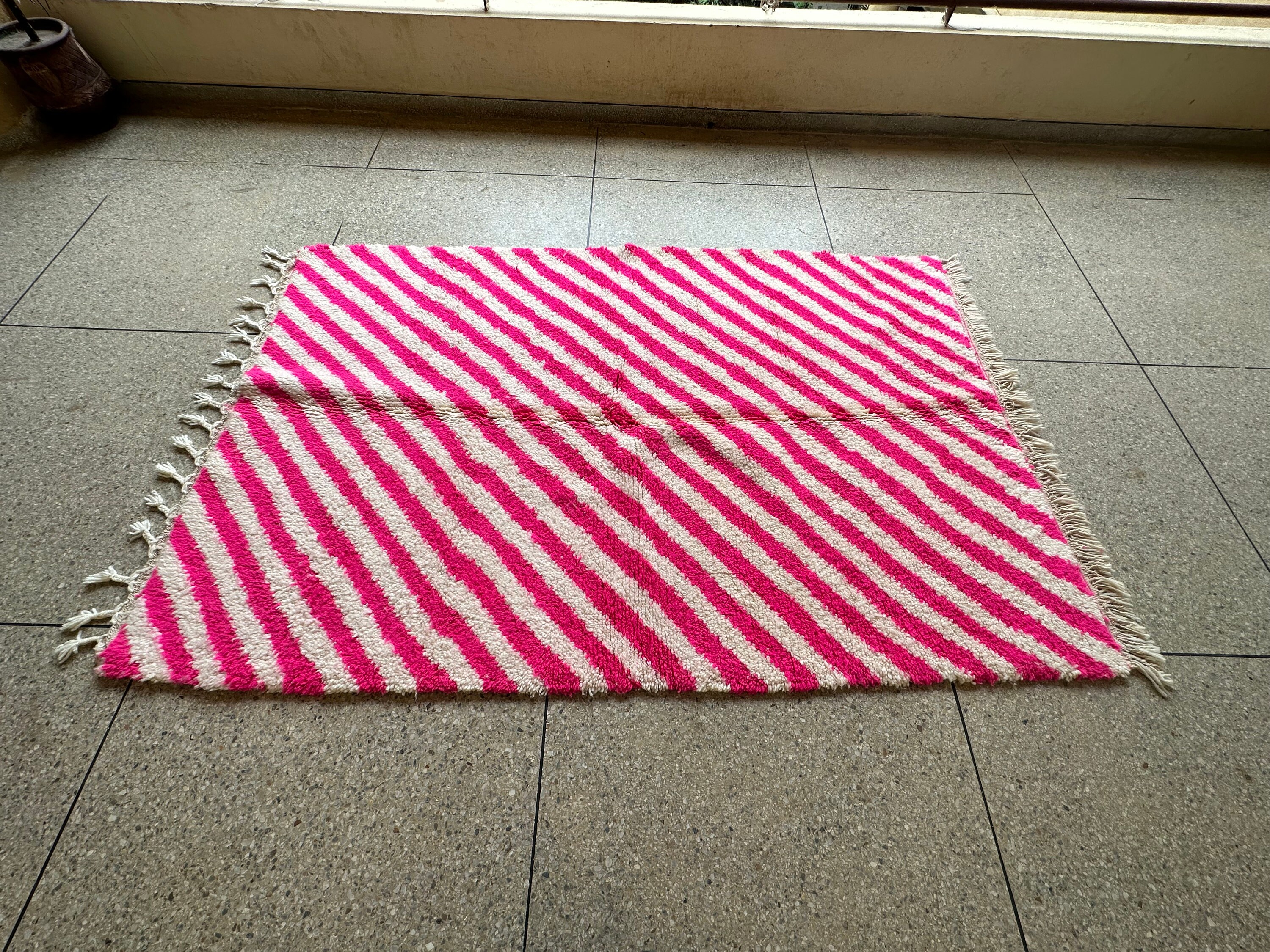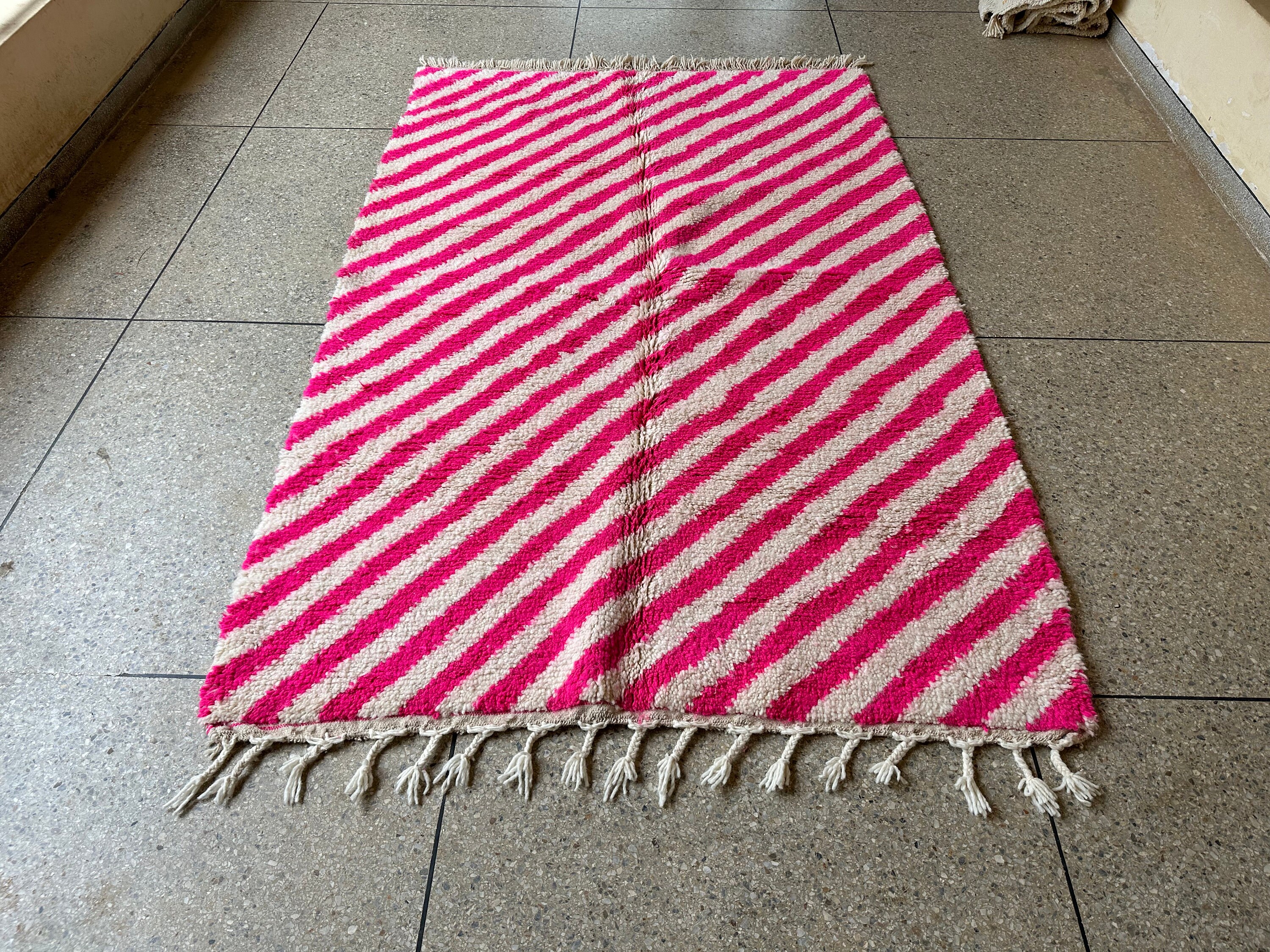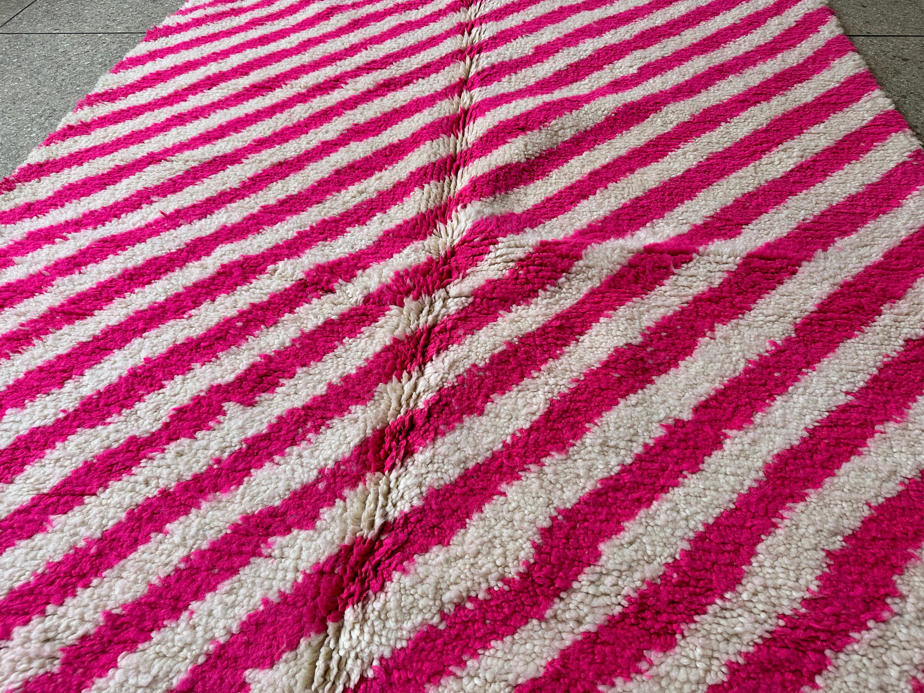Enhance the warmth of your space with this COZY PINK RUG. Handcrafted with care, this Custom Moroccan Rug features a blend of Berber design and modern style. Made from luxurious Beni Ourain Wool, this Handmade Striped Carpet adds a touch of elegance to any room. Embrace comfort and luxury living with this Luxe Shag Rug, perfect for contemporary homes. Elevate your decor effortlessly!