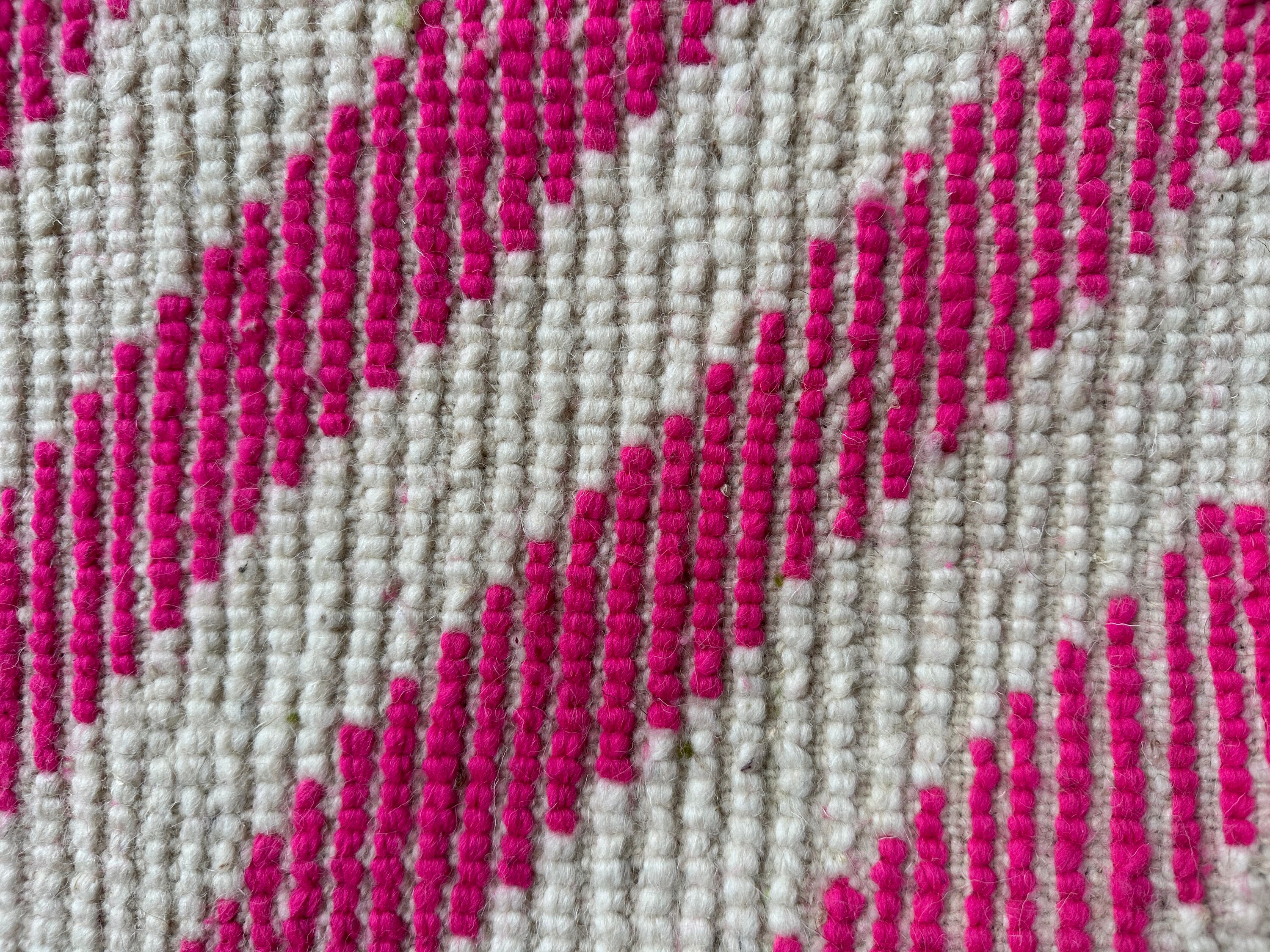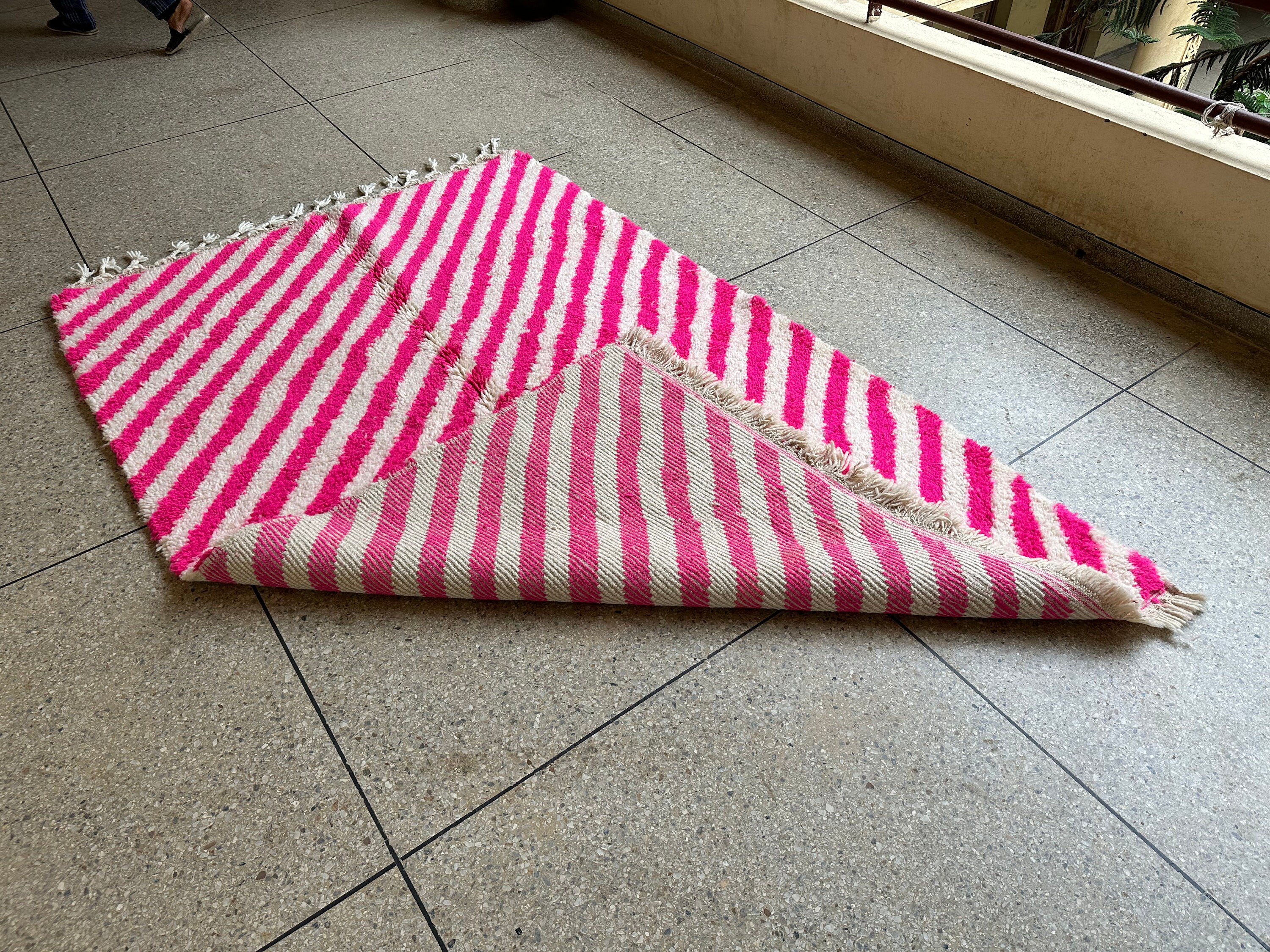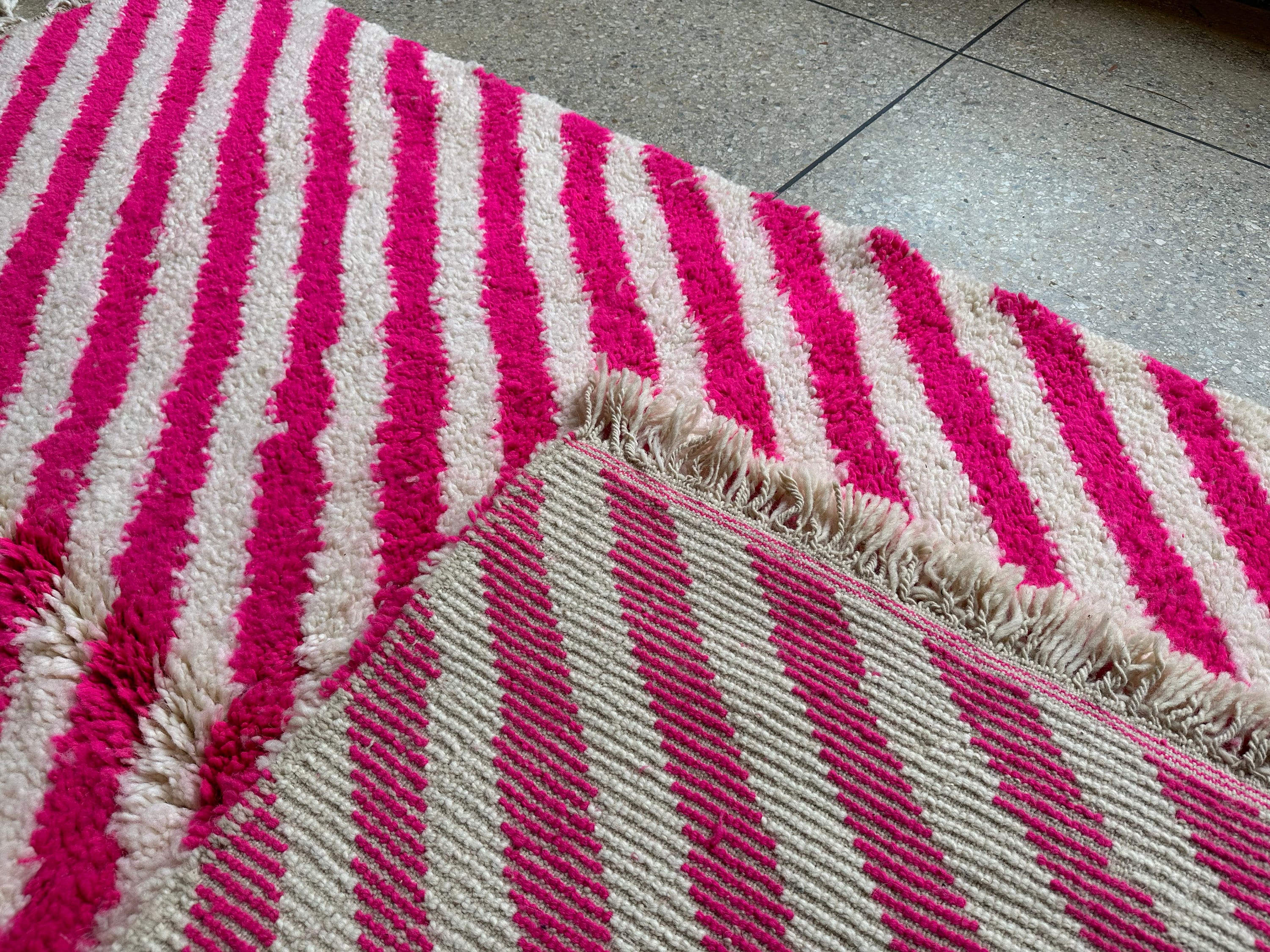 Enhance the warmth of your space with this COZY PINK RUG. Handcrafted with care, this Custom Moroccan Rug features a blend of Berber design and modern style. Made from luxurious Beni Ourain Wool, this Handmade Striped Carpet adds a touch of elegance to any room. Embrace comfort and luxury living with this Luxe Shag Rug, perfect for contemporary homes. Elevate your decor effortlessly!