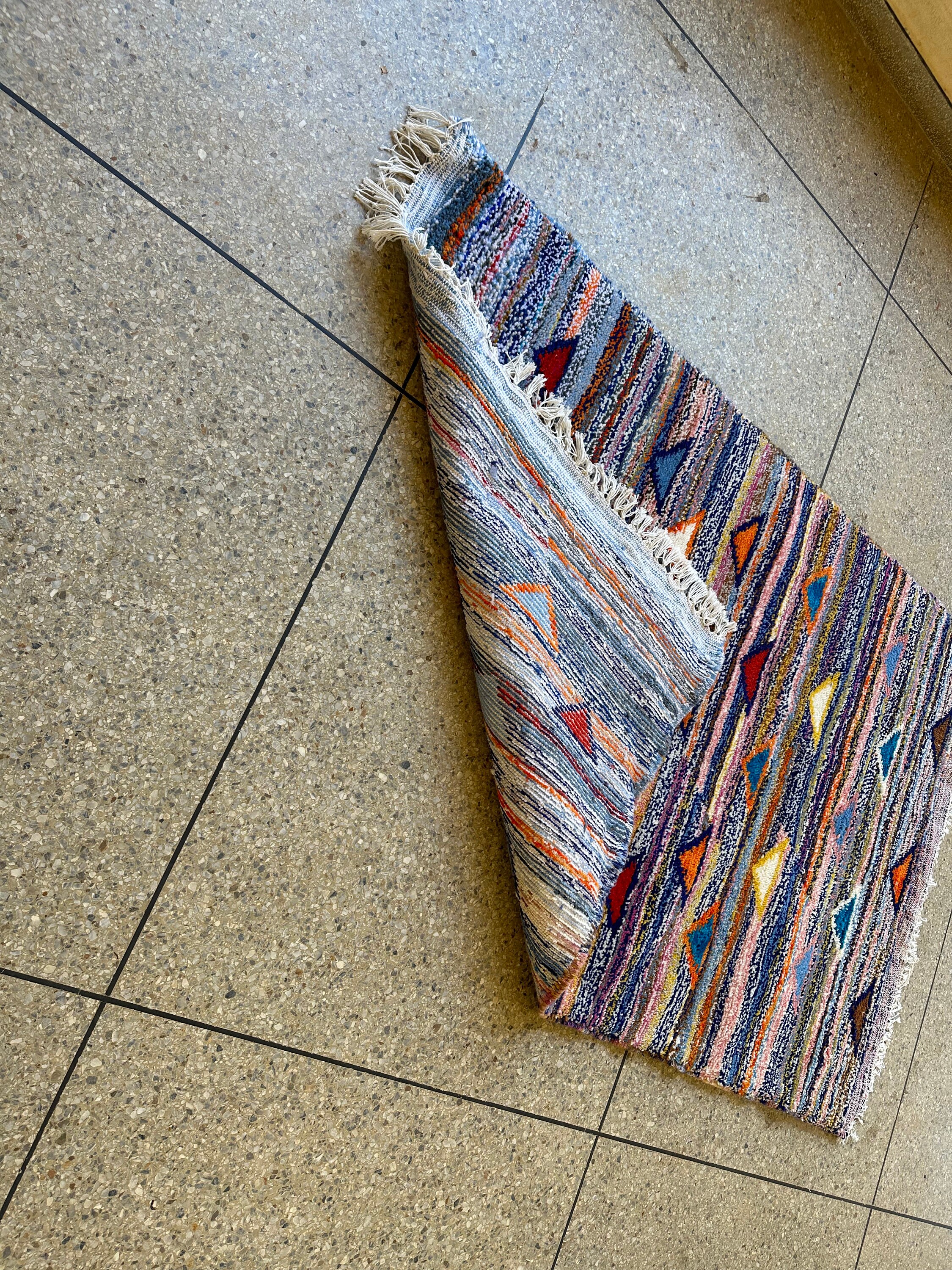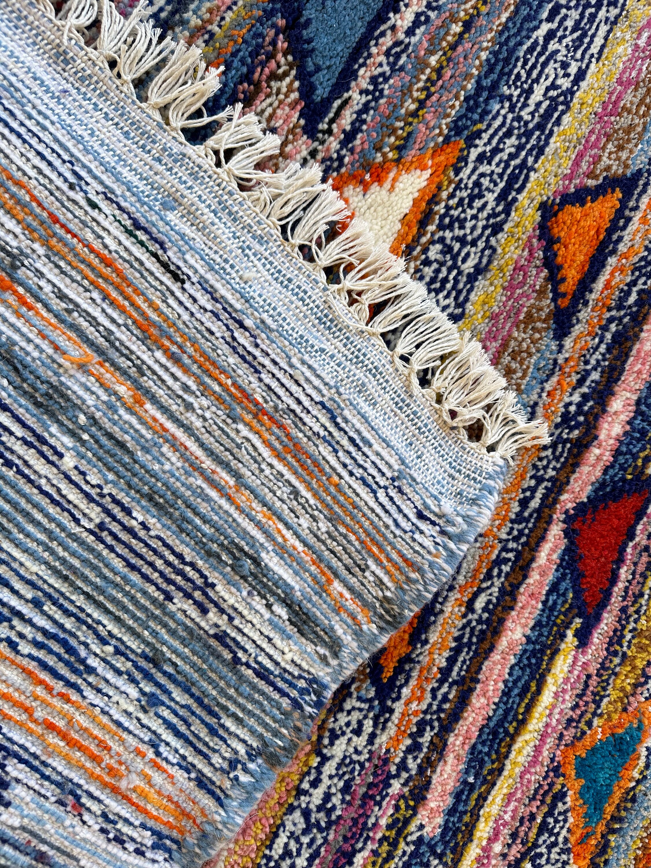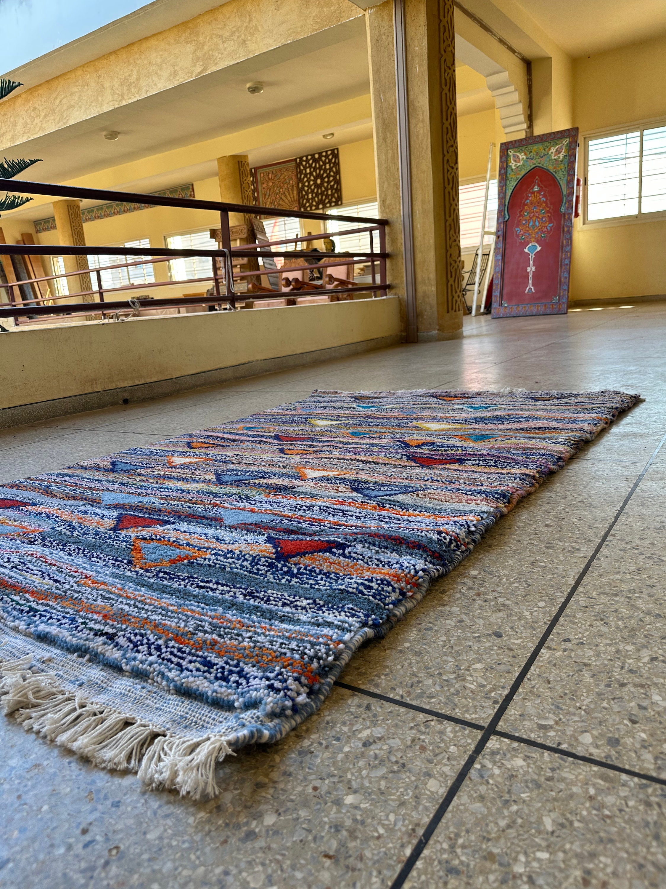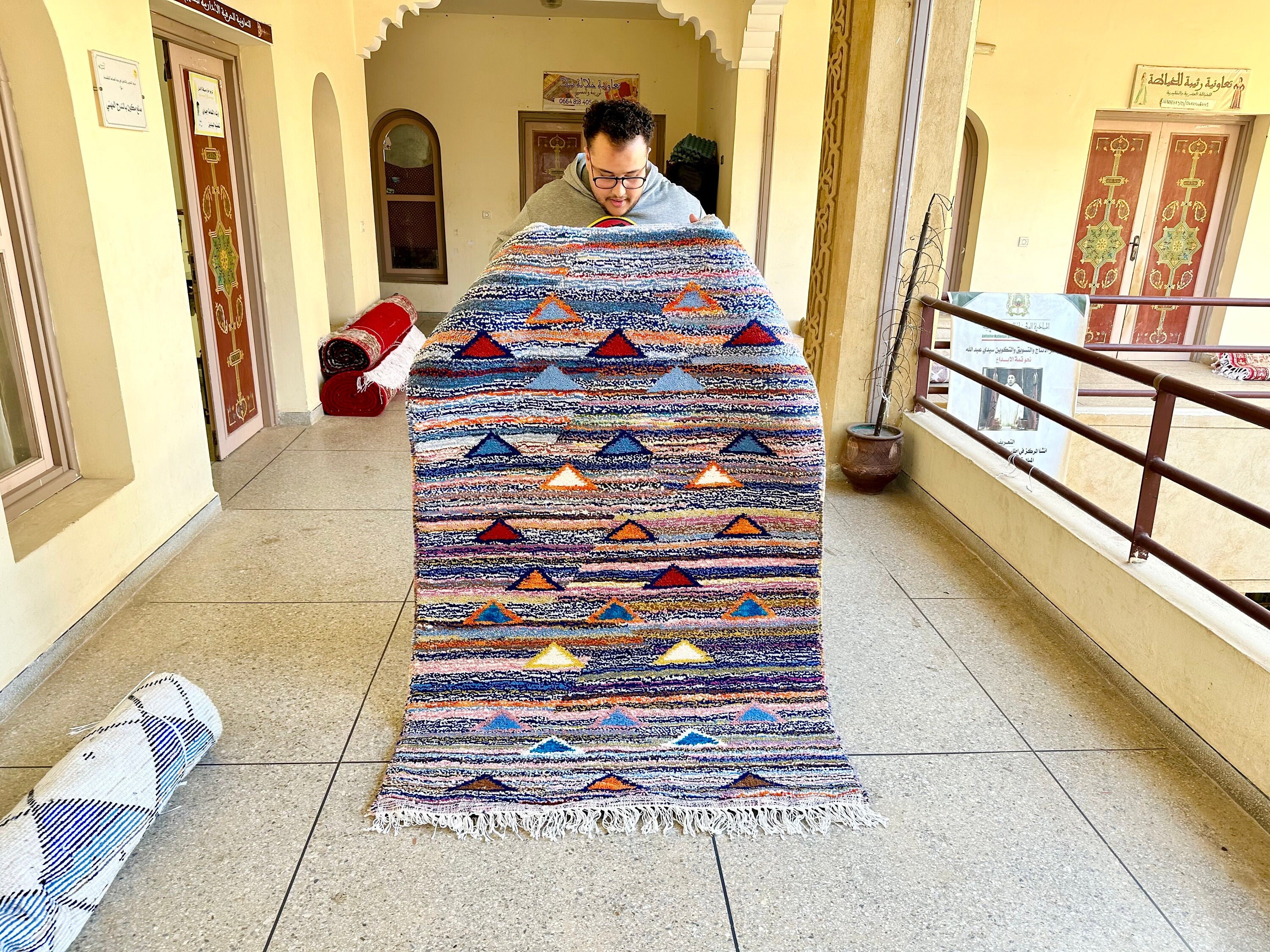 This fabulous Moroccan Rug that will give your room both a cozy feeling and stylish is made from 100% Natural sheep wool, It's Very plush and comfy to walk on, actually It's Heaven for your feet.