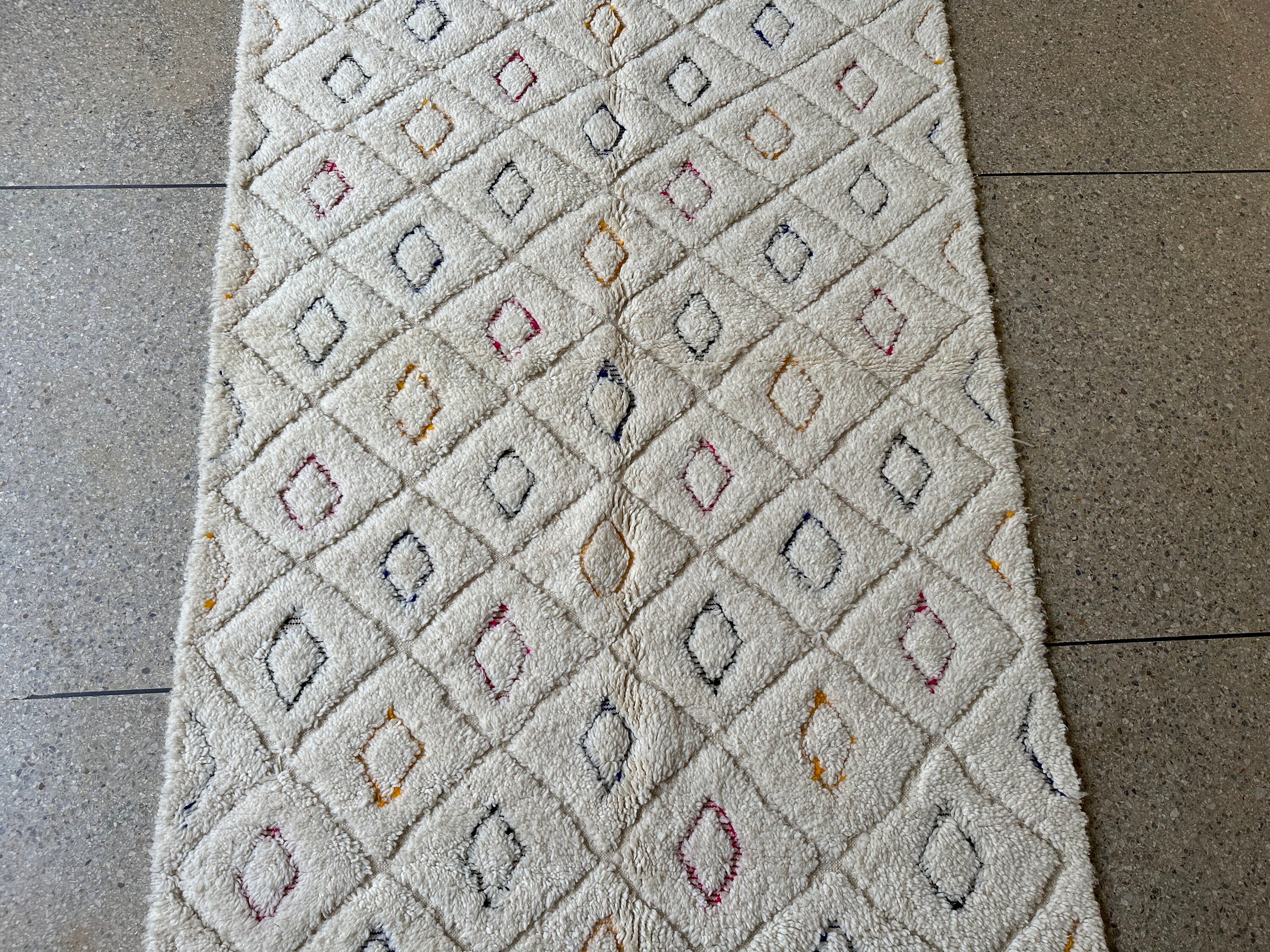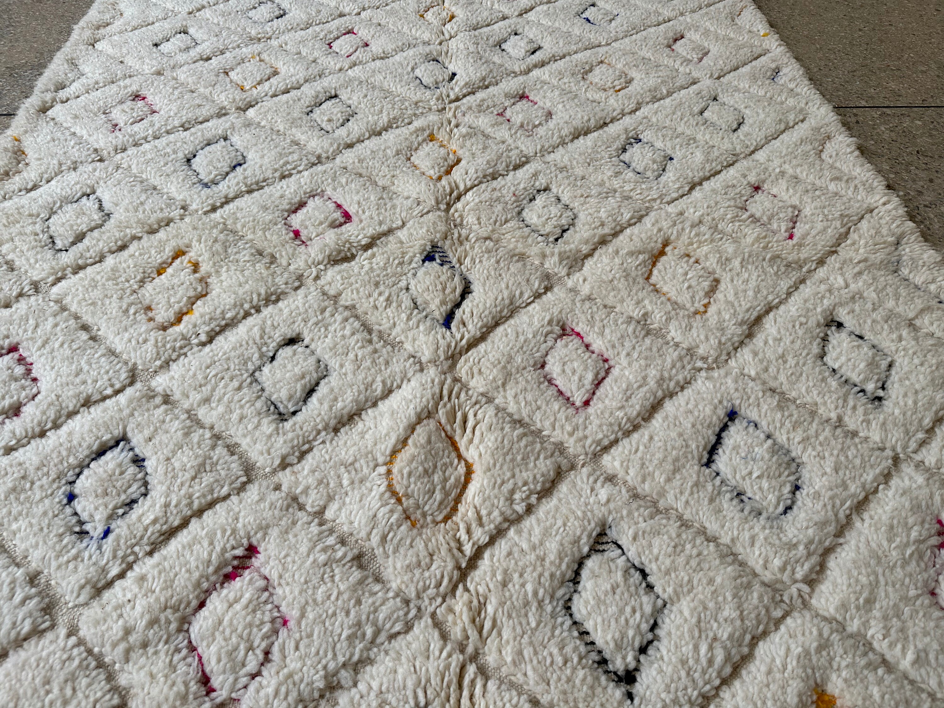 Add a touch of elegance and coziness to your space with this hand-tufted Moroccan rug! Crafted from soft, high-quality wool, this geometric Beni Ourain rug is perfect for Scandinavian, modern, or minimalist interiors. Its timeless white design with subtle geometric patterns enhances any living room, bedroom, or office with warmth and sophistication. Elevate your home with this luxurious, handmade statement piece!