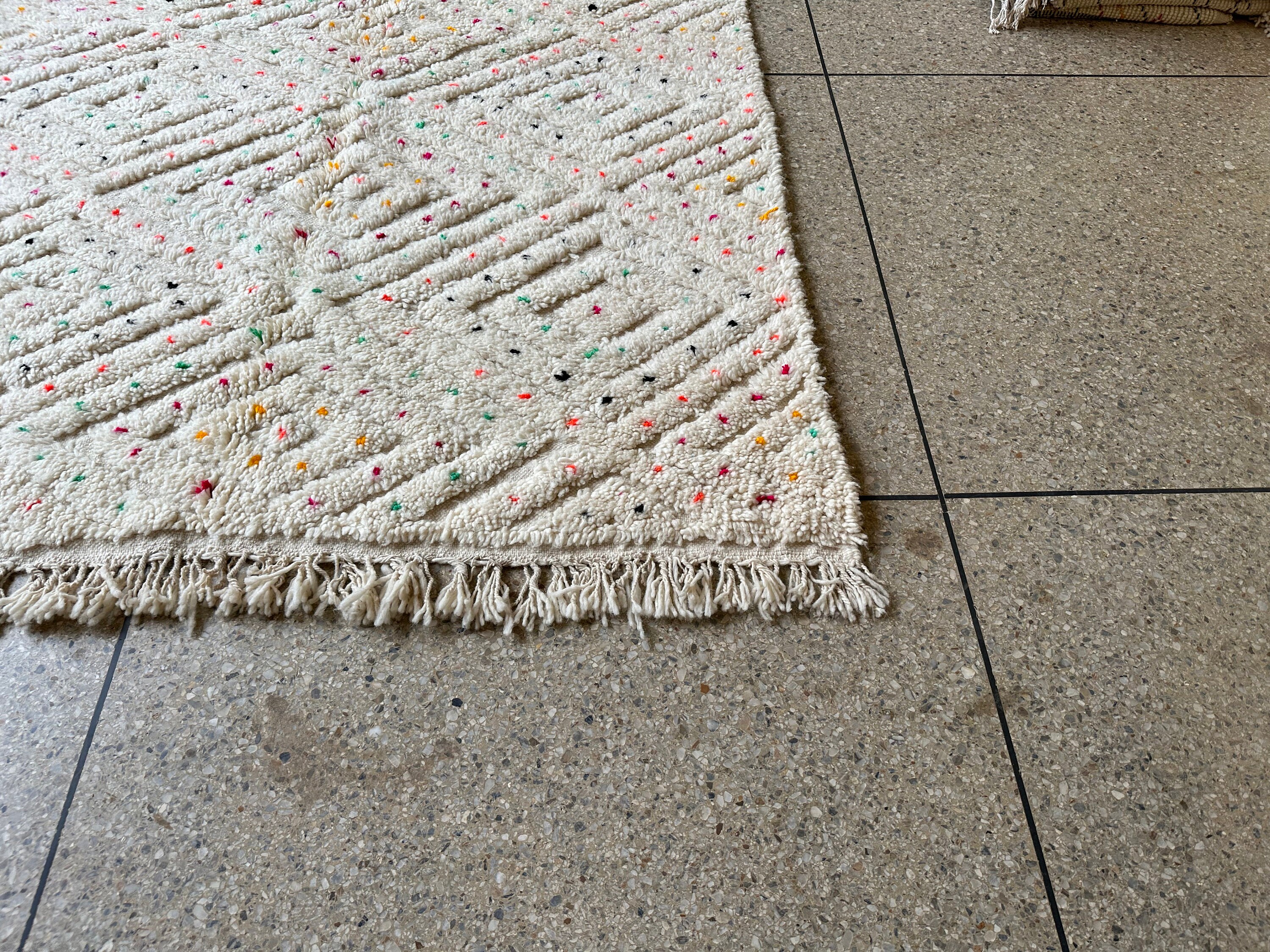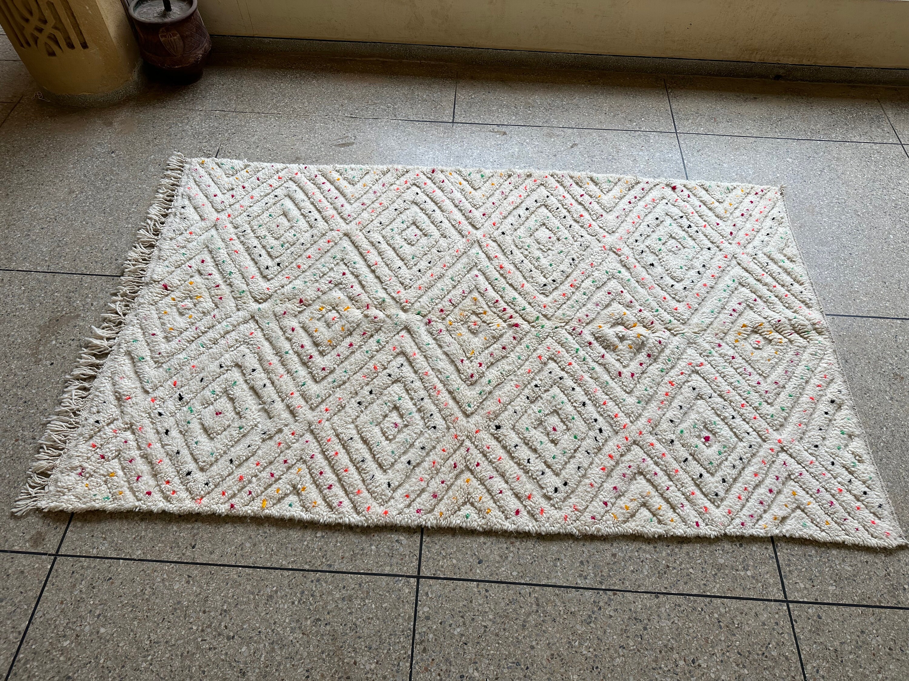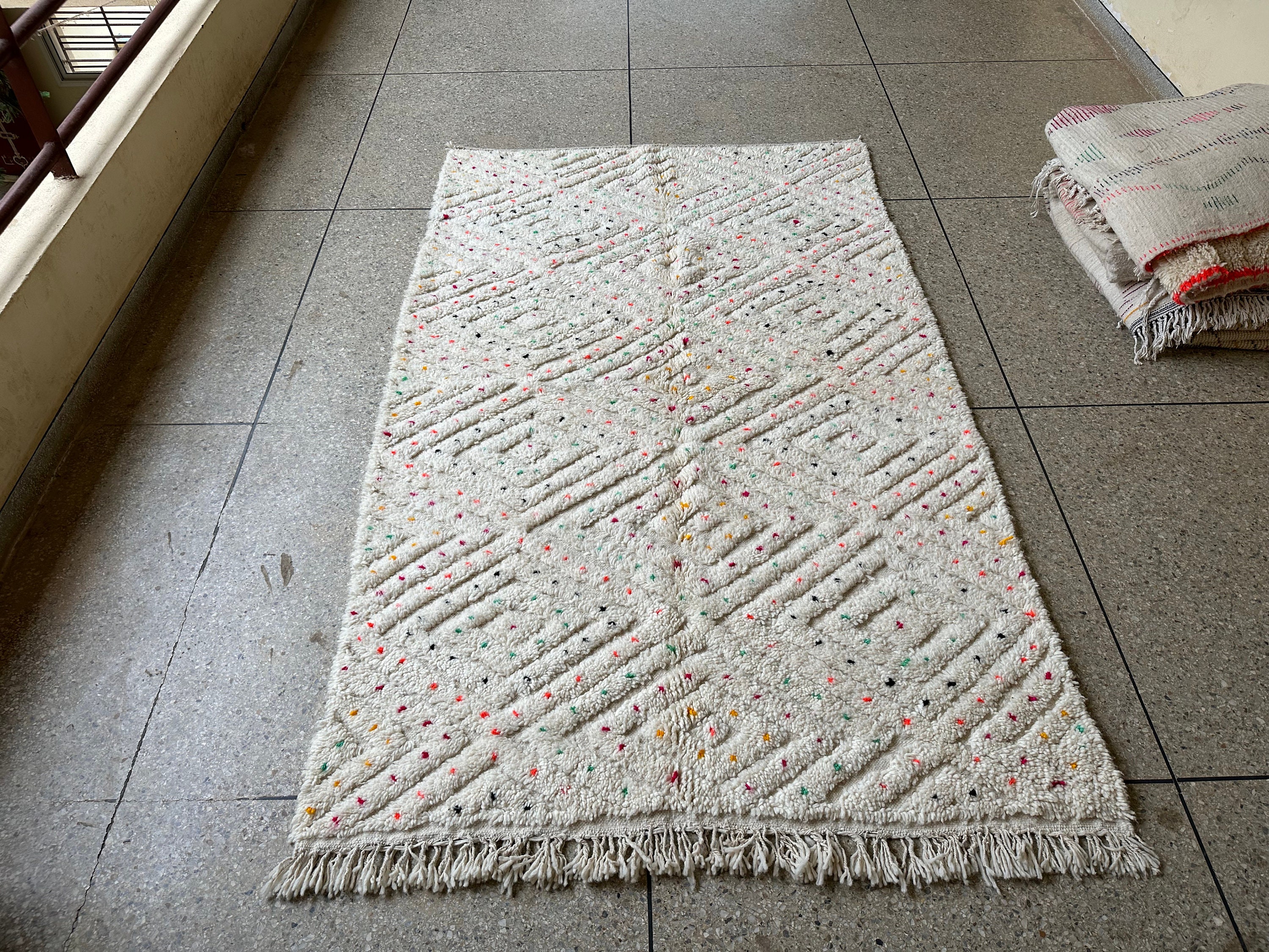 This fabulous Moroccan Rug that will give your room both a cozy feeling and stylish is made from 100% Natural sheep wool, It's Very plush and comfy to walk on, actually It's Heaven for your feet.