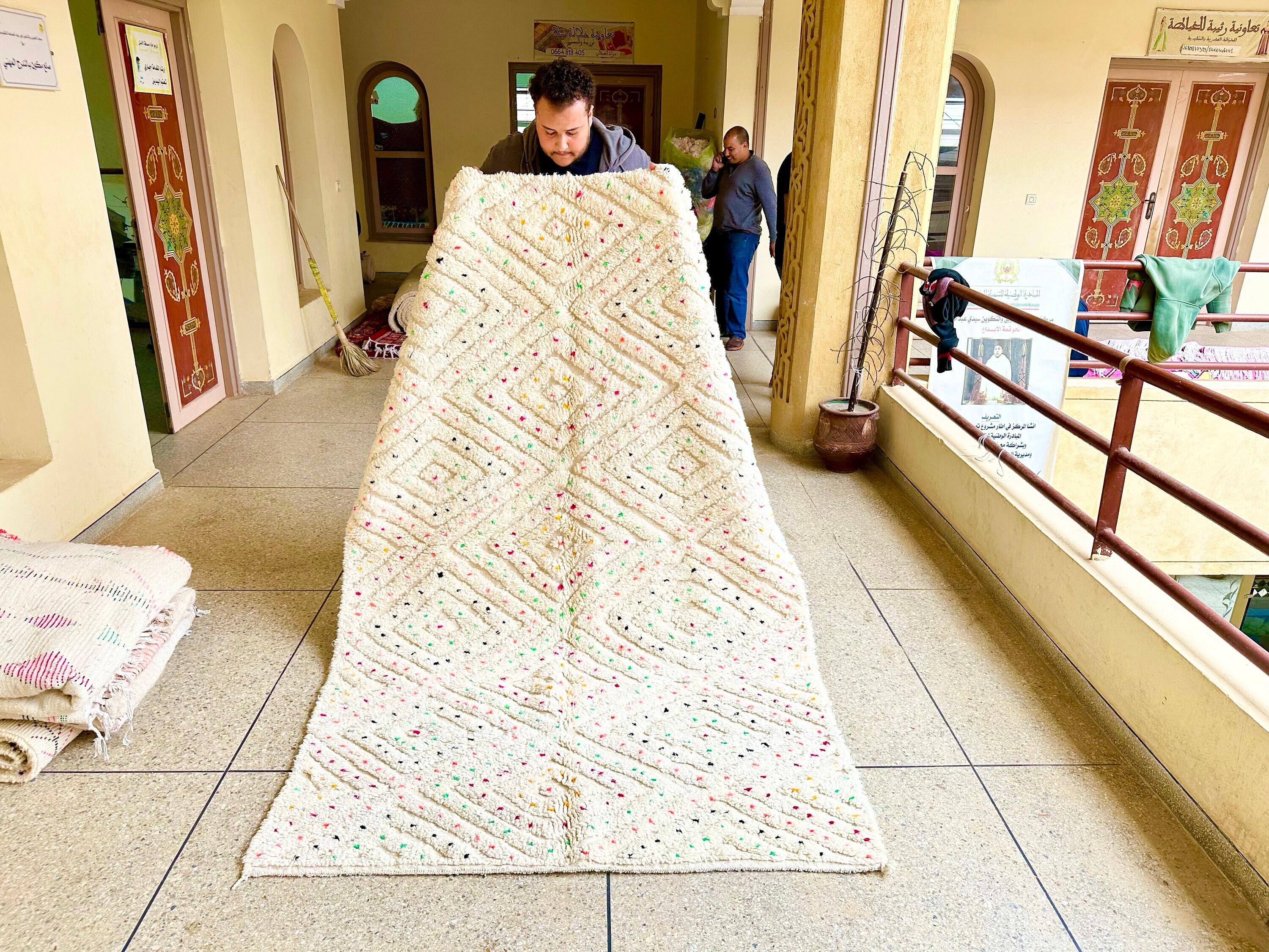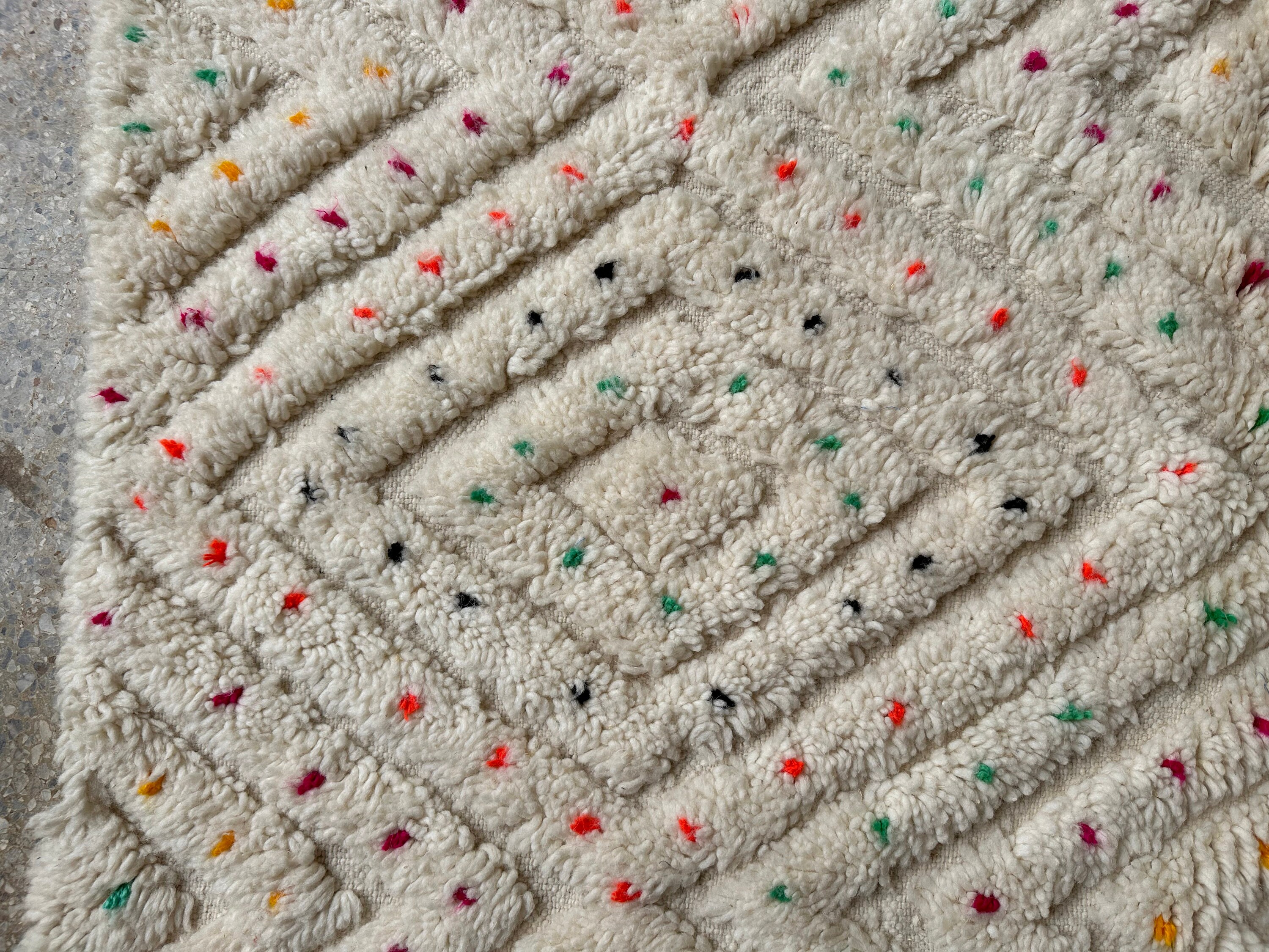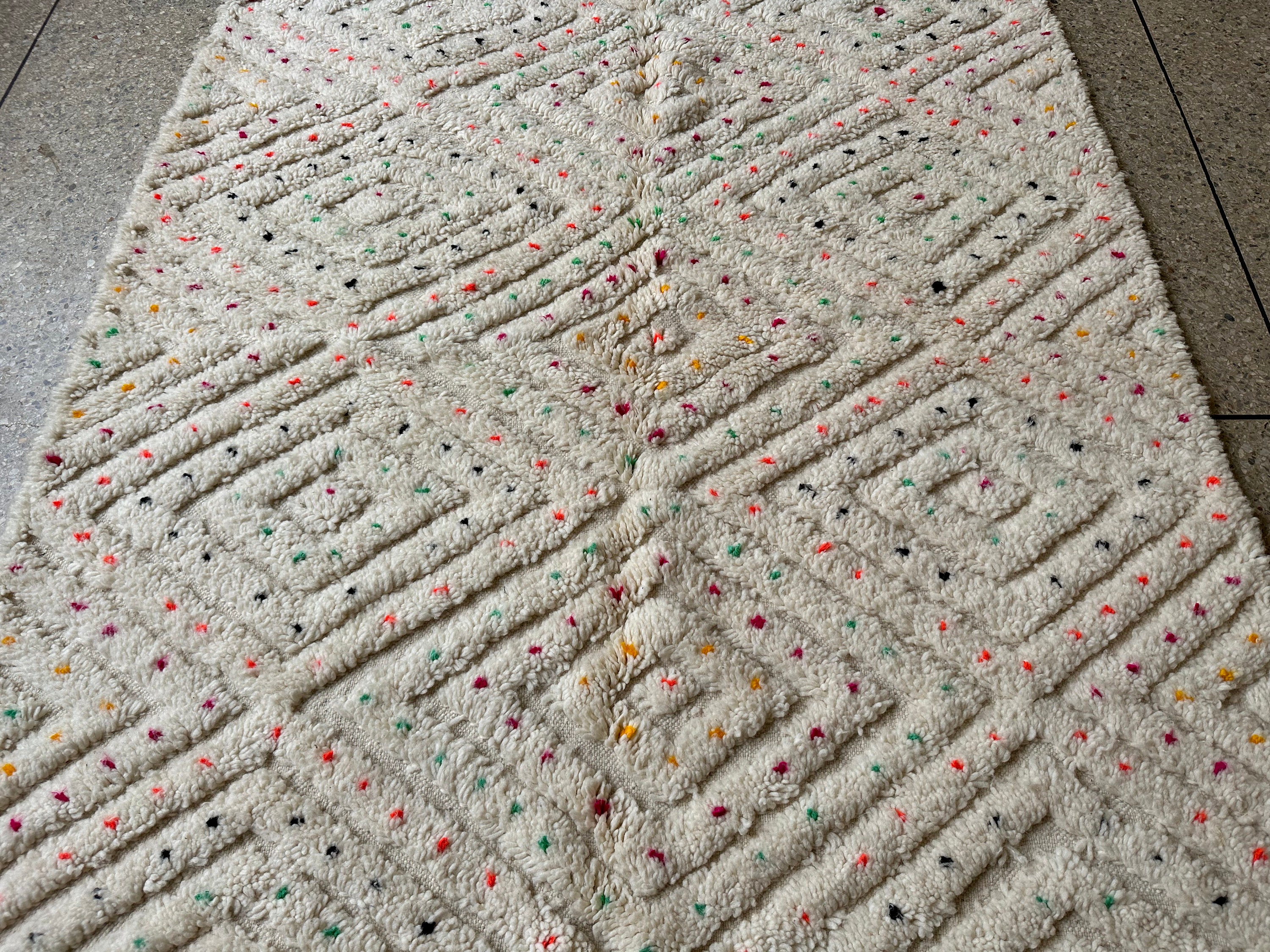 This fabulous Moroccan Rug that will give your room both a cozy feeling and stylish is made from 100% Natural sheep wool, It's Very plush and comfy to walk on, actually It's Heaven for your feet.