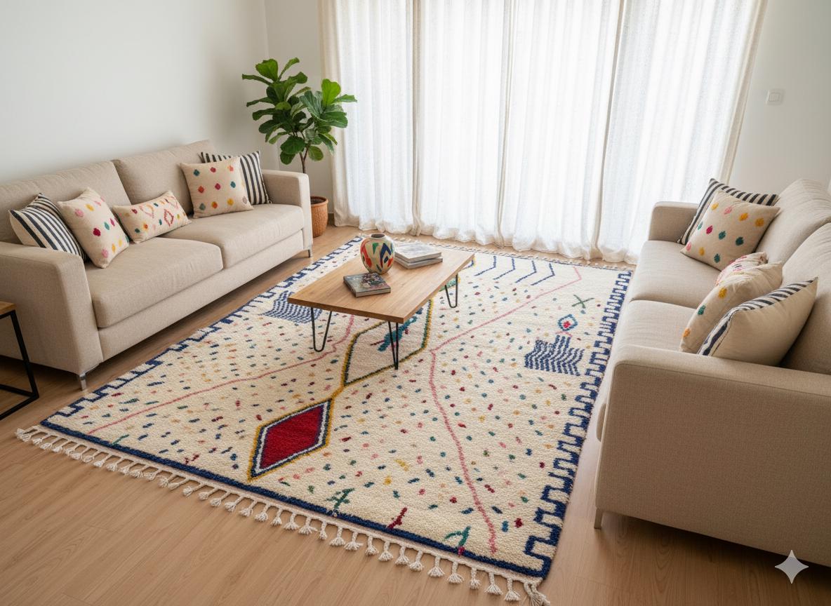 Versatile & Timeless Design: With their minimalist, geometric diamond patterns and natural colors, Beni Ourain rugs blend seamlessly with Traditional, Bohemian, Minimalist, Modern, and Scandinavian styles.