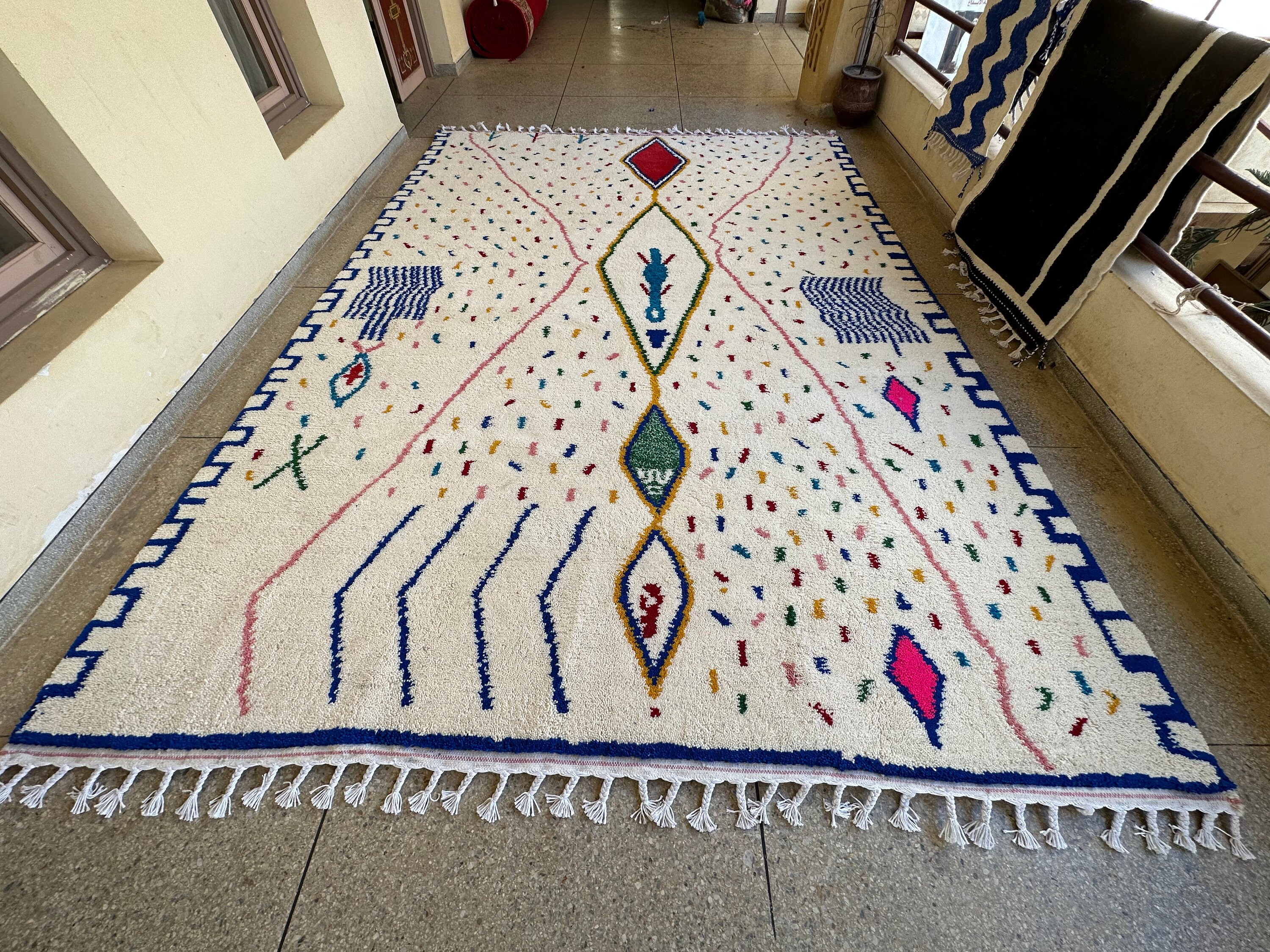 Transform your space with our Authentic Moroccan Rug, a stunning Beni Ourain Handmade design that brings a touch of tradition and elegance to any room. This Bohemian Wool Area Rug features a perfect blend of white and blue, adding a chic vibe to your decor. Each Berber Handwoven Azilal Carpet is unique, crafted with care to ensure quality and style. Elevate your home with this exquisite piece that complements a variety of styles, from modern to rustic. Perfect for living rooms, bedrooms, or cozy nooks!