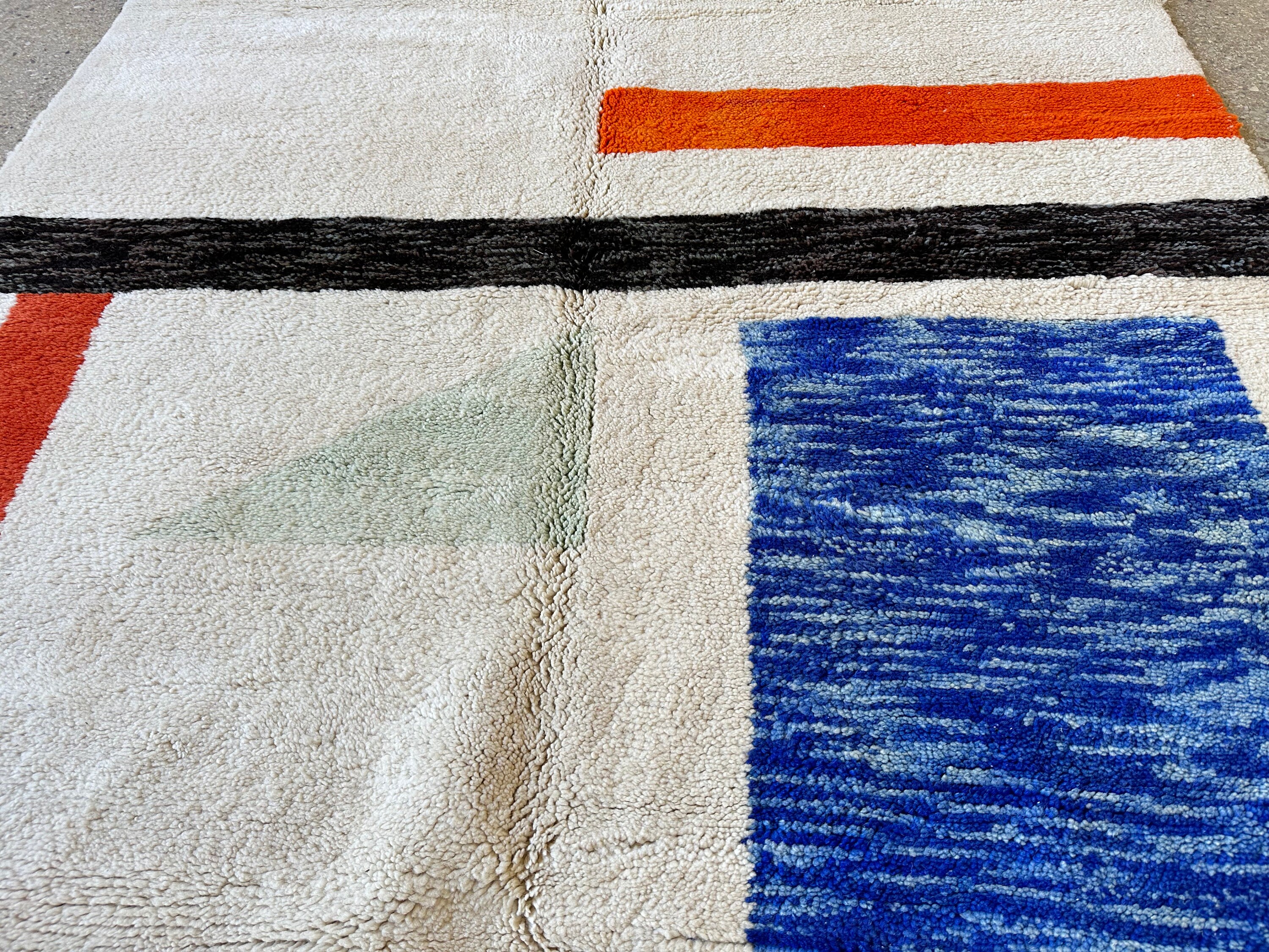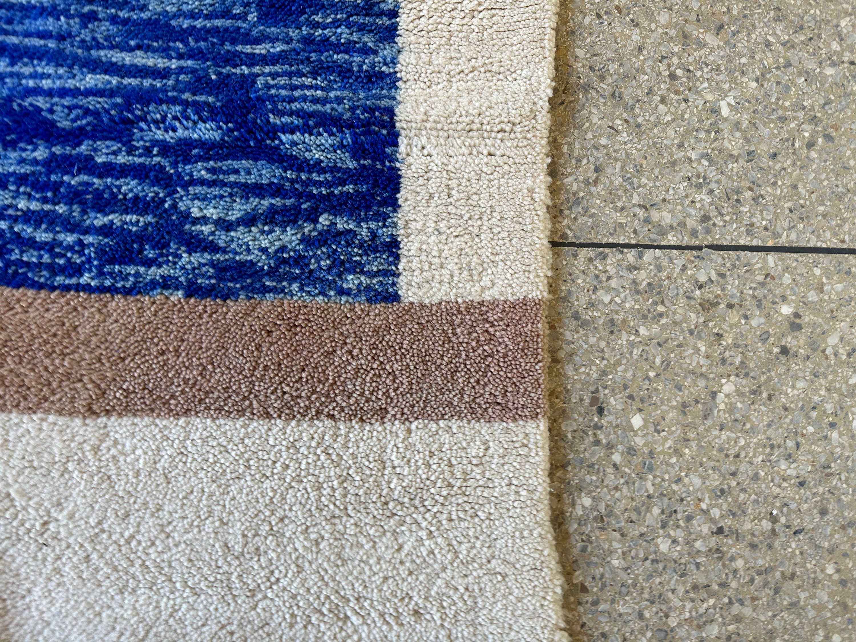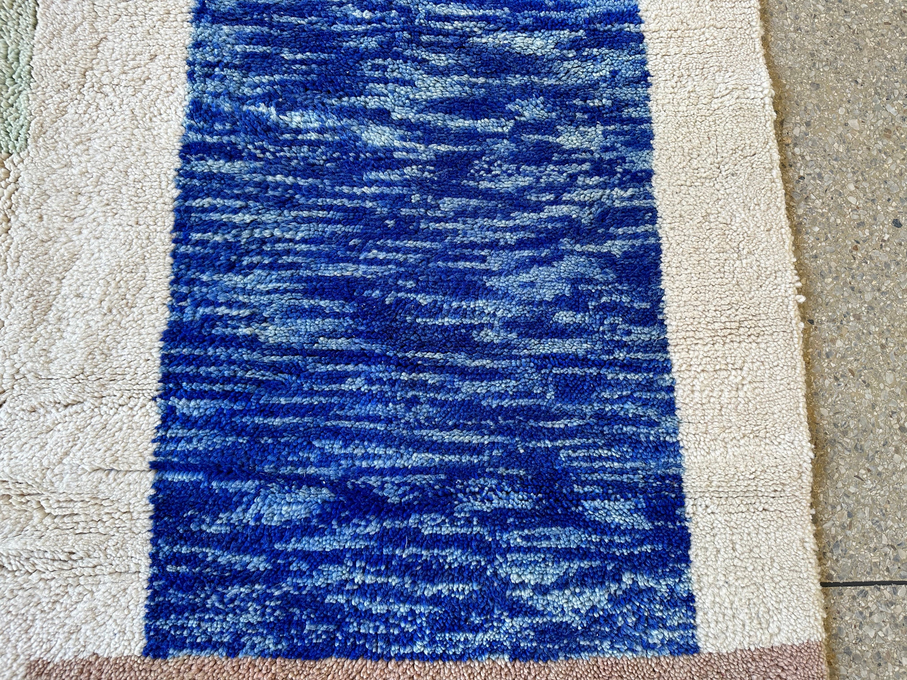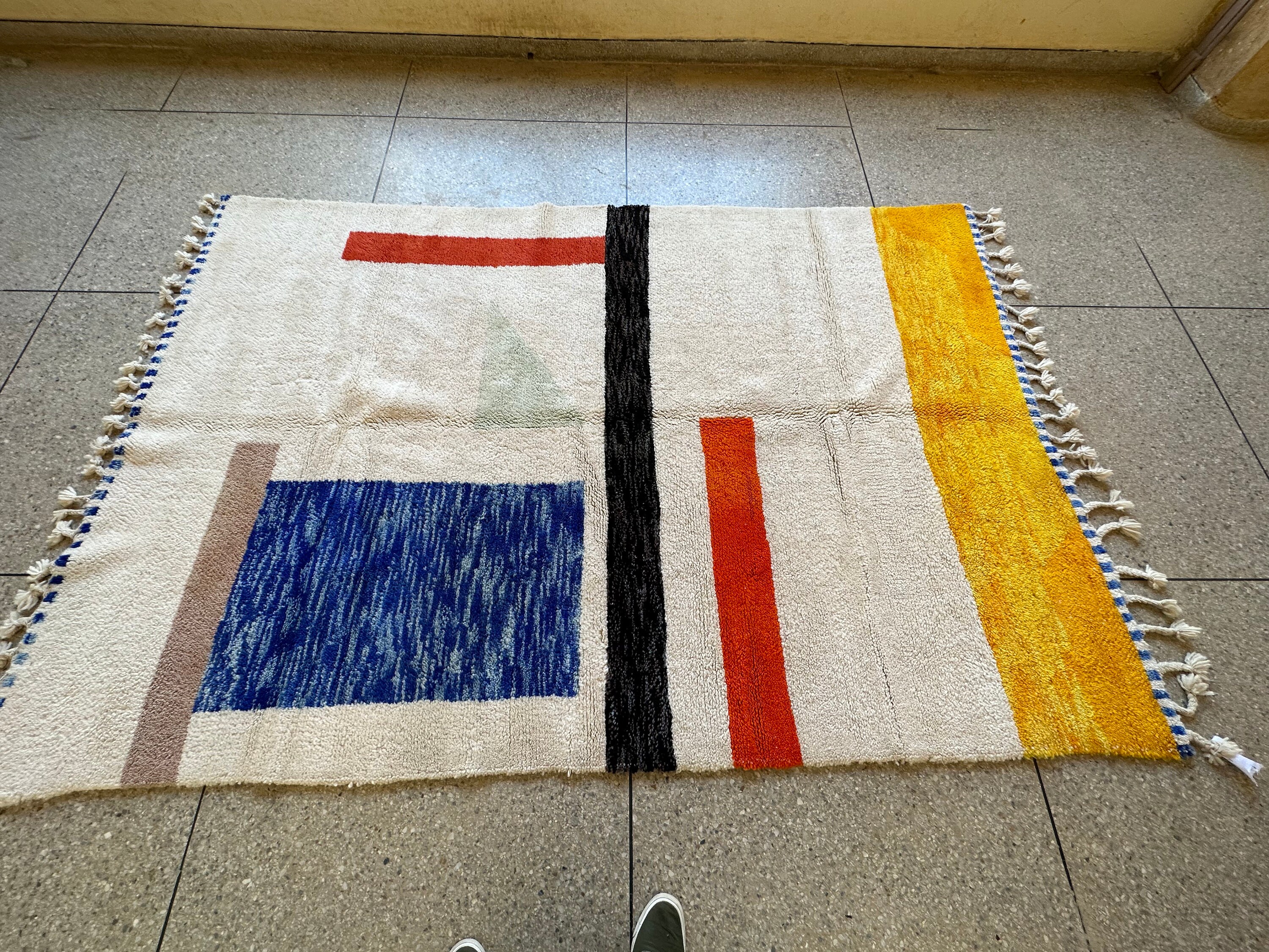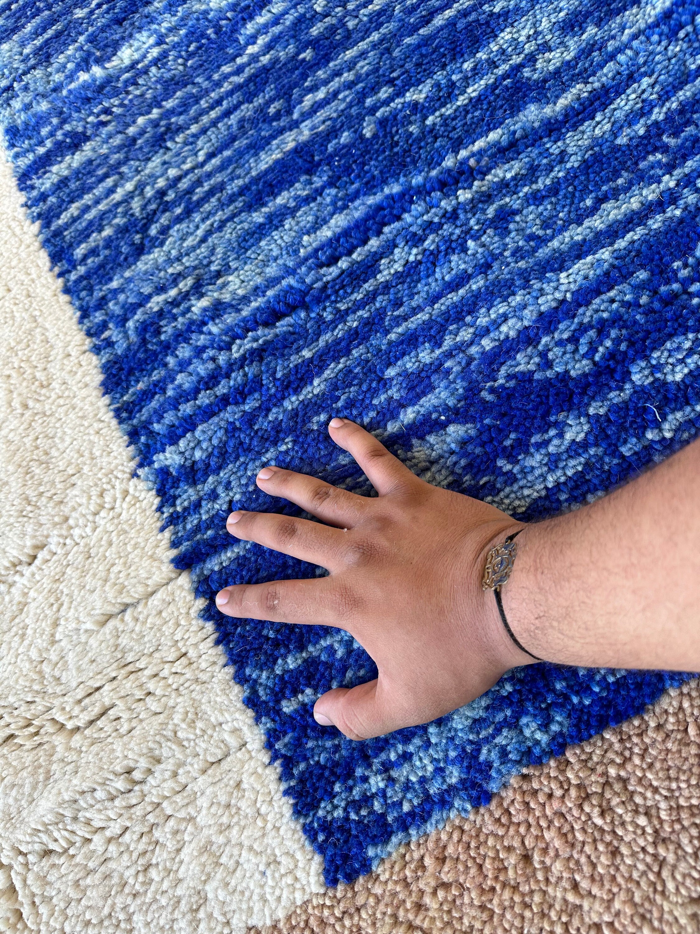 Abstract Moroccan Rug, Blue and Yellow Custom Beni Ourain Wool Carpet, Handmade Berber Area Rug for Living Room & Dining Room