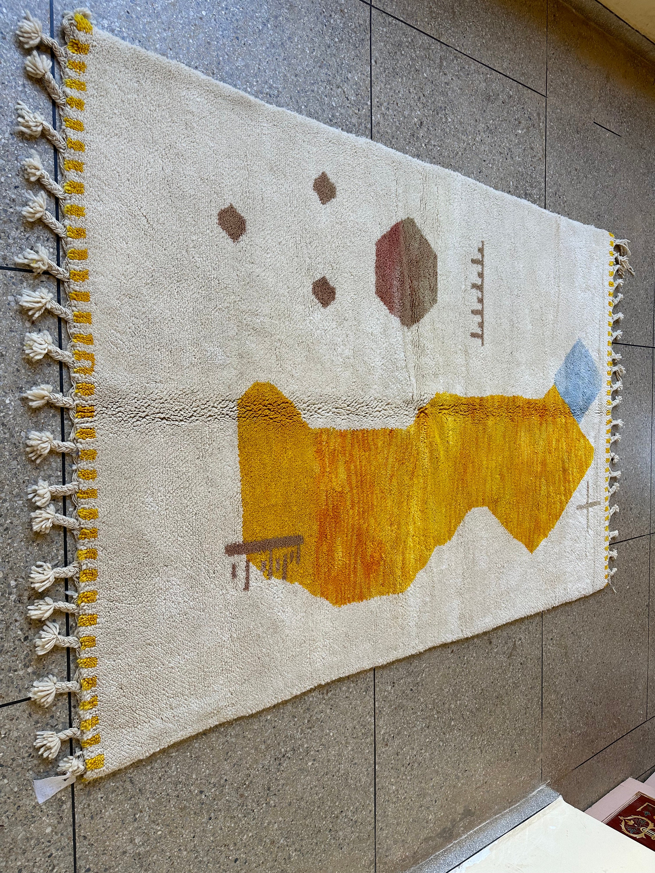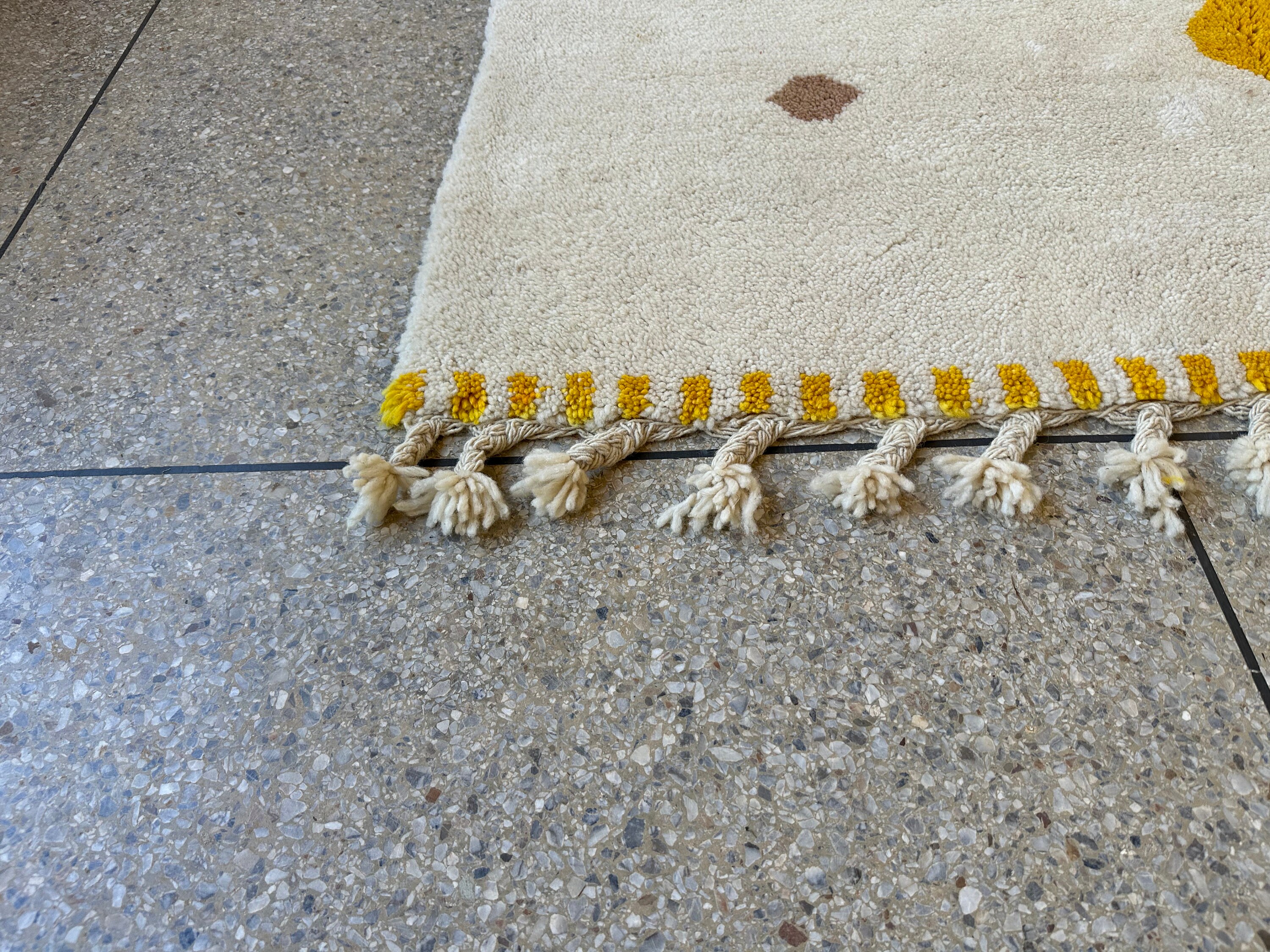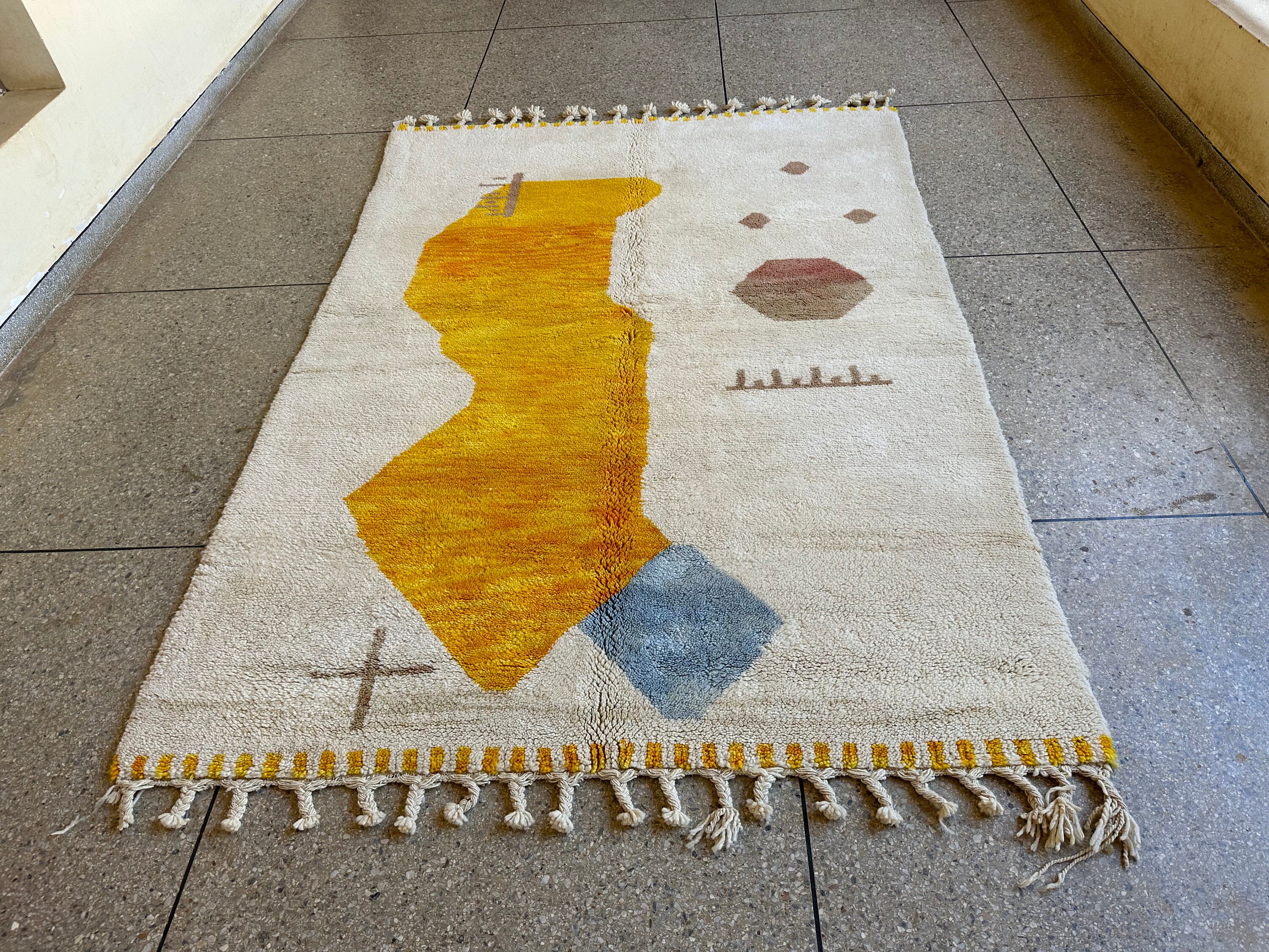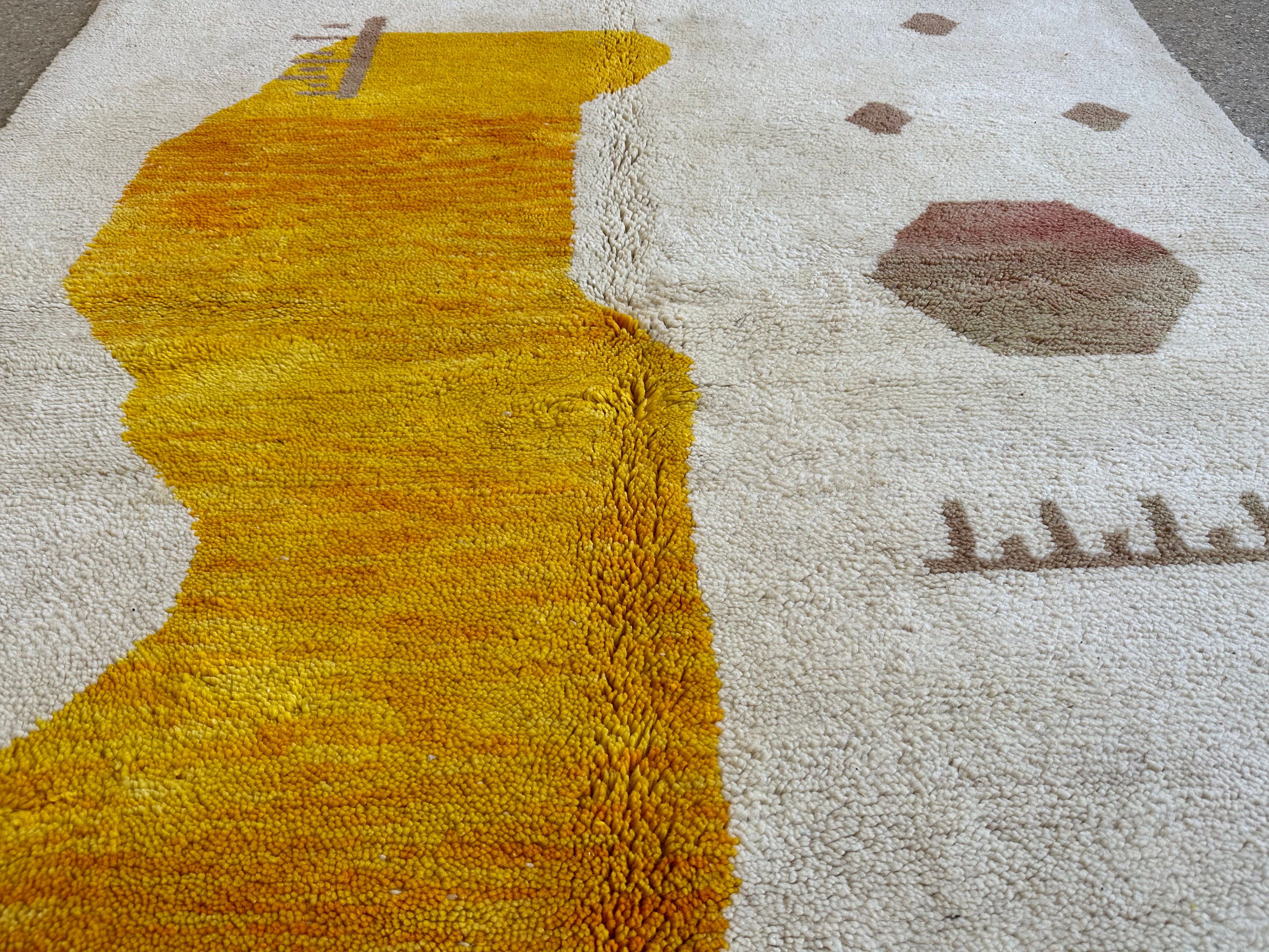 Transform your space with our stunning Yellow Beni Ourain Rug, a gorgeous and bright addition to any room. This custom Moroccan rug features an abstract design, showcasing artisan craftsmanship in every stitch. Handmade from premium wool, our abstract shag rug combines comfort and style, making it the perfect Berber carpet for your home. Elevate your decor with this unique and vibrant piece, bringing warmth and a touch of Morocco into your living space. Shop now for this one-of-a-kind focal point!