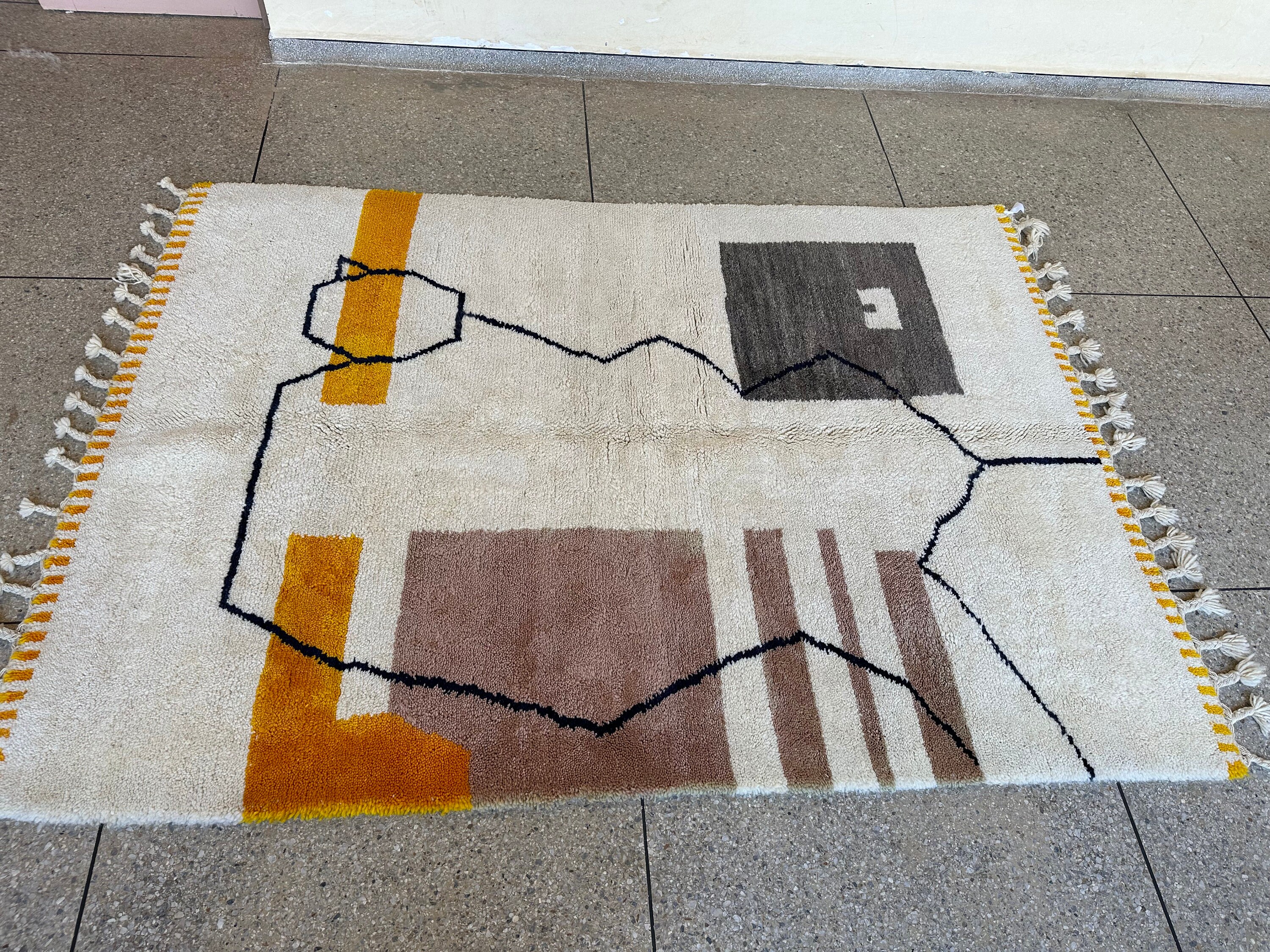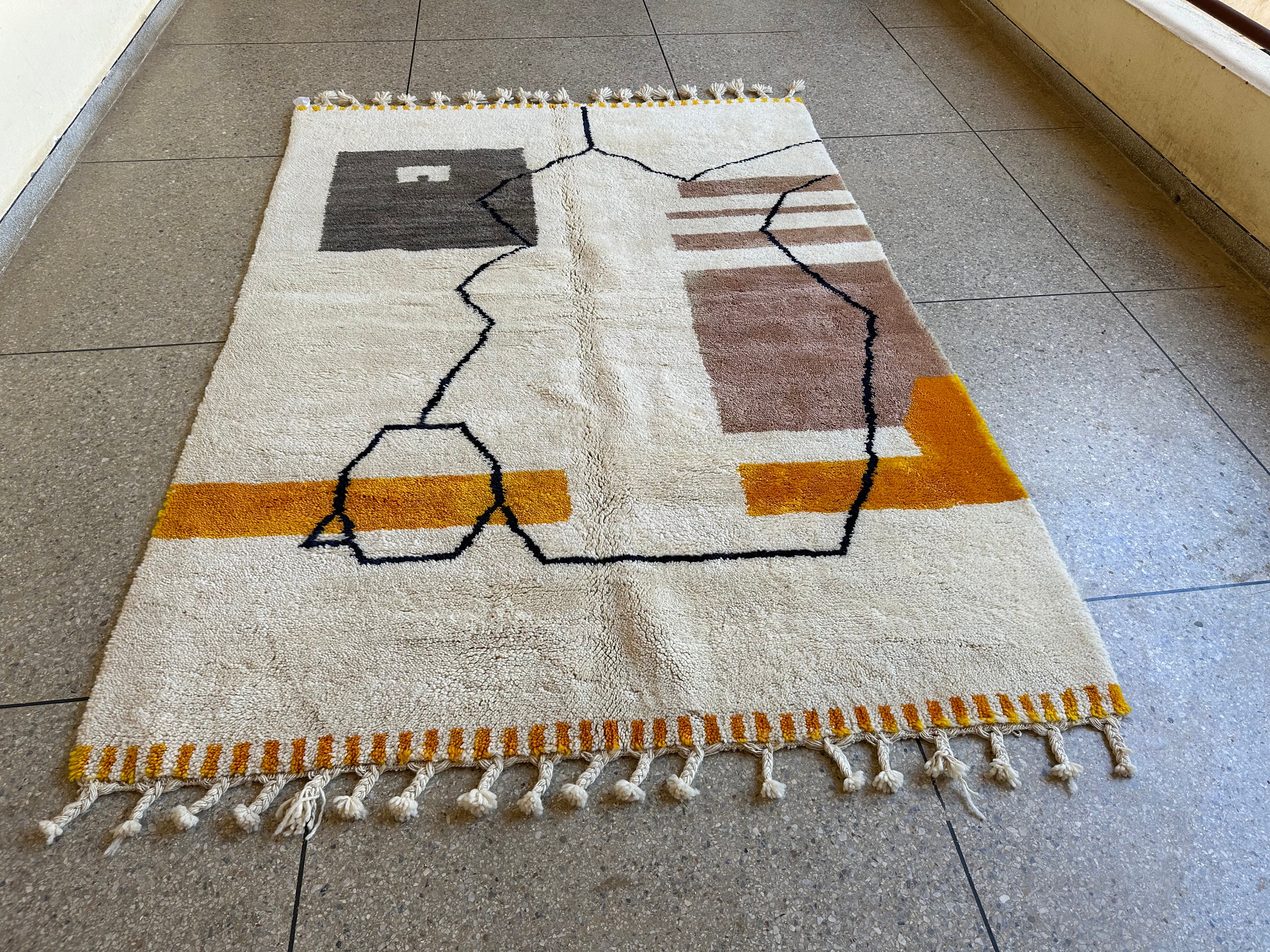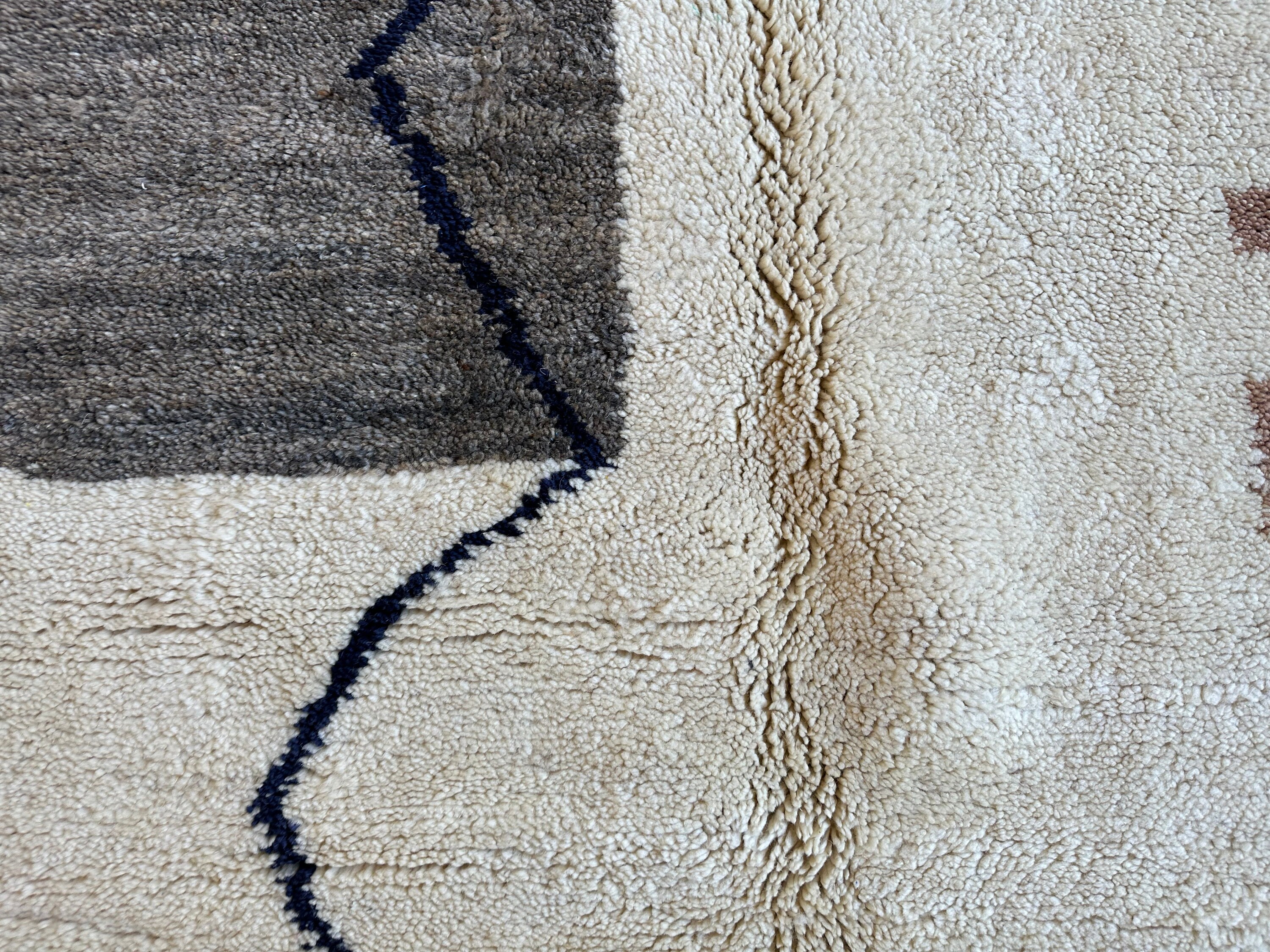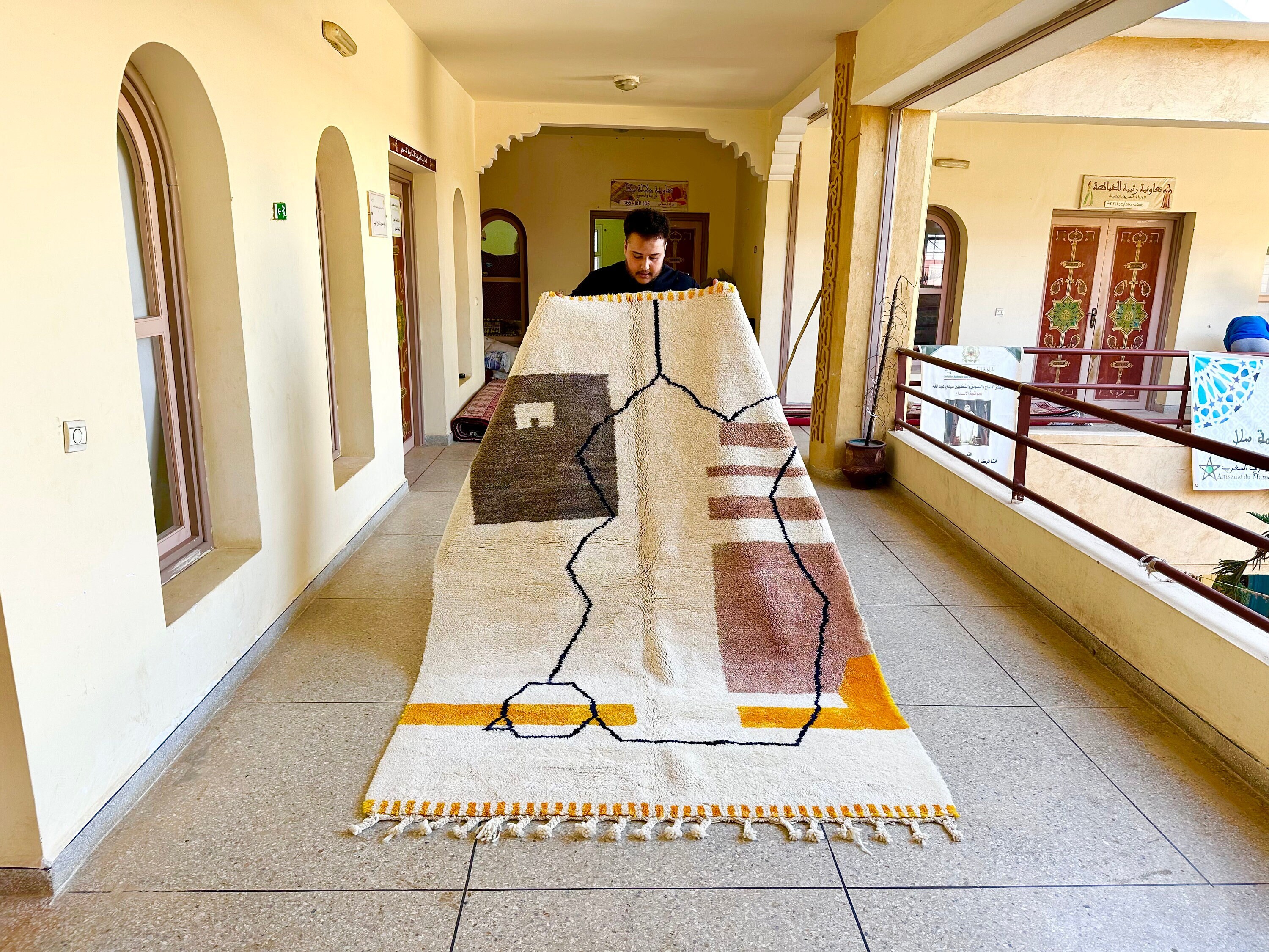 Experience the essence of Moroccan heritage with our 100% authentic Beni Ourain rugs, meticulously handcrafted by Berber artisans from the Atlas Mountains. Made from locally sourced, natural sheep wool, these rugs are both luxurious and eco-friendly, embodying a blend of comfort, elegance, and cultural richness. Their timeless designs and soft, plush texture make them an ideal choice for any home.