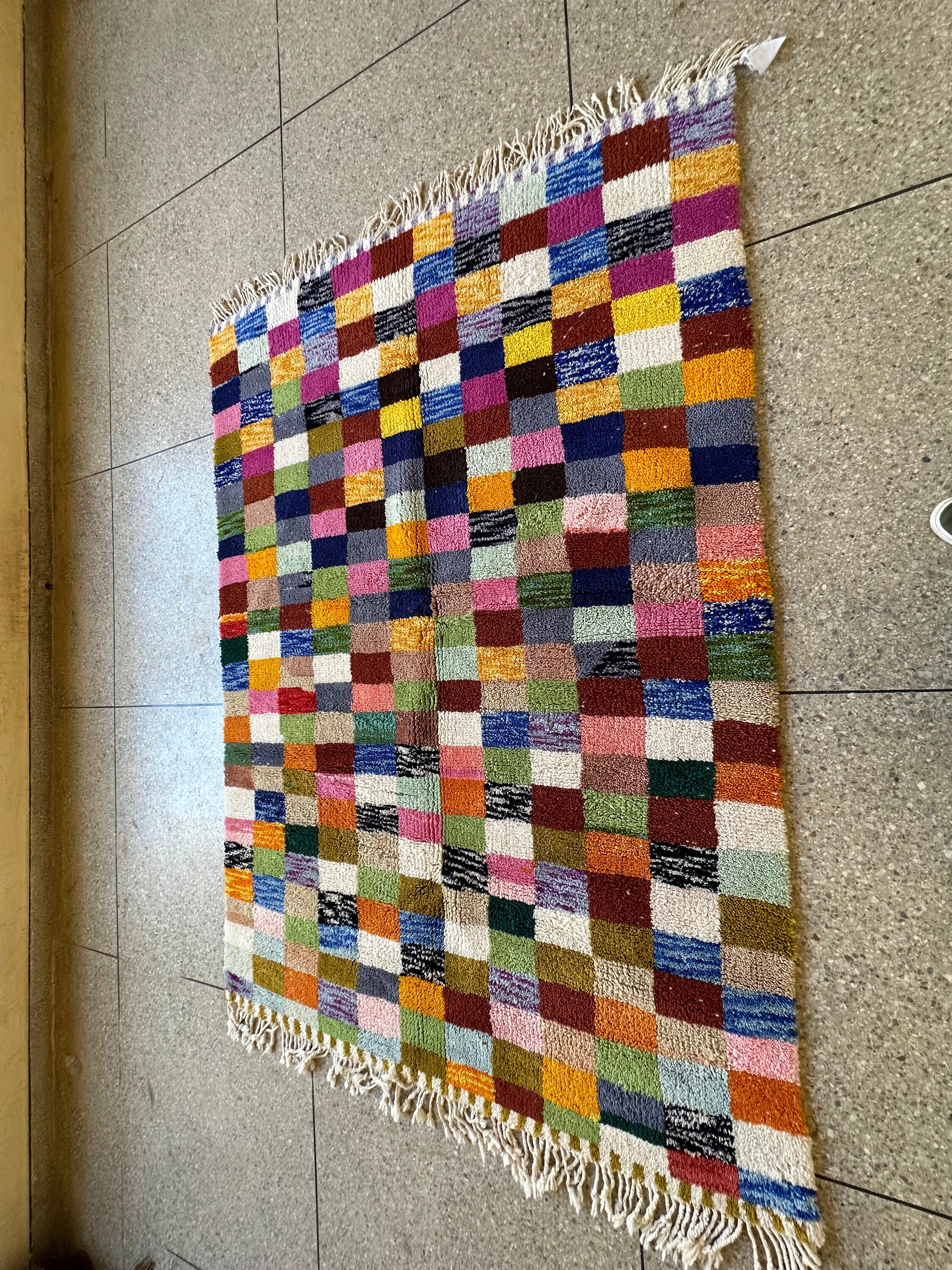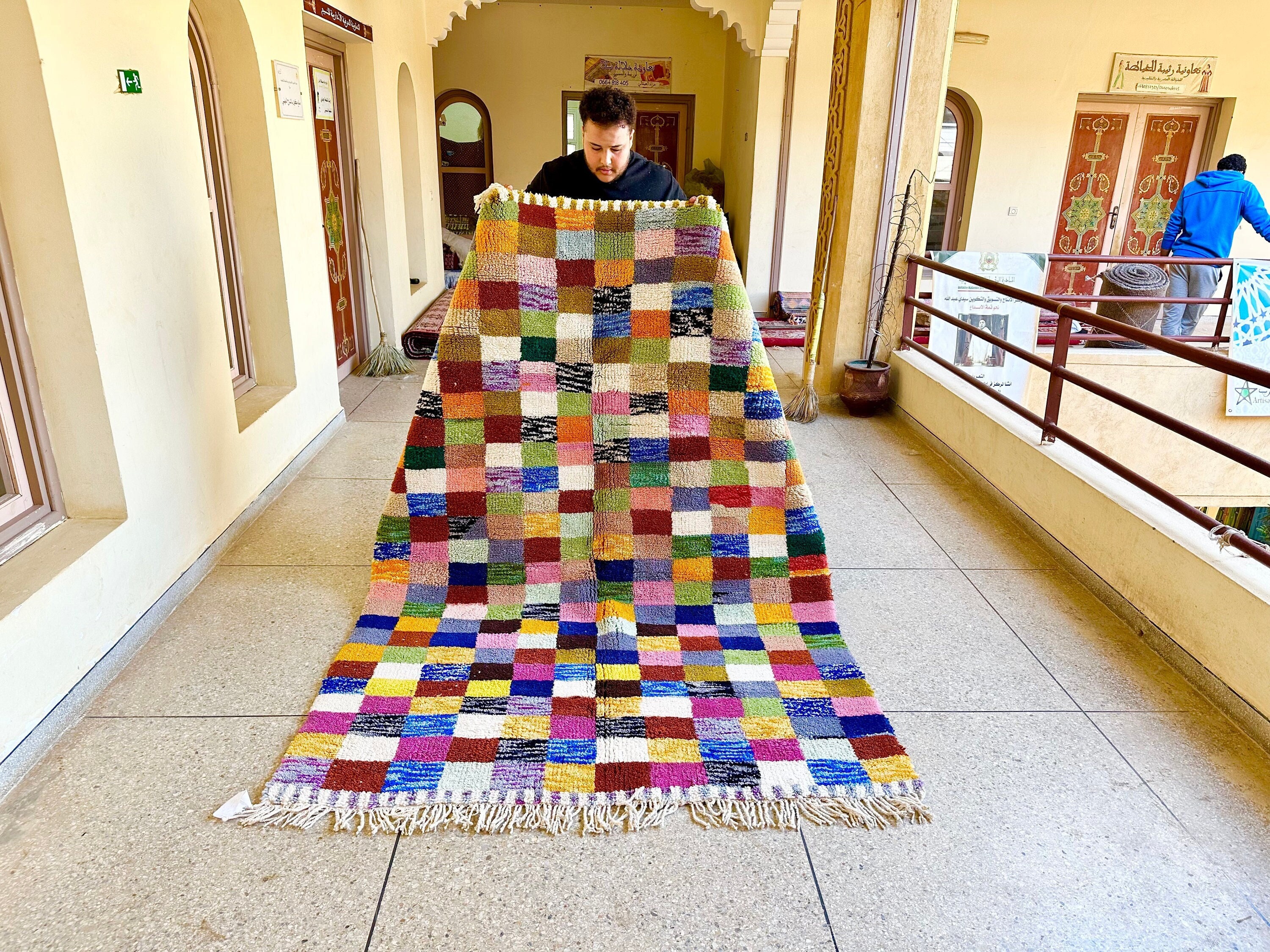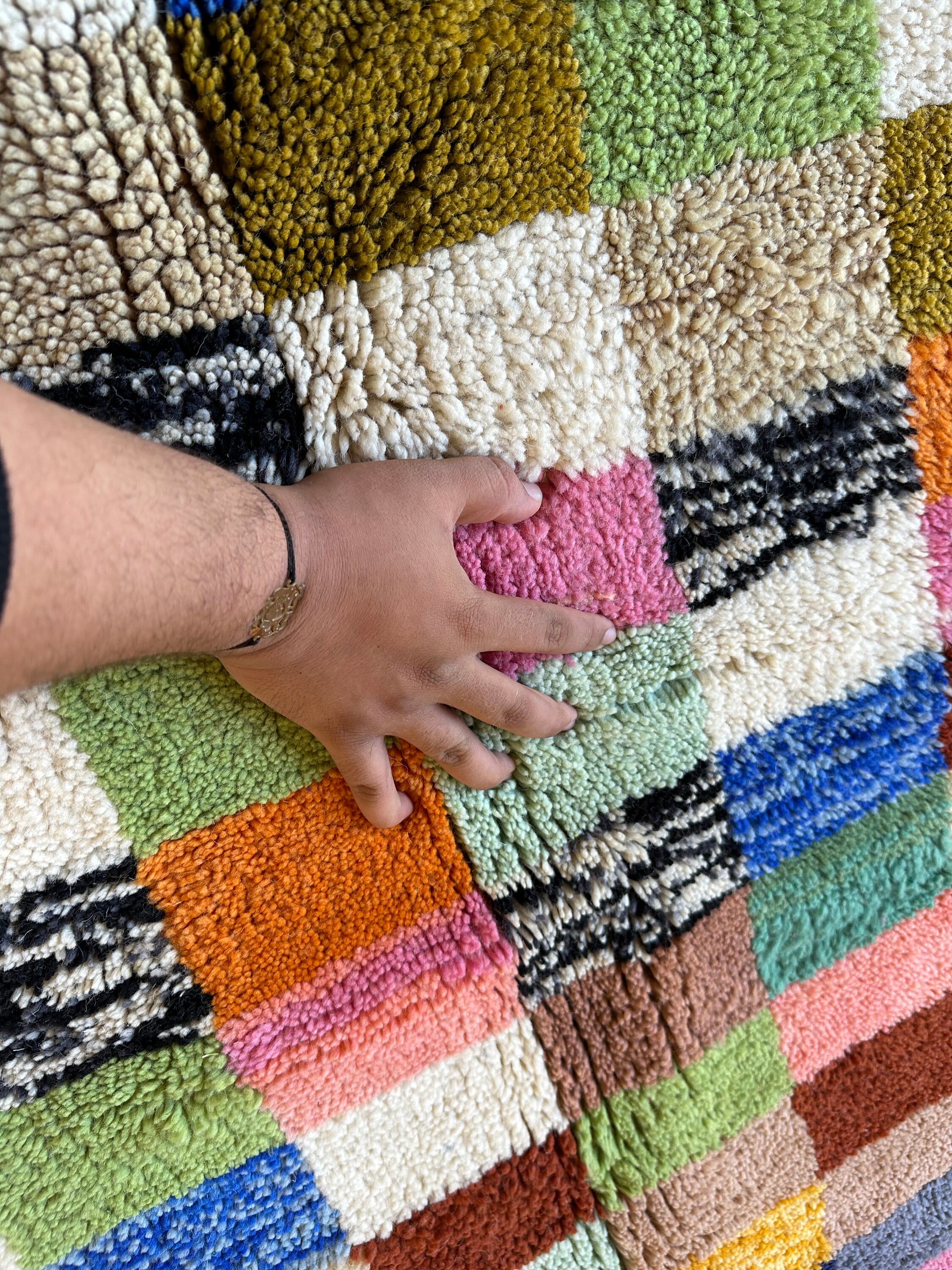Transform your space with this eye-catching multicolor checkered Moroccan rug! Handwoven from soft wool, this Beni Ourain masterpiece blends timeless Berber tradition with a modern touch. Its bold, vibrant pattern adds warmth and character to any bohemian or eclectic home. Perfect for the living room, bedroom, or creative space—bring home a one-of-a-kind statement piece today!