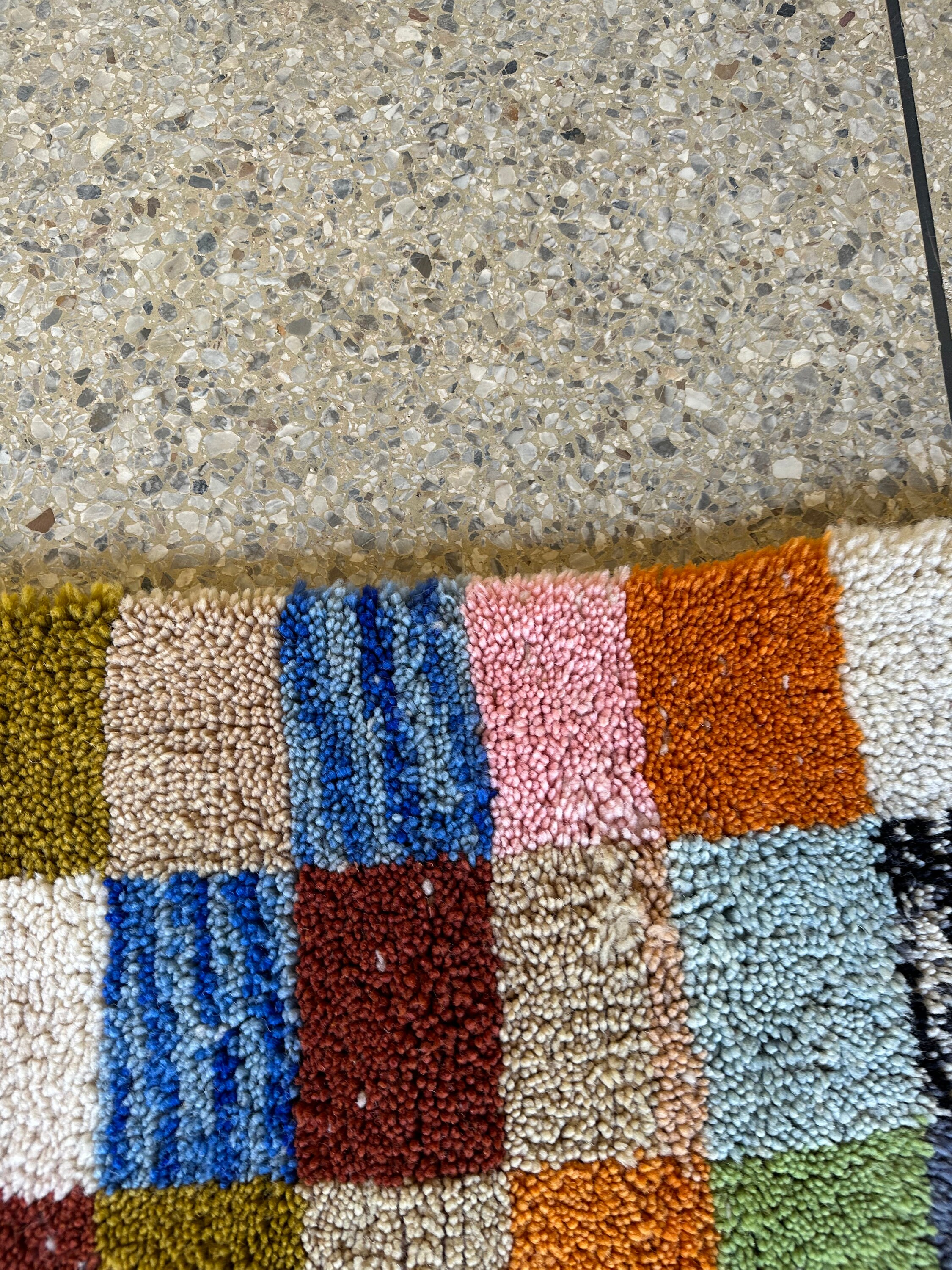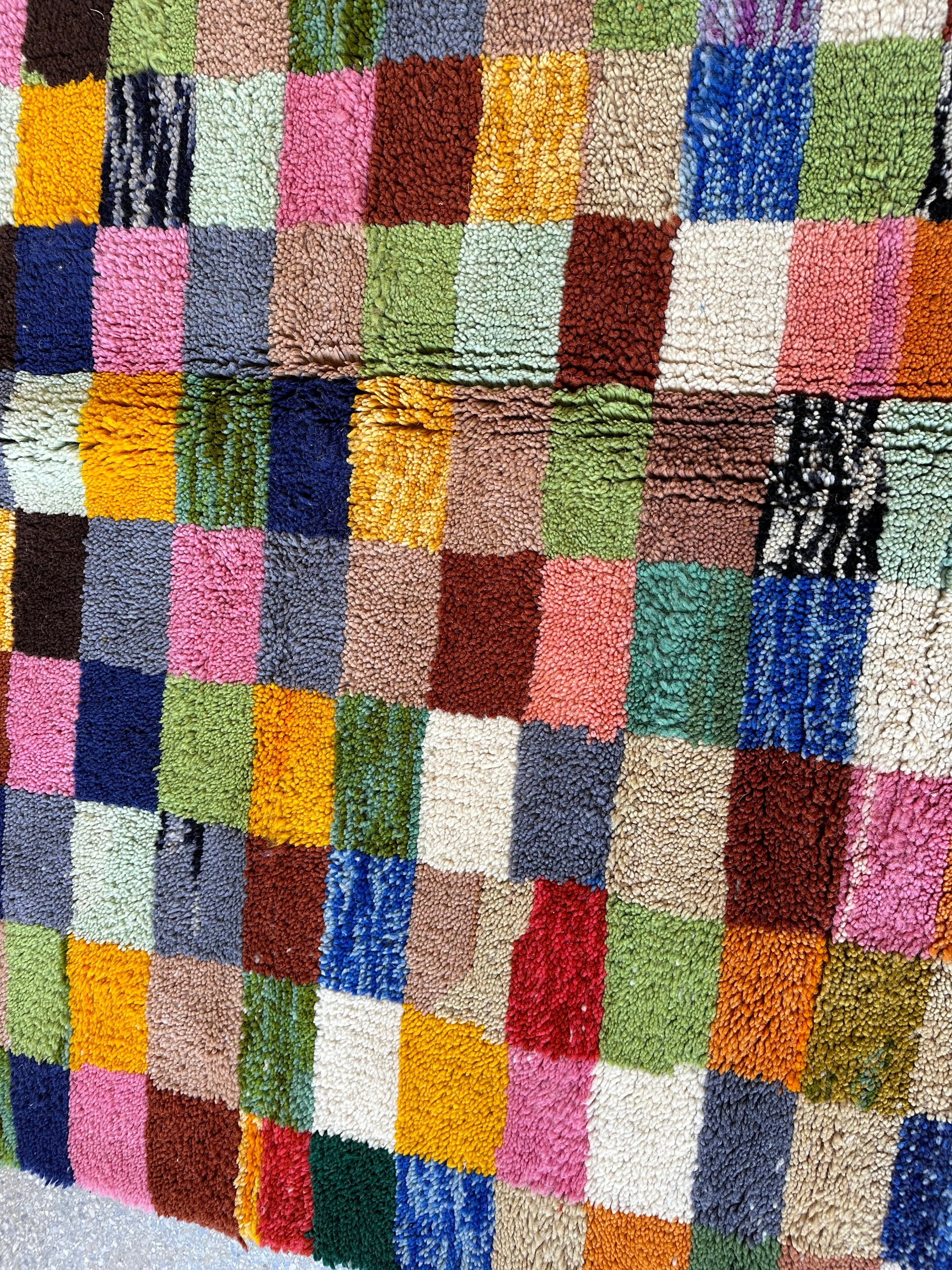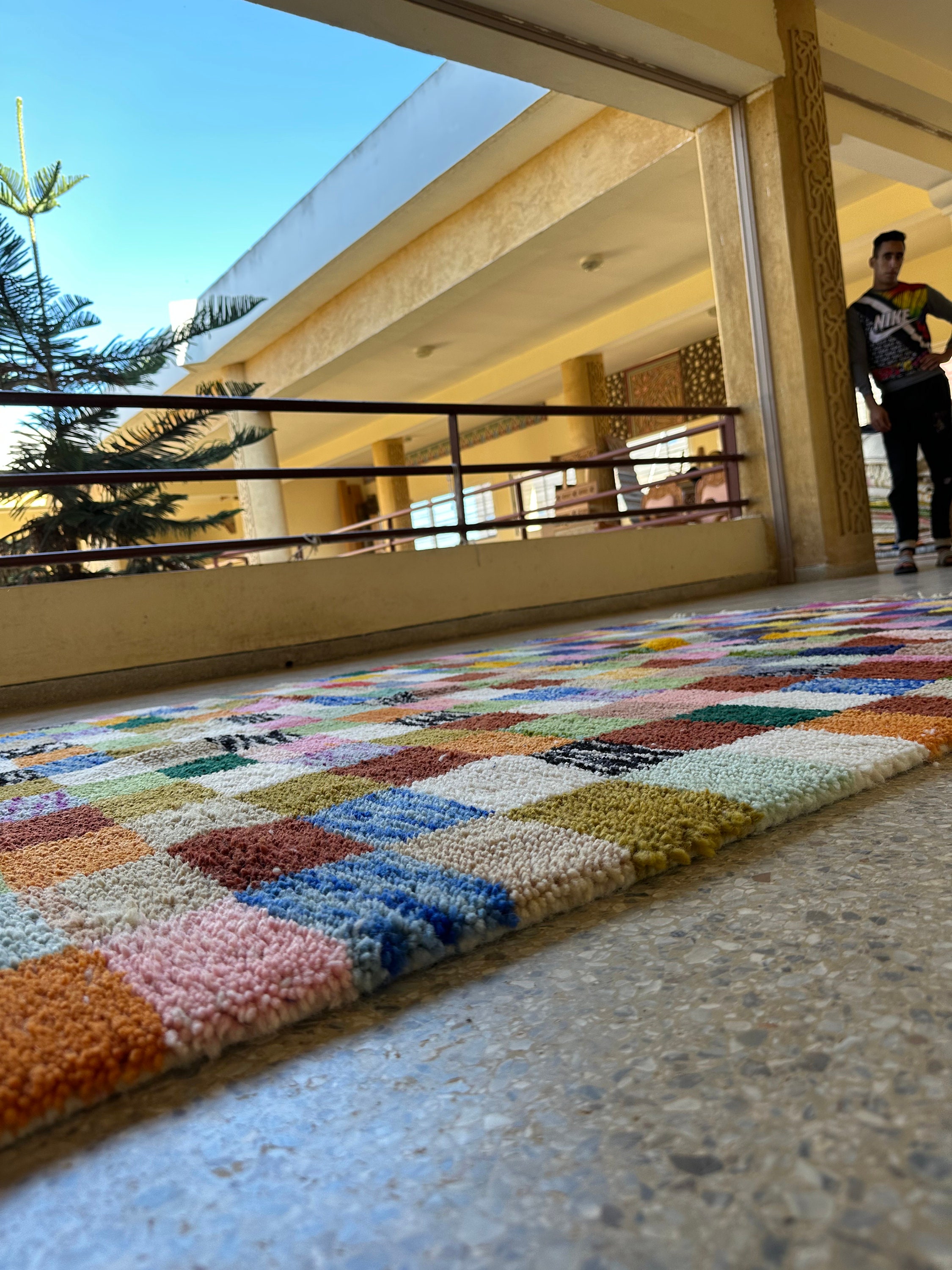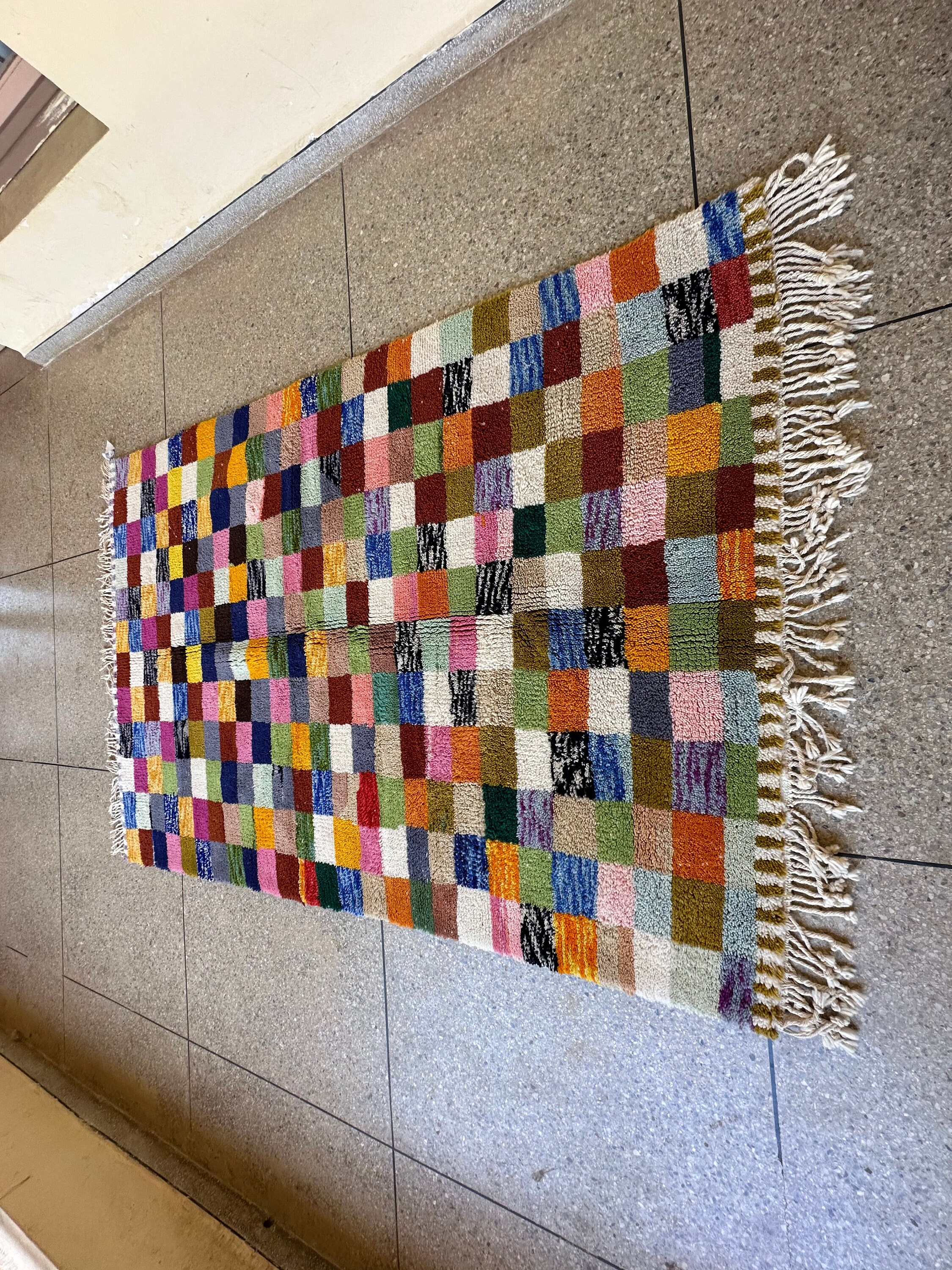 Transform your space with this eye-catching multicolor checkered Moroccan rug! Handwoven from soft wool, this Beni Ourain masterpiece blends timeless Berber tradition with a modern touch. Its bold, vibrant pattern adds warmth and character to any bohemian or eclectic home. Perfect for the living room, bedroom, or creative space—bring home a one-of-a-kind statement piece today!