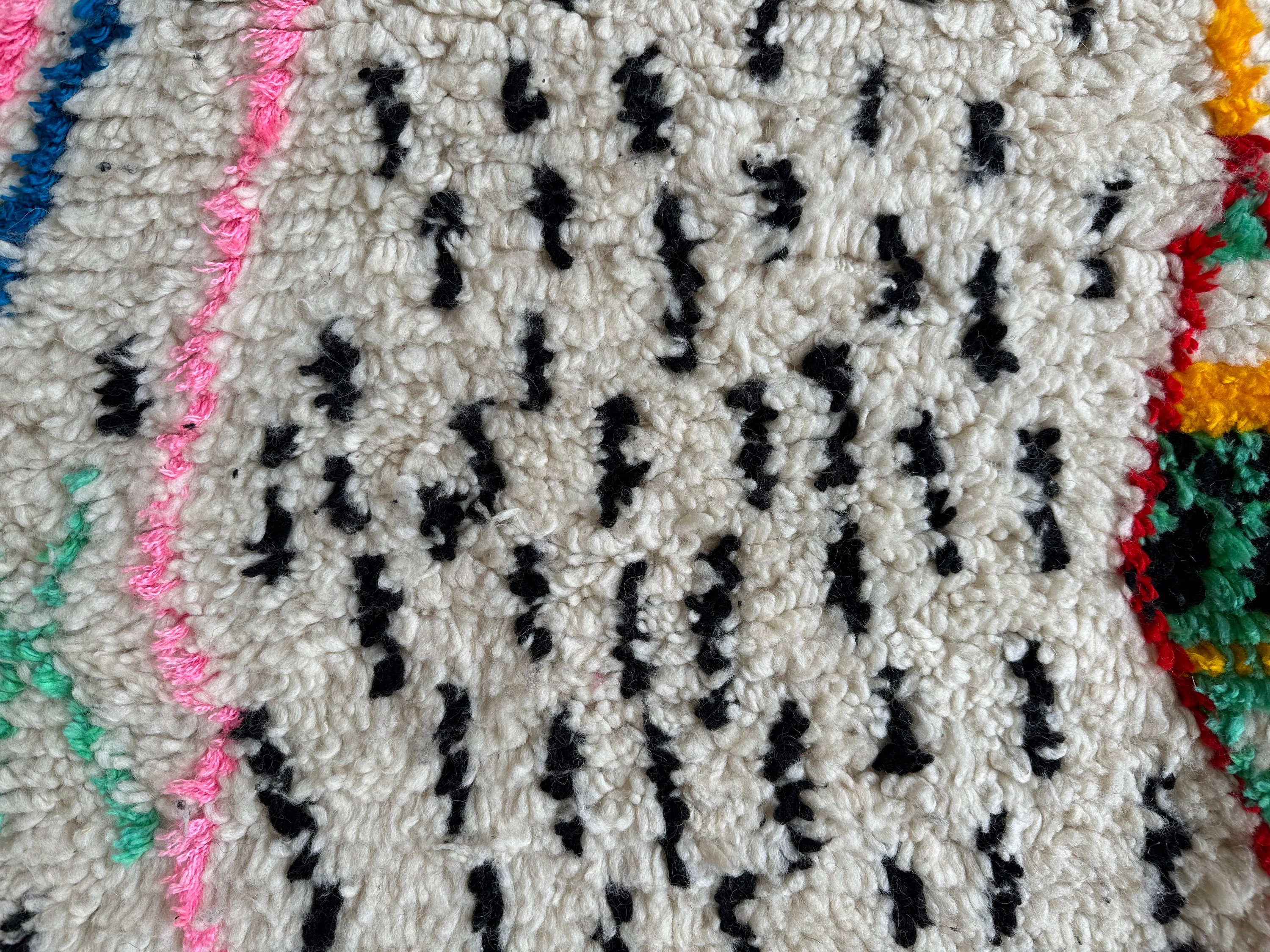 Moroccan Dotted Rug | Handmade Wool Beni Ourain Rug | Abstract Area Black and White Rug | Bohemian Berber Carpet