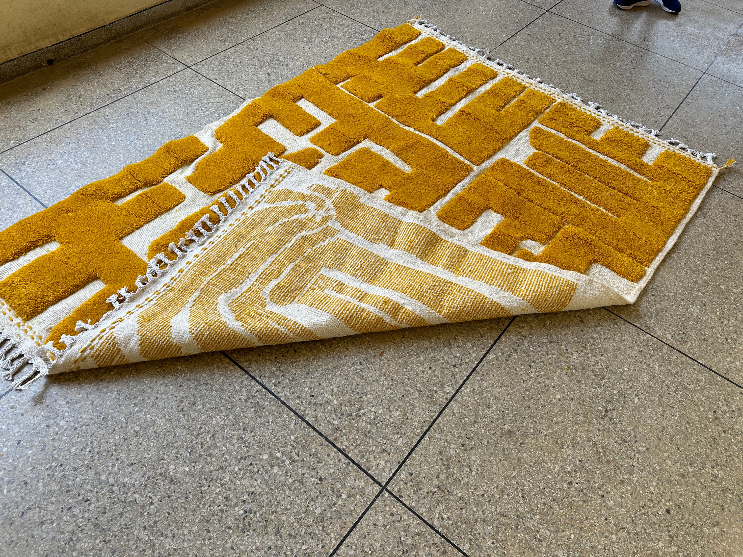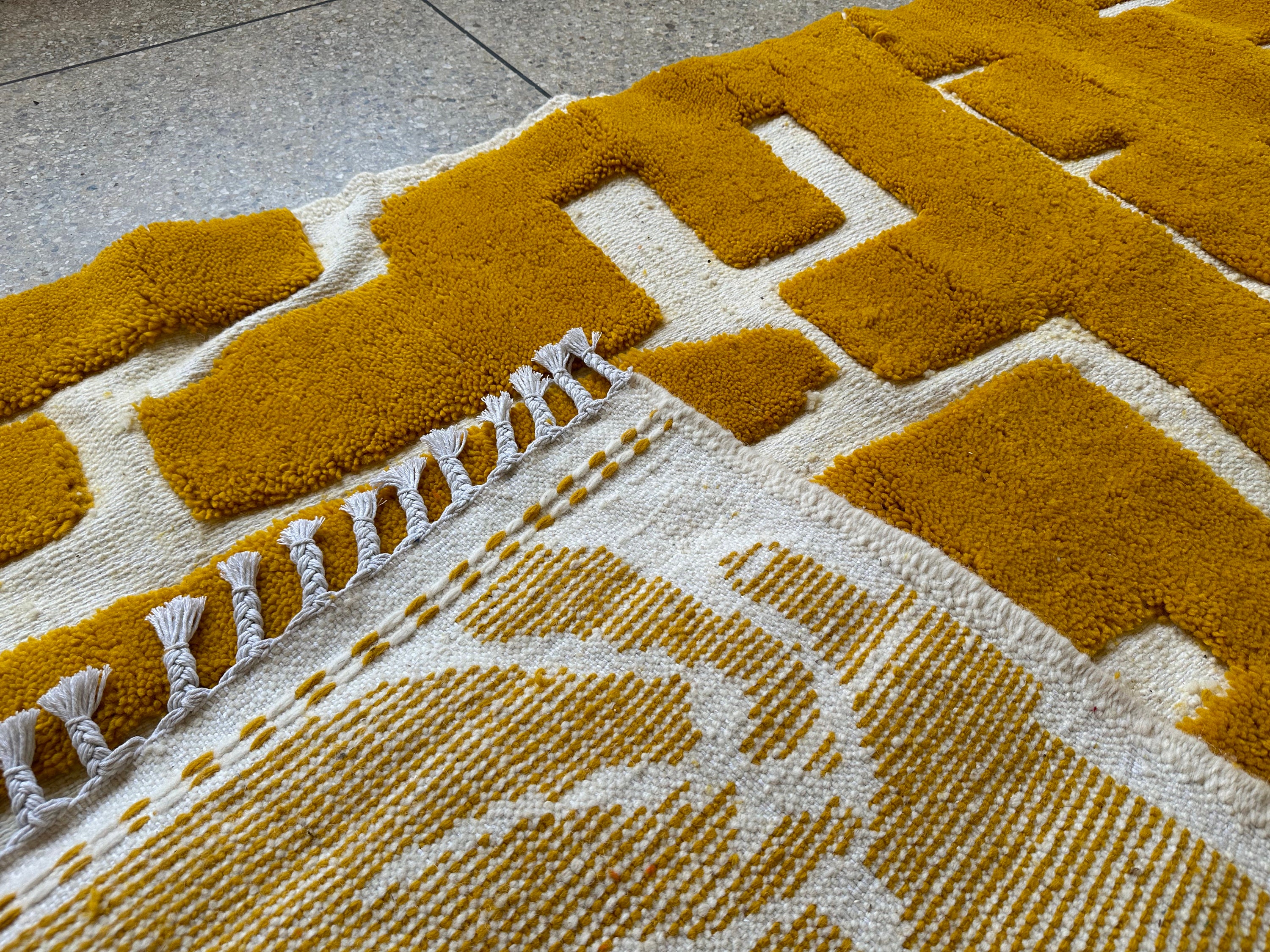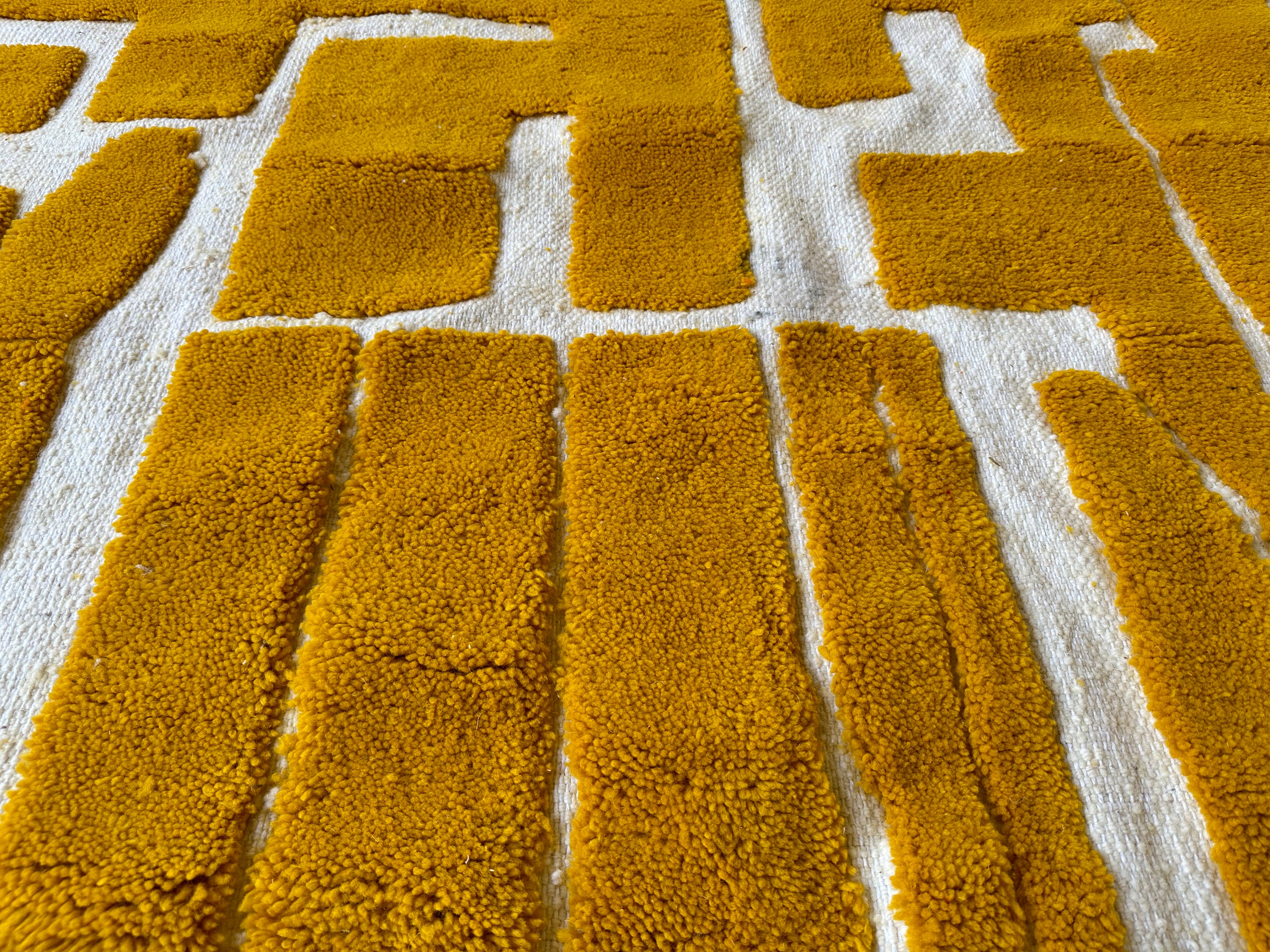Transform your space with this Custom Beni Ourain Rug featuring a contemporary Berber area design in vibrant yellow. Handcrafted with love, this Moroccan wool rug offers both comfort and style. Add a touch of sophistication to your home decor with this unique piece!