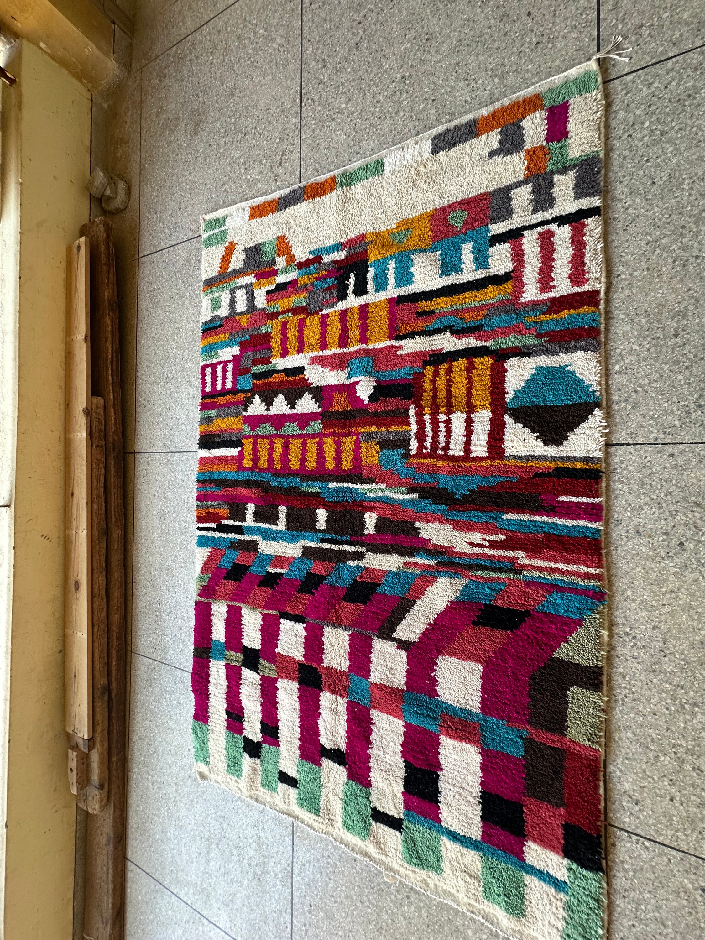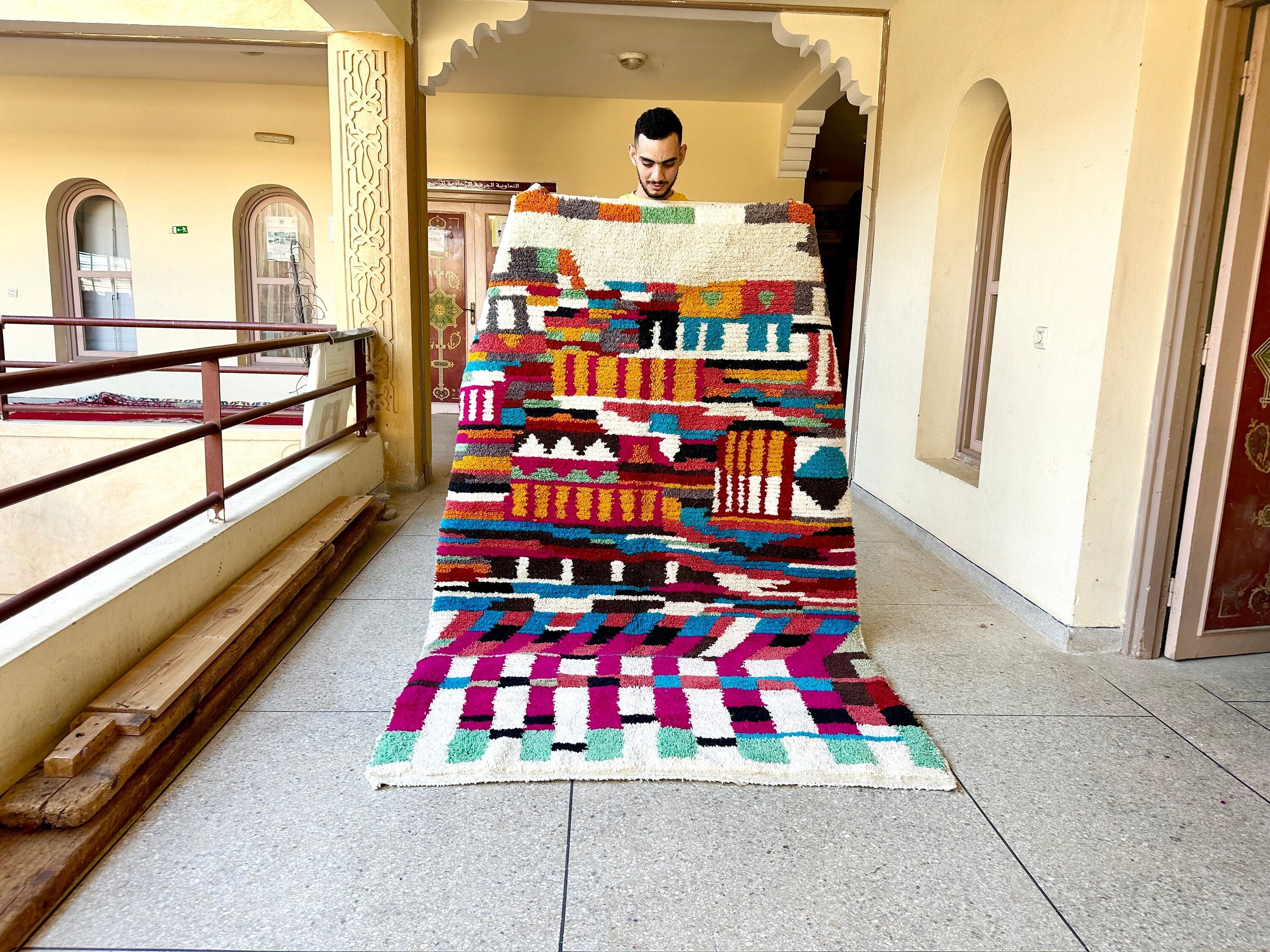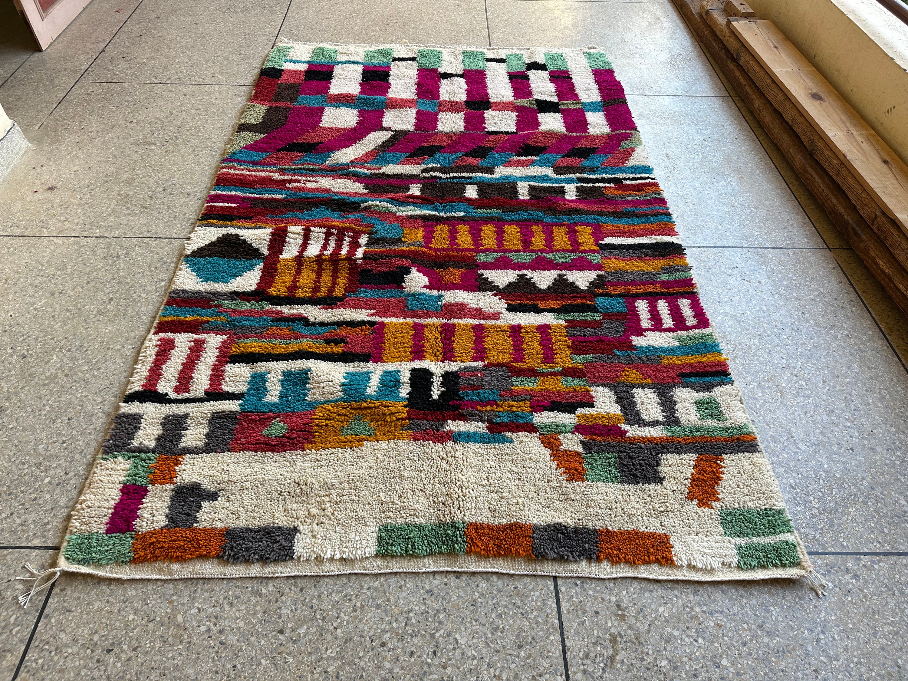 Add a touch of bohemian charm to your space with this Multicolor Abstract Beni Ourain Rug. Handmade from soft wool, this custom woven Moroccan carpet blends traditional Berber artistry with a vibrant, eclectic design. Perfect for a living room, bedroom, or cozy home decor, this unique area rug brings warmth, texture, and a modern boho feel to any space.