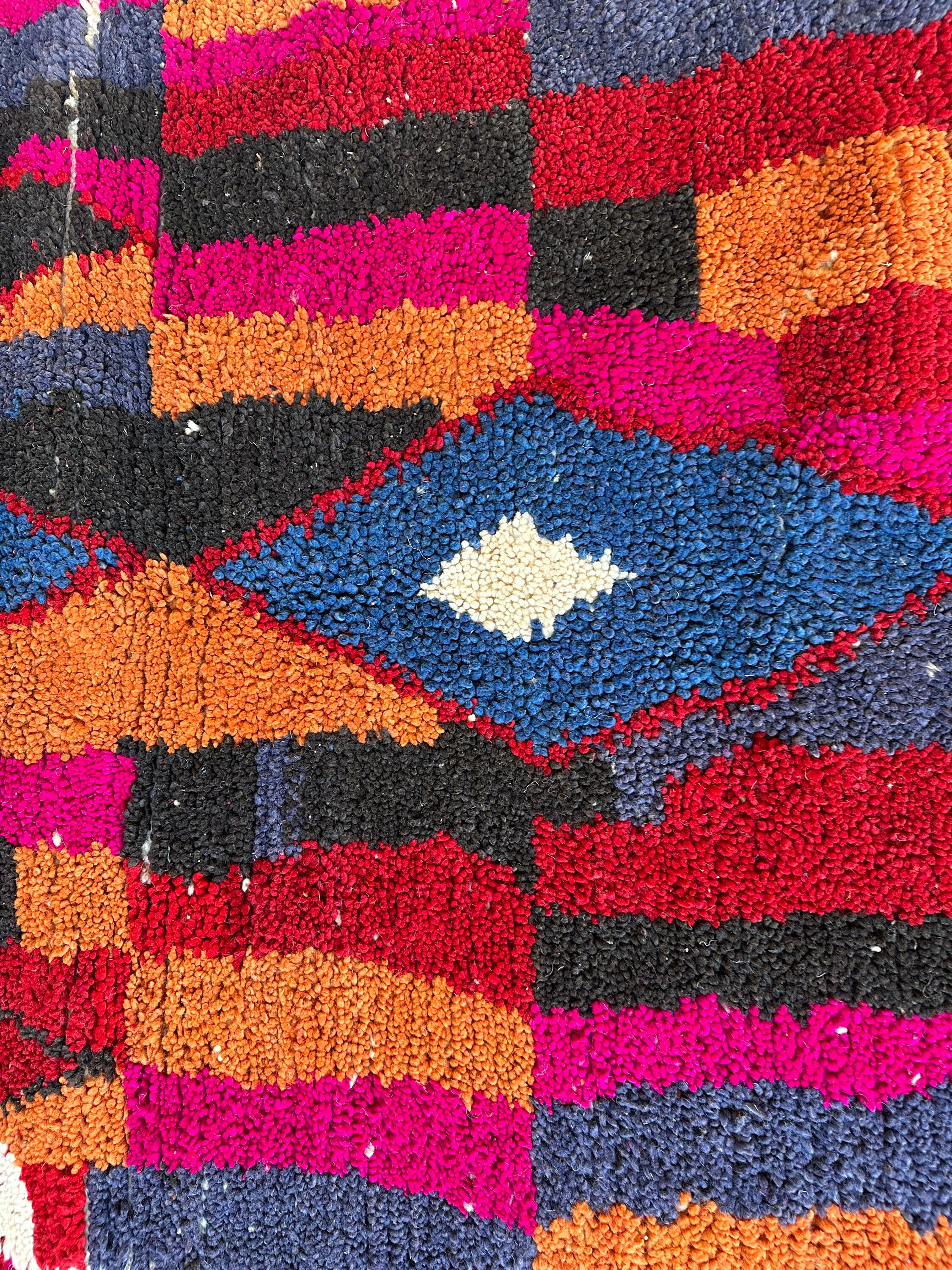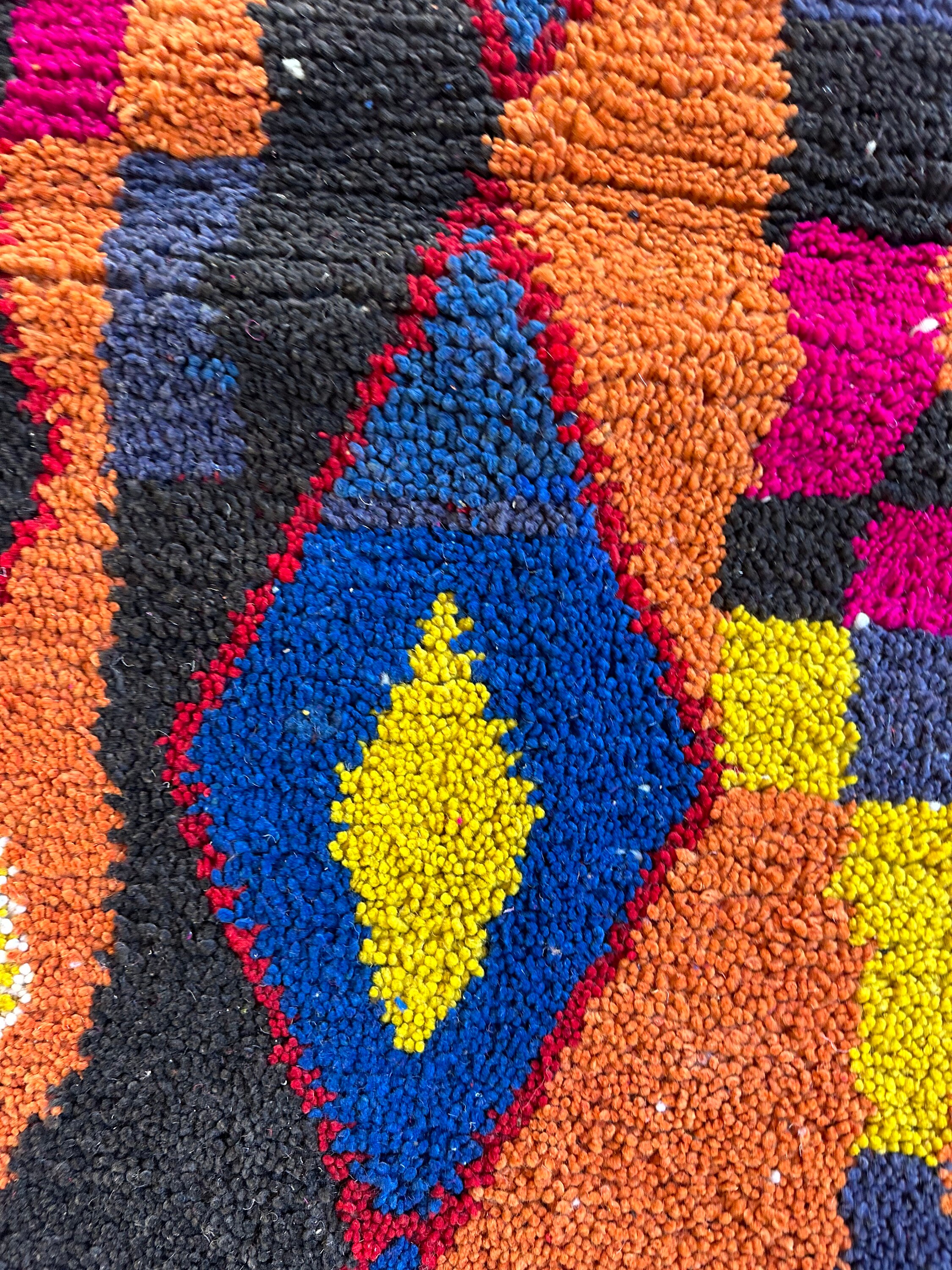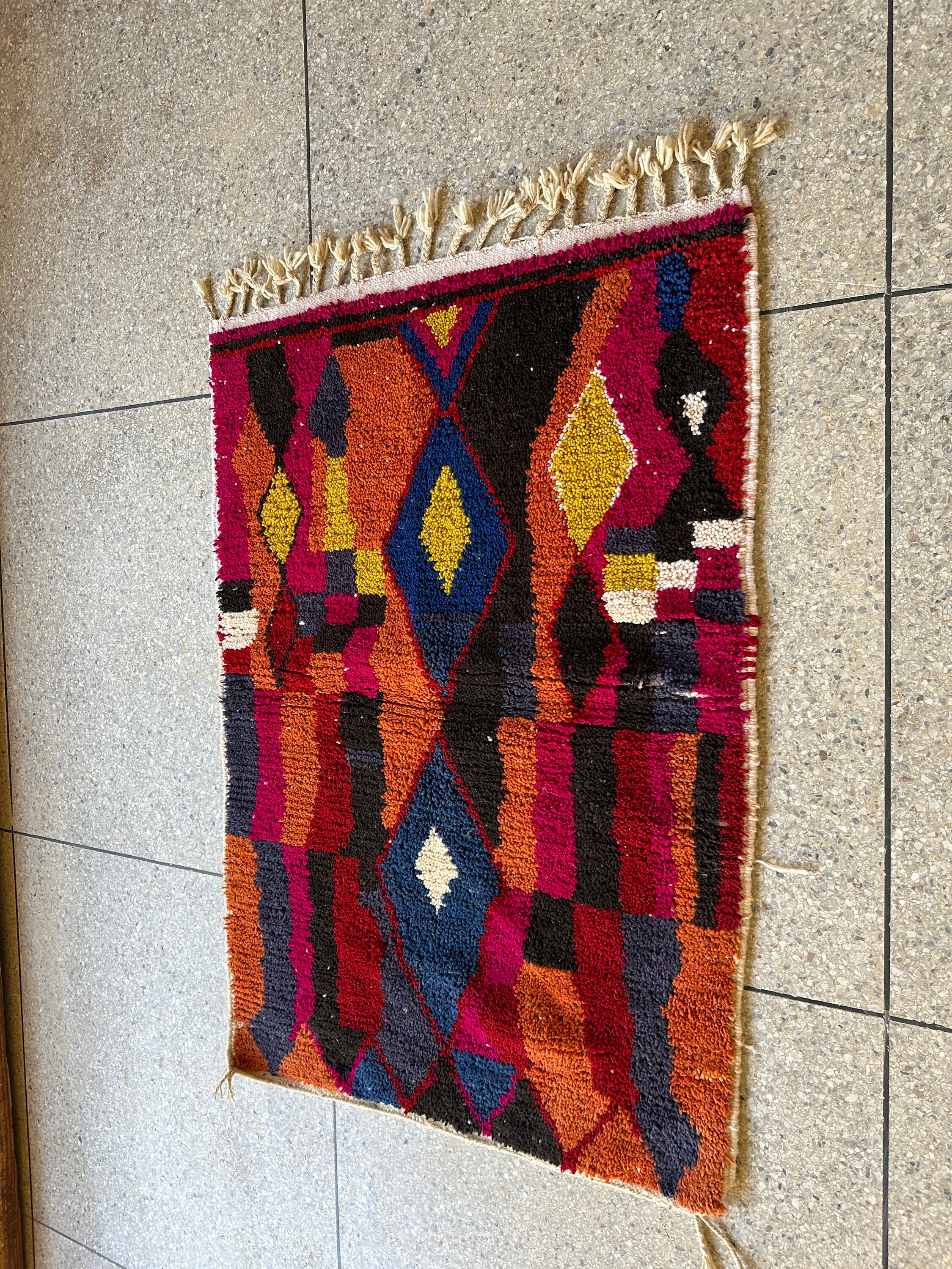 Add a burst of color to your space with this vibrant multicolor abstract Beni Ourain rug! Handwoven from the finest sheep wool, this unique Moroccan rug blends traditional Berber craftsmanship with a modern boho-chic aesthetic. Its soft, plush texture makes it a cozy addition to any living room, bedroom, or creative space. Designed for eclectic home styles, this one-of-a-kind wool rug brings warmth, character, and artistic flair to your decor. Elevate your space with an authentic Moroccan touch—order your custom handmade rug today!.
