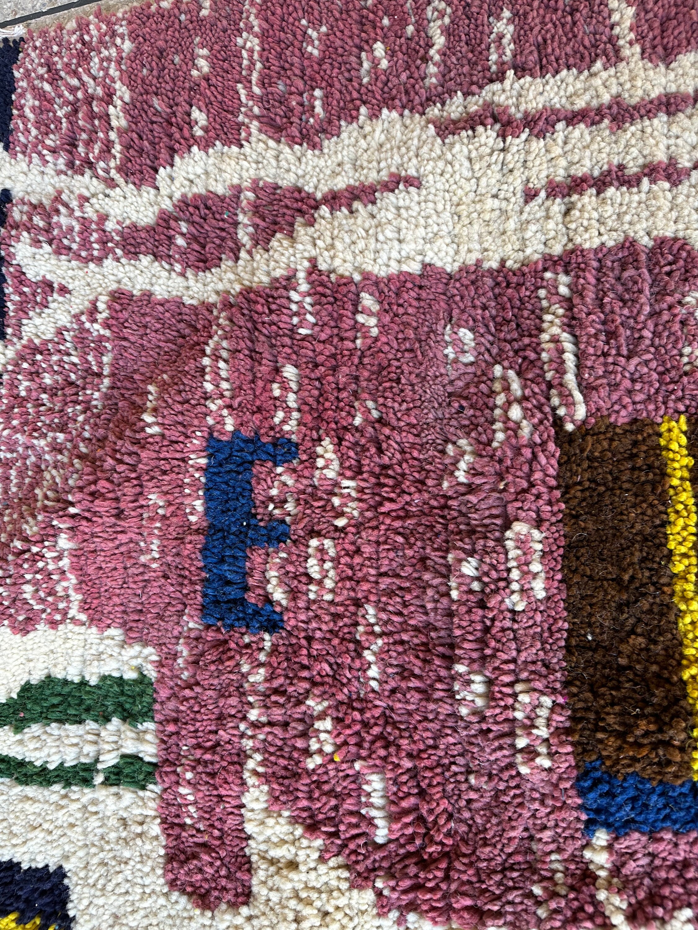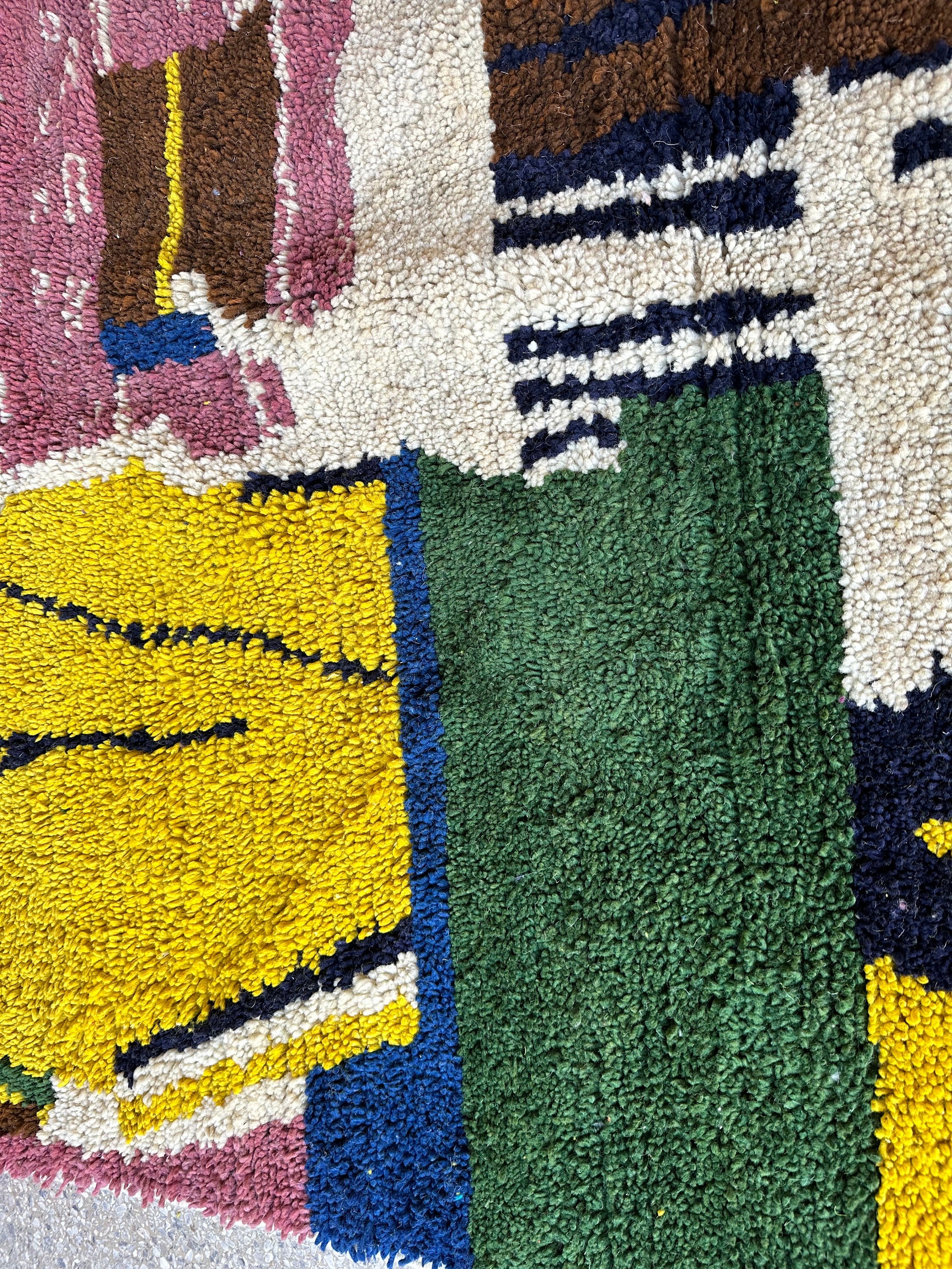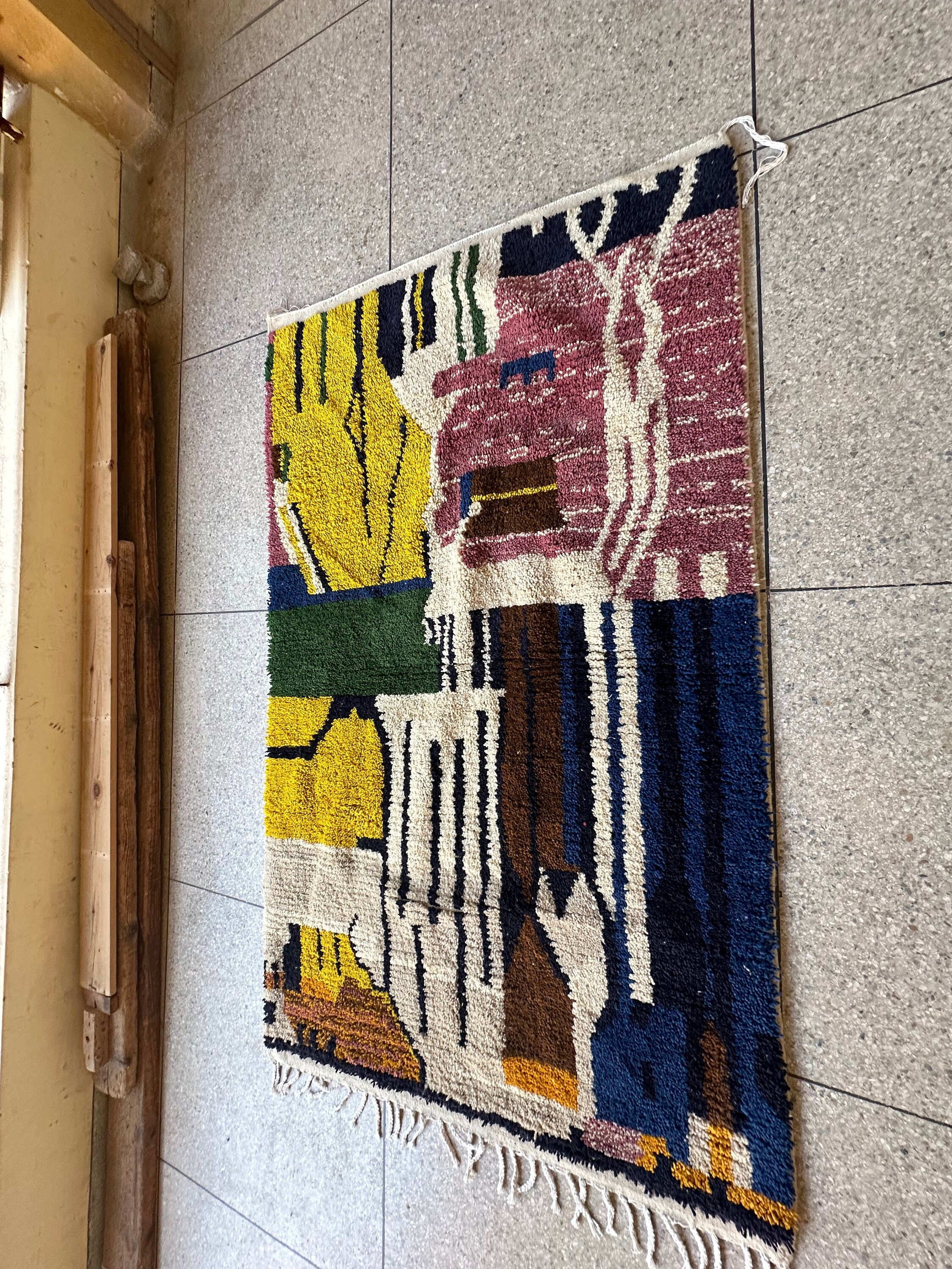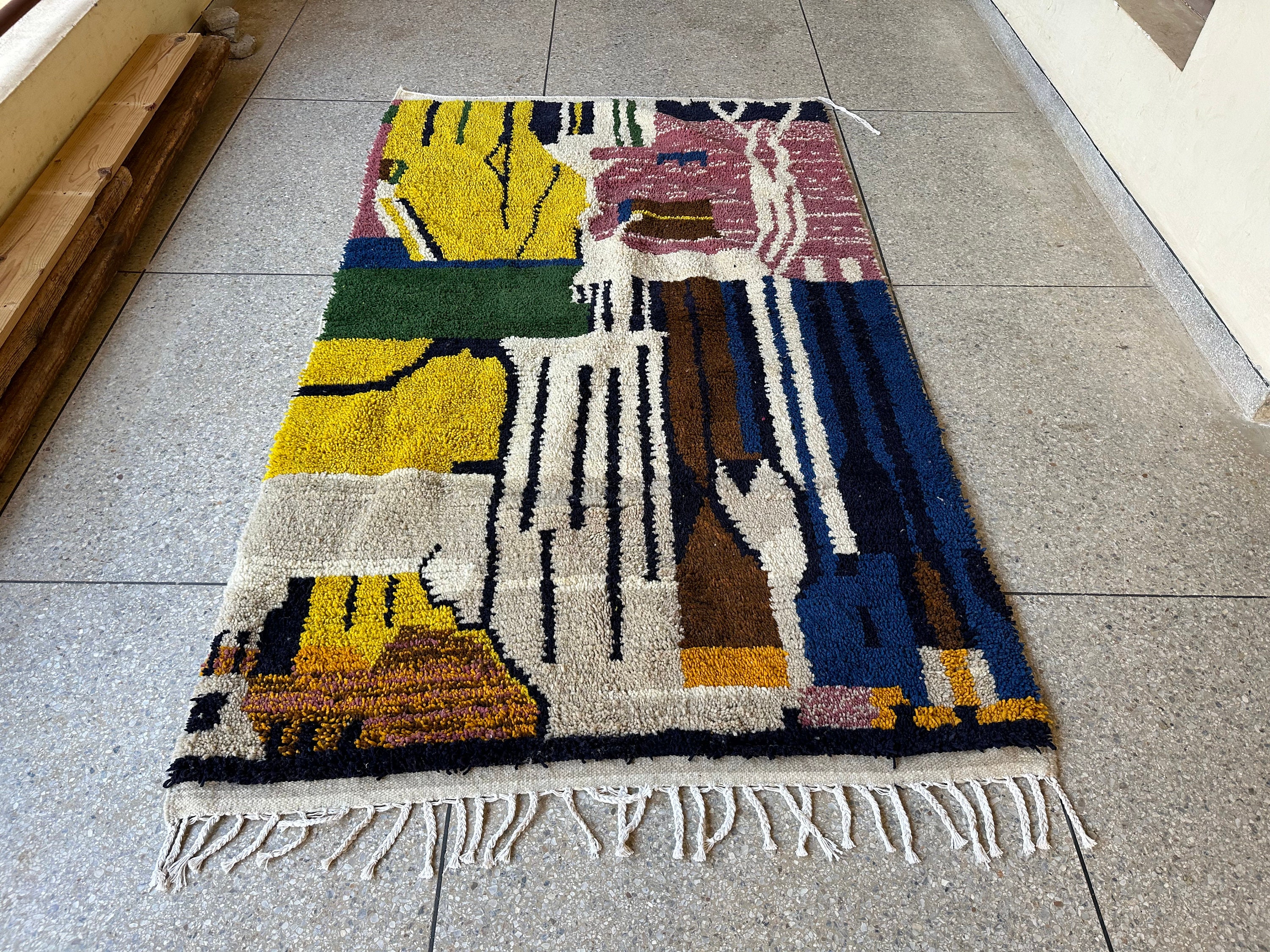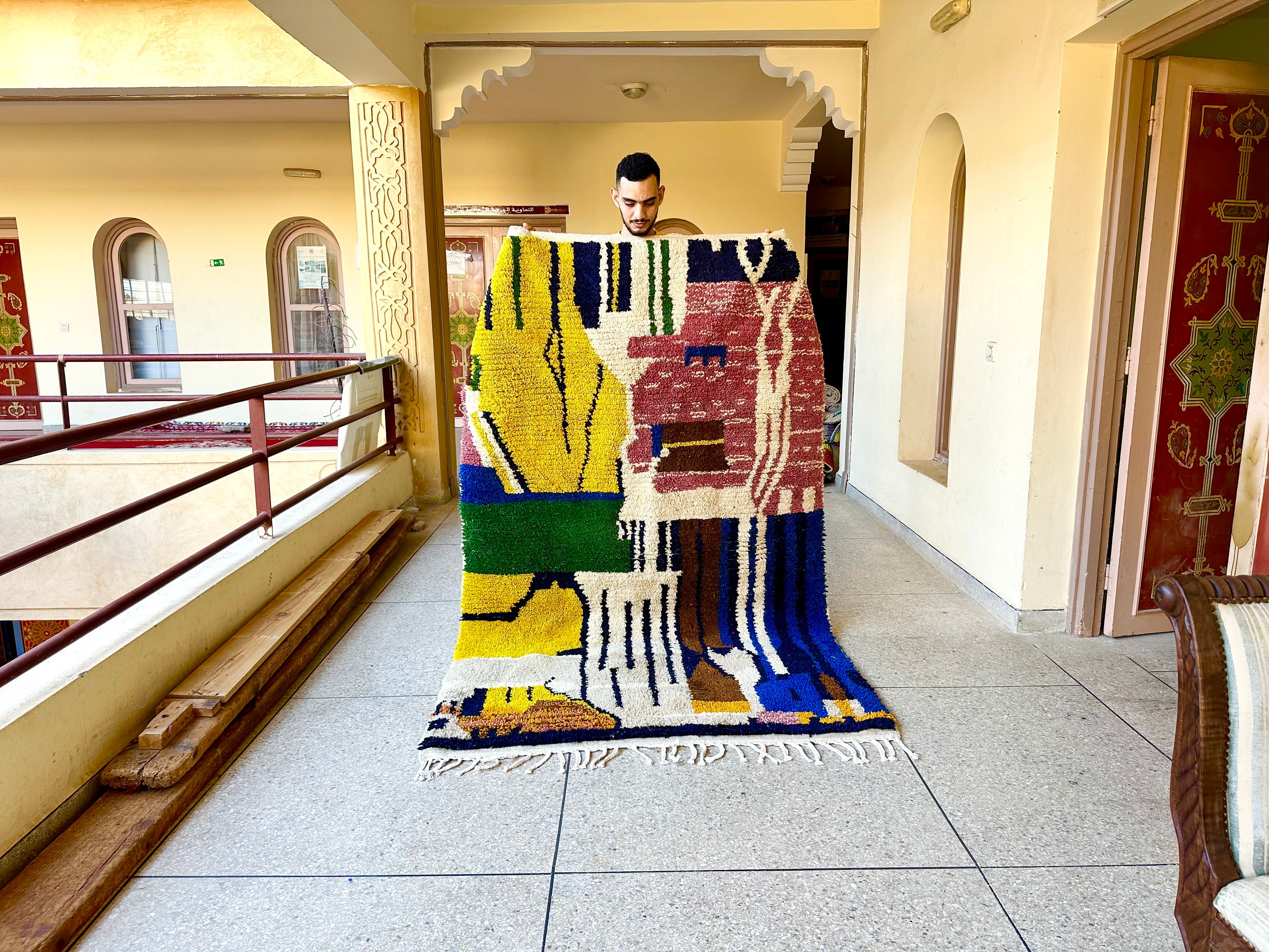 Elevate your space with this stunning Bohemian area rug, featuring a vibrant multicolor abstract design. Handwoven from premium soft wool, this Moroccan rug adds warmth, texture, and artistic charm to any living room or boho-inspired home decor.