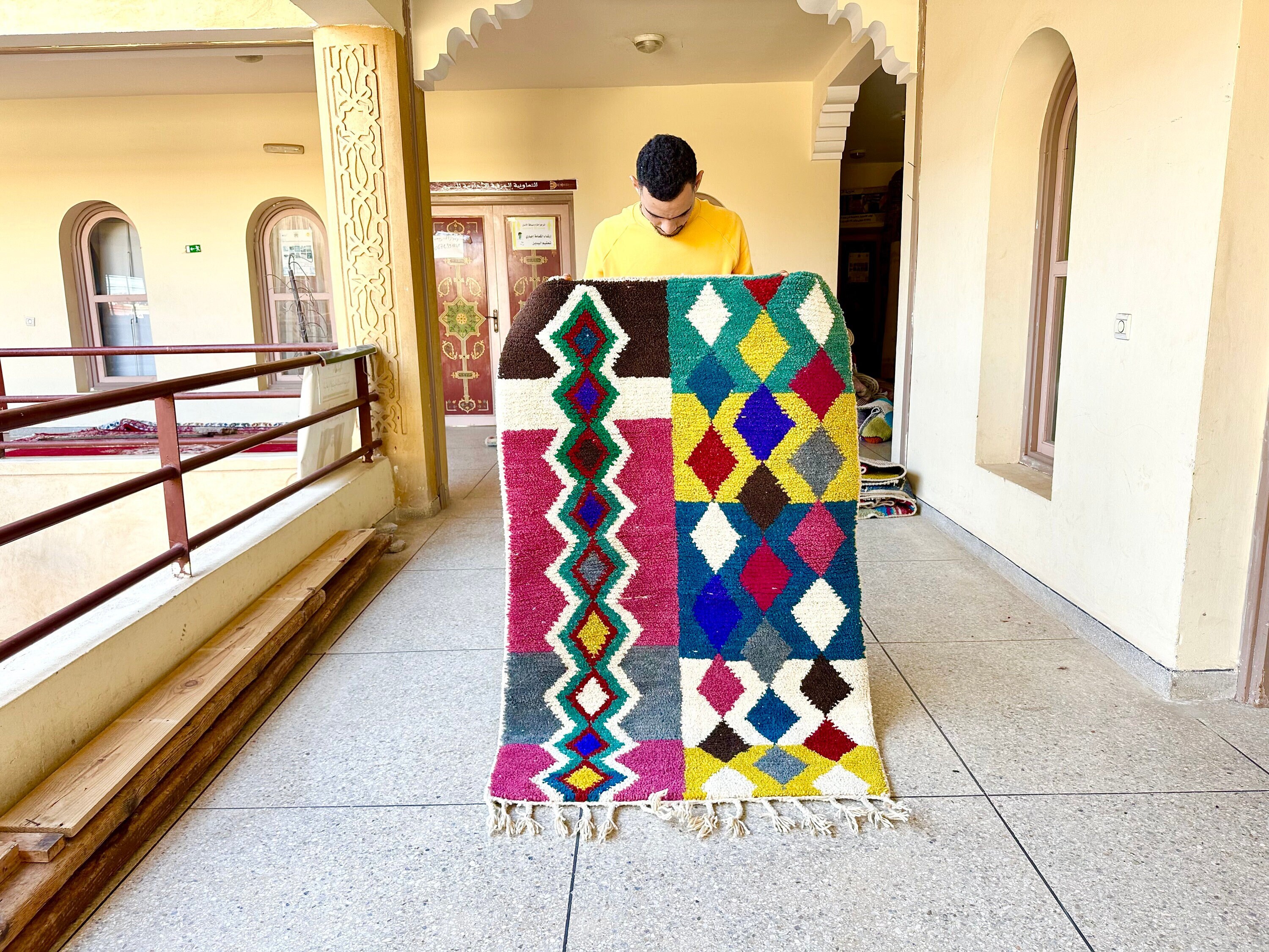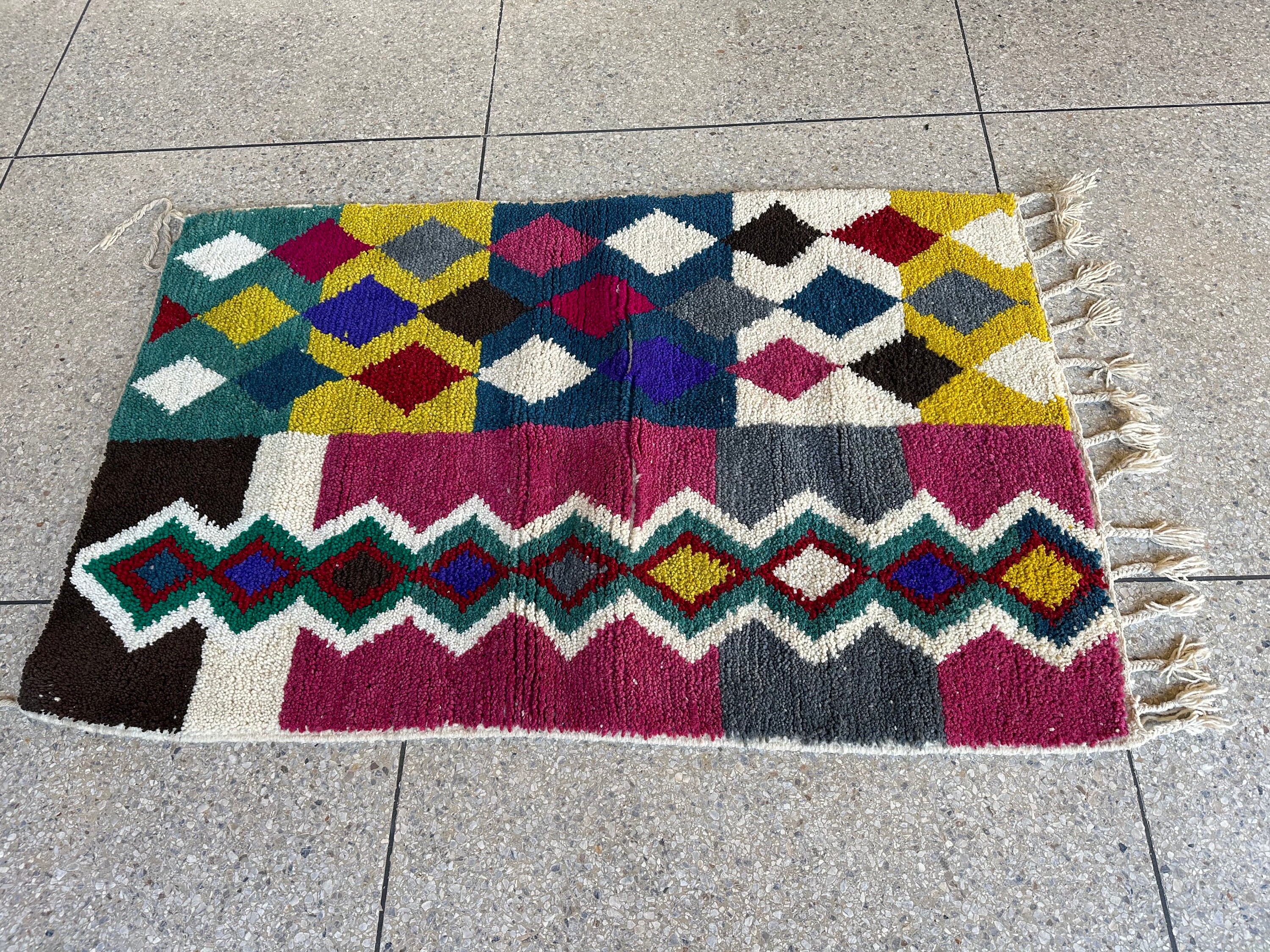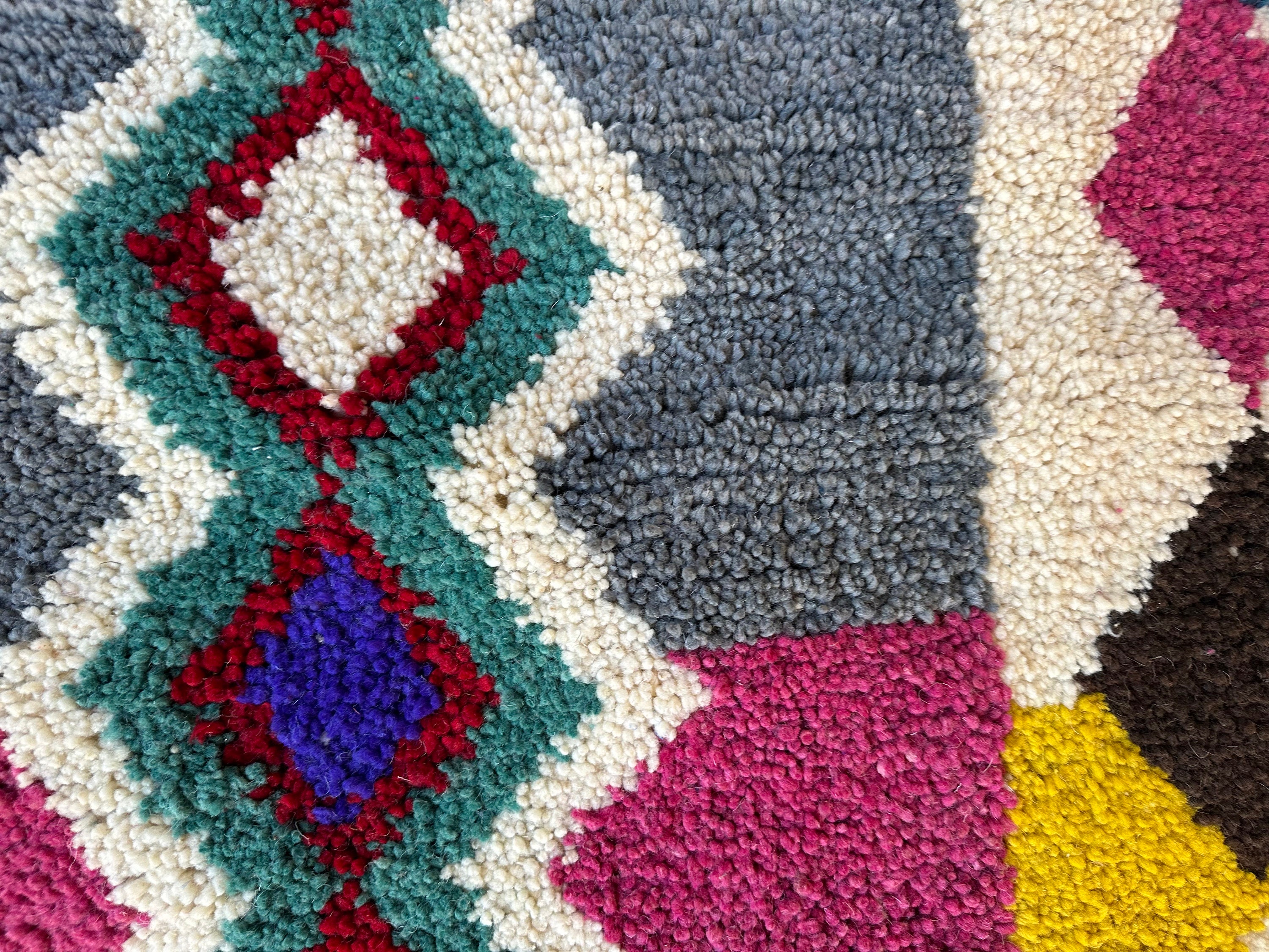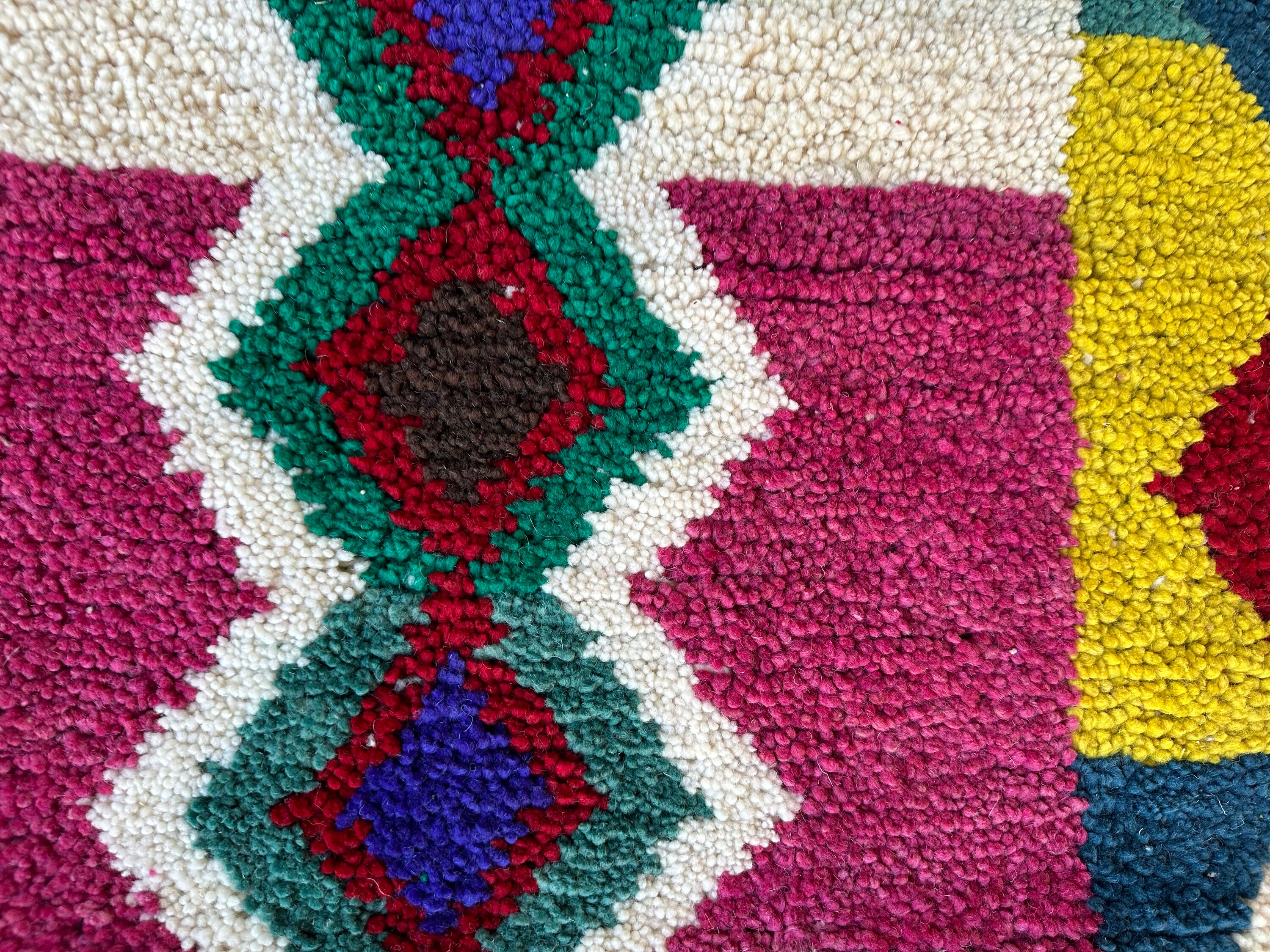 This Boujaad multicolor rug brings bold Moroccan energy into any space — handmade from soft wool with abstract patterns for a cozy boho vibe.