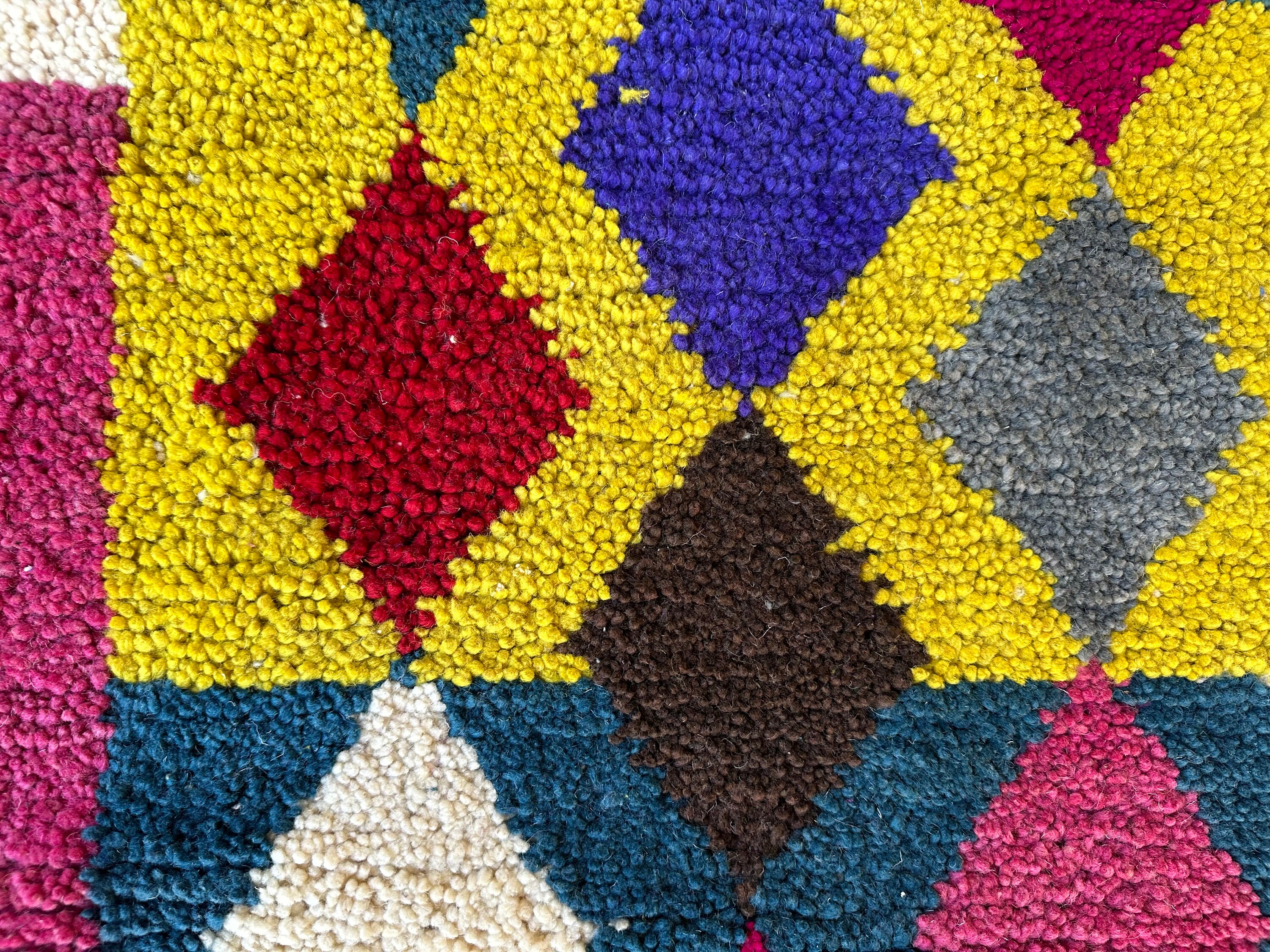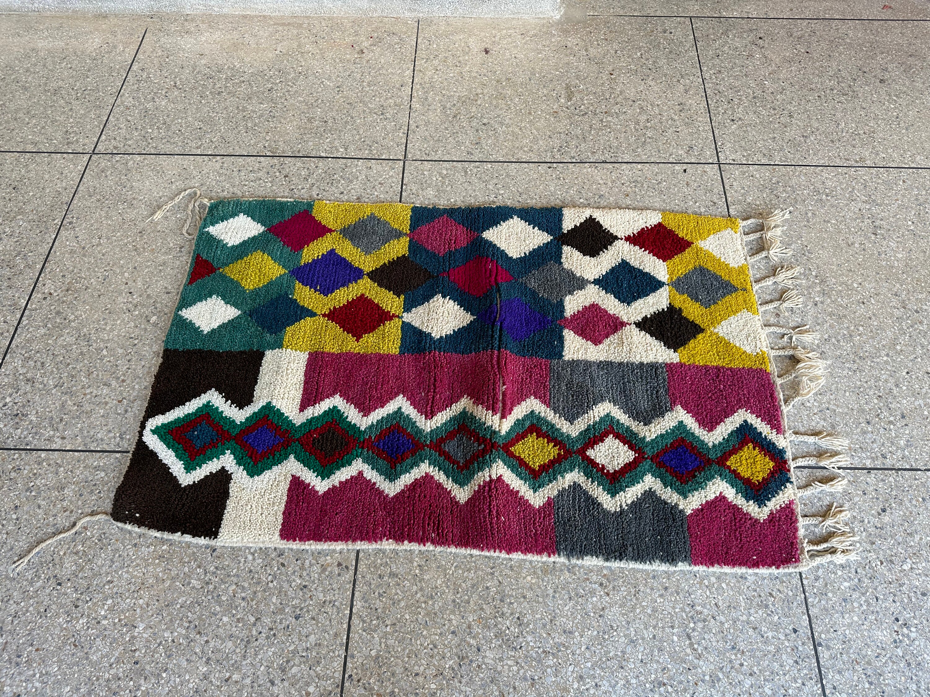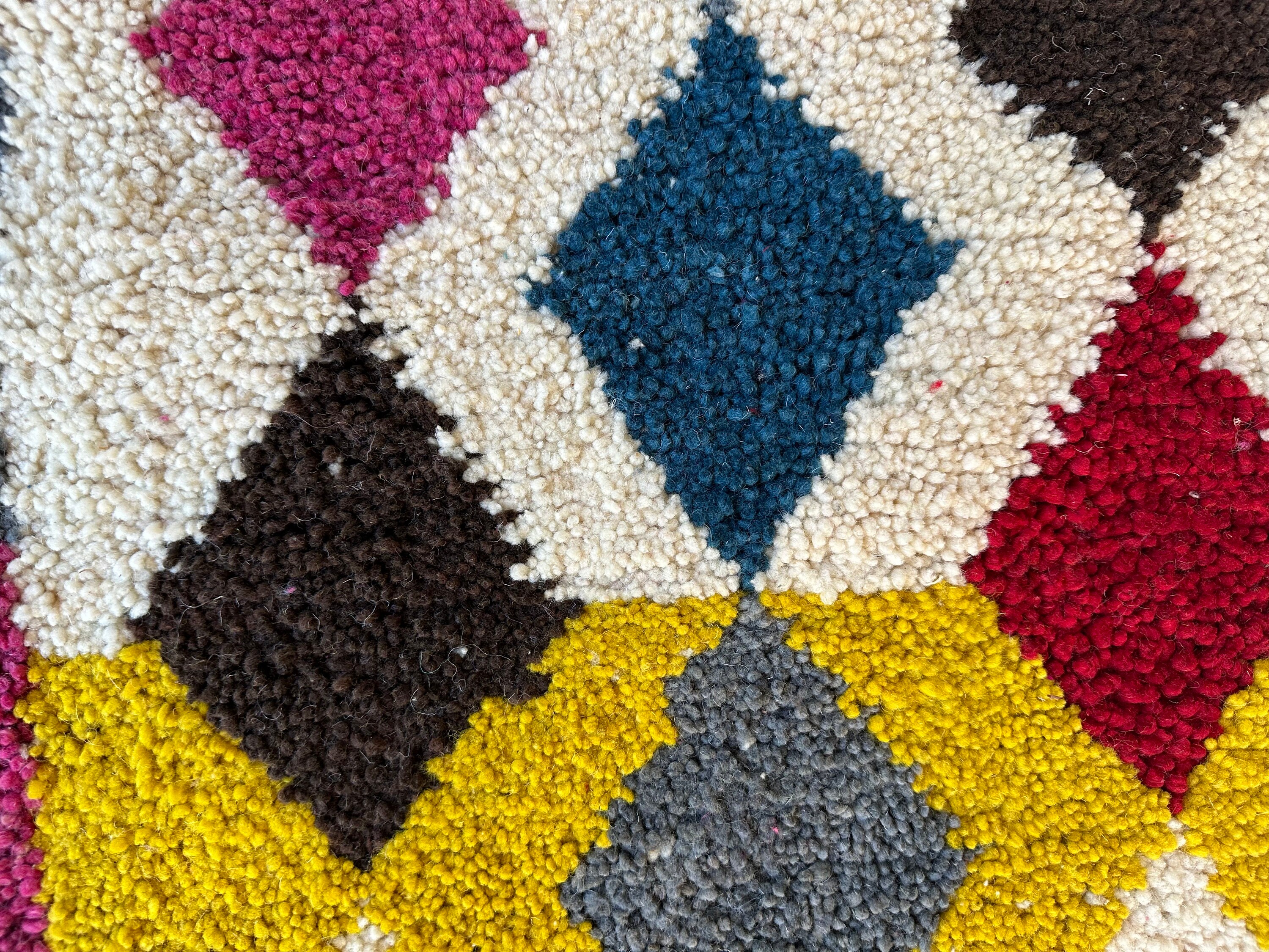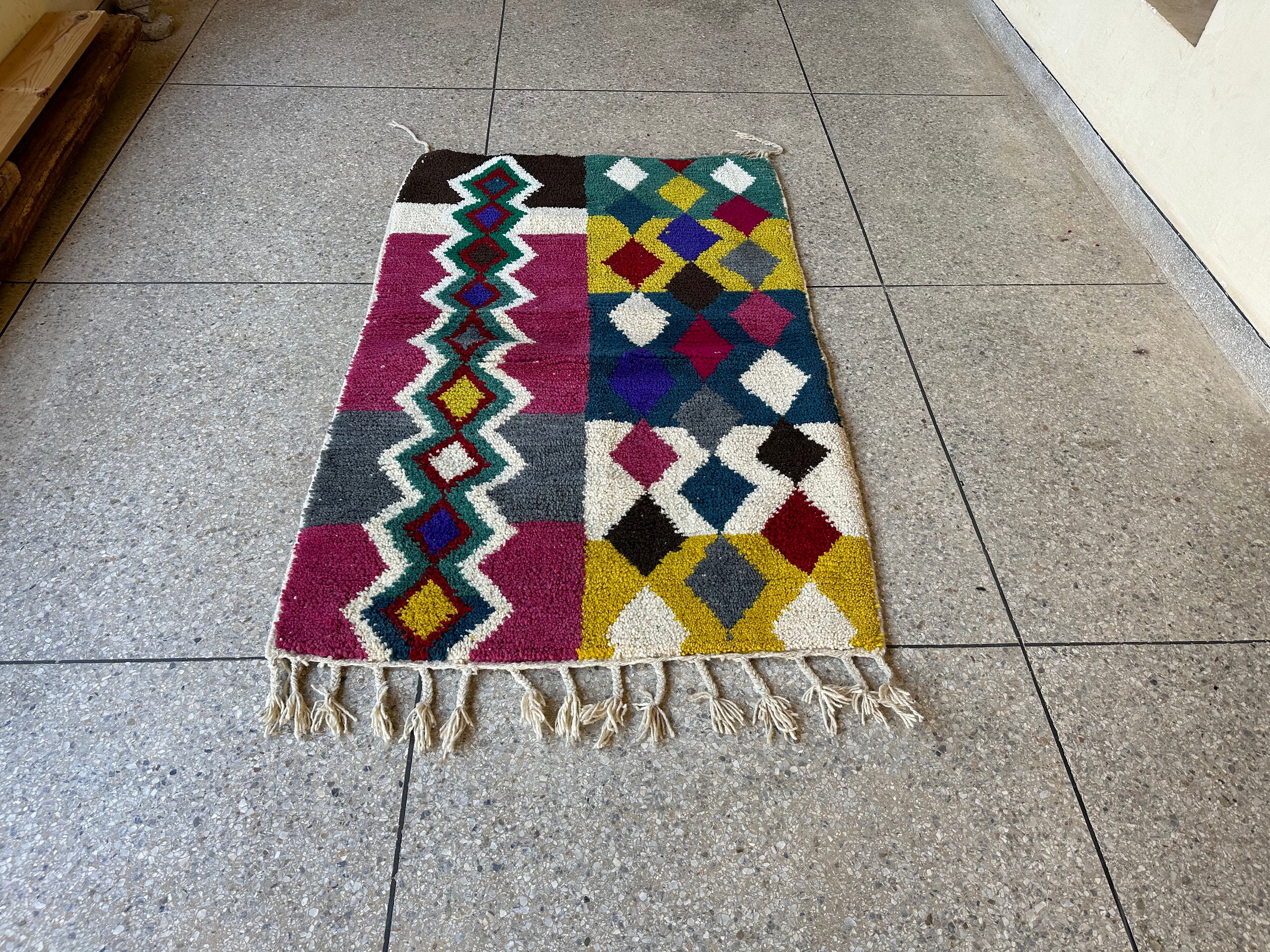 This Boujaad multicolor rug brings bold Moroccan energy into any space — handmade from soft wool with abstract patterns for a cozy boho vibe.
