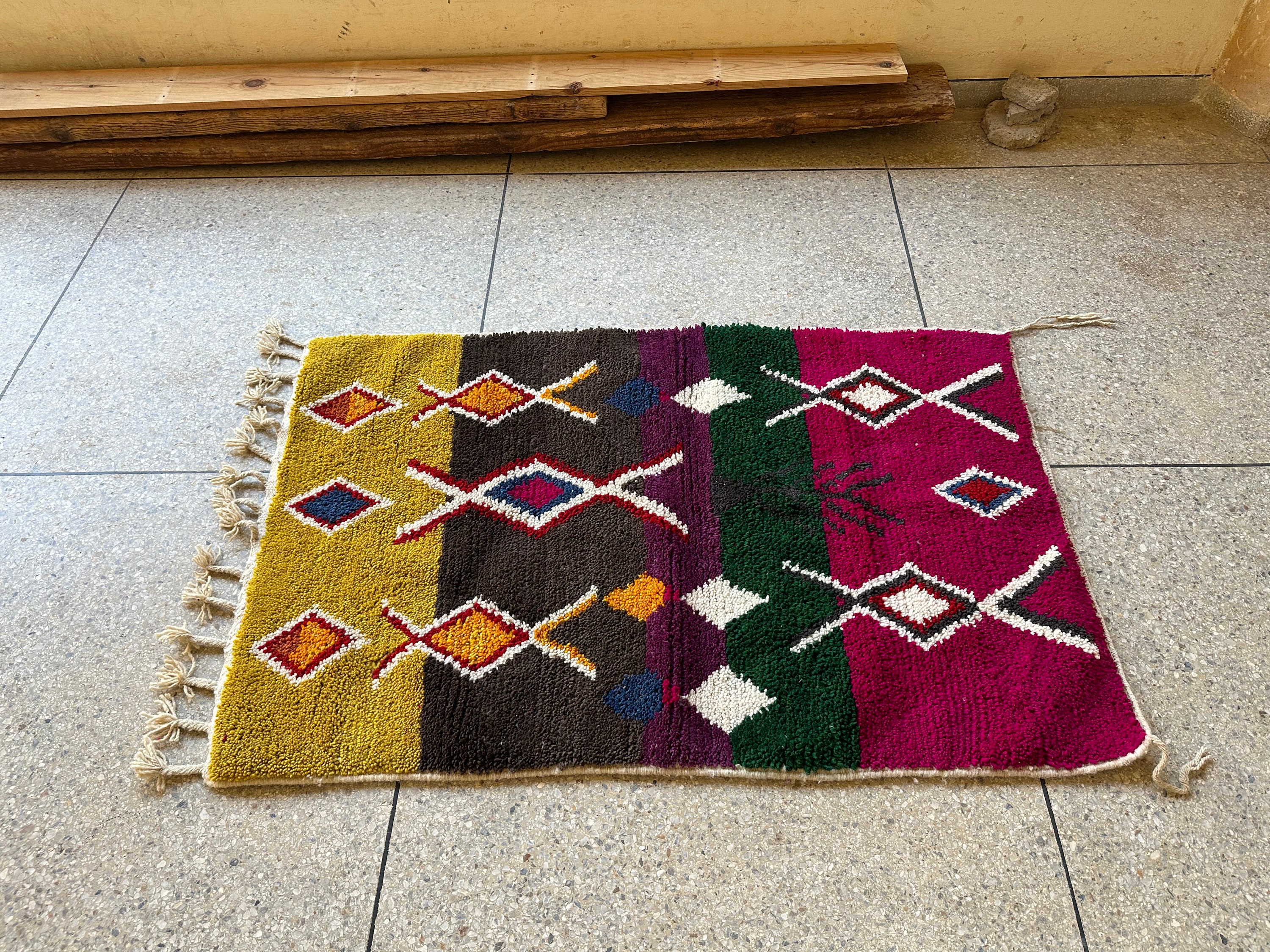 Add a touch of Moroccan artistry to your space with this Multicolor Abstract Beni Ourain Rug, a handwoven wool carpet crafted by skilled artisans. Its soft texture and vibrant abstract design make it a perfect custom area rug for bohemian home decor, living rooms, bedrooms, or cozy spaces.