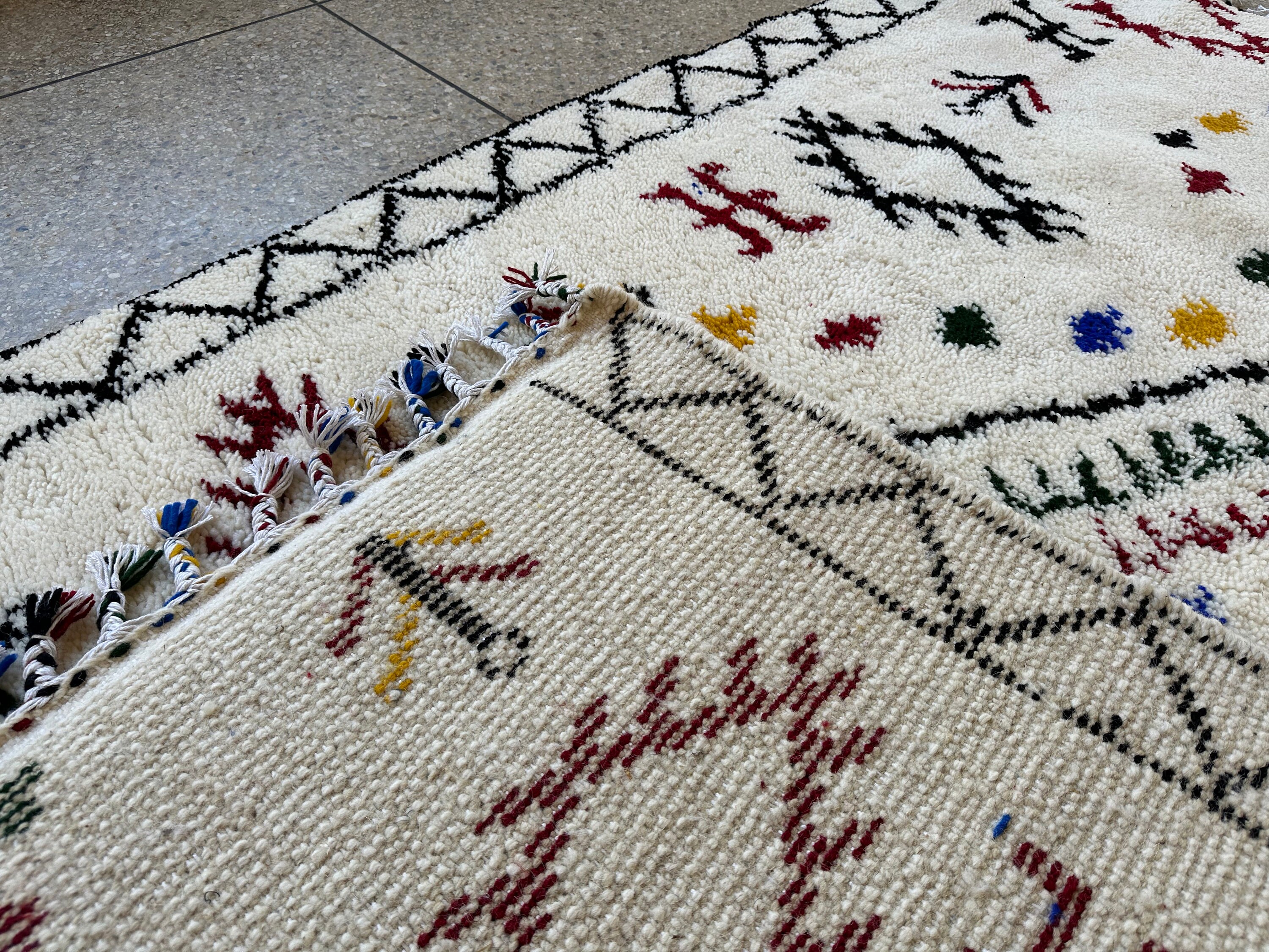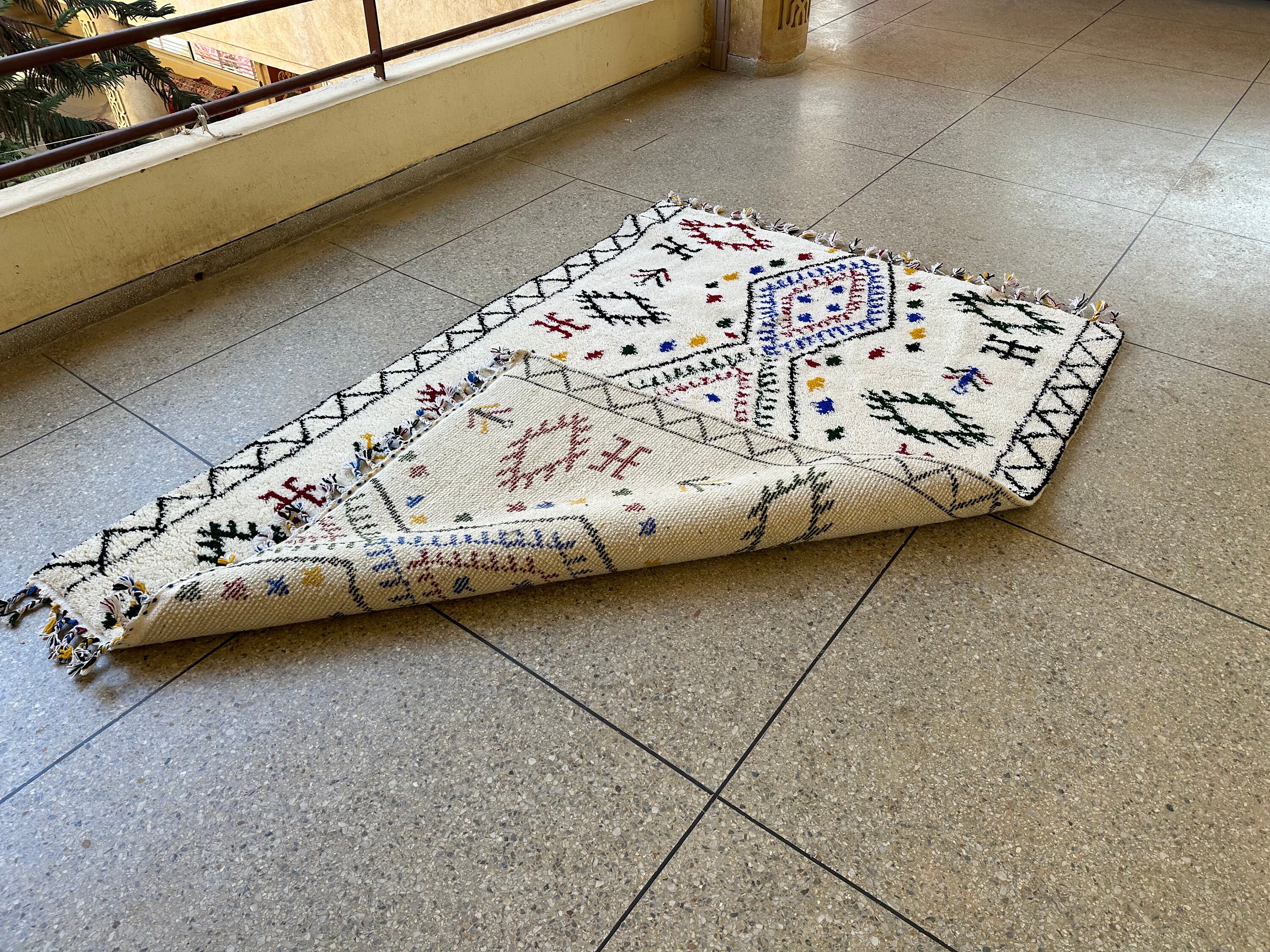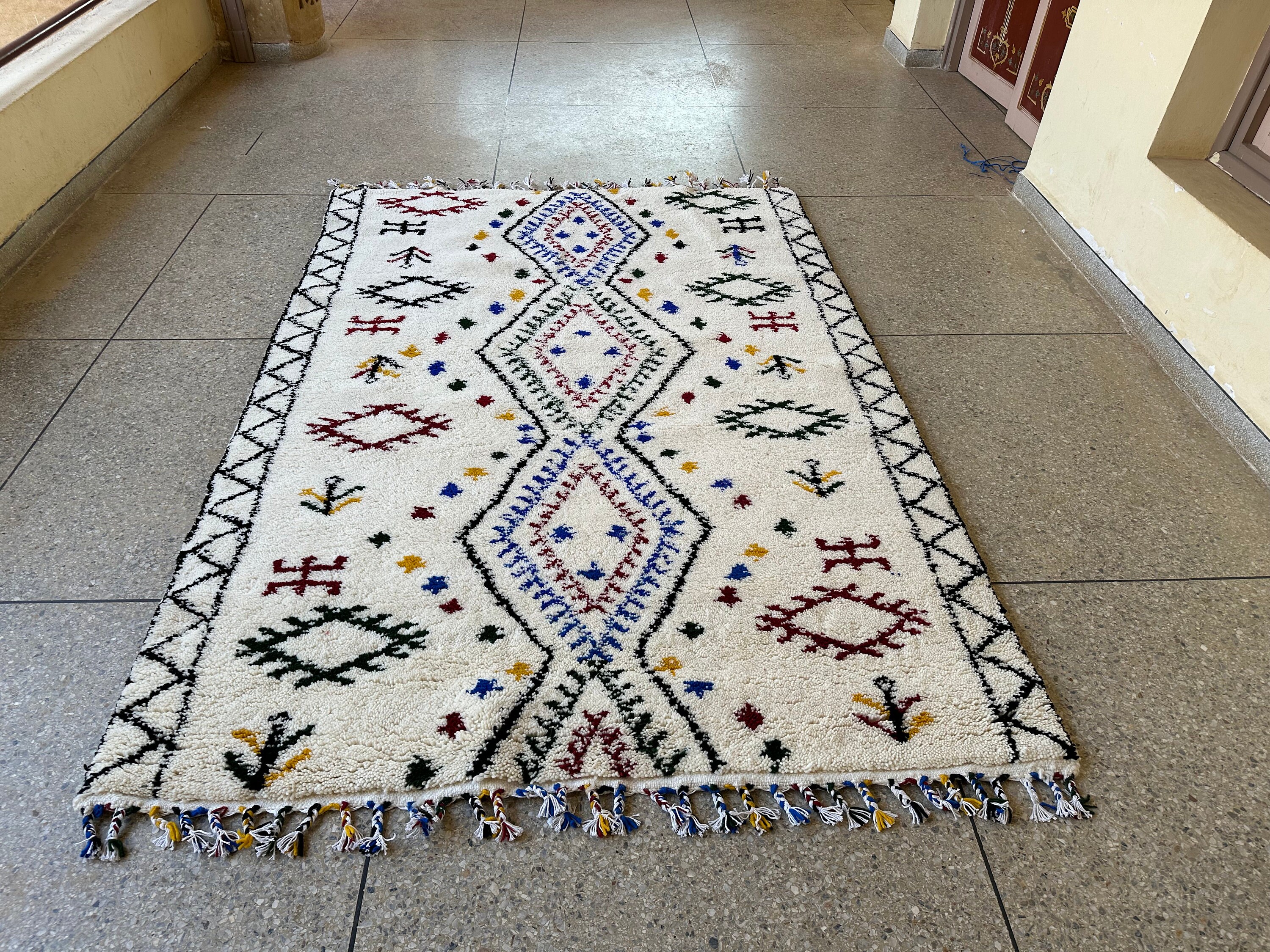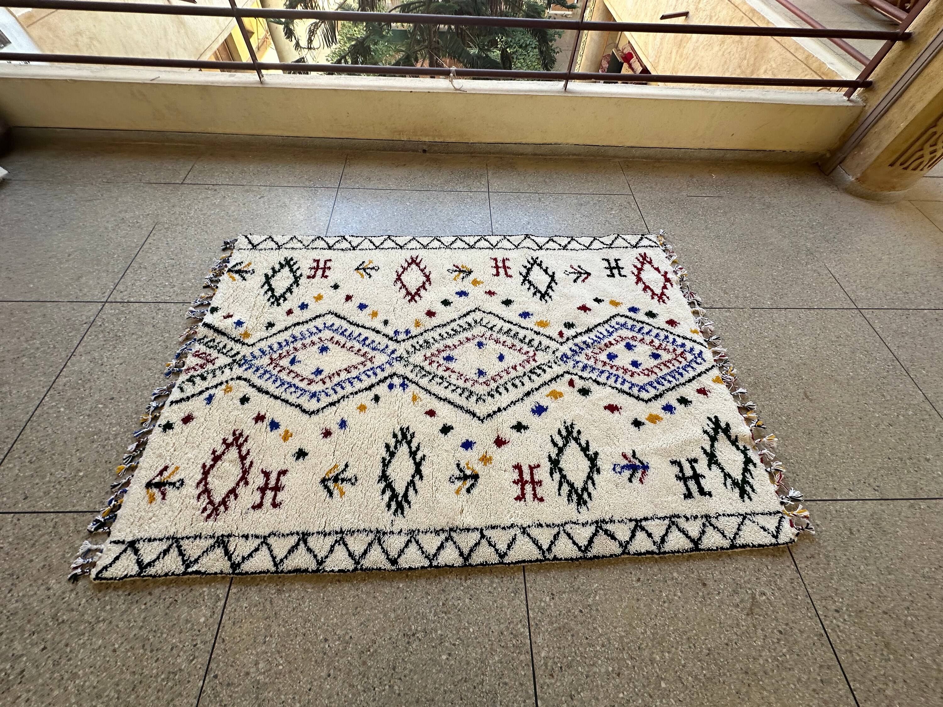 This fabulous Moroccan Rug that will give your room both a cozy feeling and stylish is made from 100% Natural sheep wool, It's Very plush and comfy to walk on, actually It's Heaven for your feet.