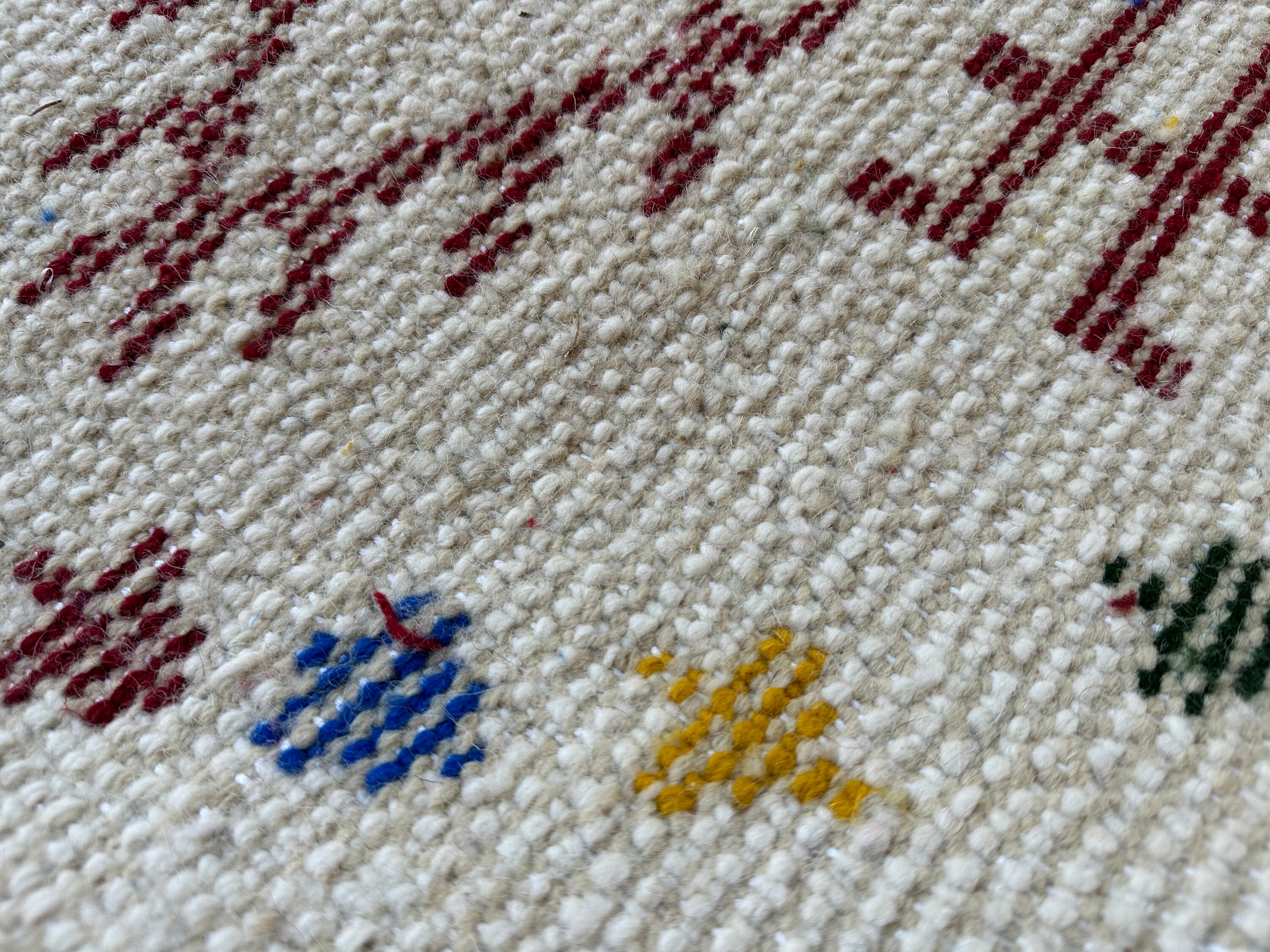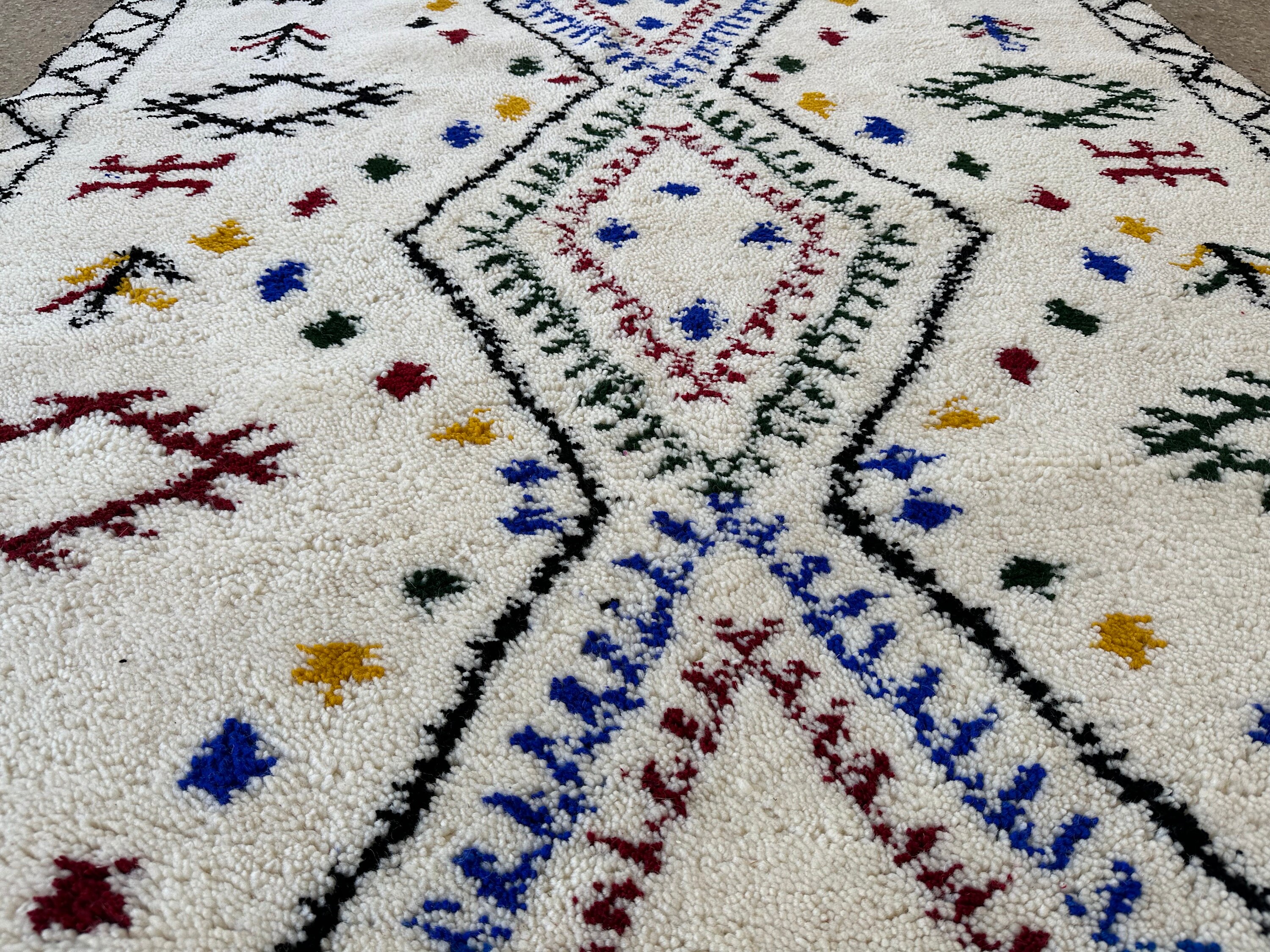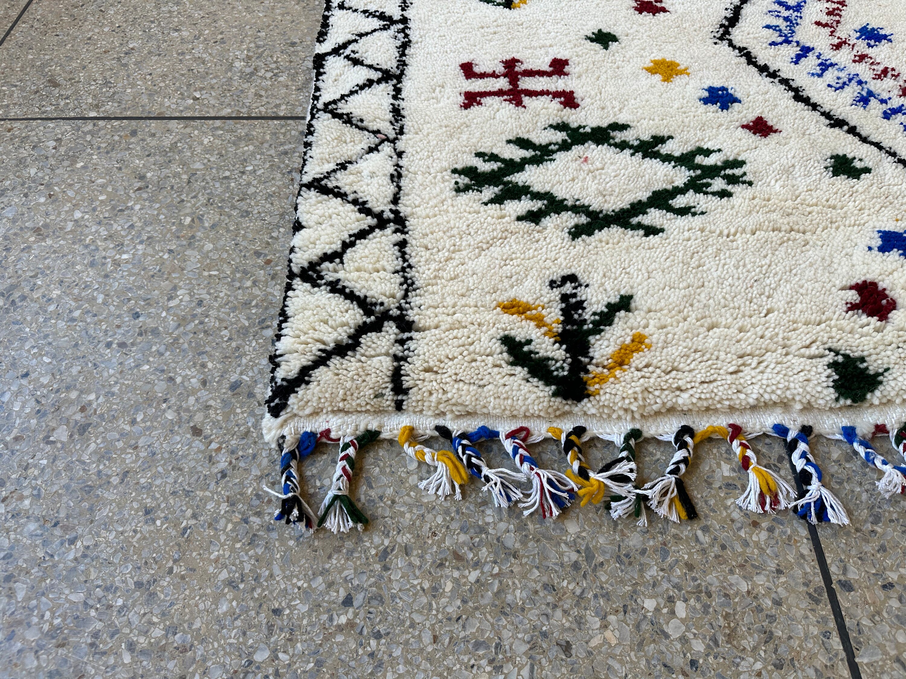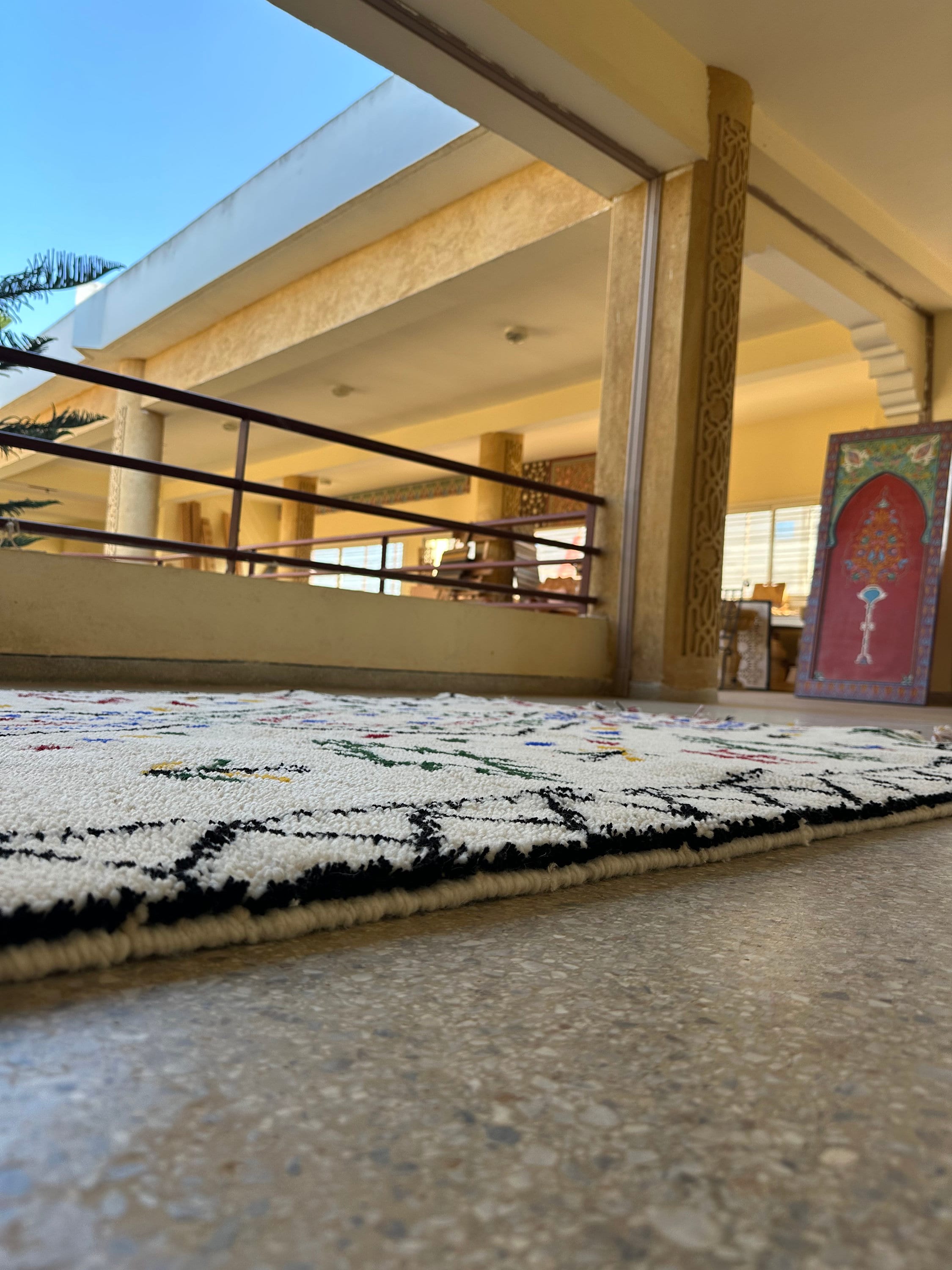This fabulous Moroccan Rug that will give your room both a cozy feeling and stylish is made from 100% Natural sheep wool, It's Very plush and comfy to walk on, actually It's Heaven for your feet.