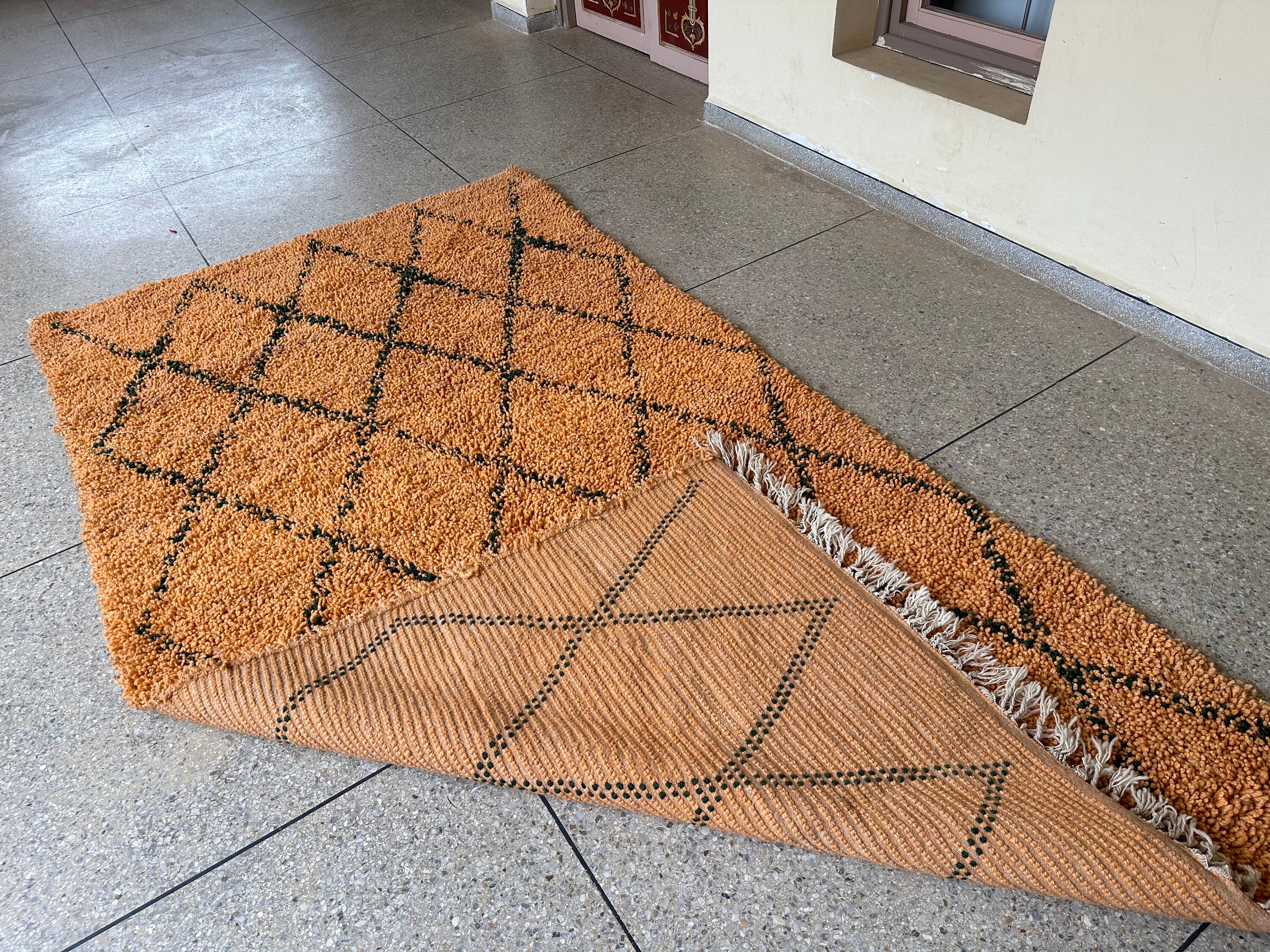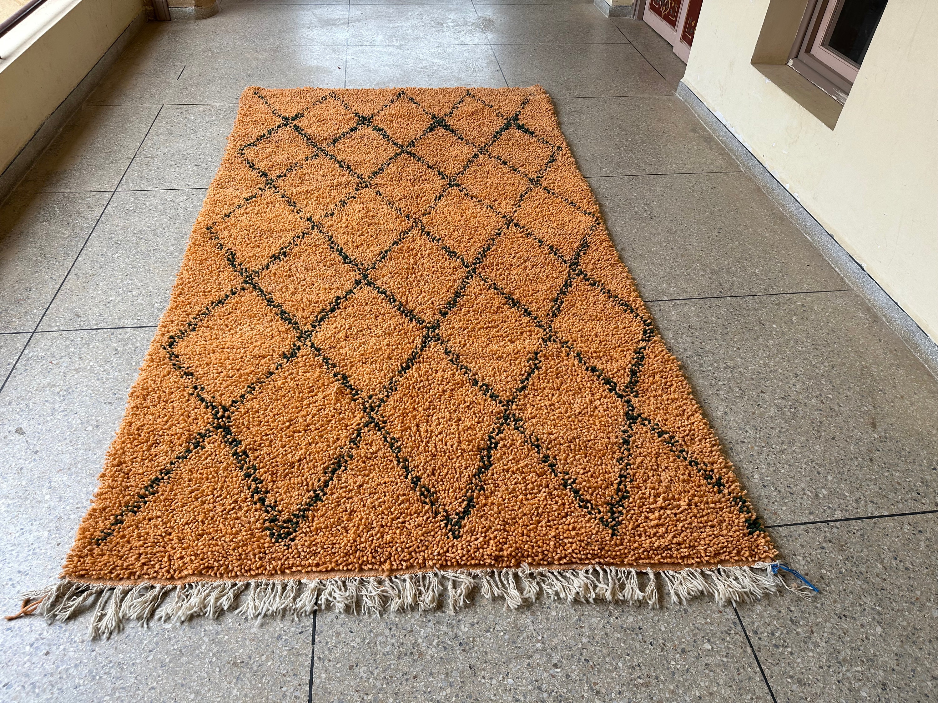 This fabulous Moroccan Rug that will give your room both a cozy feeling and stylish is made from 100% Natural sheep wool, It's Very plush and comfy to walk on, actually It's Heaven for your feet.