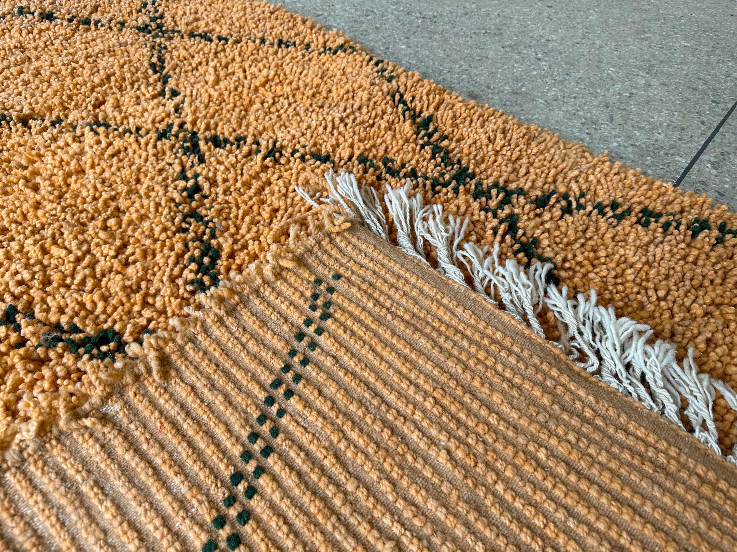 .MOROCCAN WOOL CARPET, Handmade Wool Rug, Beni Ourain Rug, Moroccan Berber Rug, Orange And Green Rug, Tribal Abstract Rug Azilal Moroccan Rug