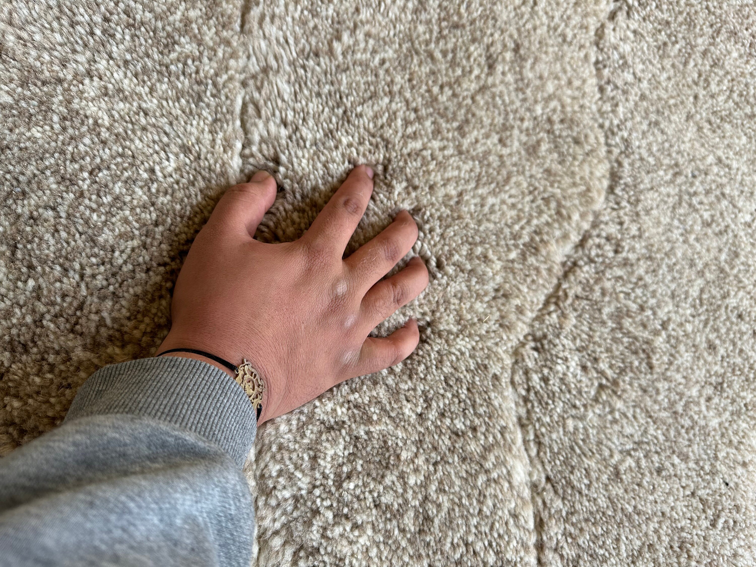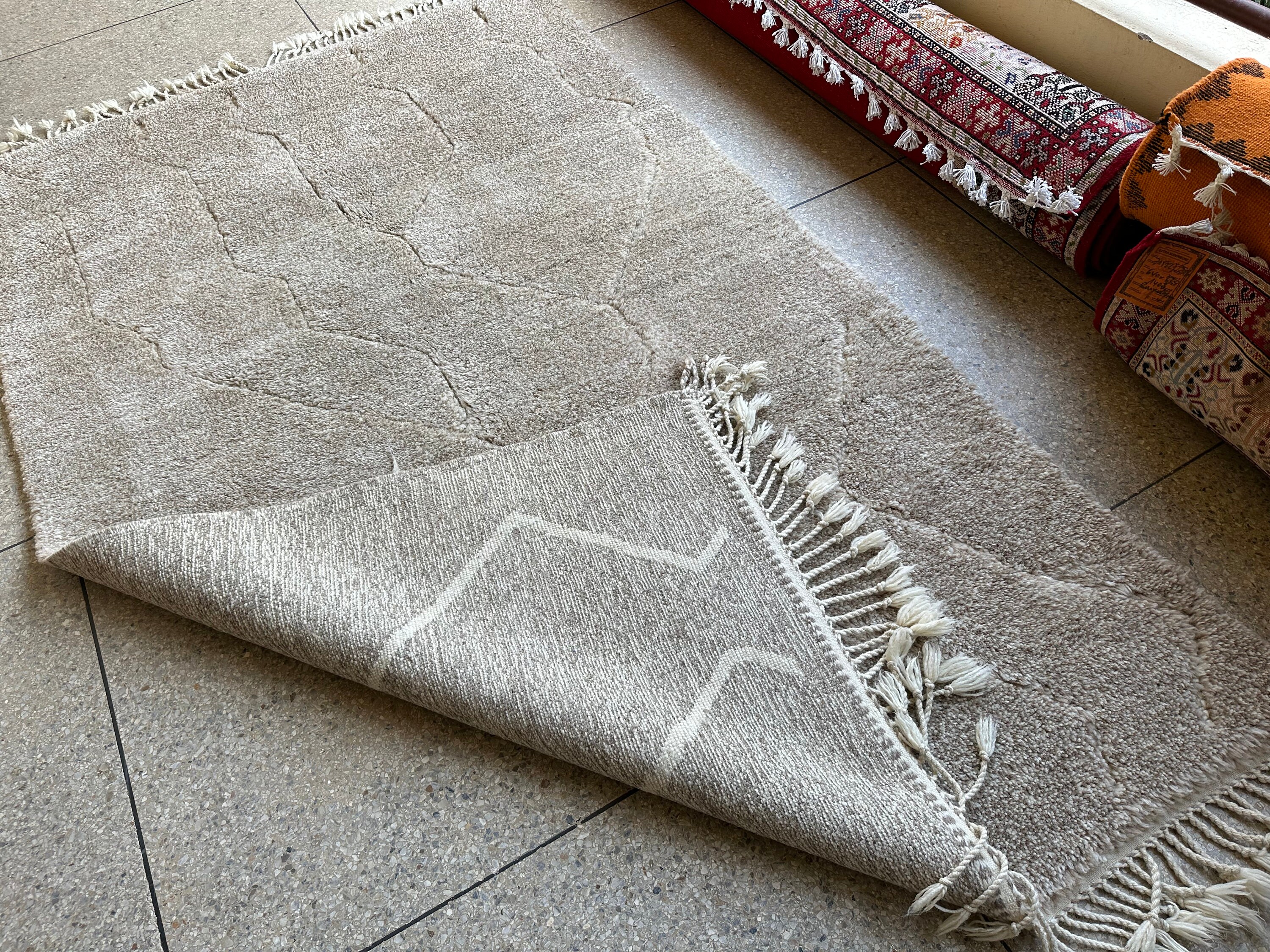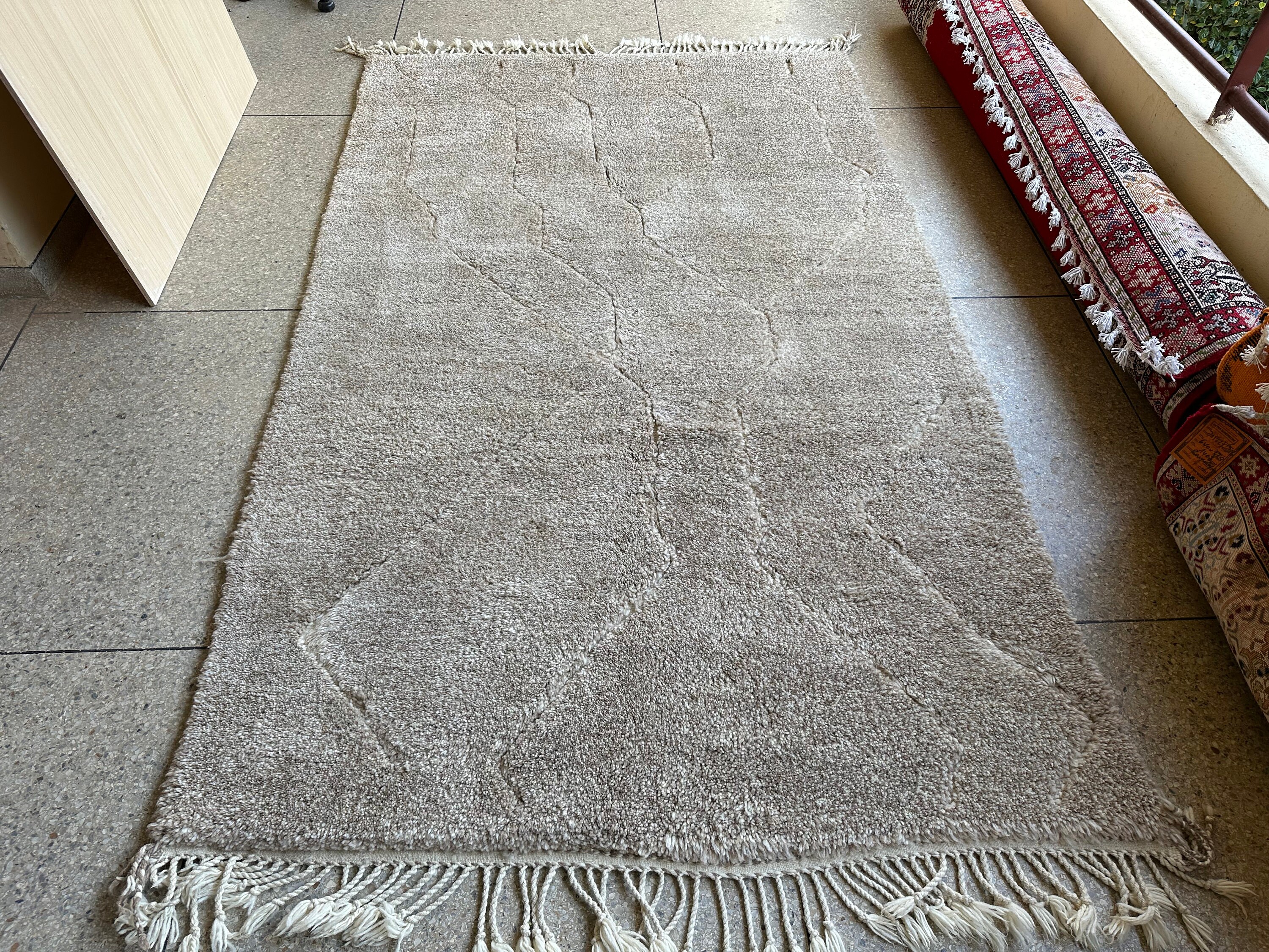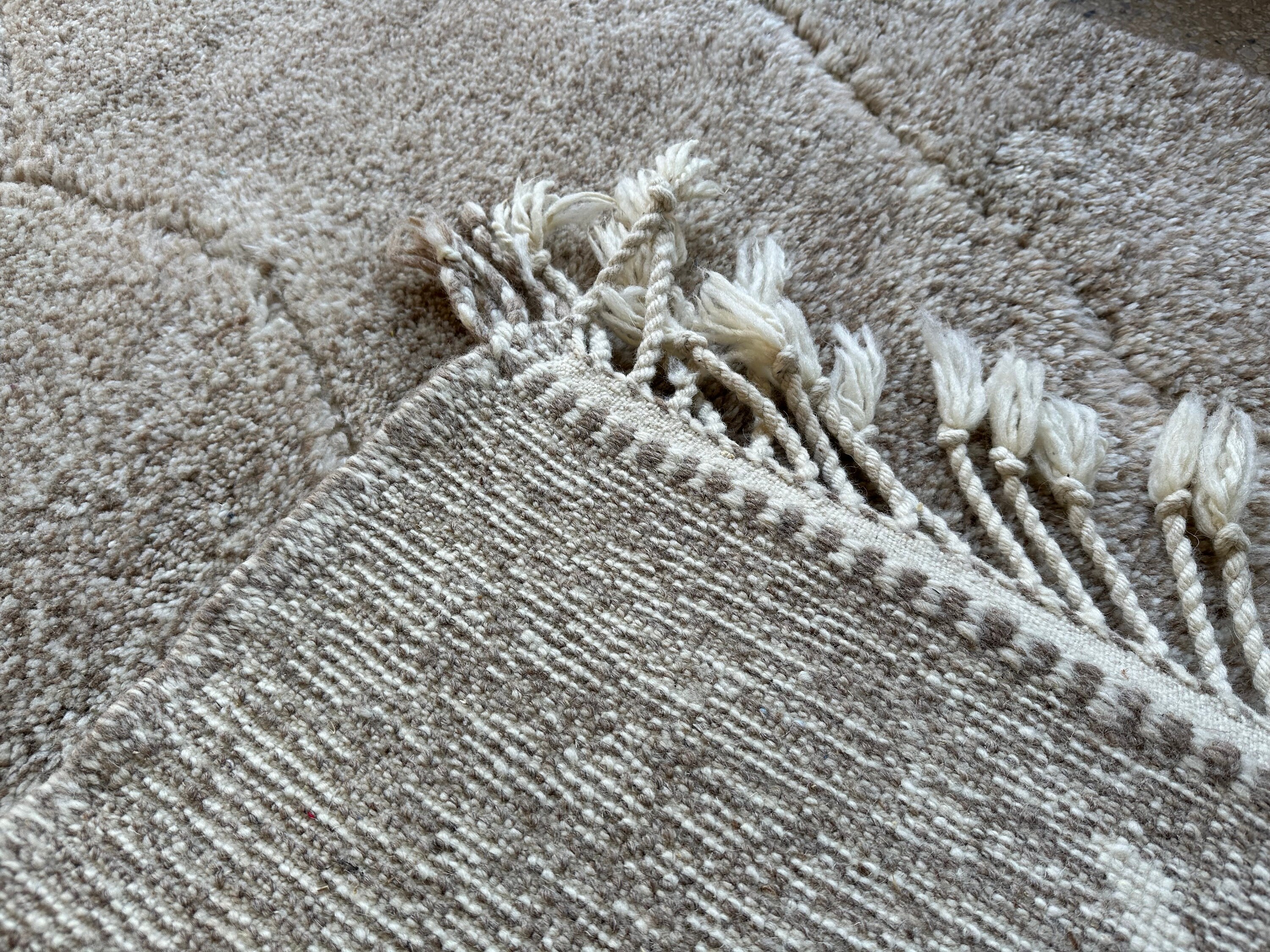 This fabulous Moroccan Rug that will give your room both a cozy feeling and stylish is made from 100% Natural sheep wool, It's Very plush and comfy to walk on, actually It's Heaven for your feet.