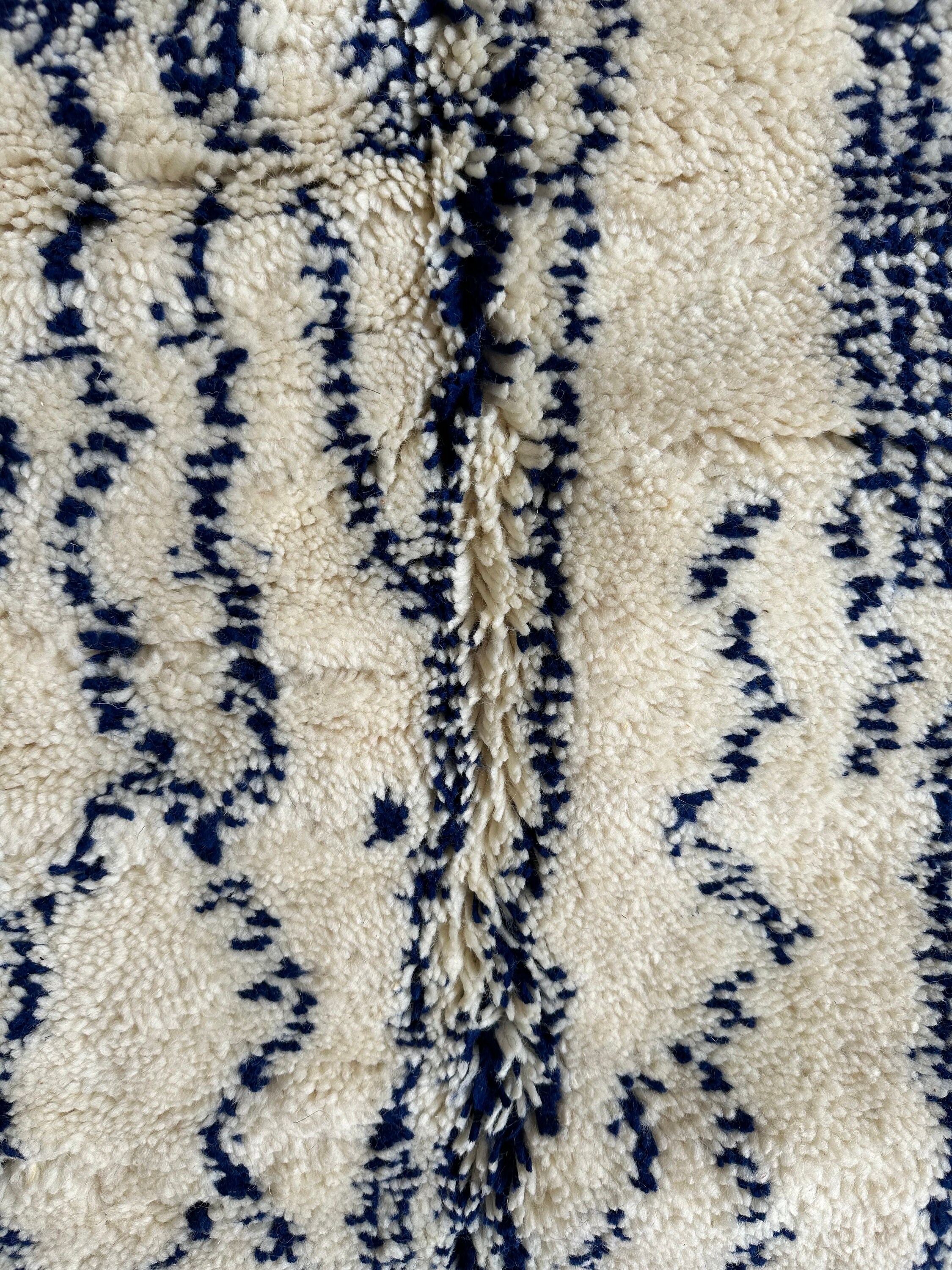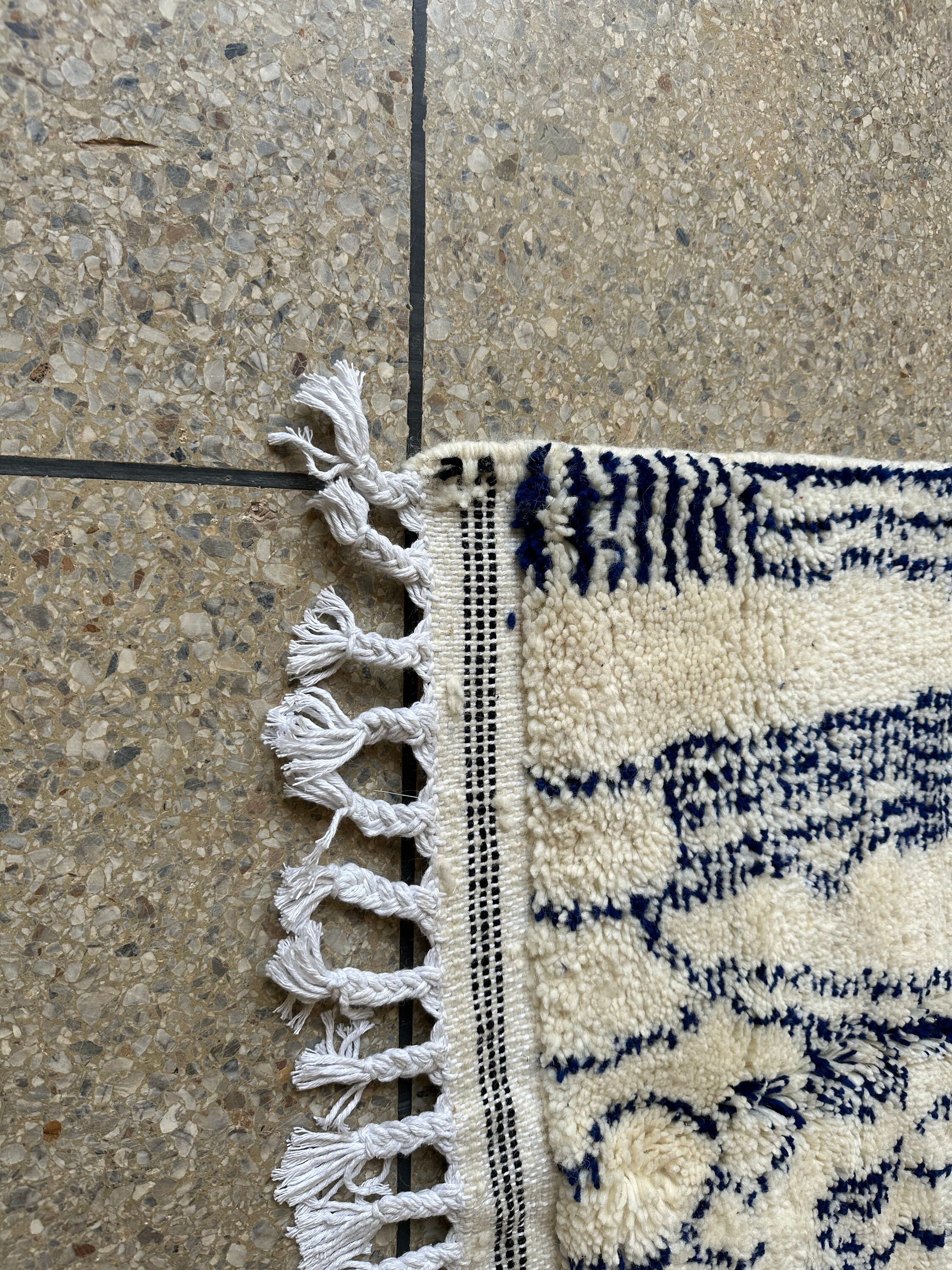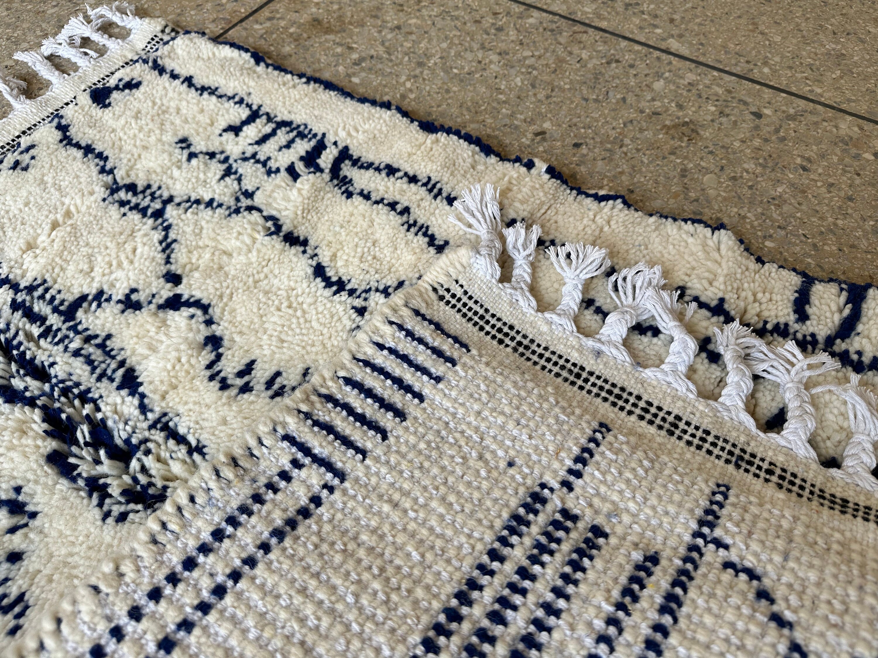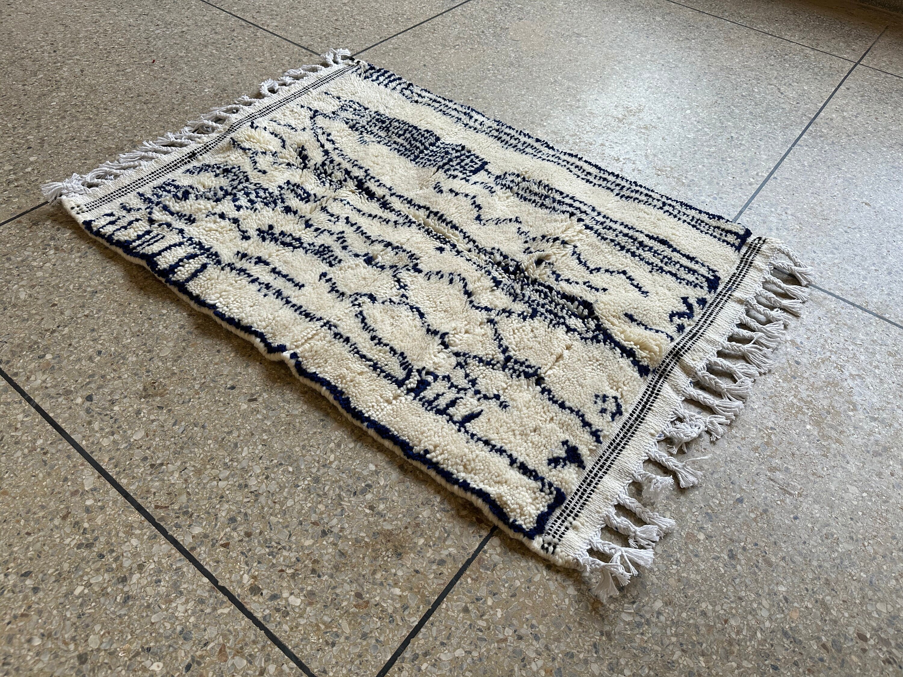 .MOROCCAN WOOL RUG, Berber Beniourain Rug, White and Blue Rug, Handmade Sheep Wool Rug 3.4x2.5FT, Abstract Rug, Large Area Rug, Handwoven Rug