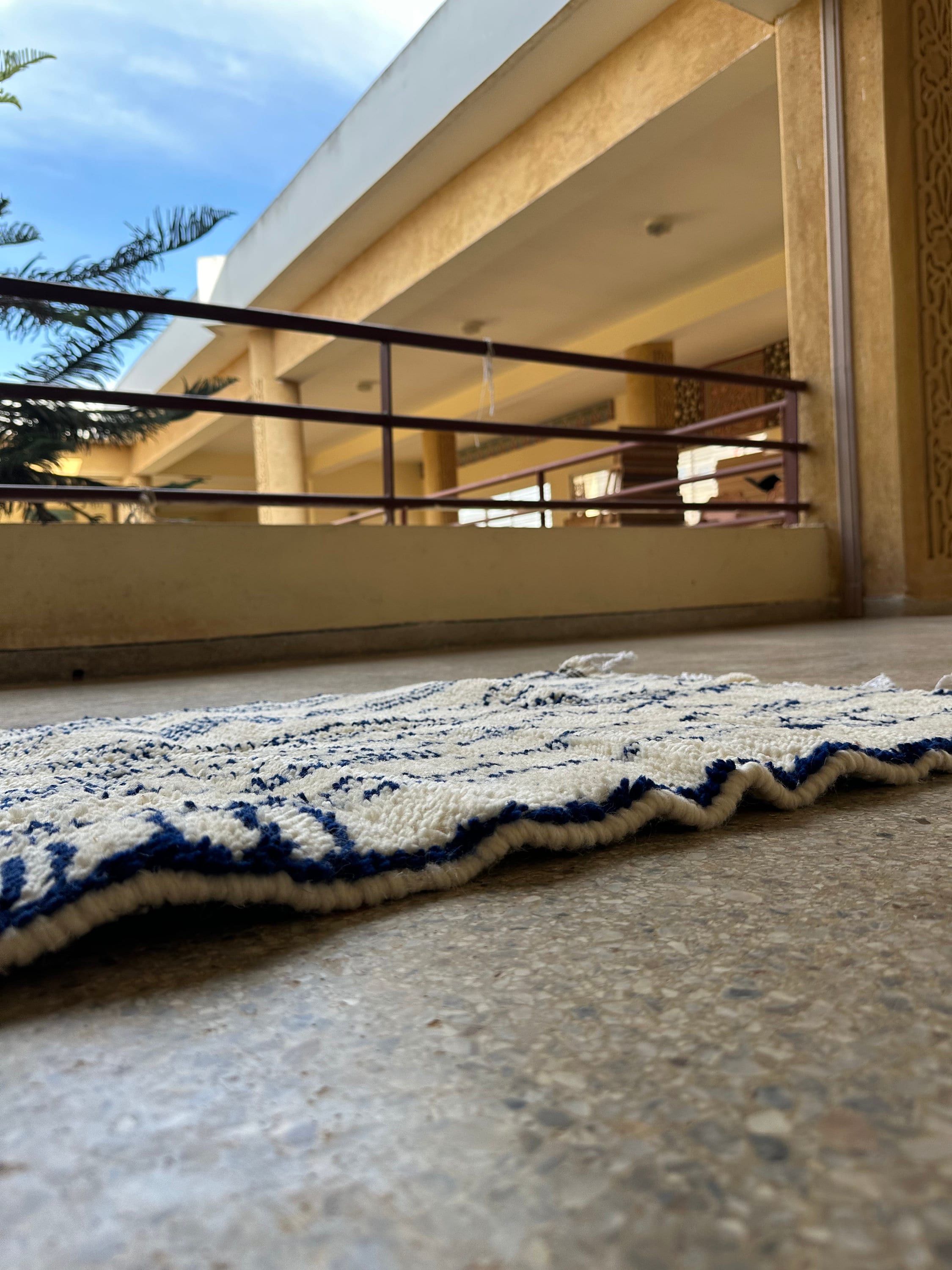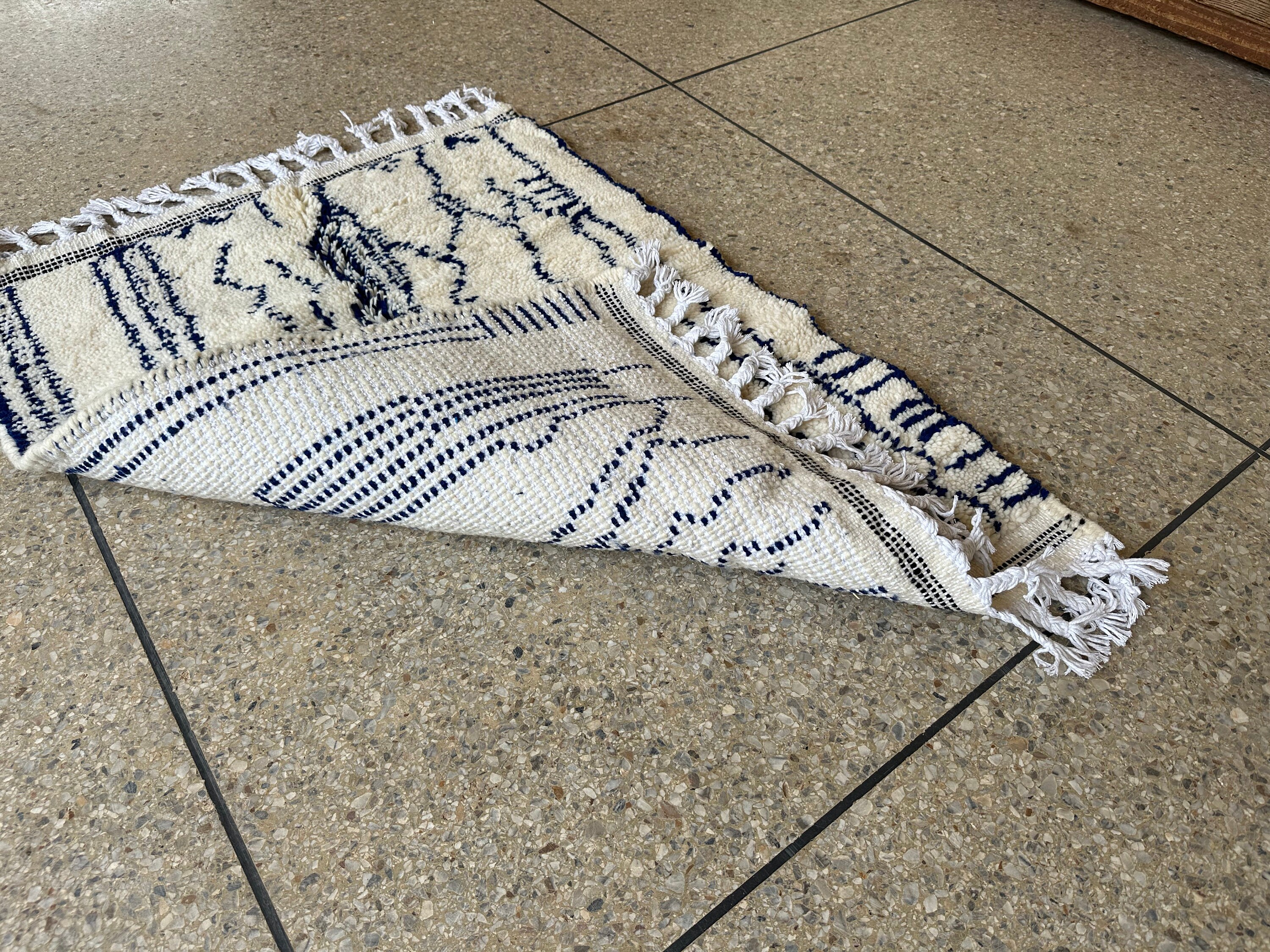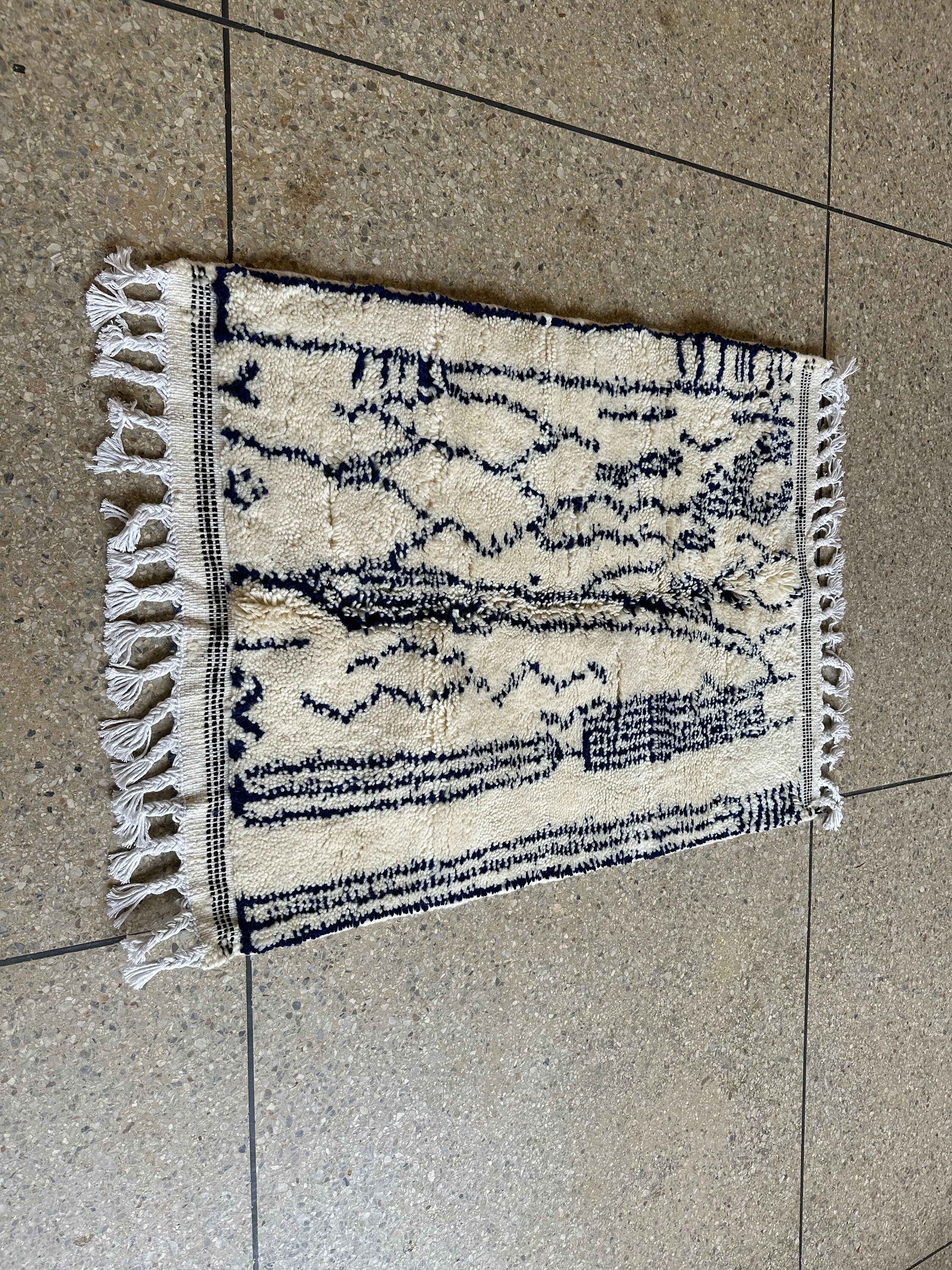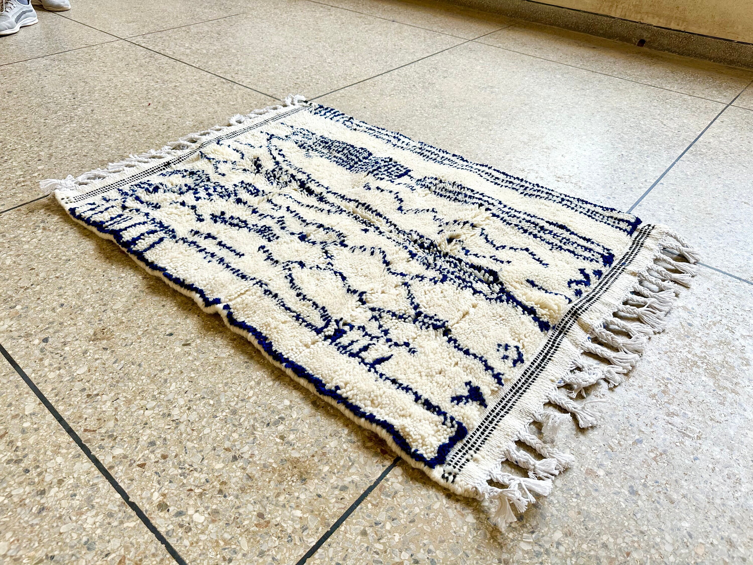 .MOROCCAN WOOL RUG, Berber Beniourain Rug, White and Blue Rug, Handmade Sheep Wool Rug 3.4x2.5FT, Abstract Rug, Large Area Rug, Handwoven Rug