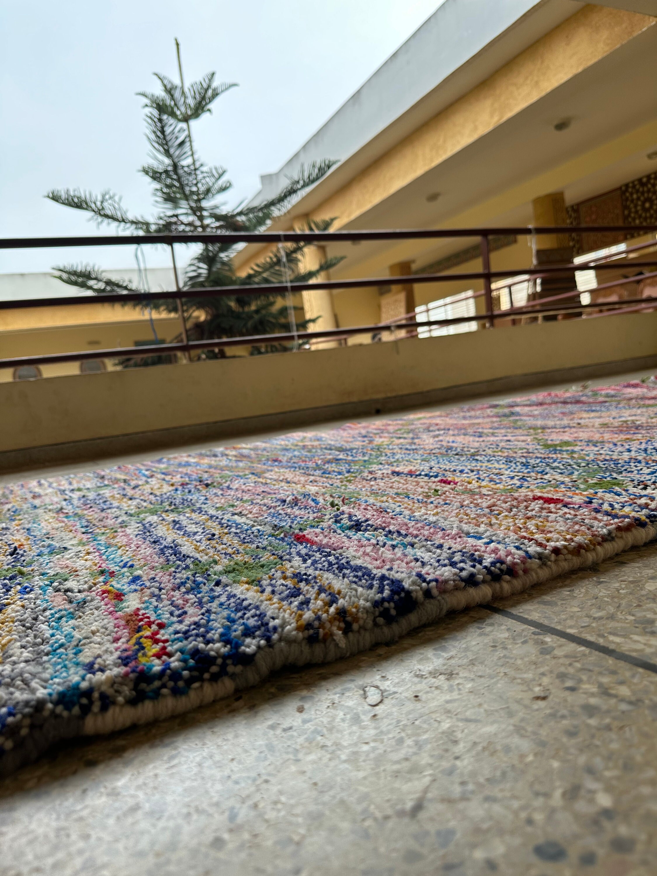 This fabulous Moroccan Rug that will give your room both a cozy feeling and stylish is made from 100% Natural sheep wool, It's Very plush and comfy to walk on, actually It's Heaven for your feet.