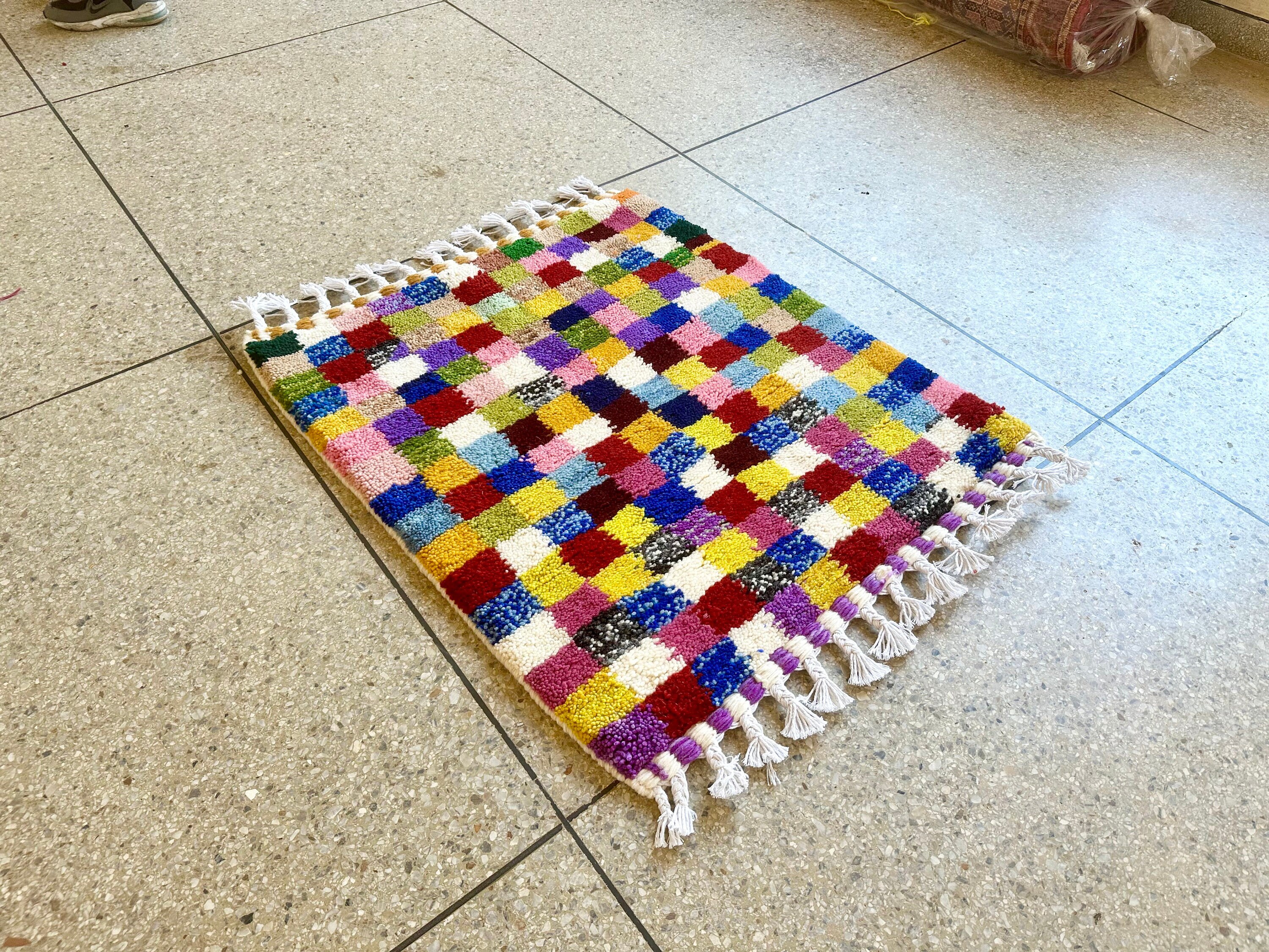 .Moroccan Berber rug - Beni ourain rug - all wool Berber rug - checkered rug - handmade rug - Genuine lamb wool - Berber wool rug.